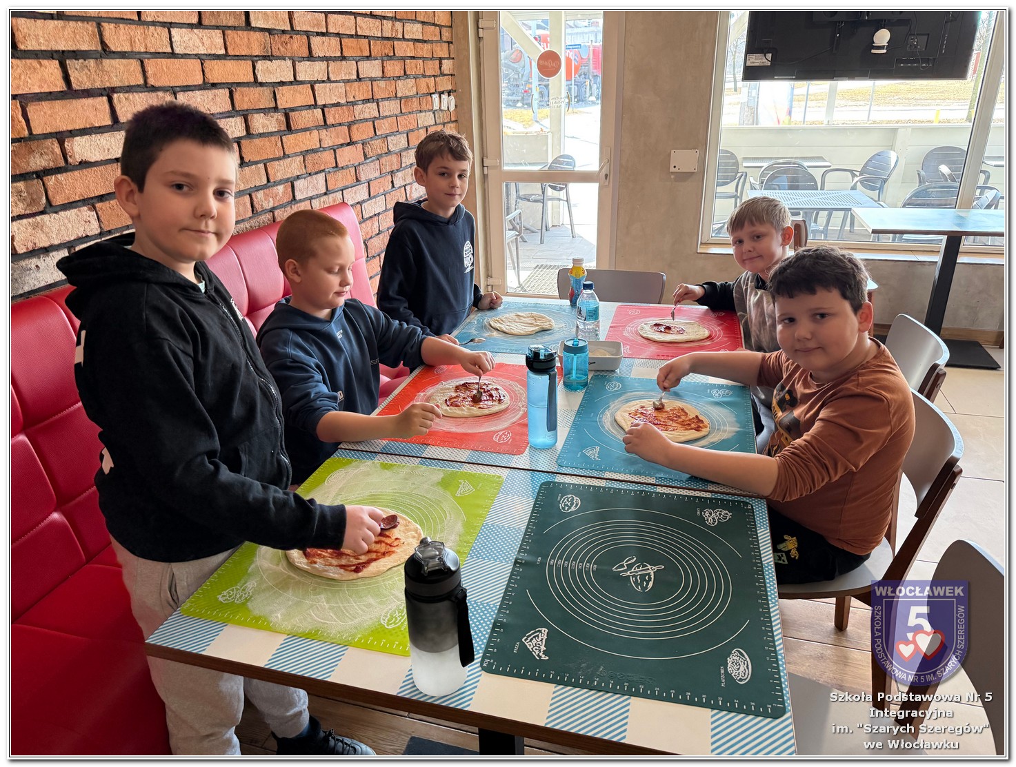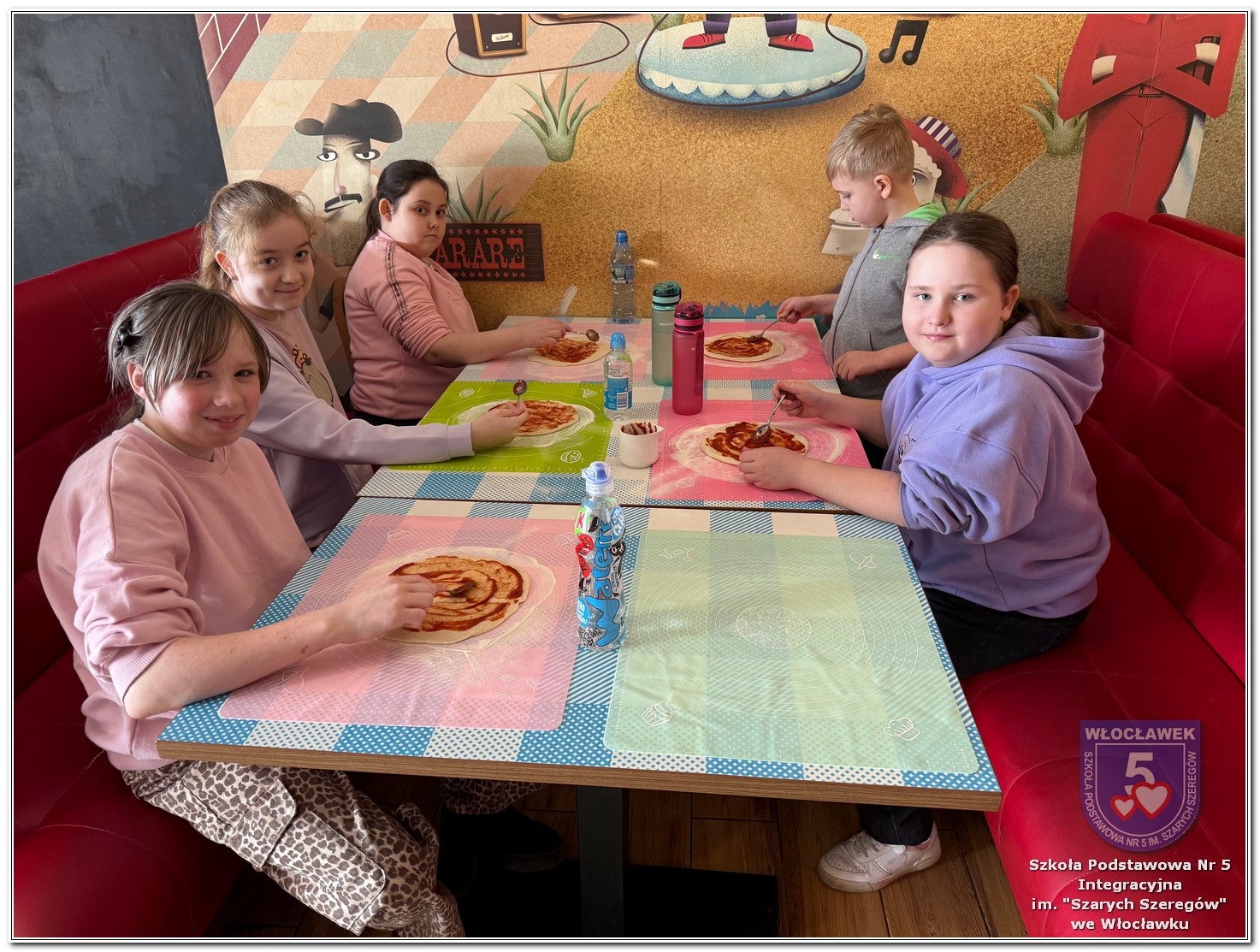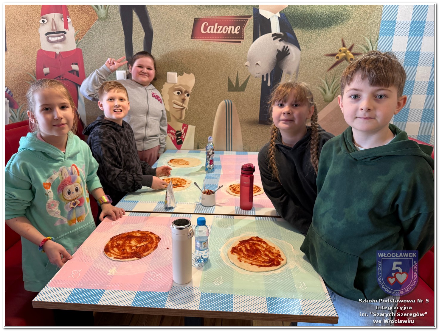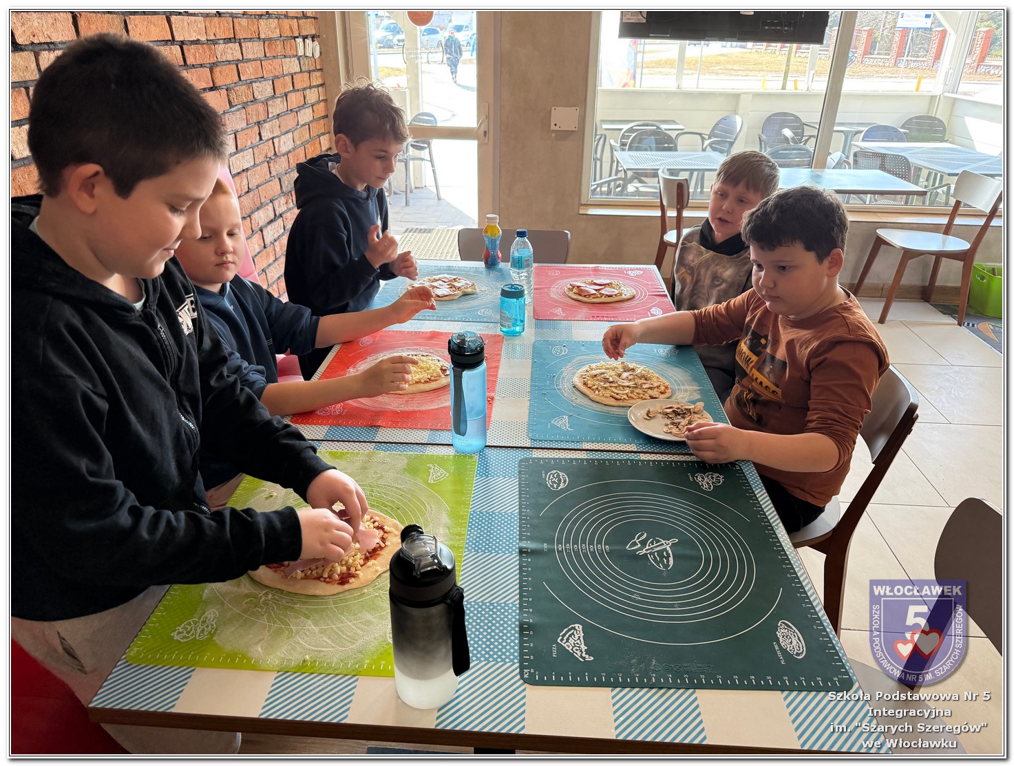 5 marca dzięki uprzejmości Rodziców uczniowie klasy 3a wybrali się na wyjątkowe wyjście do pizzerii, podczas którego mieli okazję samodzielnie przygotować własne pizze. Dzieci z dużym zaangażowaniem dobierały składniki, uczyły się rozwałkowywać ciasto oraz komponować ulubione smaki. Była to nie tylko świetna zabawa, ale także cenna lekcja współpracy i samodzielności. Na zakończenie wszyscy z apetytem zjedli przygotowane przez siebie pizze, a na twarzach uczniów gościły uśmiechy i satysfakcja z własnej pracy.