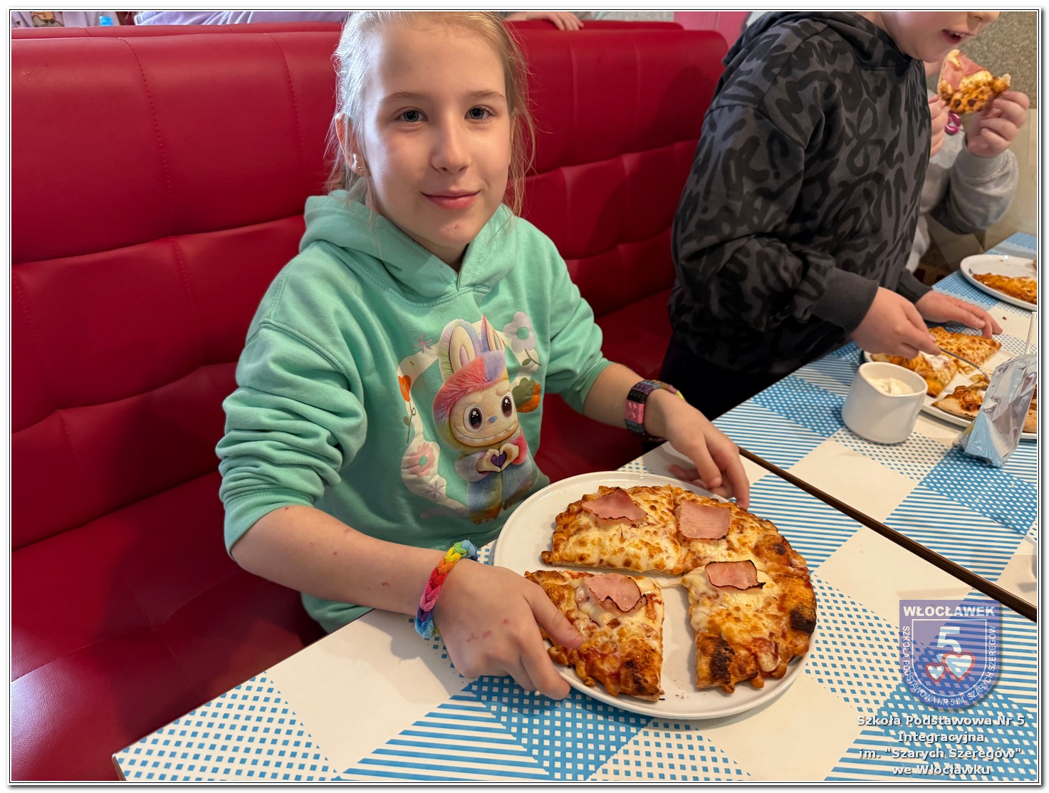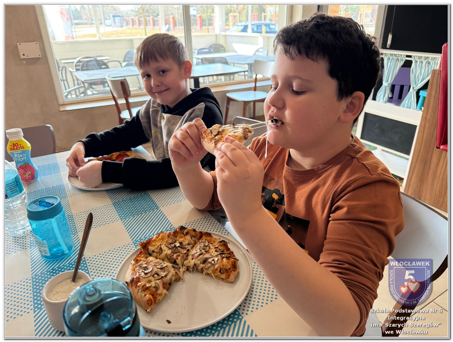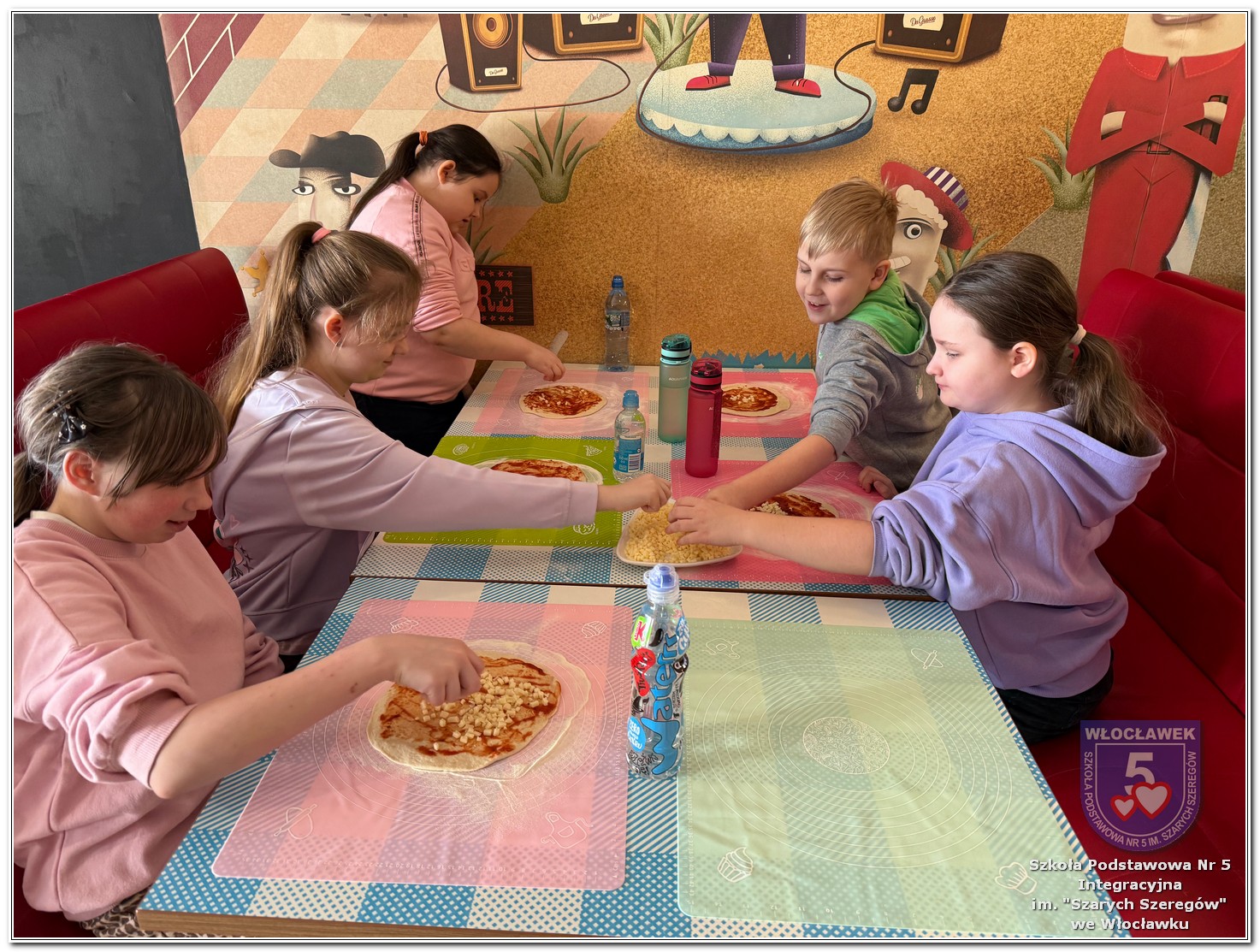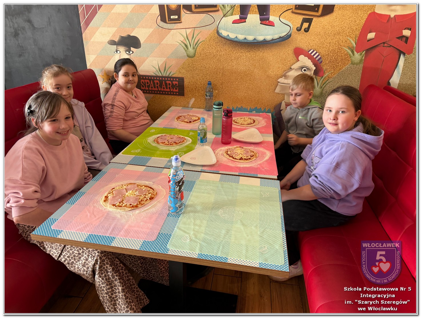 5 marca dzięki uprzejmości Rodziców uczniowie klasy 3a wybrali się na wyjątkowe wyjście do pizzerii, podczas którego mieli okazję samodzielnie przygotować własne pizze. Dzieci z dużym zaangażowaniem dobierały składniki, uczyły się rozwałkowywać ciasto oraz komponować ulubione smaki. Była to nie tylko świetna zabawa, ale także cenna lekcja współpracy i samodzielności. Na zakończenie wszyscy z apetytem zjedli przygotowane przez siebie pizze, a na twarzach uczniów gościły uśmiechy i satysfakcja z własnej pracy.