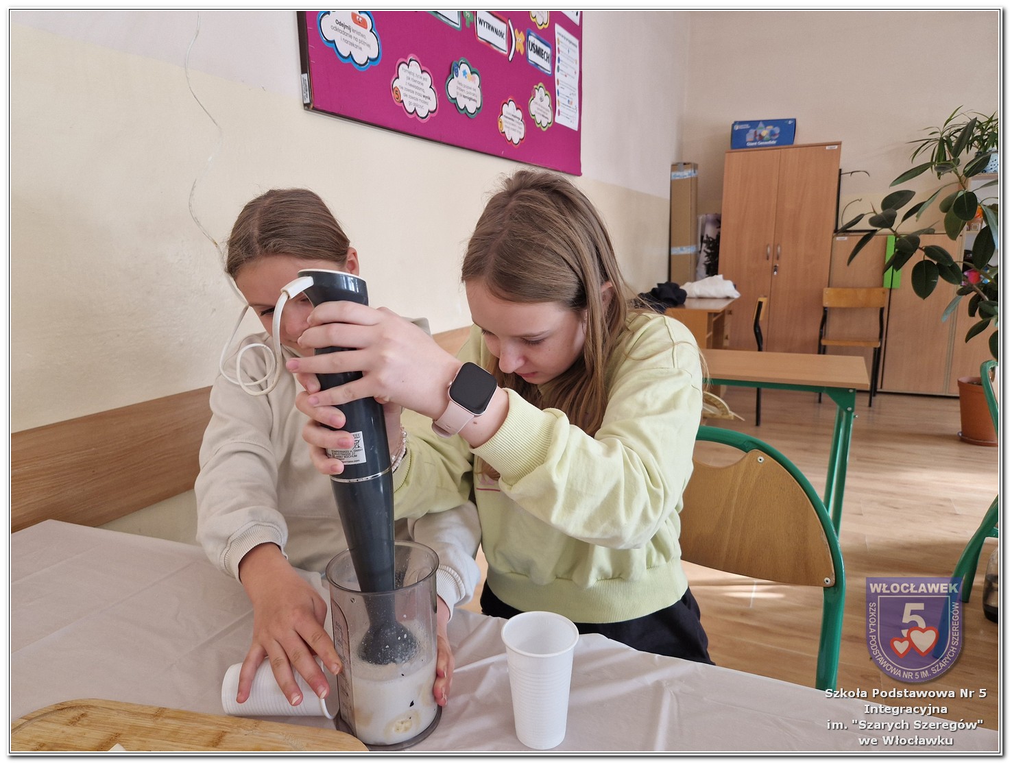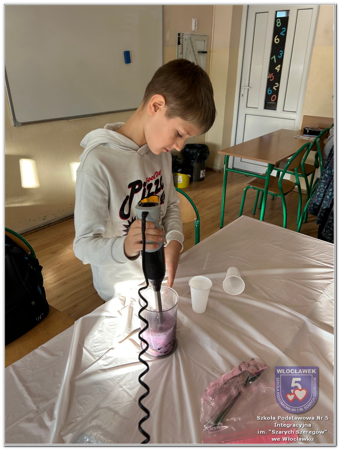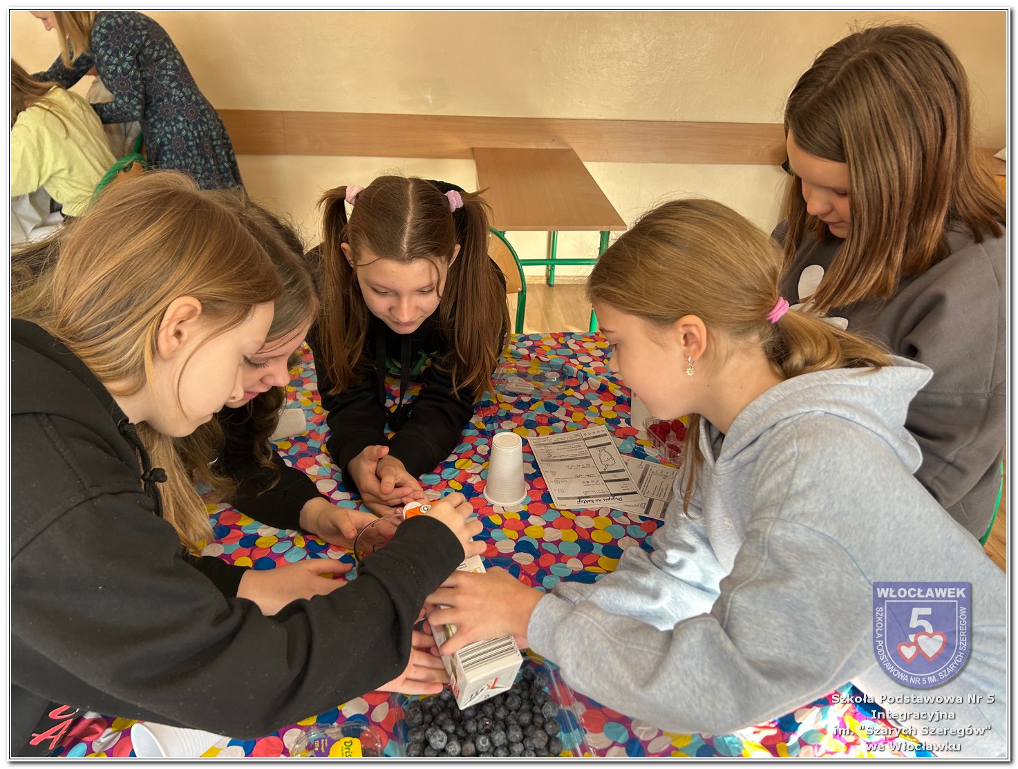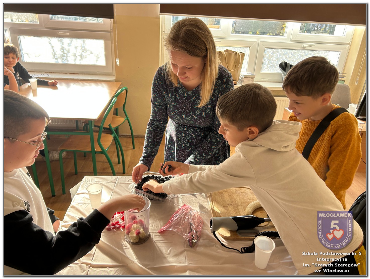 6 listopada zostały przeprowadzone warsztaty pt. „Analiza etykiet produktów spożywczych i obliczanie kalorii składników, ilości białek, tłuszczy. Cukier w diecie”, w ramach projektu „Mierzymy świat – matematyka w naturze”, sfinansowane przez Fundację mBanku w programie mSilnia. Zajęcia zostały przygotowane dla dwóch grup wiekowych – uczniów klas IV–V oraz klas VII–VIII. Podczas warsztatów uczniowie zapoznali się z zasadami zdrowego odżywiania. Poznali dzienne zapotrzebowanie kaloryczne dzieci, młodzieży, osób dorosłych i starszych. Omówiono rolę białek, cukrów, tłuszczów dla organizmu. Dzieci same uznały, że w ich diecie znajduje się dużo cukrów. Wykreślały z wykreślanki nazwy bakalii, które są smaczne, zdrowe i jednocześnie zawierają w sobie cukry. Dzieci wspólnie z nauczycielami stwierdziły, że doskonałą alternatywą dla słodkich przekąsek mogą być zdrowe i pożywne koktajle. Uczniowie najpierw obliczyli zadania matematyczne, których rozwiązanie okazało się przepisem na koktajl, a następnie według własnego uznania dobierały ulubione owoce takie jak: borówki, jeżyny, banany, gruszki, winogrona, czy maliny. Warsztaty okazały się nie tylko świetną zabawą, ale też ciekawym sposobem na naukę matematyki w praktyce oraz zrozumienie, że nasza dieta ma ogromny wpływ na funkcjonowanie organizmu.