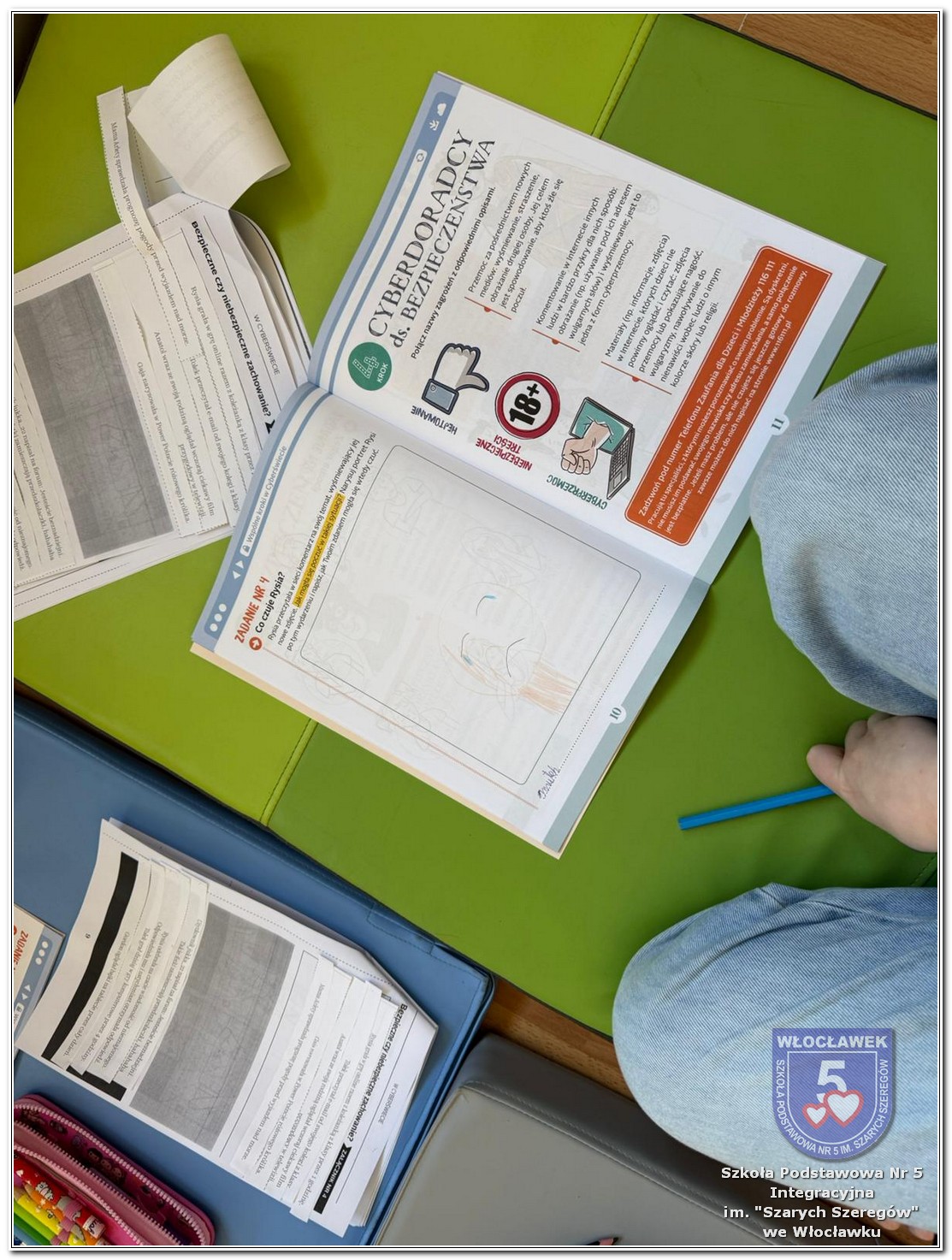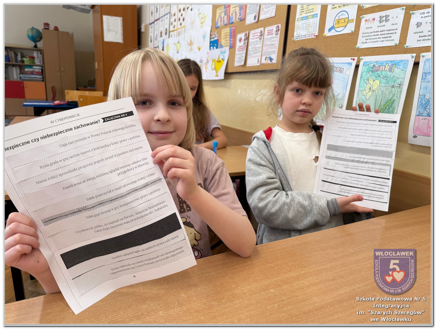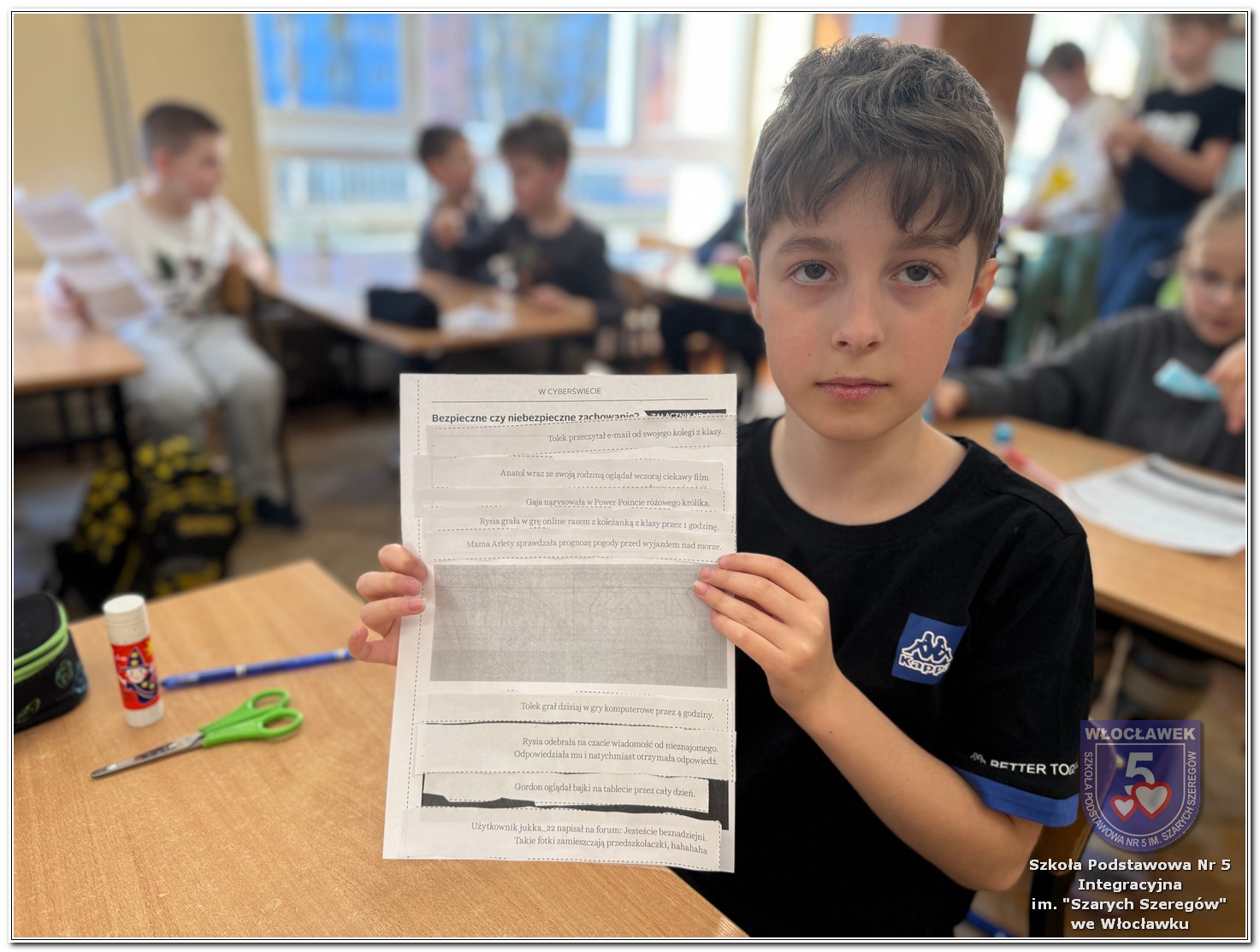 Uczniowie klas 3a i 3b wzięli udział w kolejnych zajęciach realizowanych w ramach projektu „Wspólne kroki w cyberświecie”. Zajęcia zostały podzielone na dwie części. W pierwszej części odbyła się pogadanka, podczas której uczniowie rozmawiali o emocjach towarzyszących nam podczas czytania różnych treści w sieci. Dzieci zastanawiały się, jakie uczucia wywołują miłe i wspierające komentarze, a jakie – te nieprzyjemne i krzywdzące. Była to okazja do rozwijania empatii oraz uświadomienia sobie, jak ważne są słowa, również w świecie online. Druga część miała charakter warsztatowy. Uczniowie pracowali z materiałami edukacyjnymi, w których dopasowywali emocje do przedstawionych sytuacji oraz uczyli się rozróżniać bezpieczne i niebezpieczne zachowania w Internecie. Dzięki tym ćwiczeniom dzieci mogły w praktyczny sposób utrwalić zdobytą wiedzę i lepiej zrozumieć, jak dbać o swoje bezpieczeństwo w sieci.