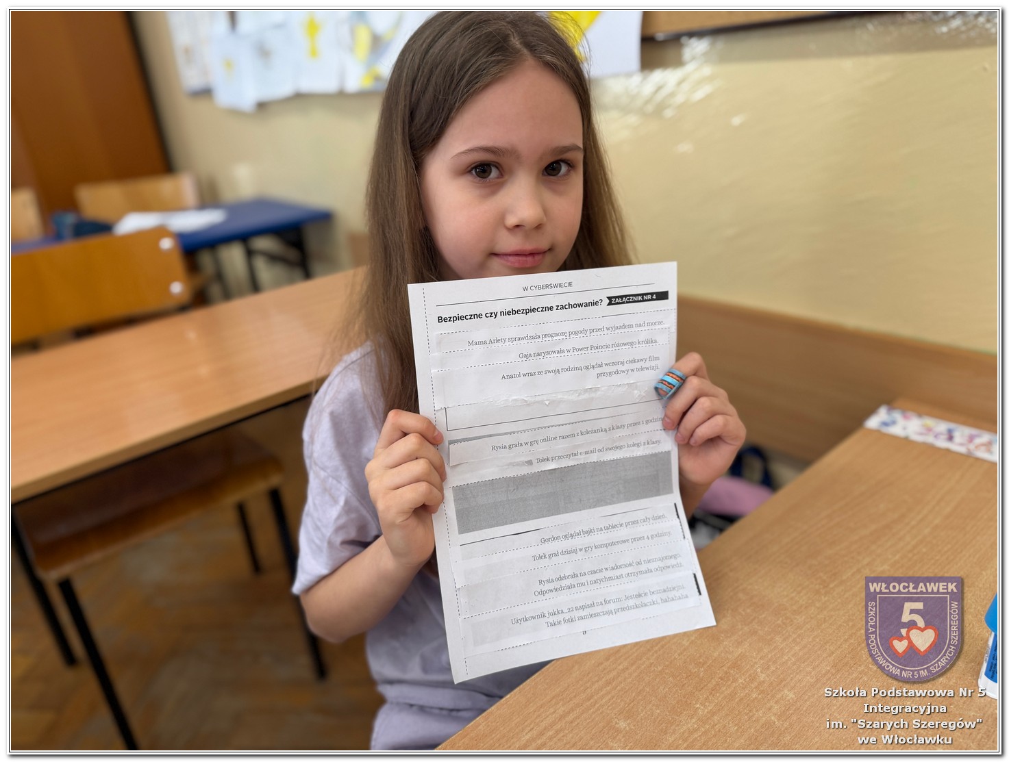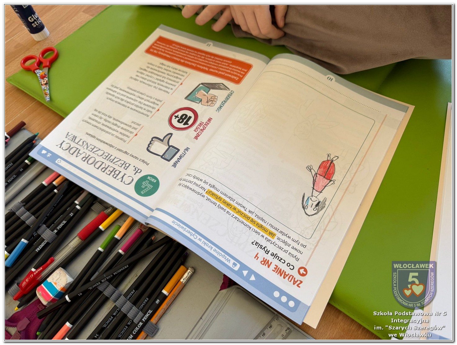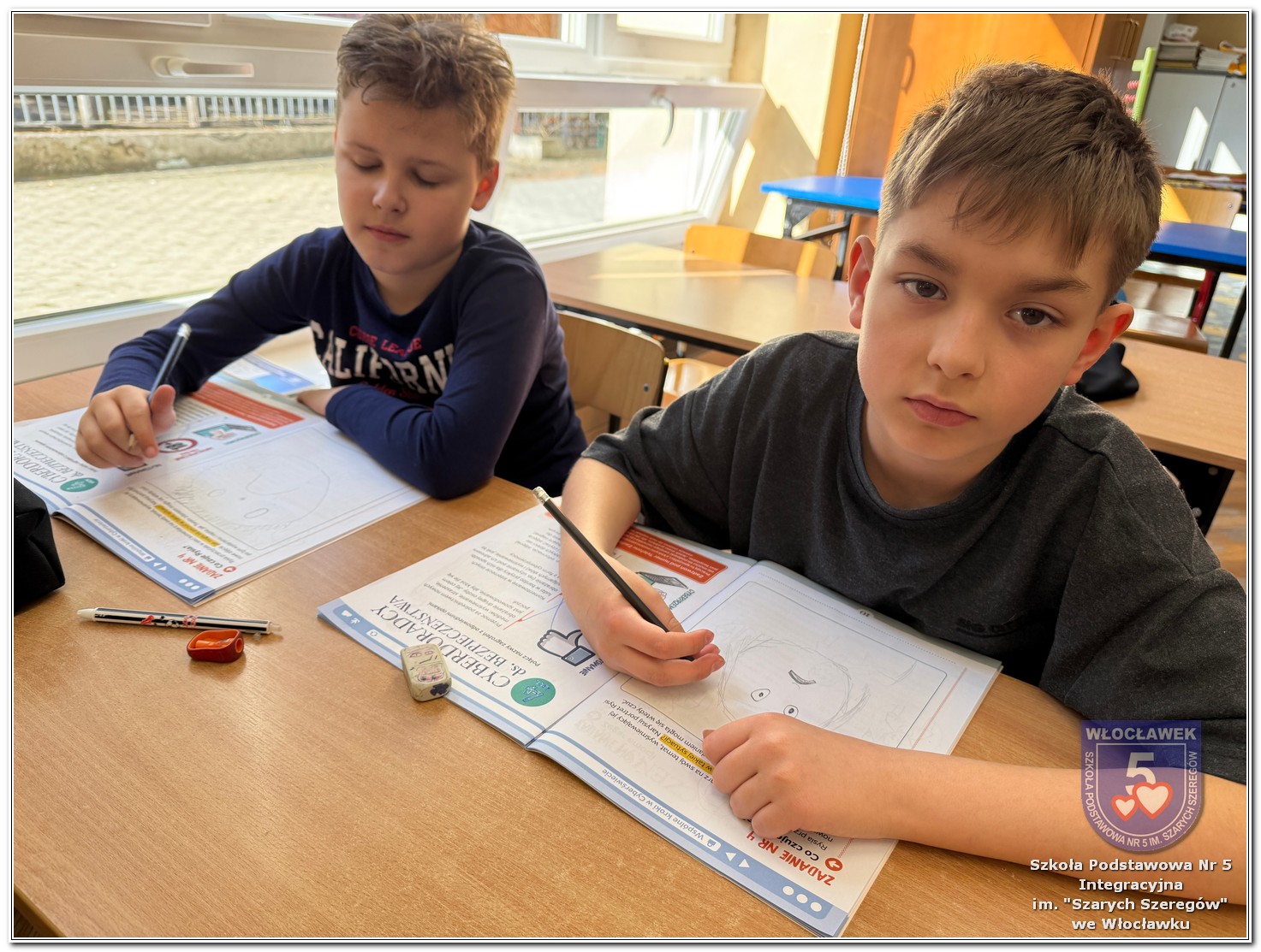 Uczniowie klas 3a i 3b wzięli udział w kolejnych zajęciach realizowanych w ramach projektu „Wspólne kroki w cyberświecie”. Zajęcia zostały podzielone na dwie części. W pierwszej części odbyła się pogadanka, podczas której uczniowie rozmawiali o emocjach towarzyszących nam podczas czytania różnych treści w sieci. Dzieci zastanawiały się, jakie uczucia wywołują miłe i wspierające komentarze, a jakie – te nieprzyjemne i krzywdzące. Była to okazja do rozwijania empatii oraz uświadomienia sobie, jak ważne są słowa, również w świecie online. Druga część miała charakter warsztatowy. Uczniowie pracowali z materiałami edukacyjnymi, w których dopasowywali emocje do przedstawionych sytuacji oraz uczyli się rozróżniać bezpieczne i niebezpieczne zachowania w Internecie. Dzięki tym ćwiczeniom dzieci mogły w praktyczny sposób utrwalić zdobytą wiedzę i lepiej zrozumieć, jak dbać o swoje bezpieczeństwo w sieci.