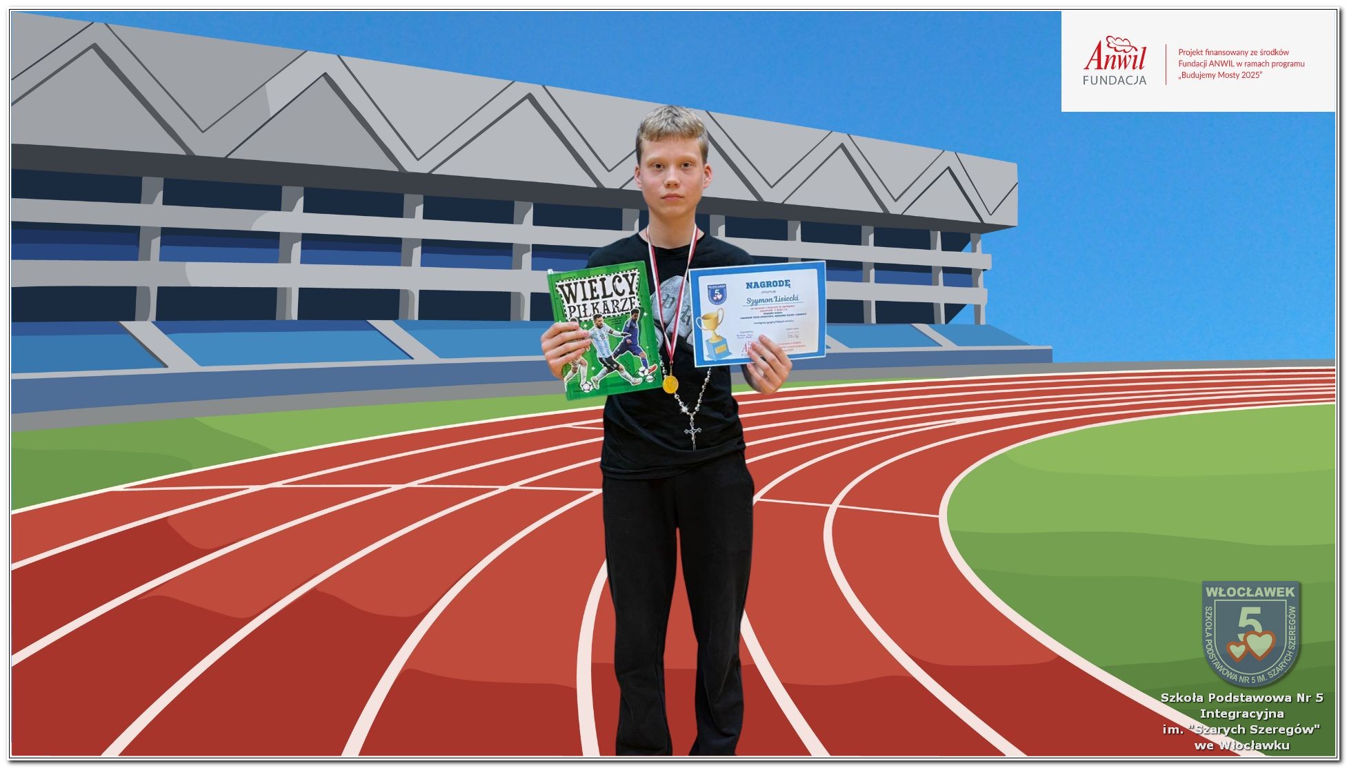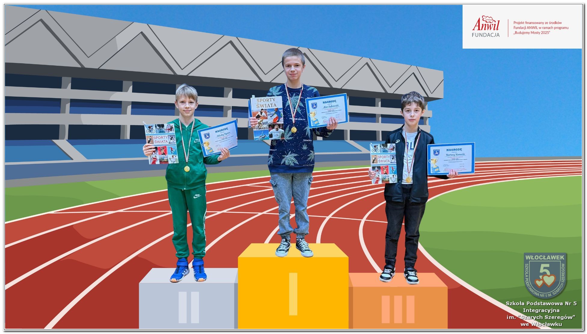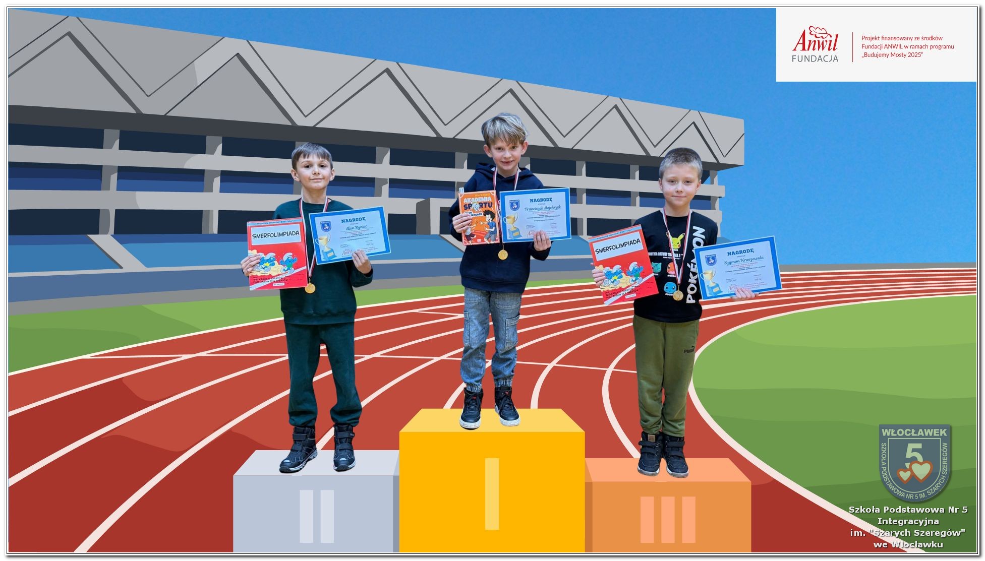 22 października 2025 roku uczniowie uczestniczyli w biegu zorganizowanym dla uczniów klas 1-8 naszej szkoły w ramach realizacji programu grantowego sfinansowanego przez Fundację ANWIL ph. „Budujemy międzypokoleniowe mosty zdrowiem, sportem, integracją”. Bardzo cieszymy się z faktu, że 122 uczniów wzięło udział w biegu, w czterech kategoriach wiekowych z podziałem na płeć. W ten sposób pokonywali swoje dotychczasowe osiągnięcia sportowe. Głównymi celami zorganizowanego biegu była popularyzacja aktywności fizycznej jako elementu dbania o własne zdrowie, wzmocnienie ciała, redukcja stresu oraz poprawa kondycji. Uczniowie, którzy zajęli pierwsze trzy miejsca w każdym z biegów otrzymali pamiątkowe dyplomy, medale oraz nagrody książkowe.