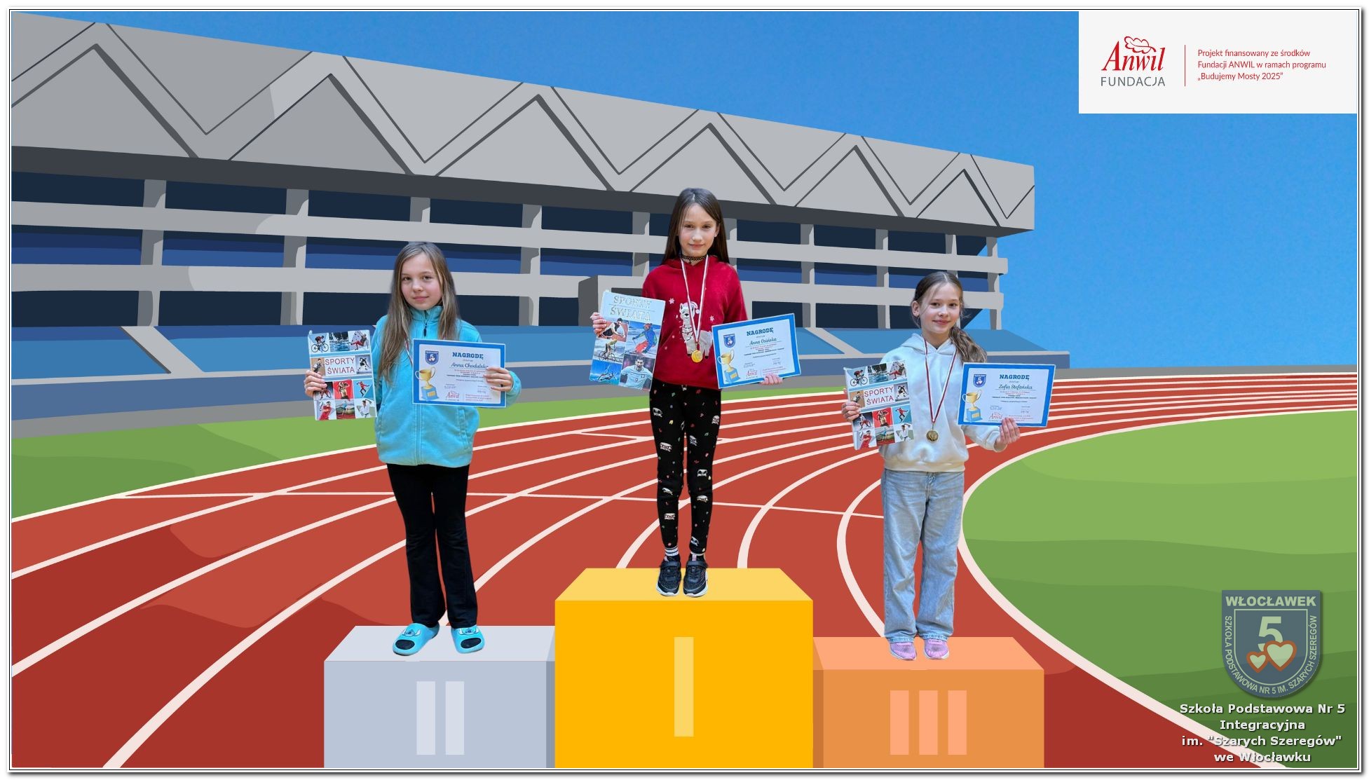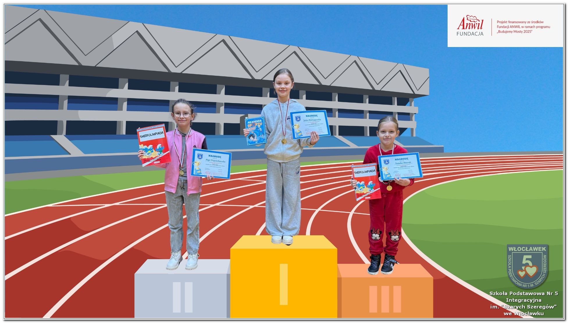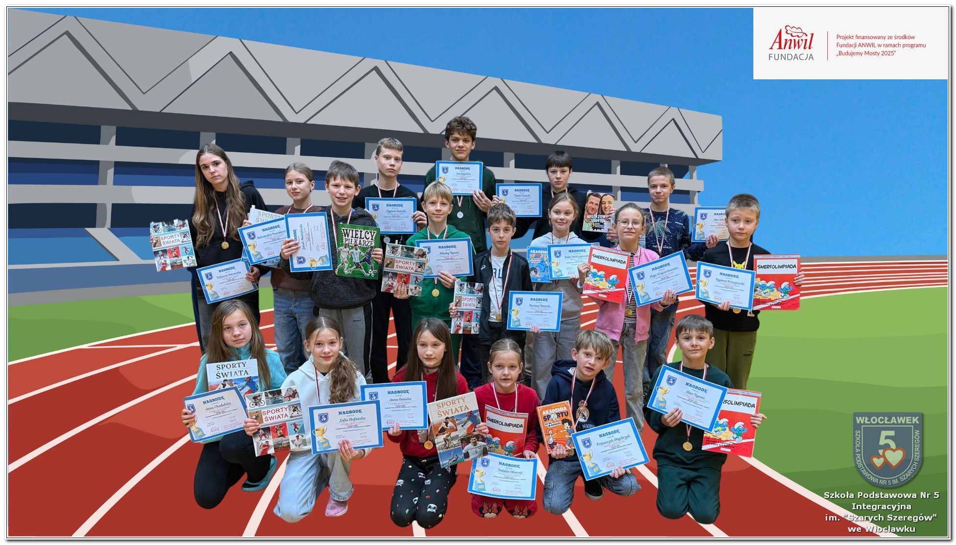 22 października 2025 roku uczniowie uczestniczyli w biegu zorganizowanym dla uczniów klas 1-8 naszej szkoły w ramach realizacji programu grantowego sfinansowanego przez Fundację ANWIL ph. „Budujemy międzypokoleniowe mosty zdrowiem, sportem, integracją”. Bardzo cieszymy się z faktu, że 122 uczniów wzięło udział w biegu, w czterech kategoriach wiekowych z podziałem na płeć. W ten sposób pokonywali swoje dotychczasowe osiągnięcia sportowe. Głównymi celami zorganizowanego biegu była popularyzacja aktywności fizycznej jako elementu dbania o własne zdrowie, wzmocnienie ciała, redukcja stresu oraz poprawa kondycji. Uczniowie, którzy zajęli pierwsze trzy miejsca w każdym z biegów otrzymali pamiątkowe dyplomy, medale oraz nagrody książkowe.