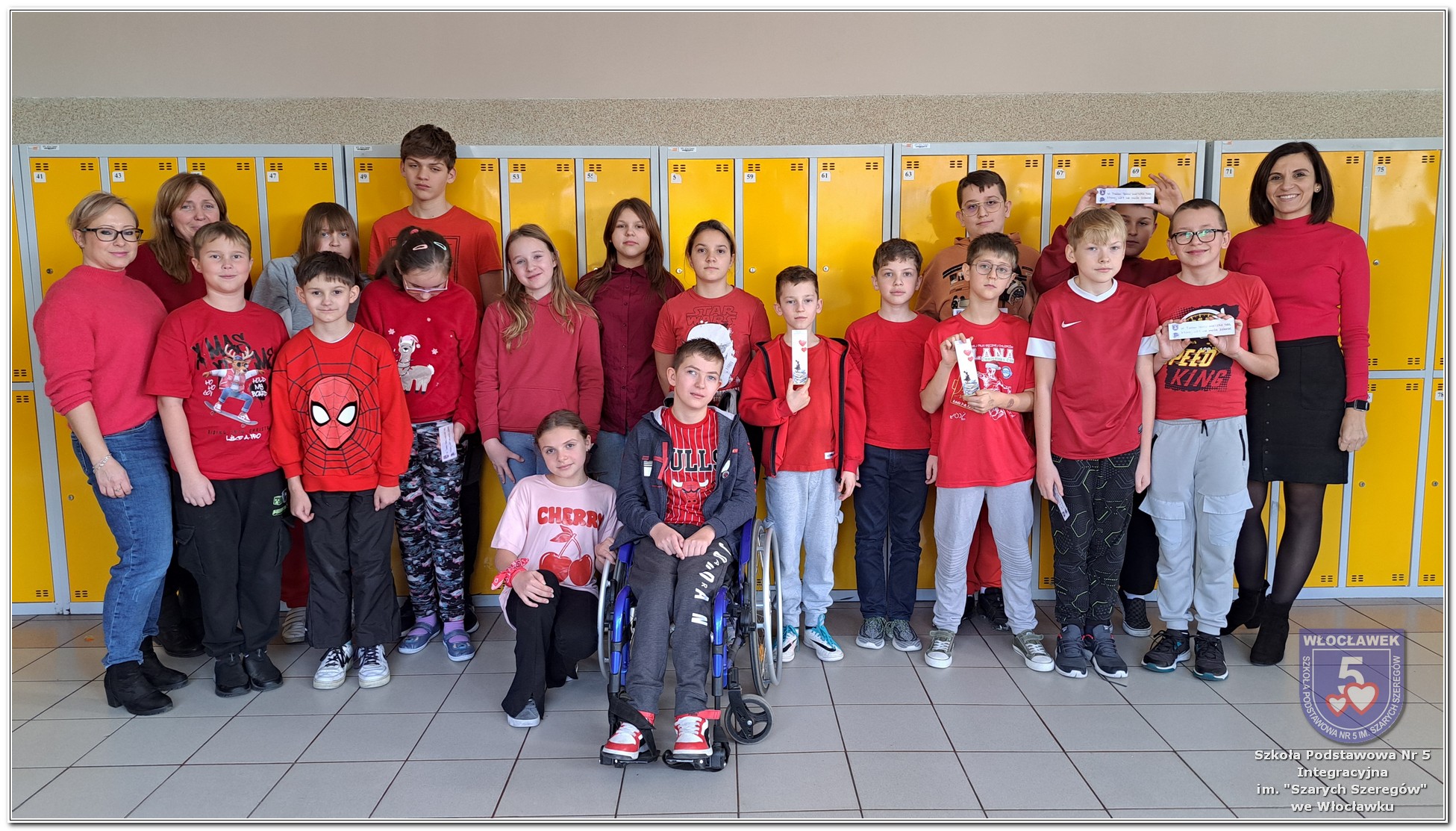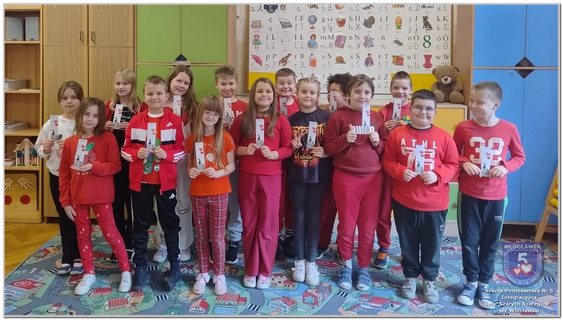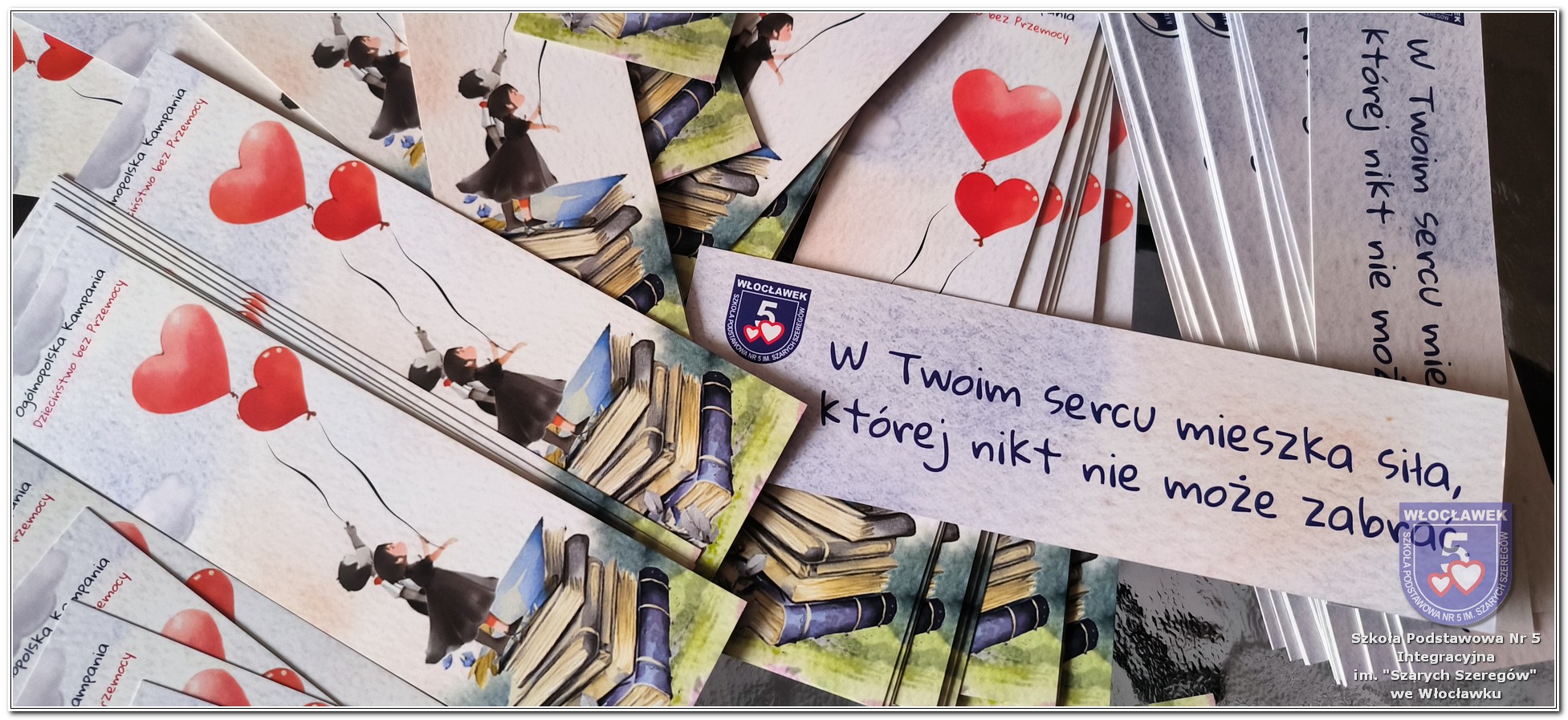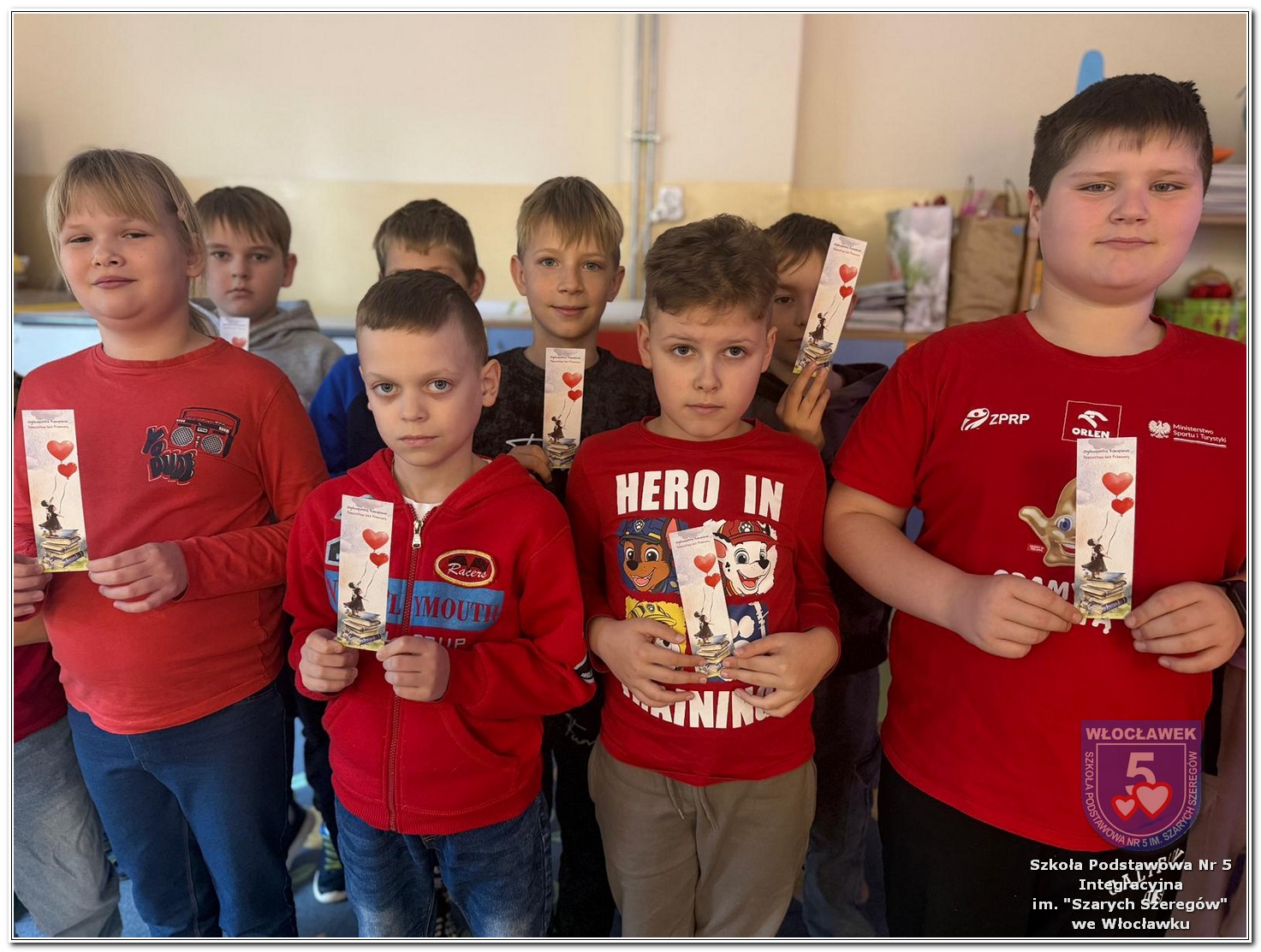 Kampania ,,Dzieciństwo bez przemocy” była kolejnym etapem szkolnych działań poświęconych tematyce przemocy. Po Tygodniu o Przeciwdziałaniu Przemocy Rówieśniczej przyszedł czas na gesty codzienne, symboliczne, wspólne – przypominające, że trzeba reagować, gdy dziecko doświadcza krzywdy. W klasach w dalszym ciągu trwają rozmowy i zajęcia poświęcone rozpoznawaniu przemocy i sposobom reagowania. Uczniowie znają sytuacje, w których nie wolno milczeć – wiedzą, jak reagować, gdzie szukać pomocy i jak wspierać osoby doświadczające krzywdy. Przekaz jest jasny: trzeba działać przeciwko przemocy – z odwagą, empatią i odpowiedzialnością. Młodsze dzieci przygotowały kolorowe serca – znak dziecięcej potrzeby bezpieczeństwa i bliskości. Serca ozbobiły gazetkę szkolną i stały się inspiracją do projektu muralu, który symbolicznie zakończył kampanię. Uczniowie włączyli się również w akcję ,,Listy Bezpiecznego Dzieciństwa” – rozdawali mieszkańcom lokalnej społeczności listy z ważnym przesłaniem. Każdy z nich był przypomnieniem, że dzieci mają prawo do szacunku, bezpieczeństwa i wolności od przemocy. Listy były apelem do dorosłych, by nie pozostawali obojętni – by reagowali, gdzy dziecku dzieje się krzywda. Na zakończenie akcji każdy uczeń otrzymał zakładkę do książki – drobny przedmiot, który ma przypominać o kampanii ,,Dzieciństwo bez przemocy”. Zakładka zostanie z dzieckiem na co dzień – jako cichy, ale trwały znak wspólnego sprzeciwku wobez przemocy. 19 listopada cała społeczność szkolna przyszła ubrana na czerwono. Ten kolor – symbol sprzeciwu wobec przemocy – towarzyszył również finałowi kampanii: prezentacji muralu i symbolicznemu podświetleniu szkoły na czerwono.