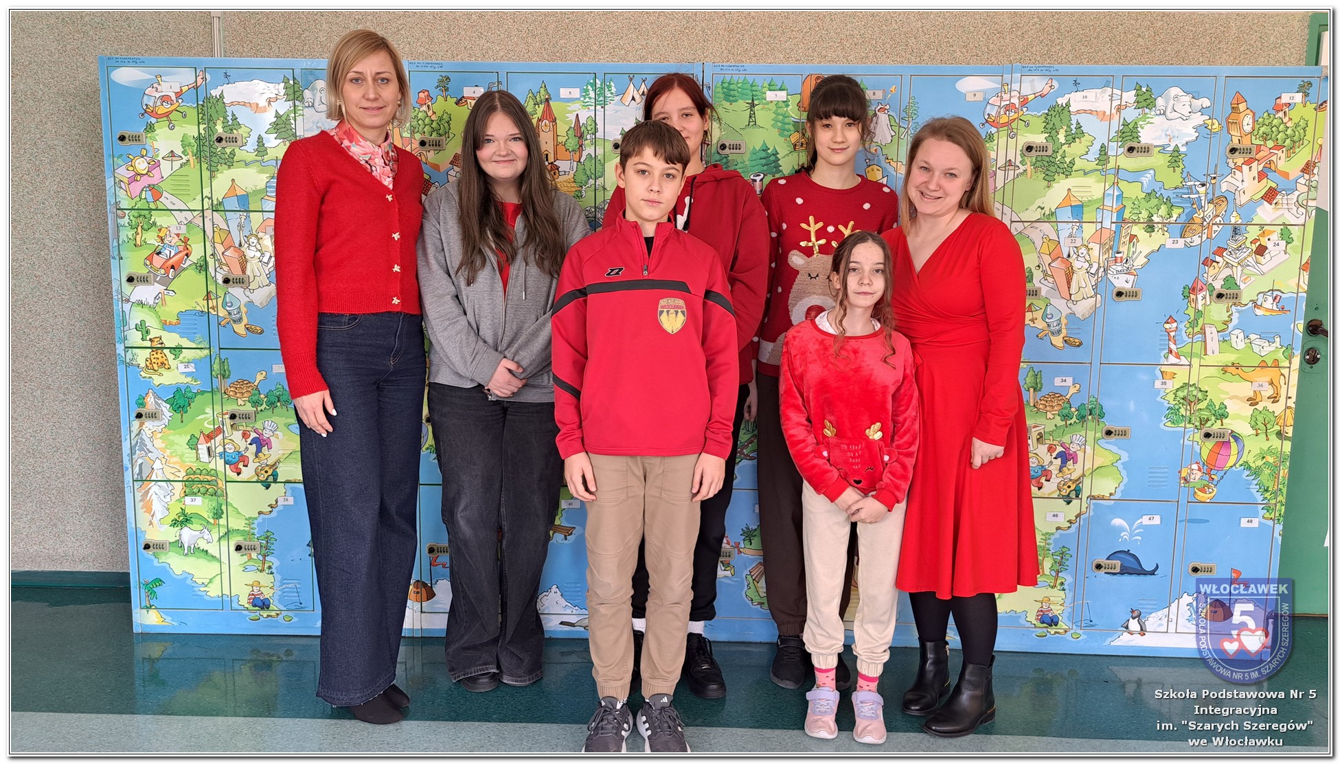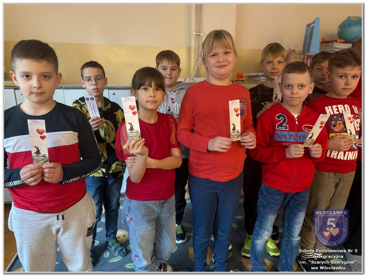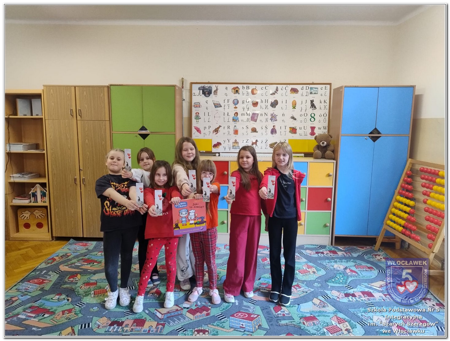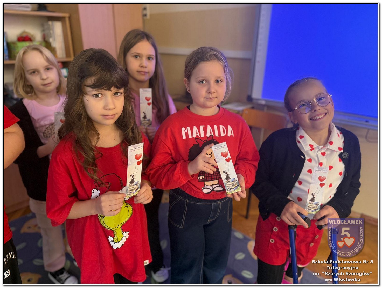 Kampania ,,Dzieciństwo bez przemocy” była kolejnym etapem szkolnych działań poświęconych tematyce przemocy. Po Tygodniu o Przeciwdziałaniu Przemocy Rówieśniczej przyszedł czas na gesty codzienne, symboliczne, wspólne – przypominające, że trzeba reagować, gdy dziecko doświadcza krzywdy. W klasach w dalszym ciągu trwają rozmowy i zajęcia poświęcone rozpoznawaniu przemocy i sposobom reagowania. Uczniowie znają sytuacje, w których nie wolno milczeć – wiedzą, jak reagować, gdzie szukać pomocy i jak wspierać osoby doświadczające krzywdy. Przekaz jest jasny: trzeba działać przeciwko przemocy – z odwagą, empatią i odpowiedzialnością. Młodsze dzieci przygotowały kolorowe serca – znak dziecięcej potrzeby bezpieczeństwa i bliskości. Serca ozbobiły gazetkę szkolną i stały się inspiracją do projektu muralu, który symbolicznie zakończył kampanię. Uczniowie włączyli się również w akcję ,,Listy Bezpiecznego Dzieciństwa” – rozdawali mieszkańcom lokalnej społeczności listy z ważnym przesłaniem. Każdy z nich był przypomnieniem, że dzieci mają prawo do szacunku, bezpieczeństwa i wolności od przemocy. Listy były apelem do dorosłych, by nie pozostawali obojętni – by reagowali, gdzy dziecku dzieje się krzywda. Na zakończenie akcji każdy uczeń otrzymał zakładkę do książki – drobny przedmiot, który ma przypominać o kampanii ,,Dzieciństwo bez przemocy”. Zakładka zostanie z dzieckiem na co dzień – jako cichy, ale trwały znak wspólnego sprzeciwku wobez przemocy. 19 listopada cała społeczność szkolna przyszła ubrana na czerwono. Ten kolor – symbol sprzeciwu wobec przemocy – towarzyszył również finałowi kampanii: prezentacji muralu i symbolicznemu podświetleniu szkoły na czerwono.