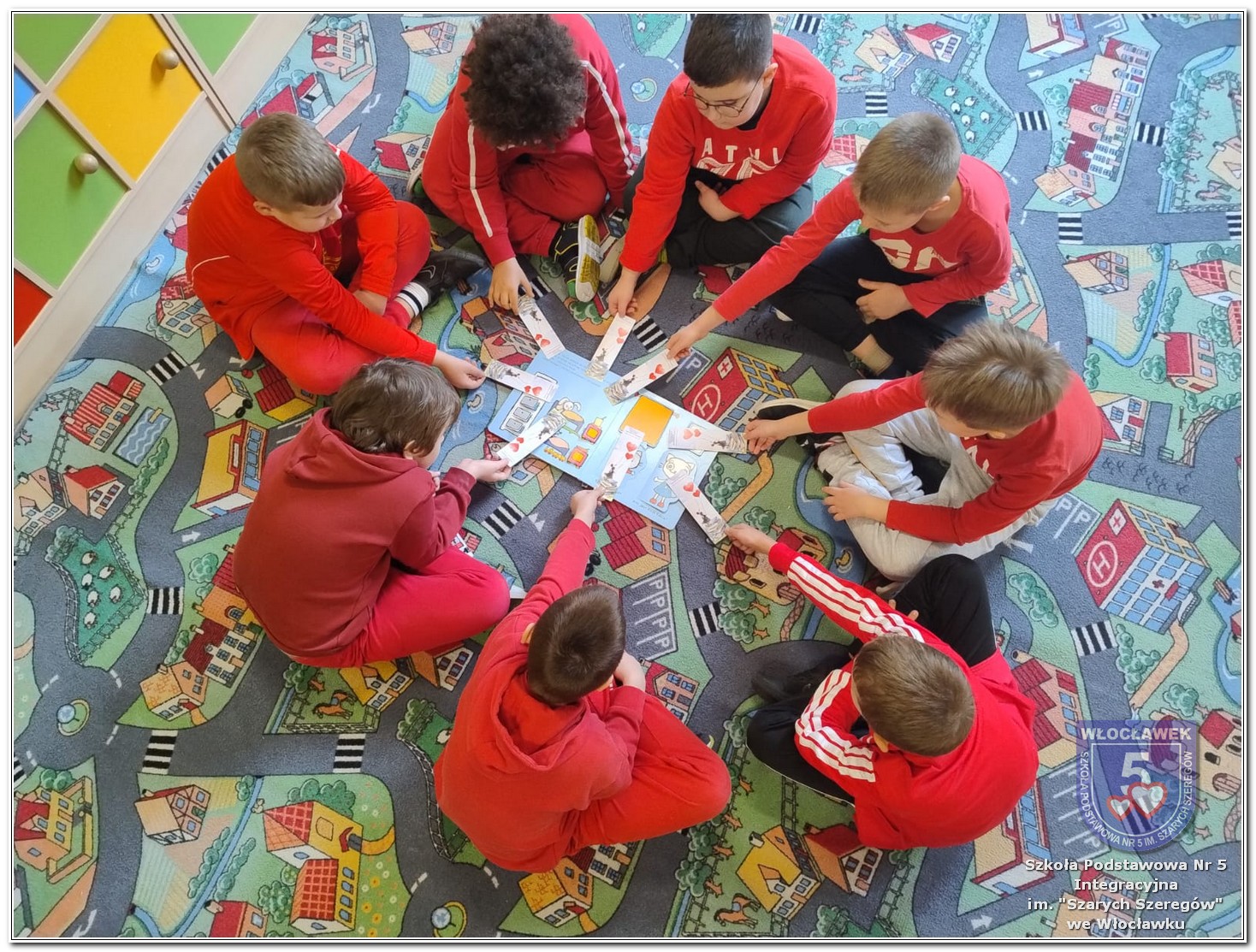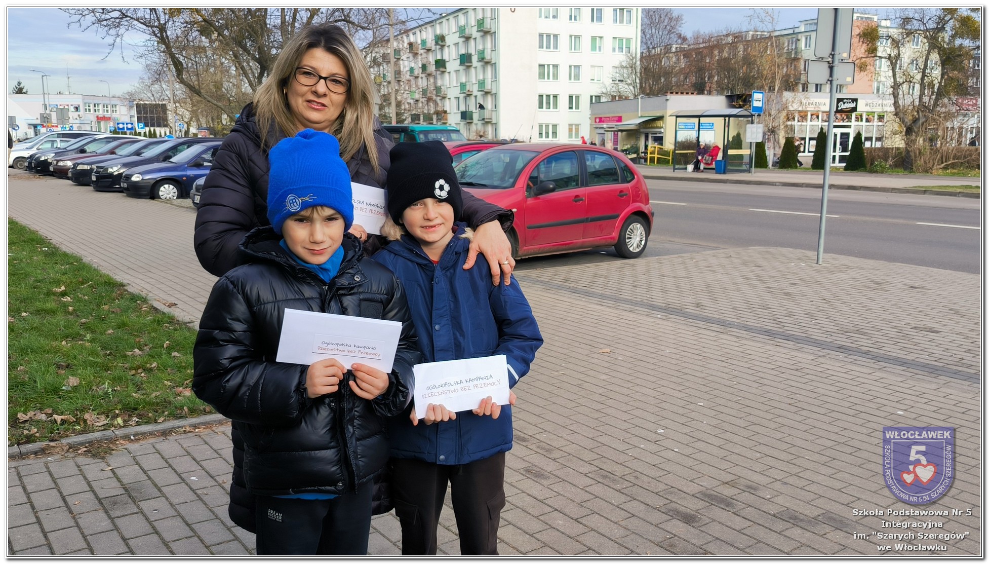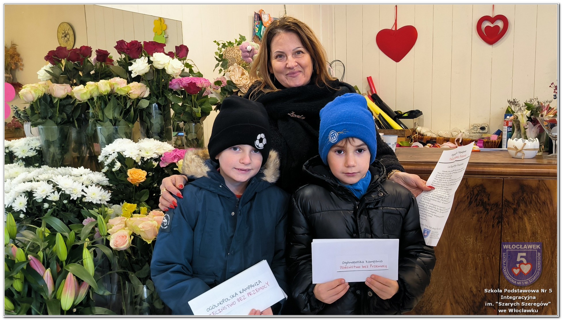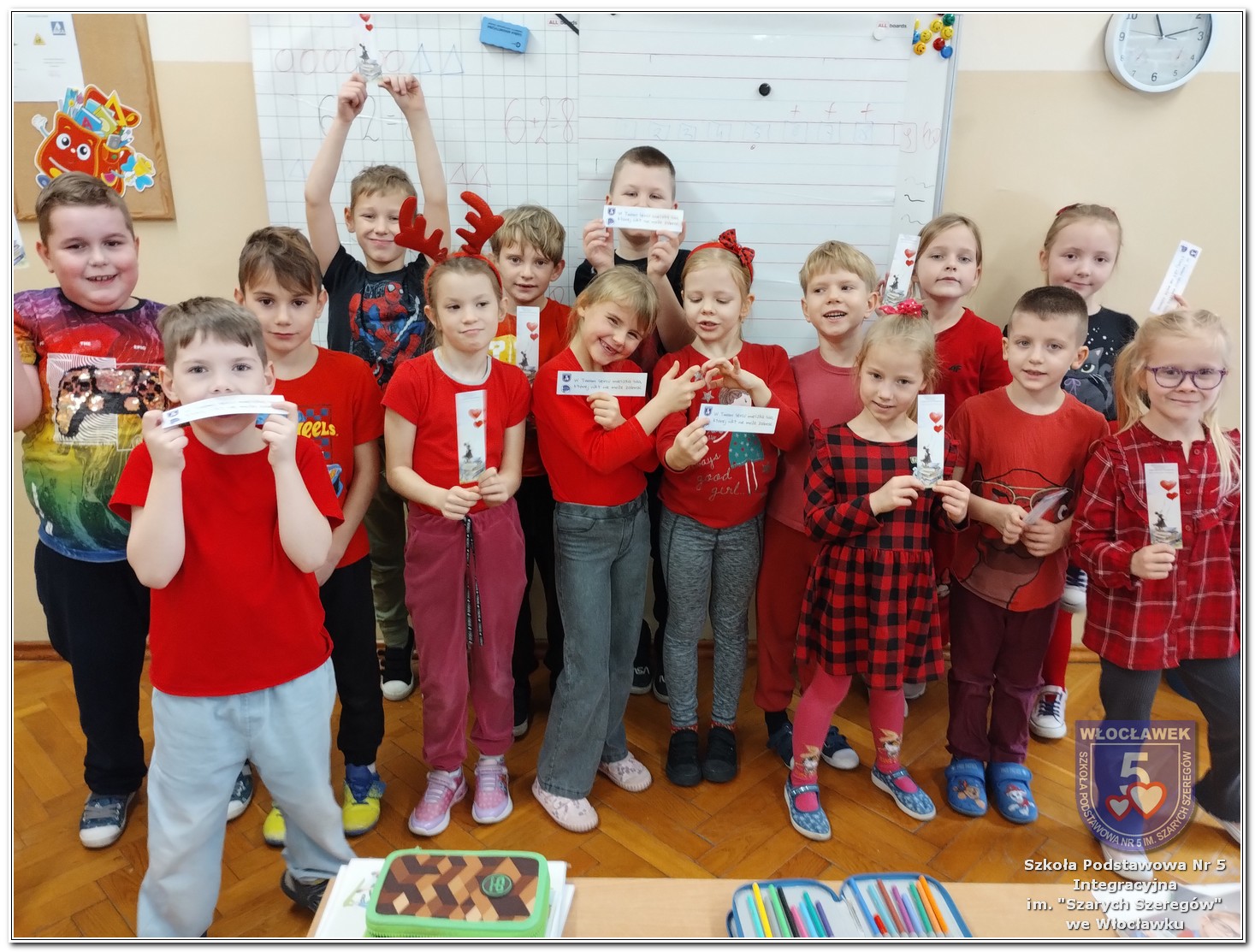 Kampania ,,Dzieciństwo bez przemocy” była kolejnym etapem szkolnych działań poświęconych tematyce przemocy. Po Tygodniu o Przeciwdziałaniu Przemocy Rówieśniczej przyszedł czas na gesty codzienne, symboliczne, wspólne – przypominające, że trzeba reagować, gdy dziecko doświadcza krzywdy. W klasach w dalszym ciągu trwają rozmowy i zajęcia poświęcone rozpoznawaniu przemocy i sposobom reagowania. Uczniowie znają sytuacje, w których nie wolno milczeć – wiedzą, jak reagować, gdzie szukać pomocy i jak wspierać osoby doświadczające krzywdy. Przekaz jest jasny: trzeba działać przeciwko przemocy – z odwagą, empatią i odpowiedzialnością. Młodsze dzieci przygotowały kolorowe serca – znak dziecięcej potrzeby bezpieczeństwa i bliskości. Serca ozbobiły gazetkę szkolną i stały się inspiracją do projektu muralu, który symbolicznie zakończył kampanię. Uczniowie włączyli się również w akcję ,,Listy Bezpiecznego Dzieciństwa” – rozdawali mieszkańcom lokalnej społeczności listy z ważnym przesłaniem. Każdy z nich był przypomnieniem, że dzieci mają prawo do szacunku, bezpieczeństwa i wolności od przemocy. Listy były apelem do dorosłych, by nie pozostawali obojętni – by reagowali, gdzy dziecku dzieje się krzywda. Na zakończenie akcji każdy uczeń otrzymał zakładkę do książki – drobny przedmiot, który ma przypominać o kampanii ,,Dzieciństwo bez przemocy”. Zakładka zostanie z dzieckiem na co dzień – jako cichy, ale trwały znak wspólnego sprzeciwku wobez przemocy. 19 listopada cała społeczność szkolna przyszła ubrana na czerwono. Ten kolor – symbol sprzeciwu wobec przemocy – towarzyszył również finałowi kampanii: prezentacji muralu i symbolicznemu podświetleniu szkoły na czerwono.
