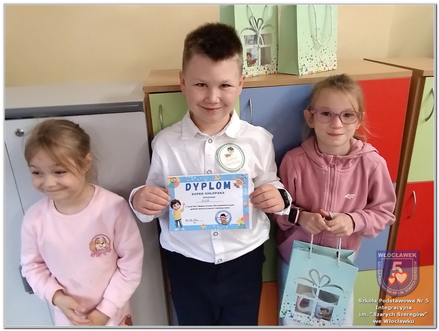 30 września w klasie 1b odchodziliśmy Dzień Chłopaka. Z tej okazji dziewczynki przygotowały dla swoich kolegów wyjątkową niespodziankę. Każdy chłopiec otrzymał kubek z własnym imieniem oraz dyplom „Super Chłopaka”. Spotkanie przebiegało w serdecznej i radosnej atmosferze, a chłopcy z wdzięcznością odwzajemnili gest, obdarowując koleżanki słodkim upominkiem i uśmiechem.