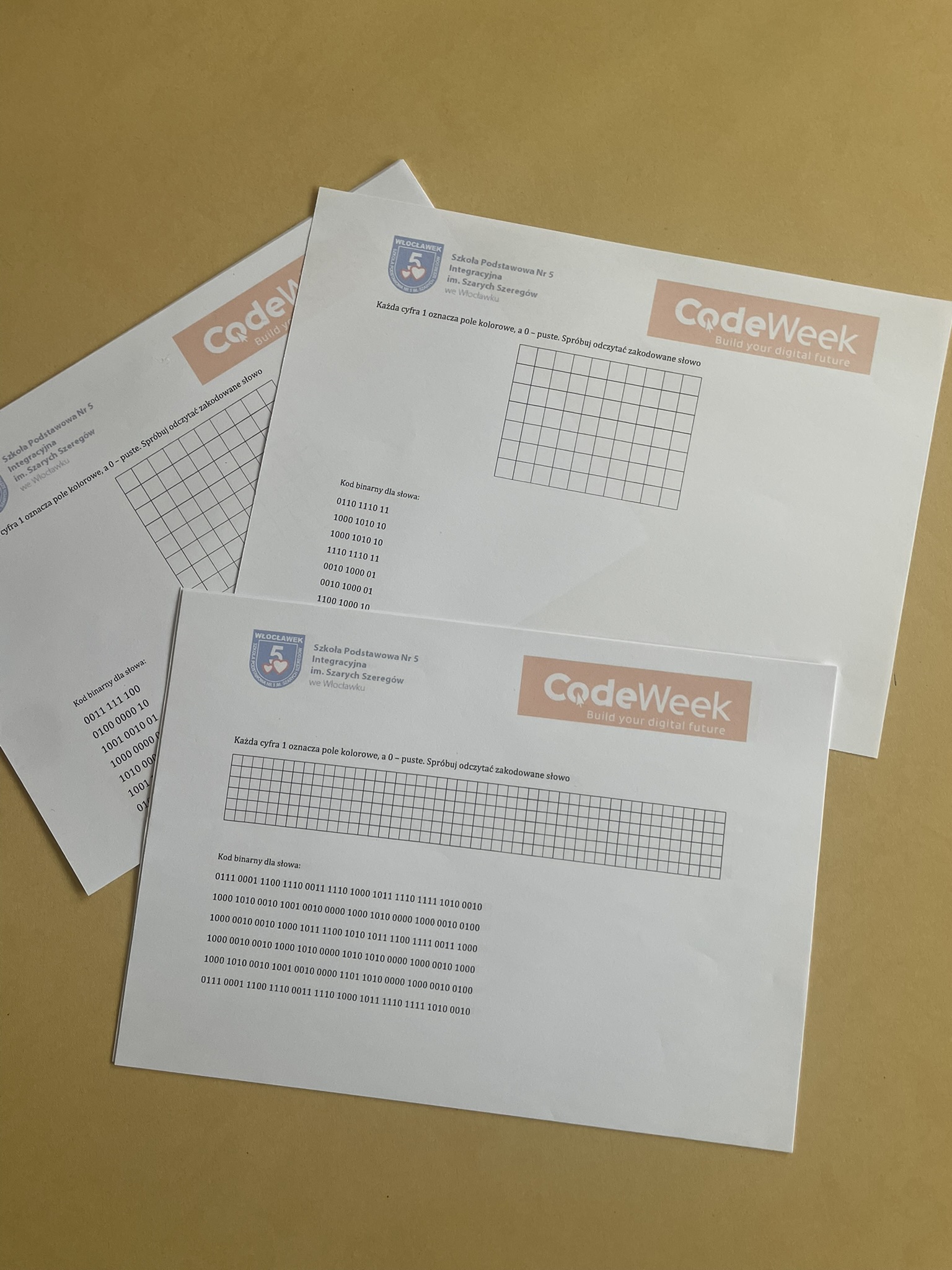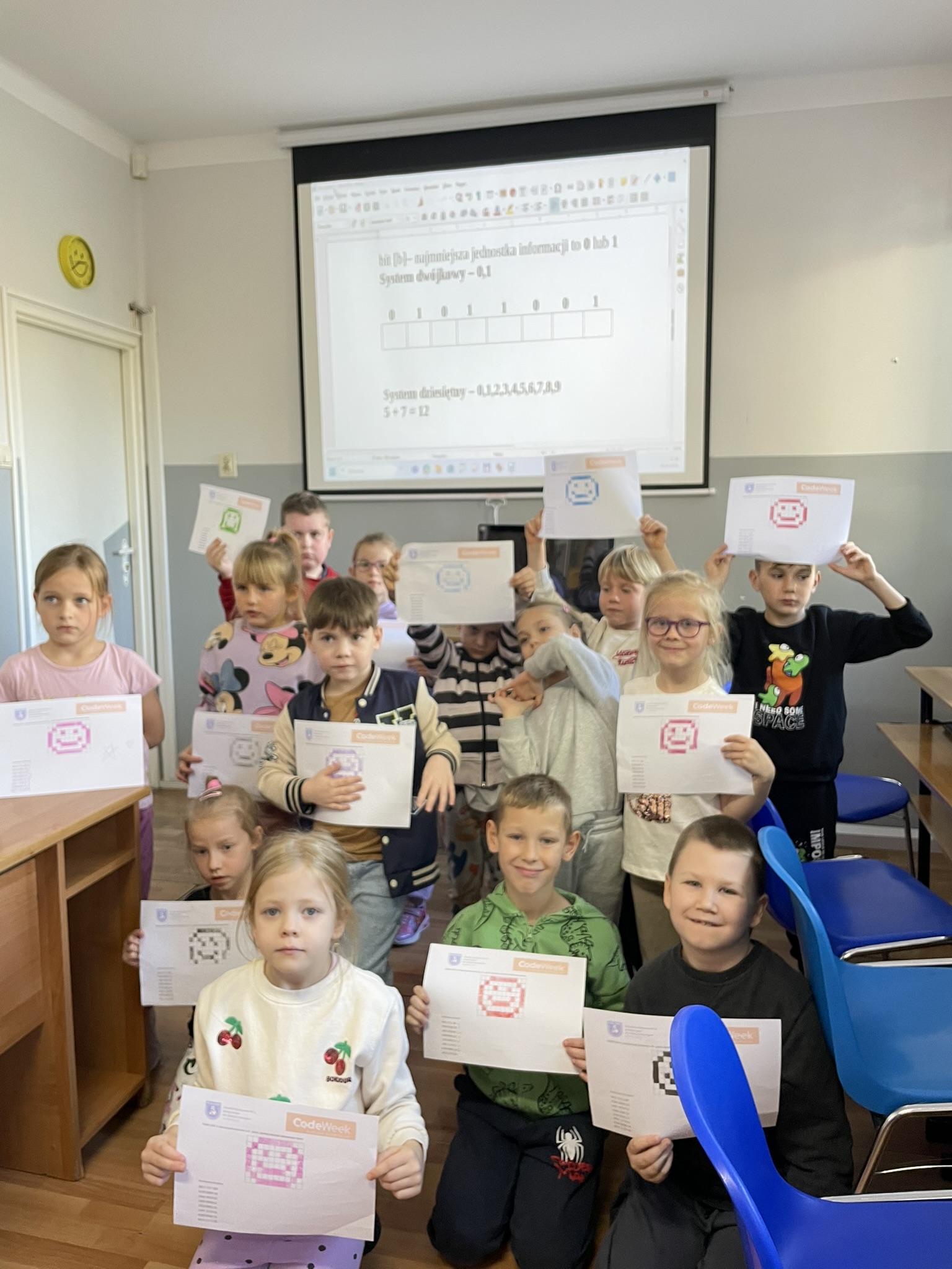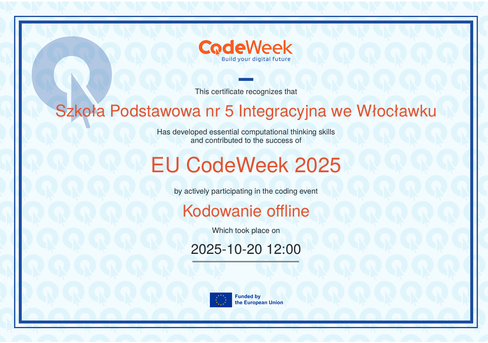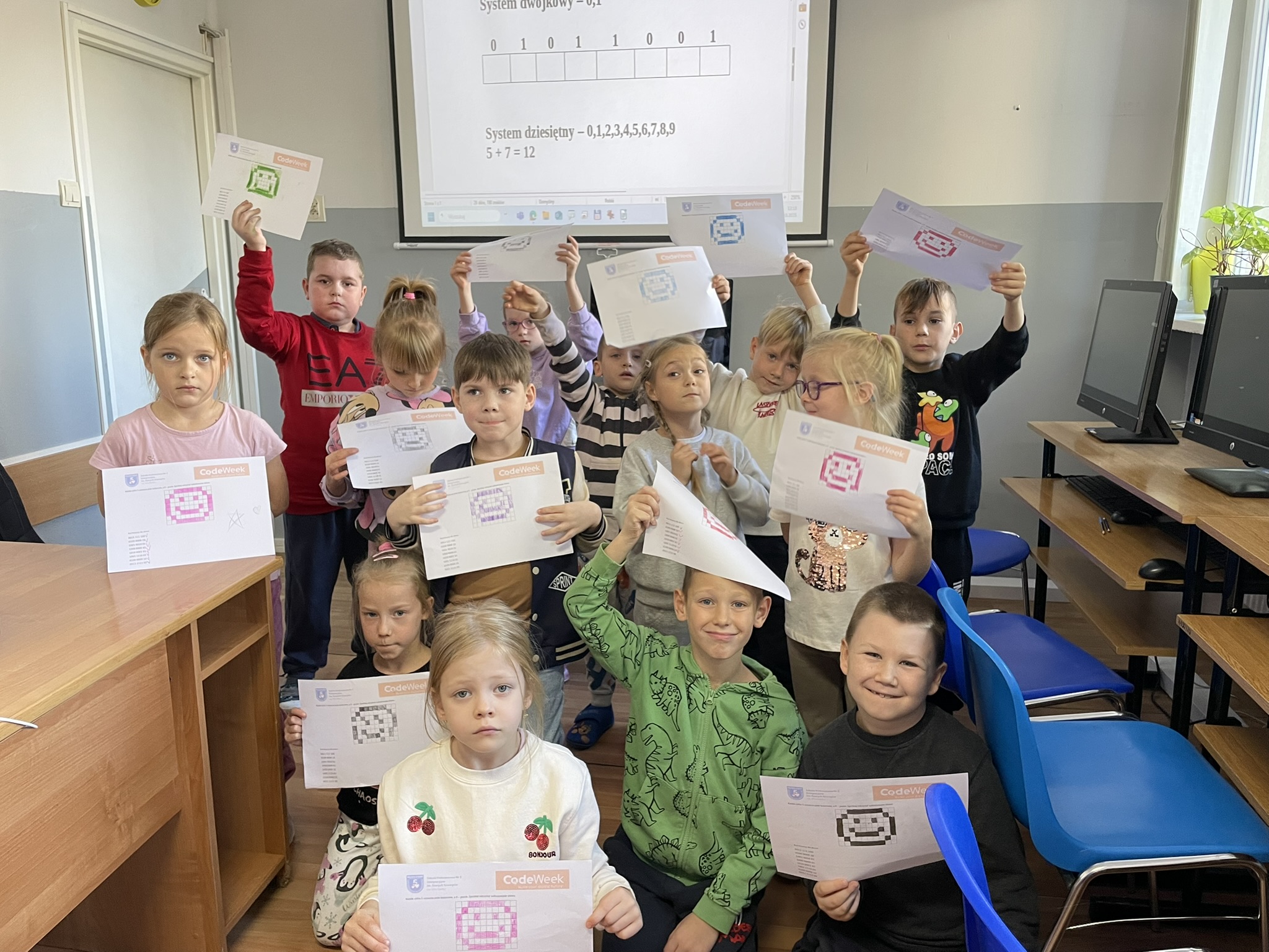 Październik to miesiąc, w którym odbywa się CodeWeek 2025 – europejskie święto programowania, mające na celu popularyzację nauki kodowania i rozwijanie kompetencji cyfrowych wśród dzieci i młodzieży. Uczniowie naszej szkoły aktywnie włączyli się w obchody Europejskich Dni Kodowania, które w tym roku trwały od 11 do 26 października. Podczas zajęć z edukacji informatycznej najmłodsi – uczniowie klas pierwszych i drugich – poznawali podstawy języka, w którym komunikują się urządzenia cyfrowe. Dzieci z zaangażowaniem dekodowały ciągi zero-jedynkowe na specjalnie przygotowanych kartach pracy, rozwijając przy tym umiejętność logicznego myślenia oraz podstawowe kompetencje programistyczne. Udział w wydarzeniu stanowił dla uczniów ciekawe wyzwanie i inspirujące doświadczenie. Dzięki zajęciom dzieci dowiedziały się, że procesor komputera, wykonując nasze polecenia, musi bezbłędnie przeprowadzać miliardy operacji, aby umożliwić działanie programów i aplikacji, z których korzystamy na co dzień.