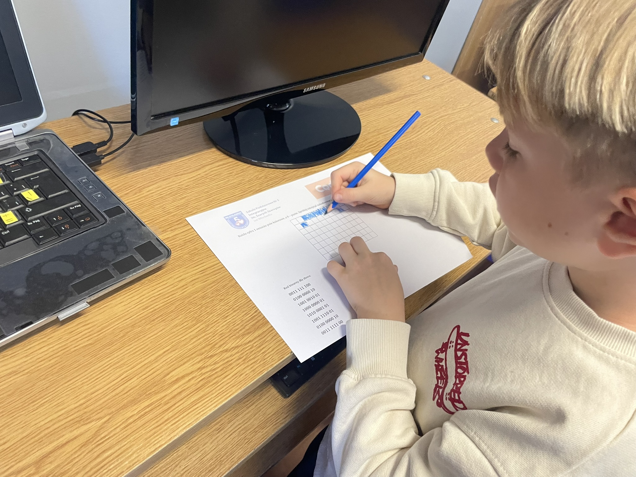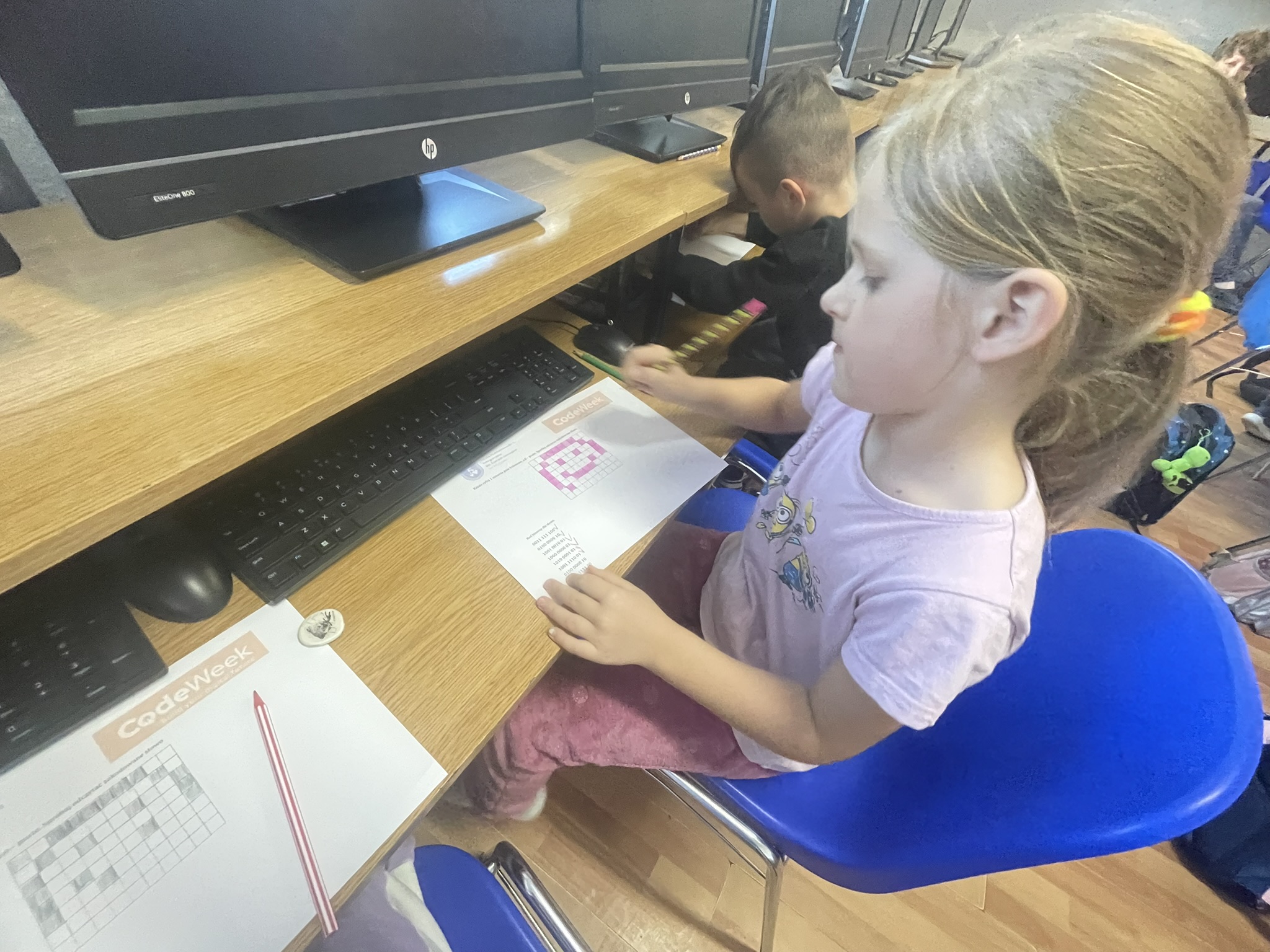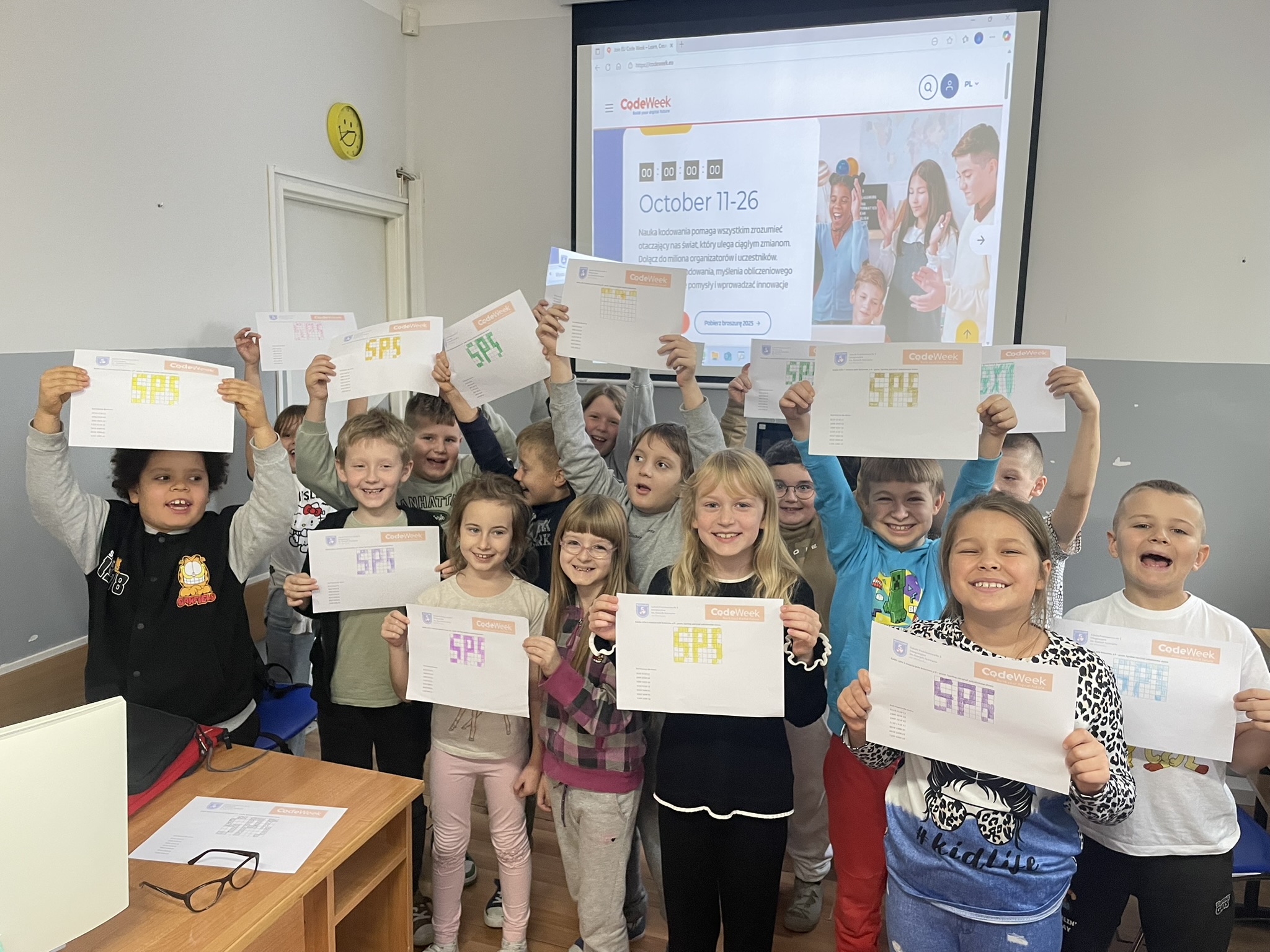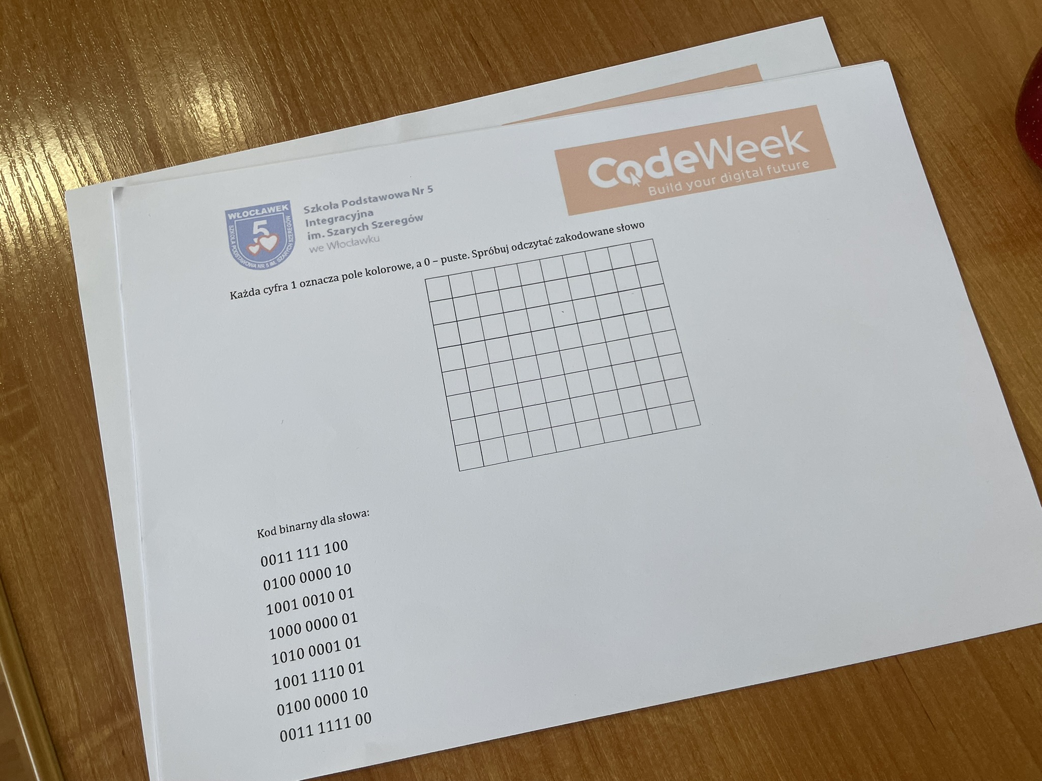 Październik to miesiąc, w którym odbywa się CodeWeek 2025 – europejskie święto programowania, mające na celu popularyzację nauki kodowania i rozwijanie kompetencji cyfrowych wśród dzieci i młodzieży. Uczniowie naszej szkoły aktywnie włączyli się w obchody Europejskich Dni Kodowania, które w tym roku trwały od 11 do 26 października. Podczas zajęć z edukacji informatycznej najmłodsi – uczniowie klas pierwszych i drugich – poznawali podstawy języka, w którym komunikują się urządzenia cyfrowe. Dzieci z zaangażowaniem dekodowały ciągi zero-jedynkowe na specjalnie przygotowanych kartach pracy, rozwijając przy tym umiejętność logicznego myślenia oraz podstawowe kompetencje programistyczne. Udział w wydarzeniu stanowił dla uczniów ciekawe wyzwanie i inspirujące doświadczenie. Dzięki zajęciom dzieci dowiedziały się, że procesor komputera, wykonując nasze polecenia, musi bezbłędnie przeprowadzać miliardy operacji, aby umożliwić działanie programów i aplikacji, z których korzystamy na co dzień.