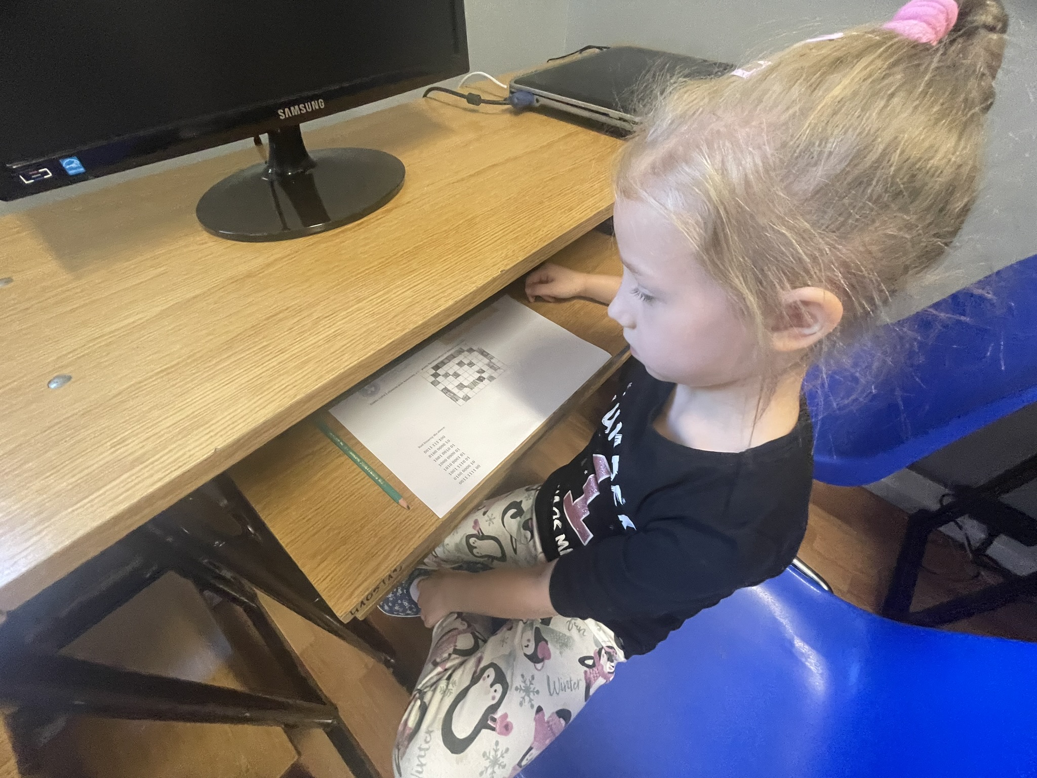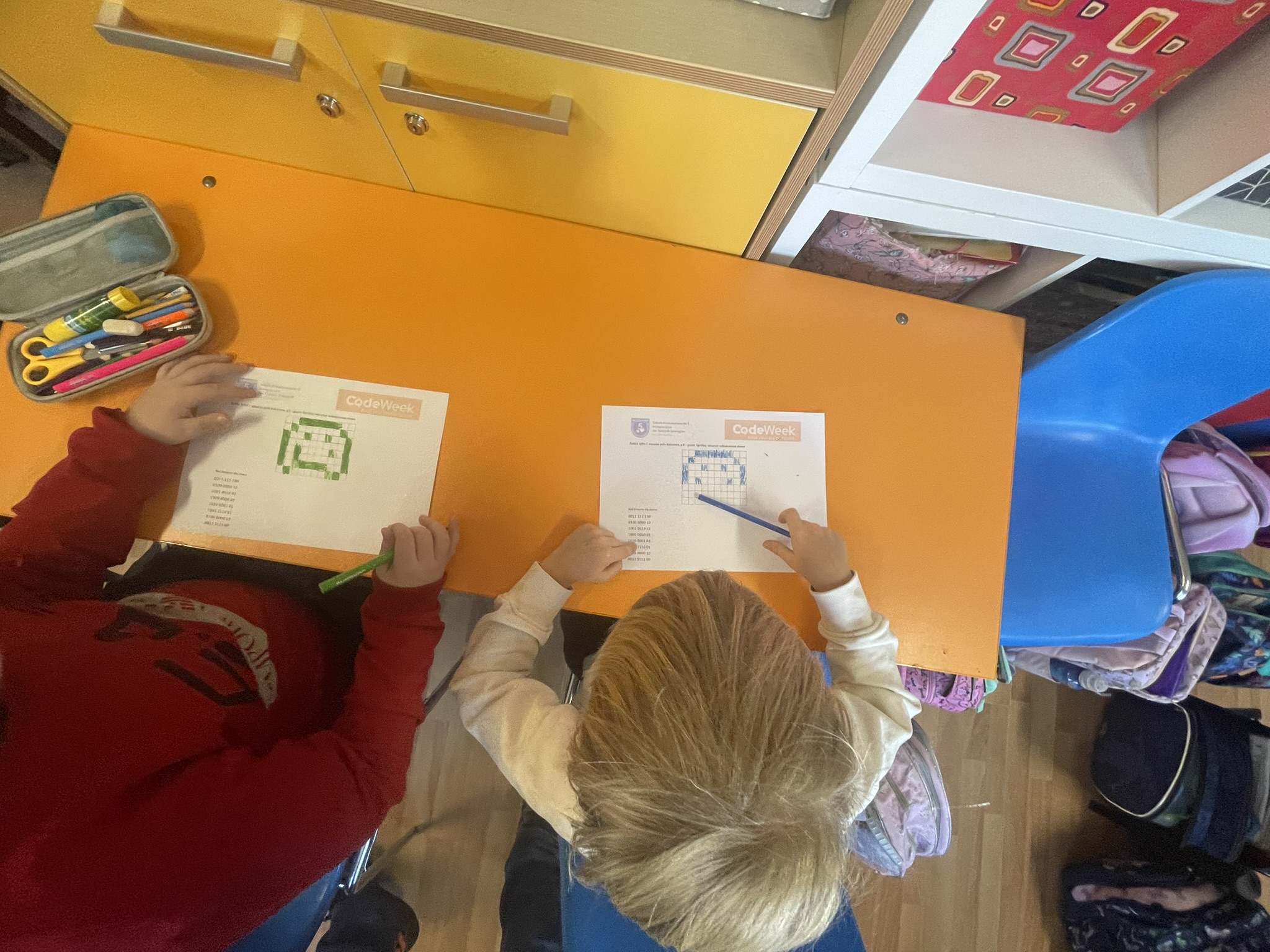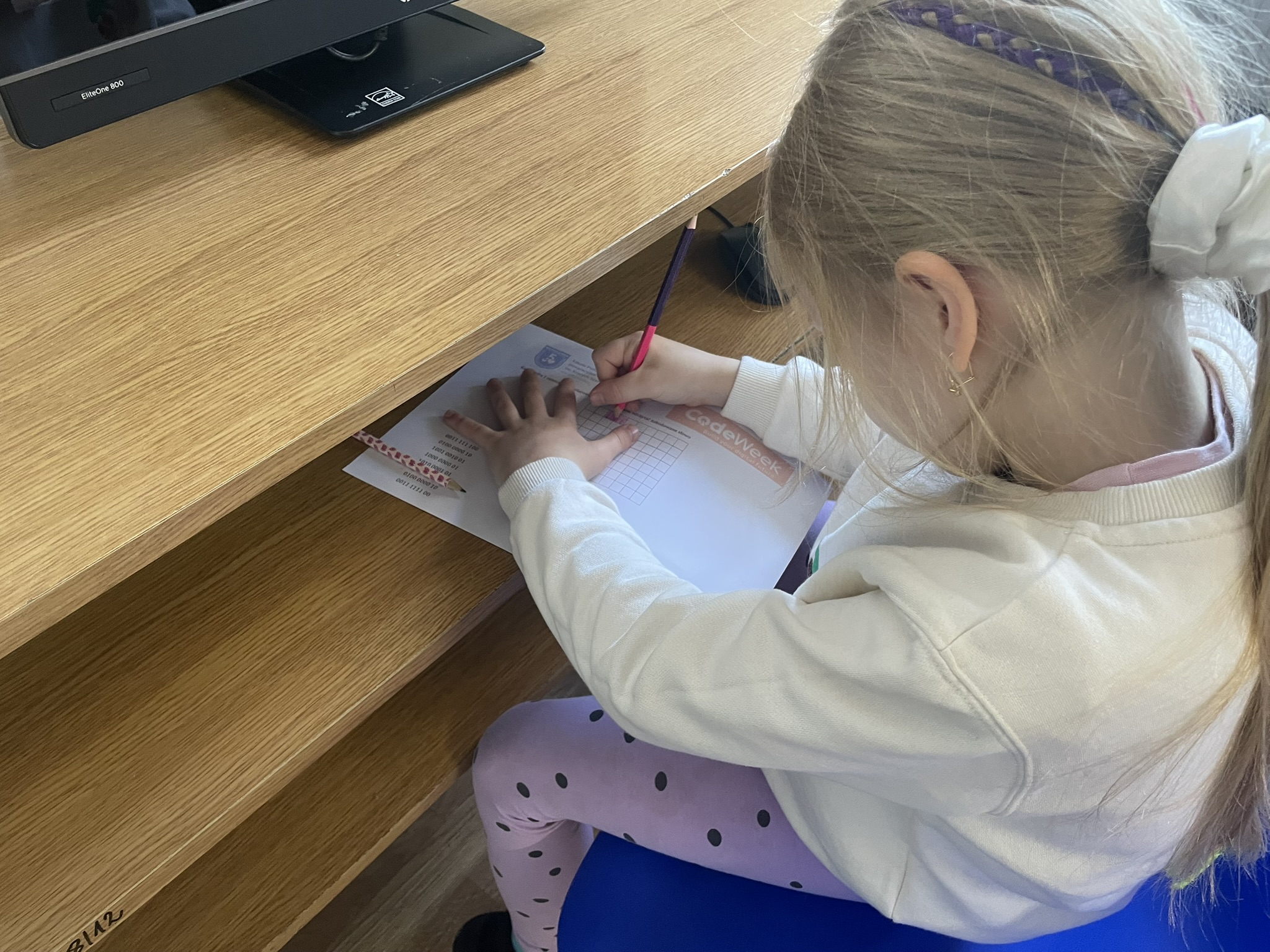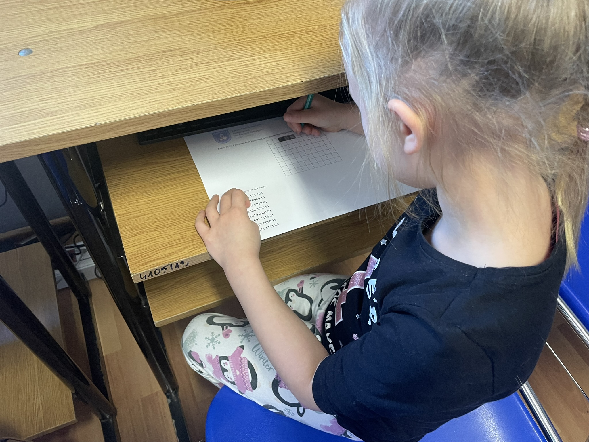 Październik to miesiąc, w którym odbywa się CodeWeek 2025 – europejskie święto programowania, mające na celu popularyzację nauki kodowania i rozwijanie kompetencji cyfrowych wśród dzieci i młodzieży. Uczniowie naszej szkoły aktywnie włączyli się w obchody Europejskich Dni Kodowania, które w tym roku trwały od 11 do 26 października. Podczas zajęć z edukacji informatycznej najmłodsi – uczniowie klas pierwszych i drugich – poznawali podstawy języka, w którym komunikują się urządzenia cyfrowe. Dzieci z zaangażowaniem dekodowały ciągi zero-jedynkowe na specjalnie przygotowanych kartach pracy, rozwijając przy tym umiejętność logicznego myślenia oraz podstawowe kompetencje programistyczne. Udział w wydarzeniu stanowił dla uczniów ciekawe wyzwanie i inspirujące doświadczenie. Dzięki zajęciom dzieci dowiedziały się, że procesor komputera, wykonując nasze polecenia, musi bezbłędnie przeprowadzać miliardy operacji, aby umożliwić działanie programów i aplikacji, z których korzystamy na co dzień.