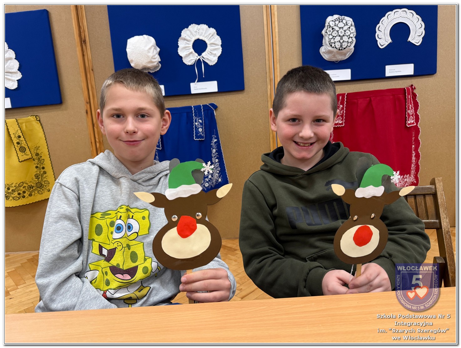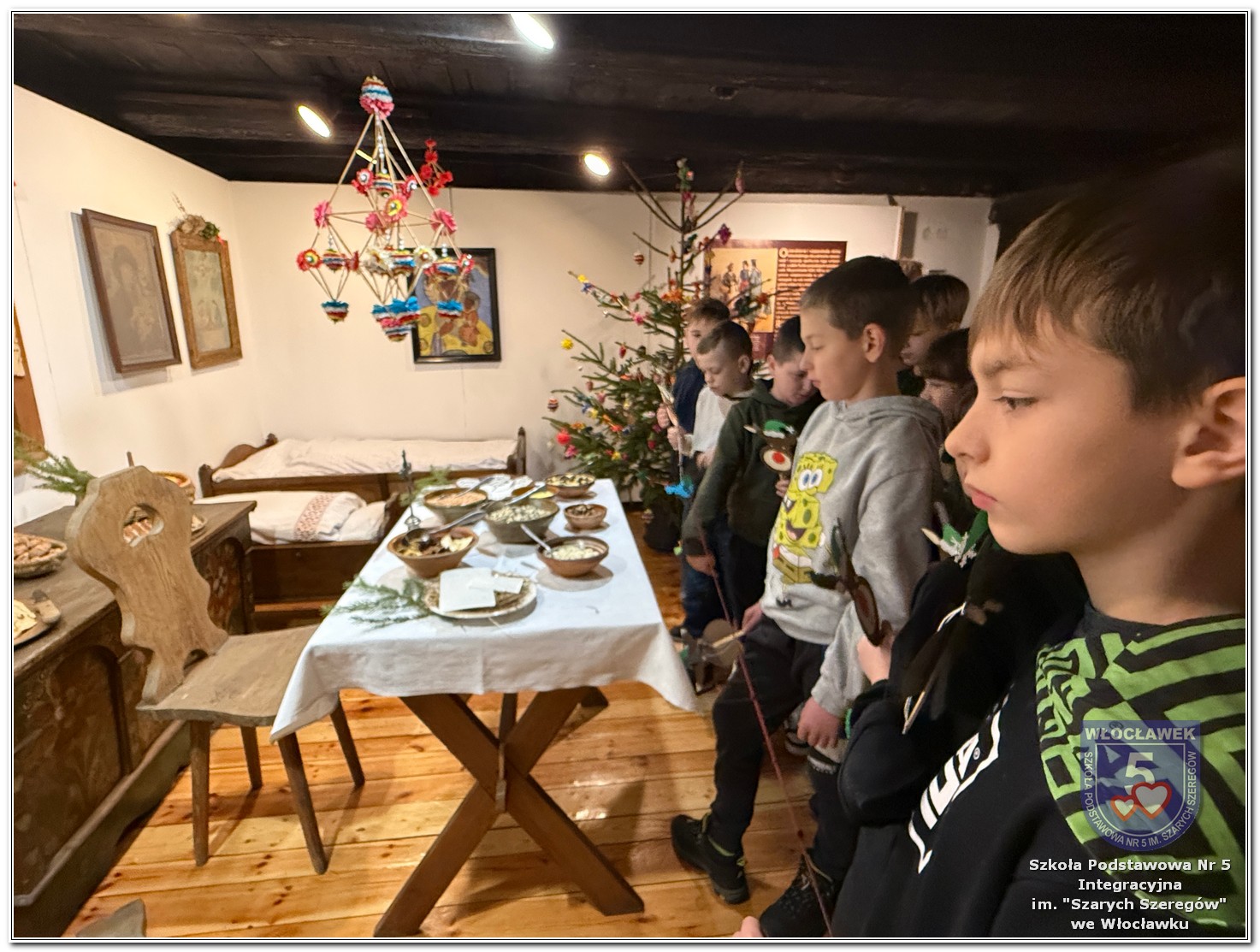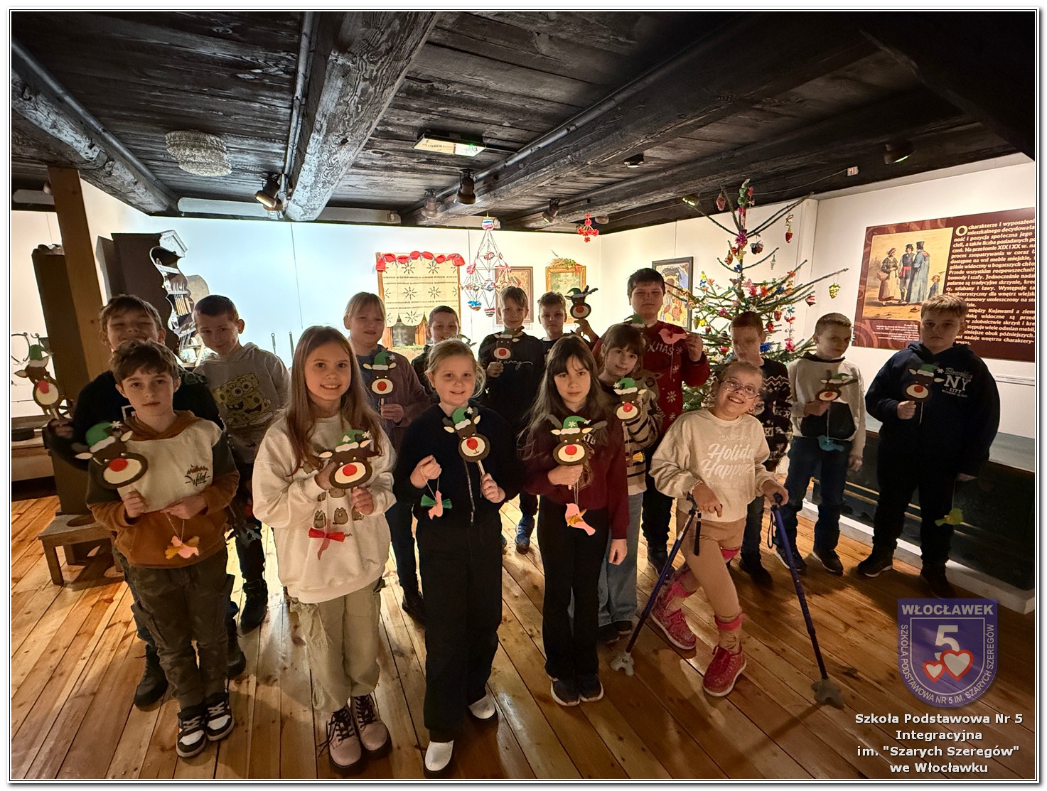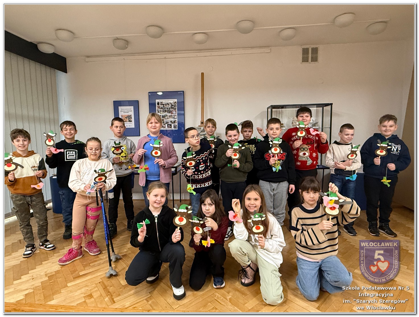 W ostatnim tygodniu nauki uczniowie klasy 3b uczestniczyli w zajęciach przygotowujących do Świąt Bożego Narodzenia, realizowanych w ramach projektu „Mali detektywi na tropie polskich tradycji”. Pierwszym zadaniem projektowym było poznanie tradycji związanych ze Świętami Bożego Narodzenia. W ramach tych działań w naszej klasie gościliśmy Panią z Centrum Edukacji Ekologicznej, która opowiedziała dzieciom o świątecznych zwyczajach, a następnie wspólnie z uczniami wykonała świąteczne świeczki. Kolejnym punktem były warsztaty bożonarodzeniowe w Muzeum Etnograficznym. Podczas zajęć dzieci poznały dawne tradycje świąteczne Kujaw oraz wykonały własnoręcznie świąteczne ozdoby – ptaszka na choinkę oraz renifera. Na zakończenie uczniowie udali się na wystawę, gdzie mogli zobaczyć, jak dawniej ozdabiano kujawską izbę na czas Świąt Bożego Narodzenia. Zajęcia były ciekawym i wartościowym doświadczeniem, które pozwoliło dzieciom lepiej poznać świąteczne tradycje i zwyczaje.