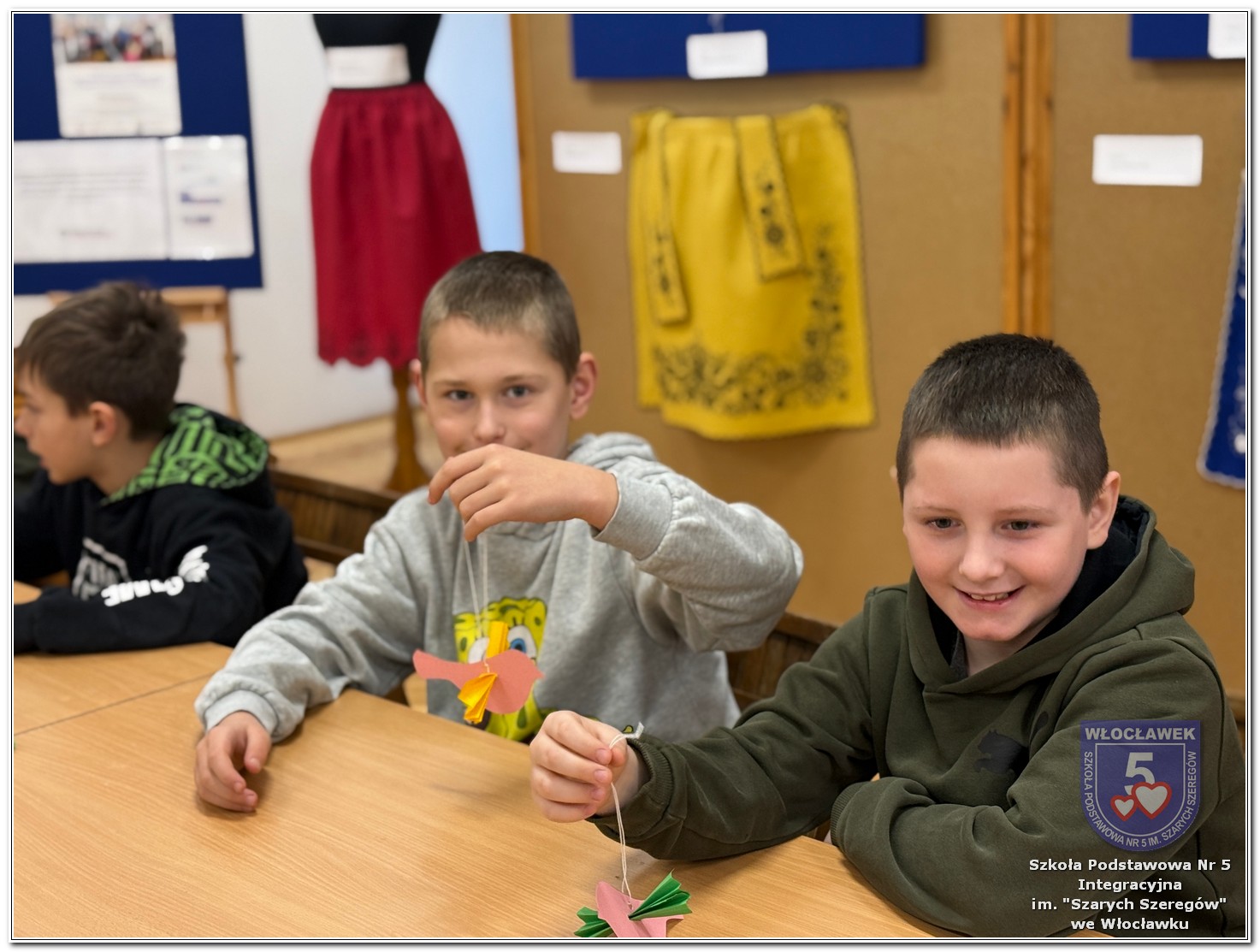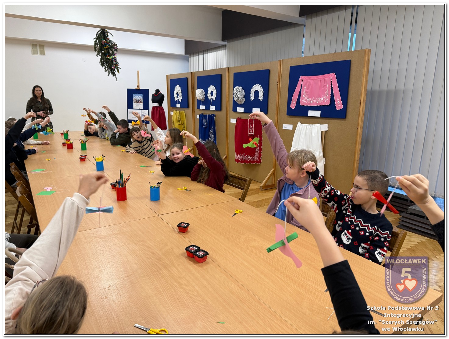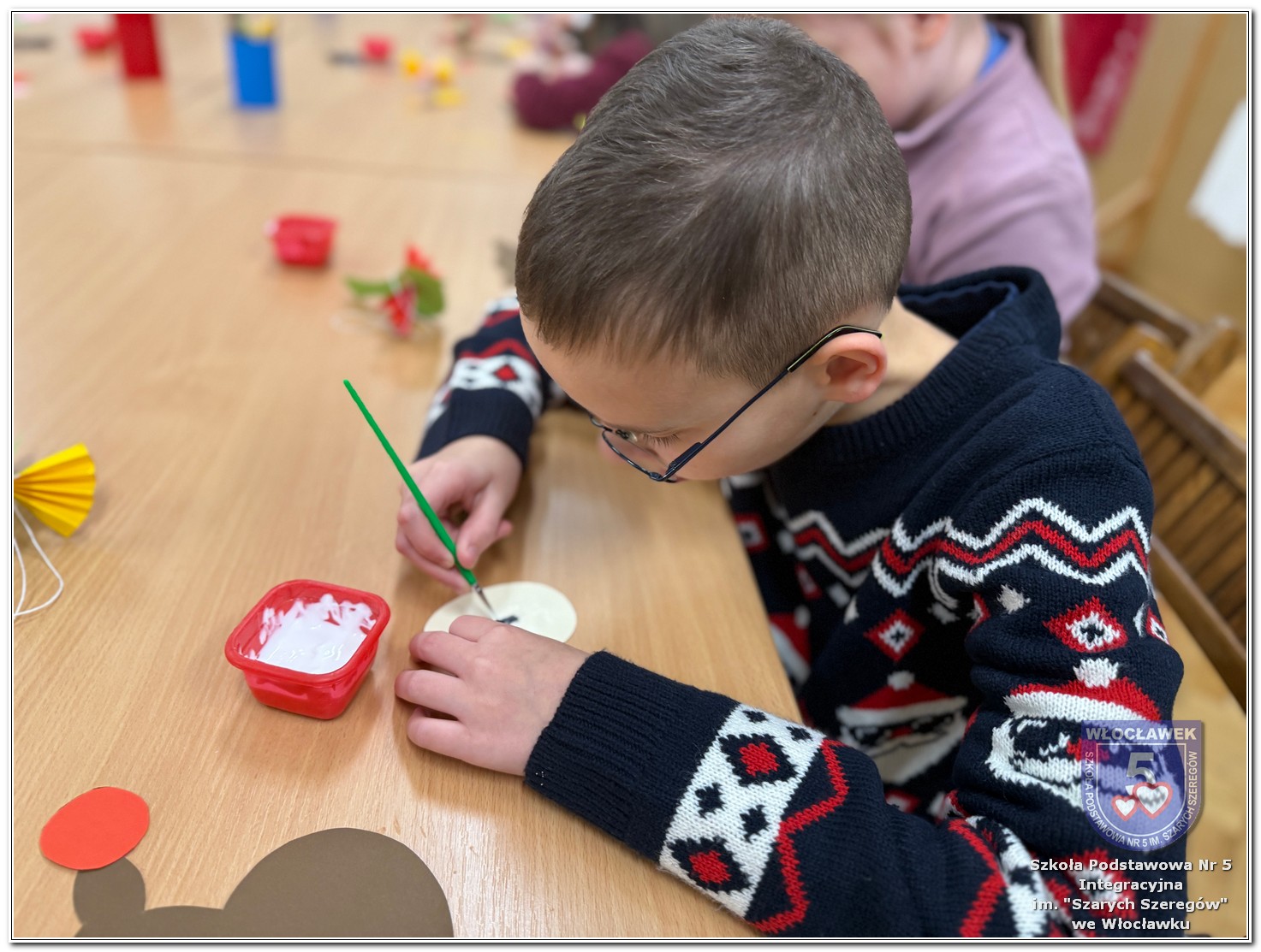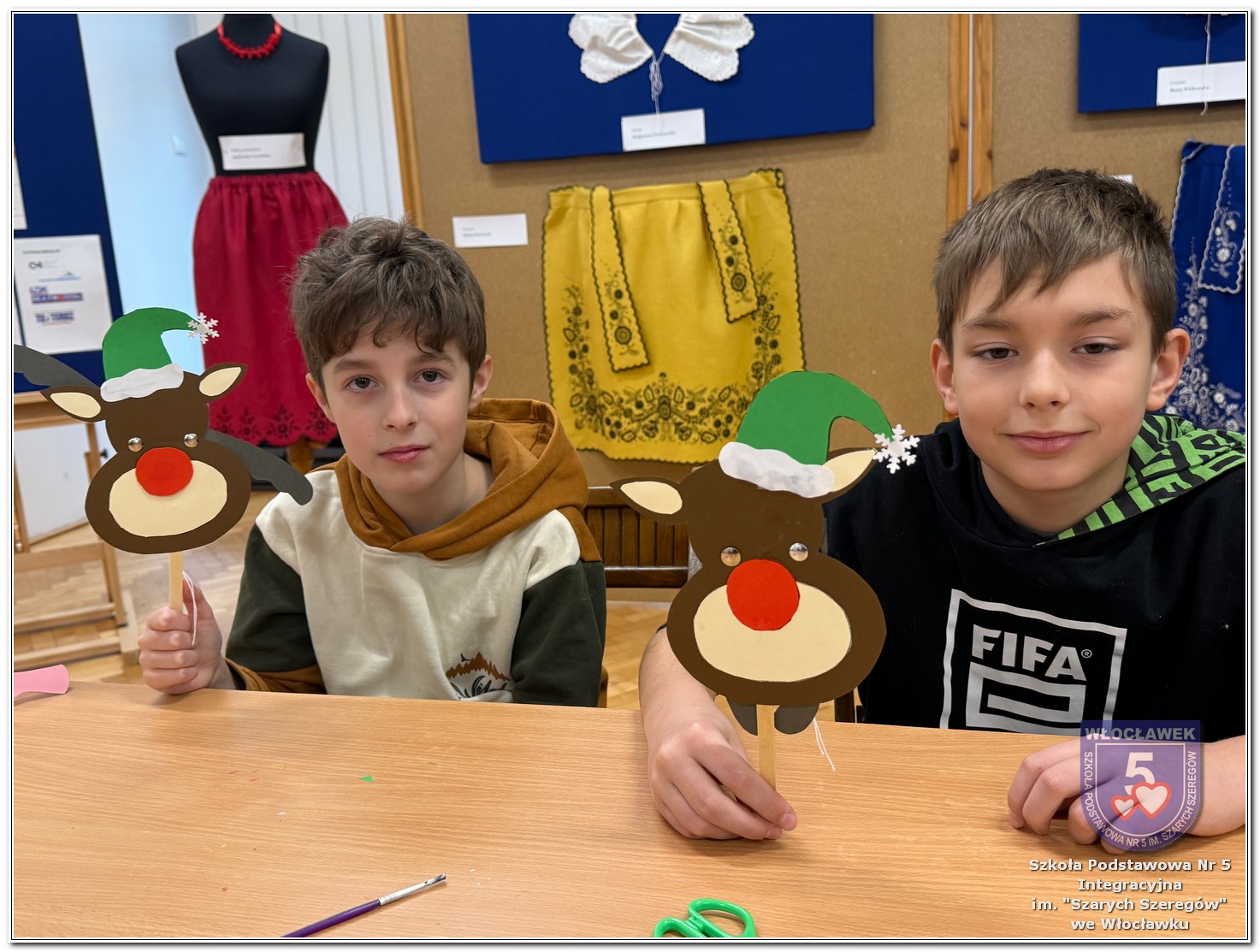 W ostatnim tygodniu nauki uczniowie klasy 3b uczestniczyli w zajęciach przygotowujących do Świąt Bożego Narodzenia, realizowanych w ramach projektu „Mali detektywi na tropie polskich tradycji”. Pierwszym zadaniem projektowym było poznanie tradycji związanych ze Świętami Bożego Narodzenia. W ramach tych działań w naszej klasie gościliśmy Panią z Centrum Edukacji Ekologicznej, która opowiedziała dzieciom o świątecznych zwyczajach, a następnie wspólnie z uczniami wykonała świąteczne świeczki. Kolejnym punktem były warsztaty bożonarodzeniowe w Muzeum Etnograficznym. Podczas zajęć dzieci poznały dawne tradycje świąteczne Kujaw oraz wykonały własnoręcznie świąteczne ozdoby – ptaszka na choinkę oraz renifera. Na zakończenie uczniowie udali się na wystawę, gdzie mogli zobaczyć, jak dawniej ozdabiano kujawską izbę na czas Świąt Bożego Narodzenia. Zajęcia były ciekawym i wartościowym doświadczeniem, które pozwoliło dzieciom lepiej poznać świąteczne tradycje i zwyczaje.