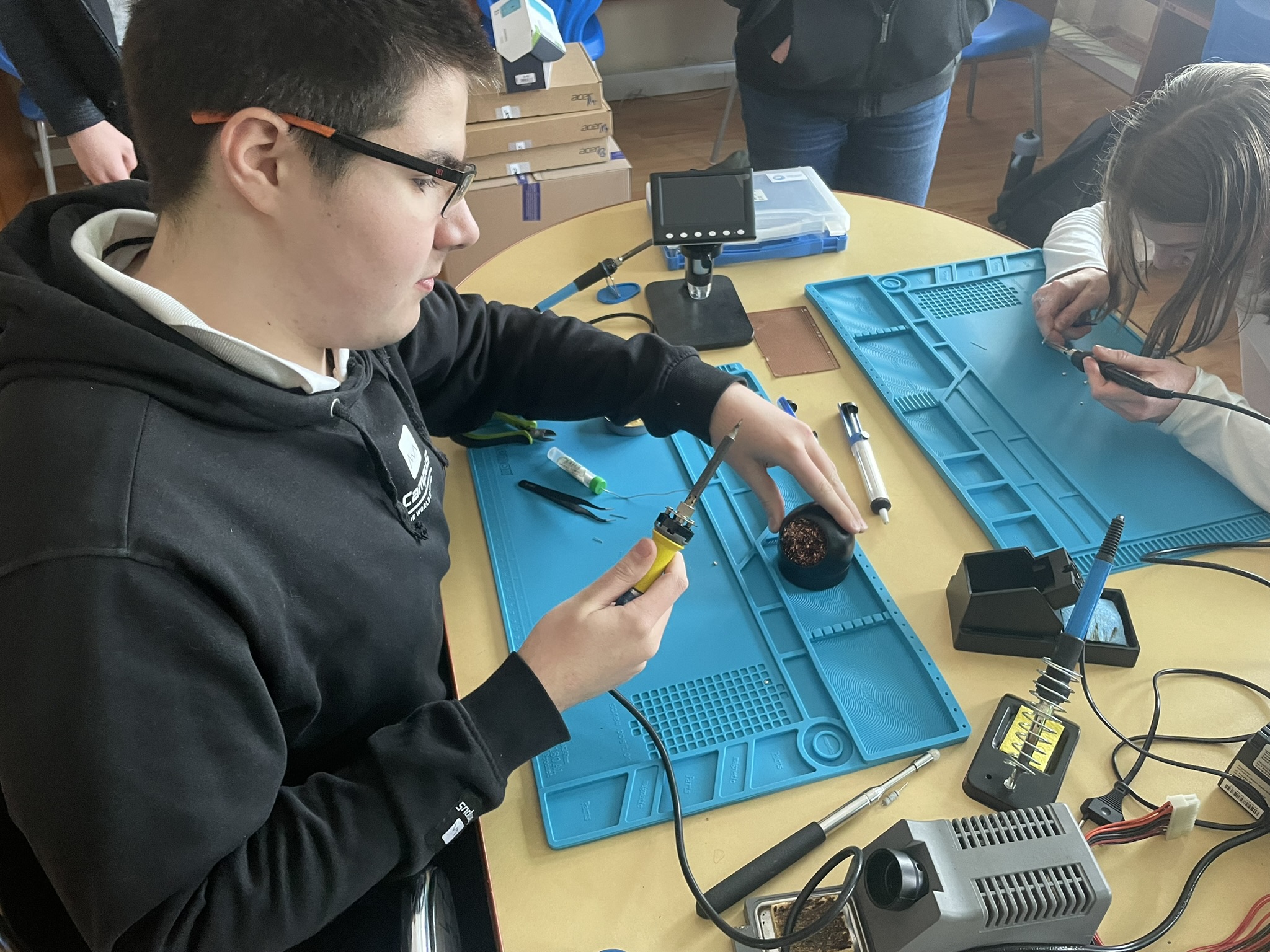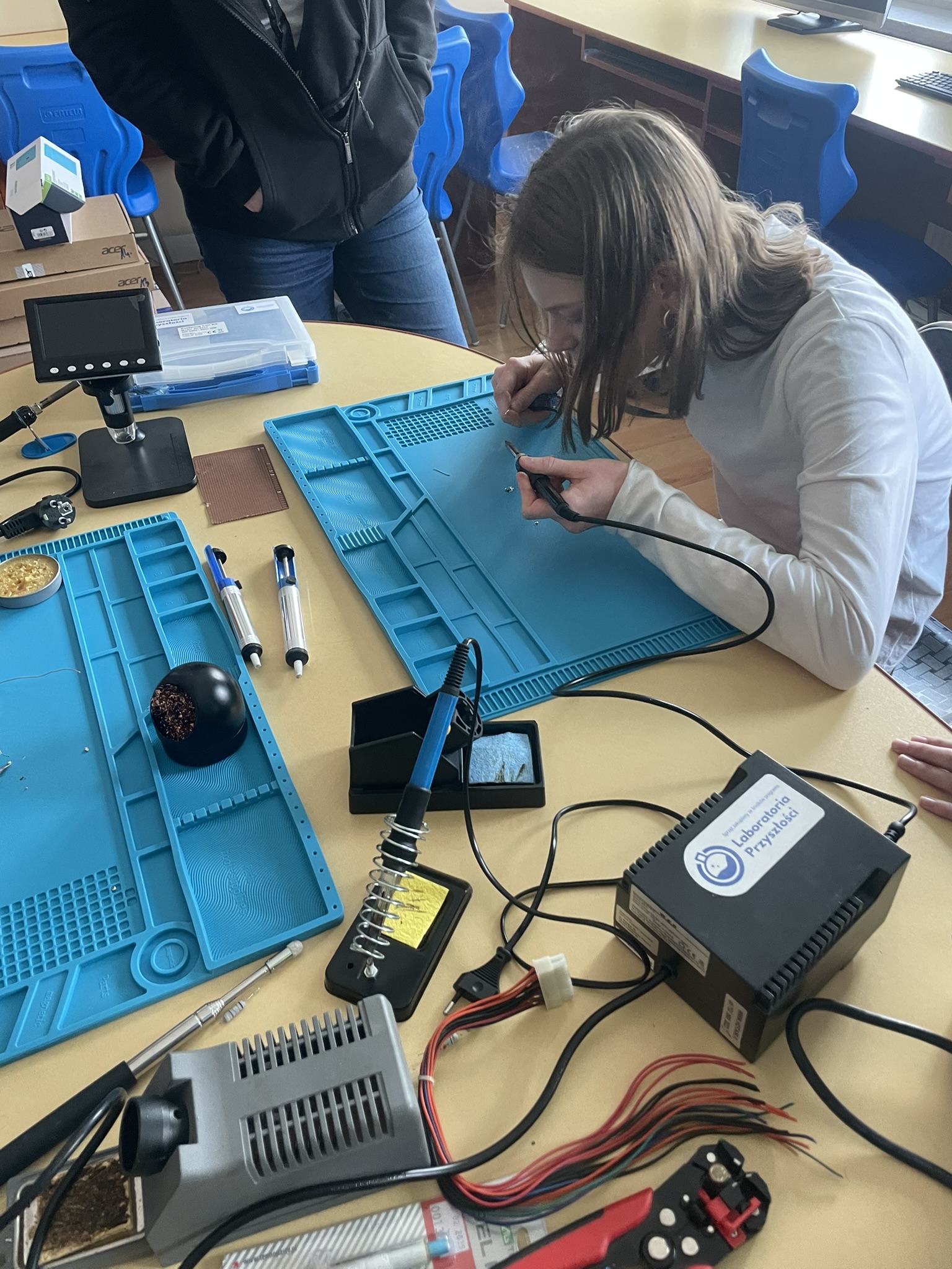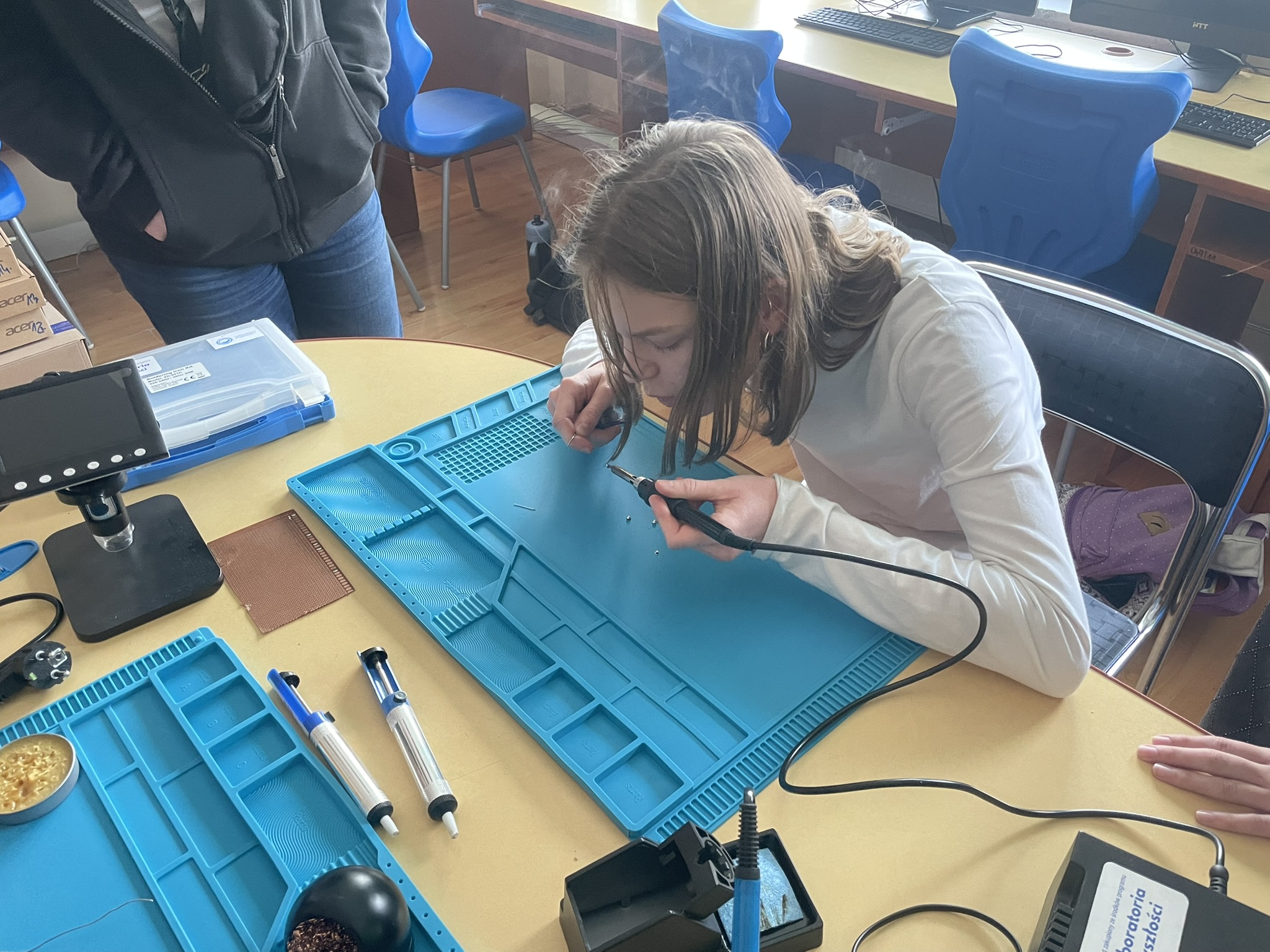 Uczniowie klasy 8c na zajęciach dodatkowych przystąpili do Ogólnopolskiego programu edukacyjnego dla misji IGNIS, otrzymując zestaw edukacyjny do samodzielnego montażu. Zestaw edukacyjny składa się z płytki PCB w kształcie satelity oraz dwóch obwodów: klucza telegraficznego oraz sygnalizatora dźwięku. Będzie mógł służyć m.in. do generowania komunikatów dźwiękowych i świetlnych alfabetem Morse'a. Aby go złożyć trzeba będzie opanować podstawy tworzenia układów elektronicznych oraz lutowania. W celu wysyłania i odbierania sygnałów uczniowie będą również musieli poznać alfabet Morse’a, który może okazać się przydatny w sytuacjach kryzysowych. Na pierwszych tego typu zajęciach poznawali zasady BHP podczas używania różnych typów lutownic, poprawnego lutowania i sposoby prawidłowego połączenia.