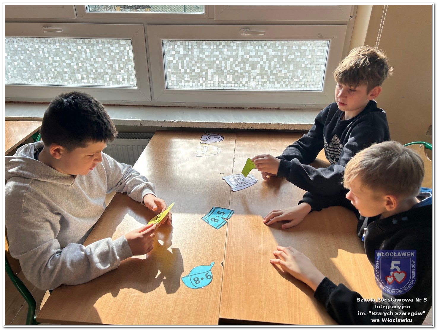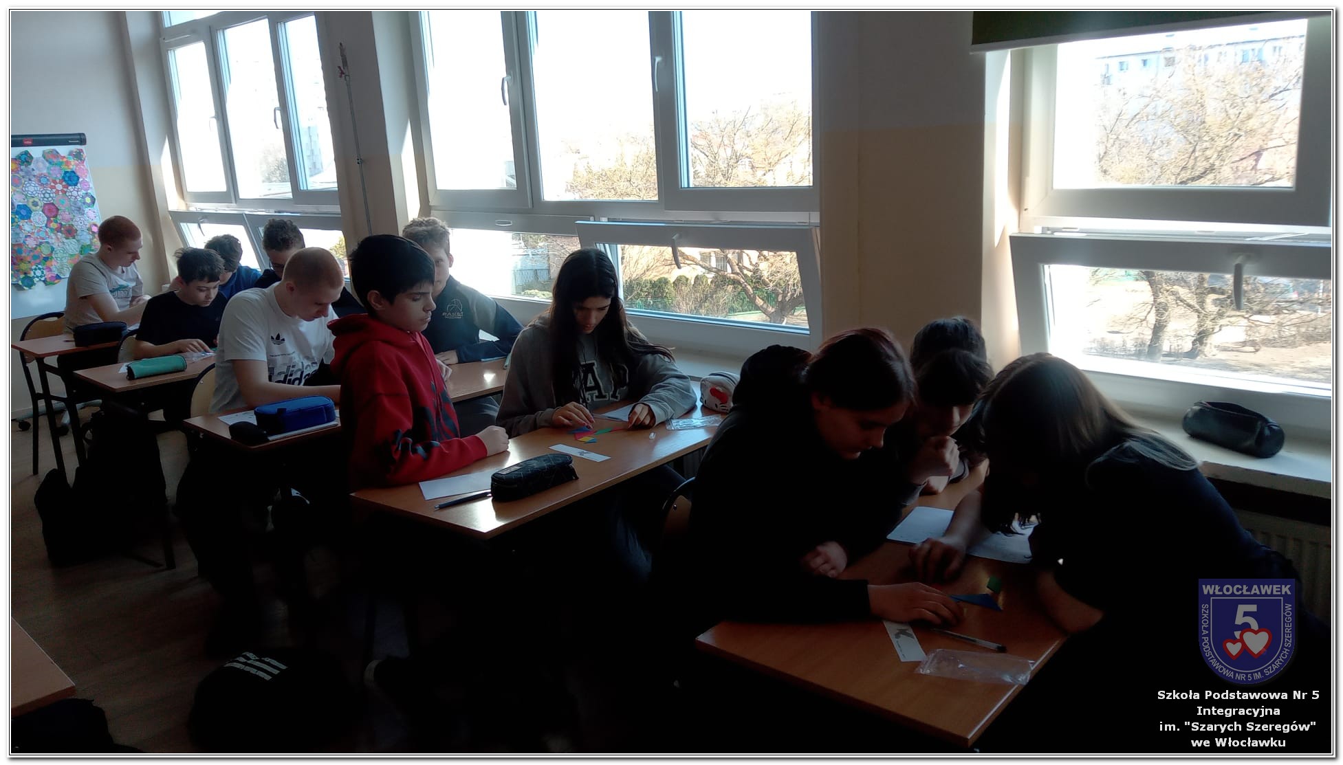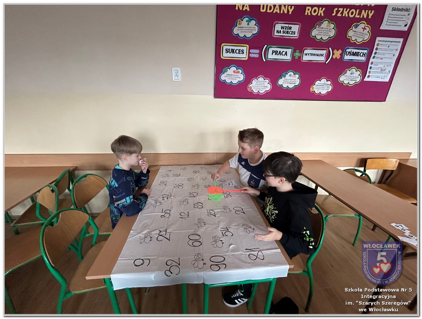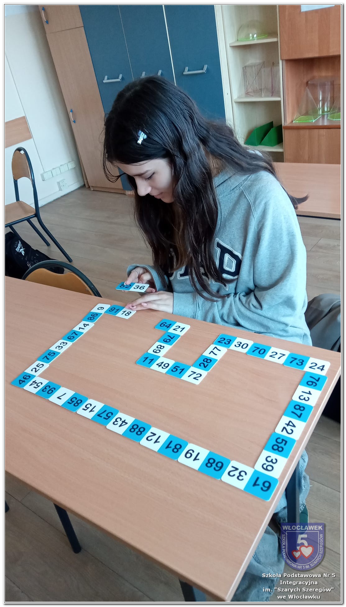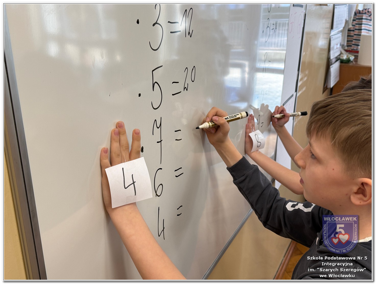 Dnia 12 marca w naszej szkole obchodziliśmy Międzynarodowy Dzień Matematyki. Z tej okazji uczniowie uczestniczyli w nietypowych lekcjach, podczas których mieli możliwość spojrzeć na matematykę z innej, bardziej przystępnej i ciekawej strony. Uczniowie z dużym zaangażowaniem uczestniczyli w różnorodnych grach i zabawach matematycznych, takich jak „Bingo matematyczne”, „Matematyczne muchy” czy „Kubeczkowe wieże”. Chętnie układali domino matematyczne, w którym poprawne zamknięcie wymagało trafnego rozwiązania działań, mierzyli się z łamigłówkami zapałkowymi oraz układali Schubitrix. Swoje umiejętności mogli również sprawdzić, biorąc udział w konkursie Sudoku. Dodatkowo uczniowie tworzyli różnorodne układy z tangramów, rozwijając przy tym wyobraźnię, spostrzegawczość oraz umiejętność logicznego myślenia. Udział w tych aktywnościach miał na celu pokazanie, że matematyka – nazywana Królową Nauk – może być nie tylko wymagająca, ale także ciekawa i pełna dobrej zabawy. W ramach obchodów wielu uczniów wzięło również udział w konkursie na plakat pt. „Symetria wokół nas”, wykazując się kreatywnością i dostrzeganiem matematyki w otaczającym świecie. Ponadto uczniowie naszej szkoły wykonali parkietaż, który stał się efektowną dekoracją szkolnego korytarza. Obchody tego dnia były doskonałą okazją do pokazania, że matematyka może być fascynująca i bliska codziennemu życiu.