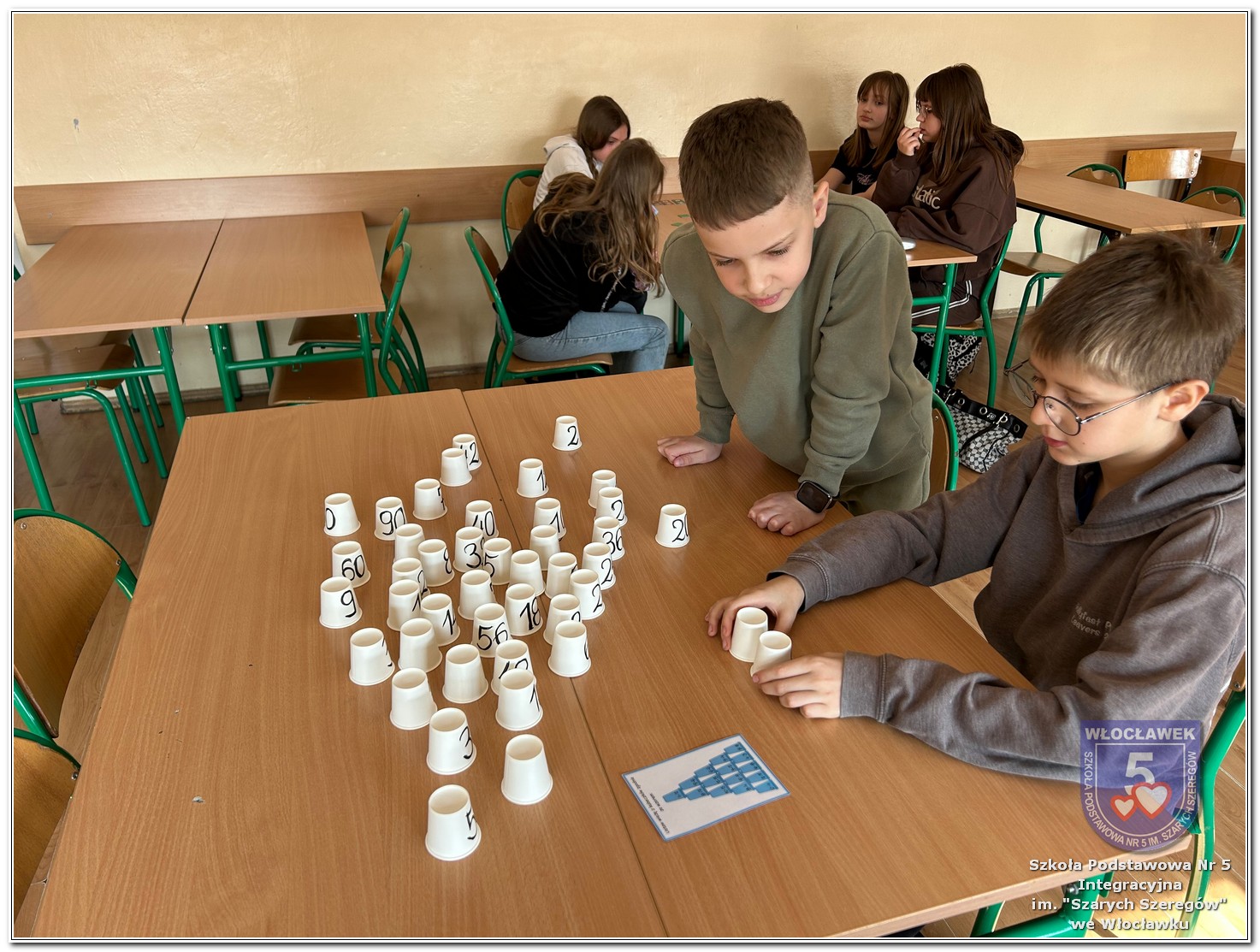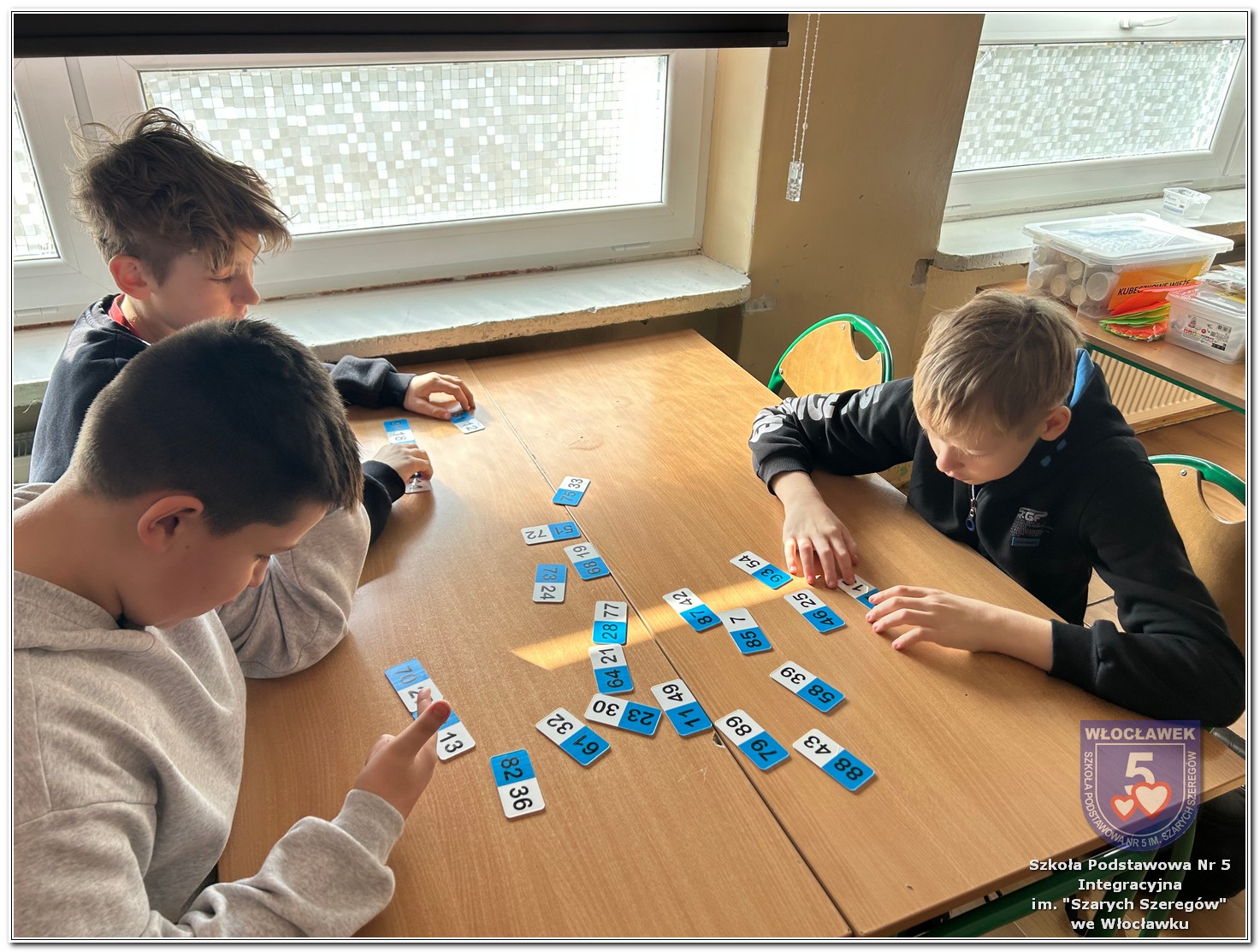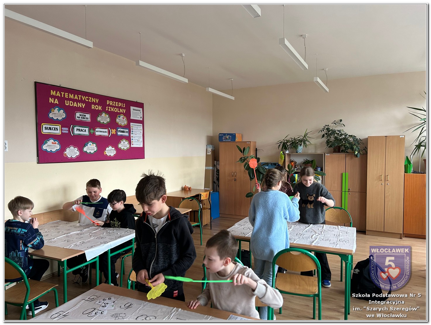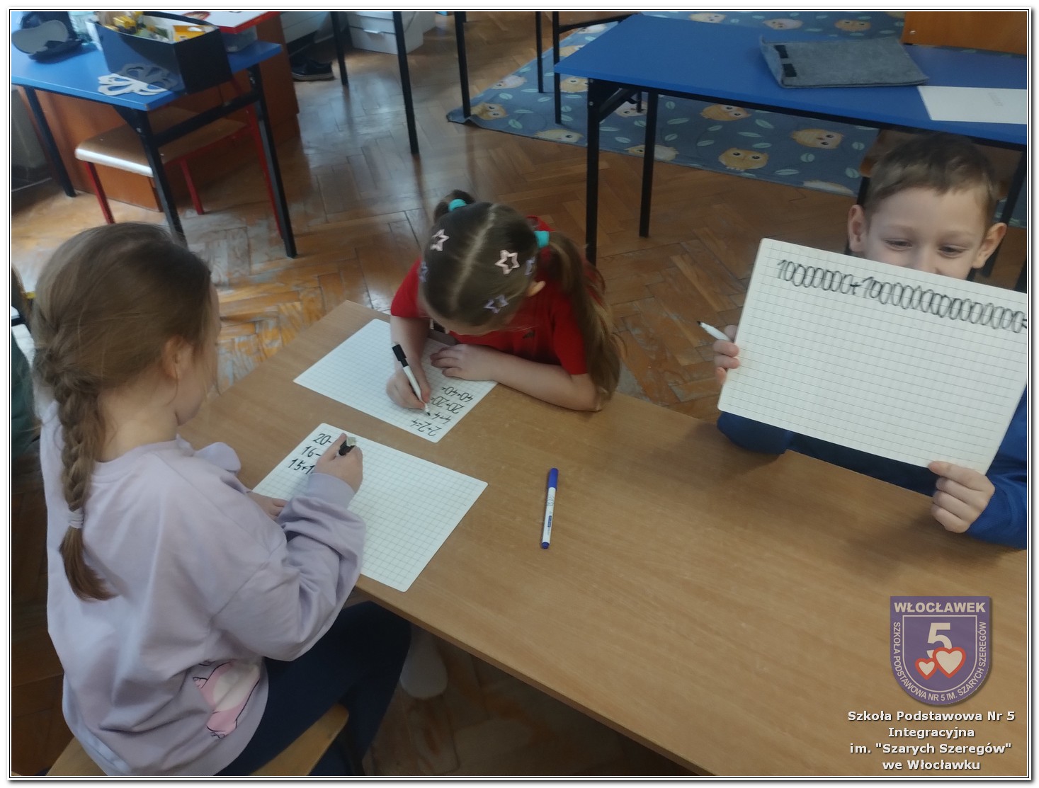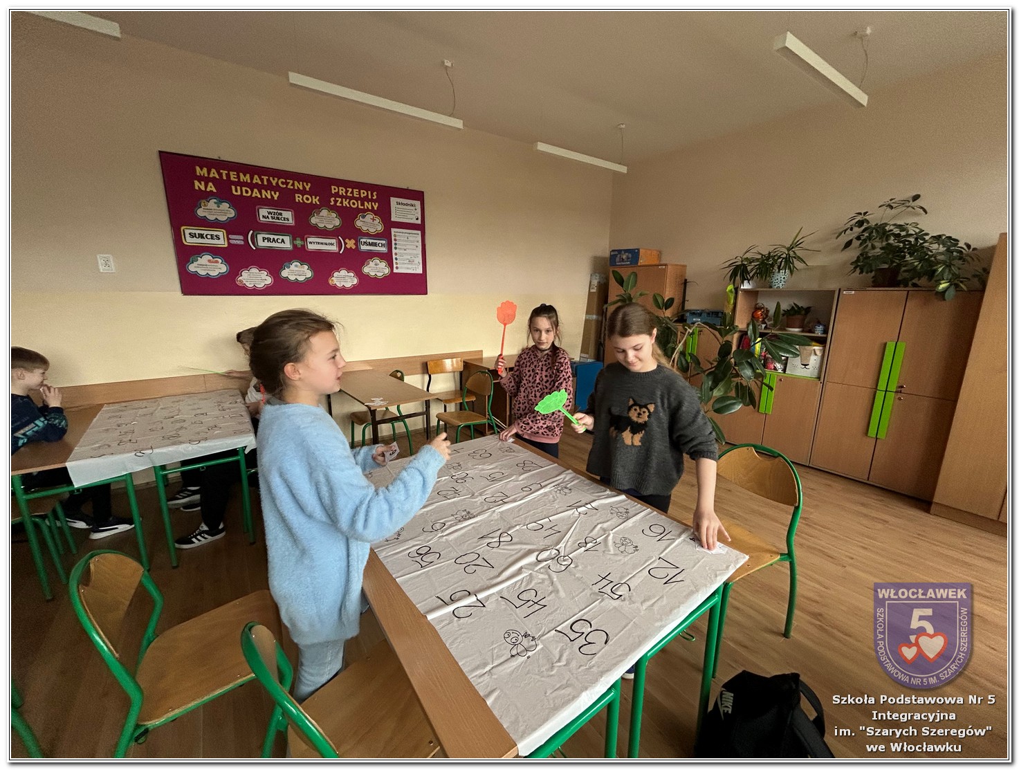 Dnia 12 marca w naszej szkole obchodziliśmy Międzynarodowy Dzień Matematyki. Z tej okazji uczniowie uczestniczyli w nietypowych lekcjach, podczas których mieli możliwość spojrzeć na matematykę z innej, bardziej przystępnej i ciekawej strony. Uczniowie z dużym zaangażowaniem uczestniczyli w różnorodnych grach i zabawach matematycznych, takich jak „Bingo matematyczne”, „Matematyczne muchy” czy „Kubeczkowe wieże”. Chętnie układali domino matematyczne, w którym poprawne zamknięcie wymagało trafnego rozwiązania działań, mierzyli się z łamigłówkami zapałkowymi oraz układali Schubitrix. Swoje umiejętności mogli również sprawdzić, biorąc udział w konkursie Sudoku. Dodatkowo uczniowie tworzyli różnorodne układy z tangramów, rozwijając przy tym wyobraźnię, spostrzegawczość oraz umiejętność logicznego myślenia. Udział w tych aktywnościach miał na celu pokazanie, że matematyka – nazywana Królową Nauk – może być nie tylko wymagająca, ale także ciekawa i pełna dobrej zabawy. W ramach obchodów wielu uczniów wzięło również udział w konkursie na plakat pt. „Symetria wokół nas”, wykazując się kreatywnością i dostrzeganiem matematyki w otaczającym świecie. Ponadto uczniowie naszej szkoły wykonali parkietaż, który stał się efektowną dekoracją szkolnego korytarza. Obchody tego dnia były doskonałą okazją do pokazania, że matematyka może być fascynująca i bliska codziennemu życiu.