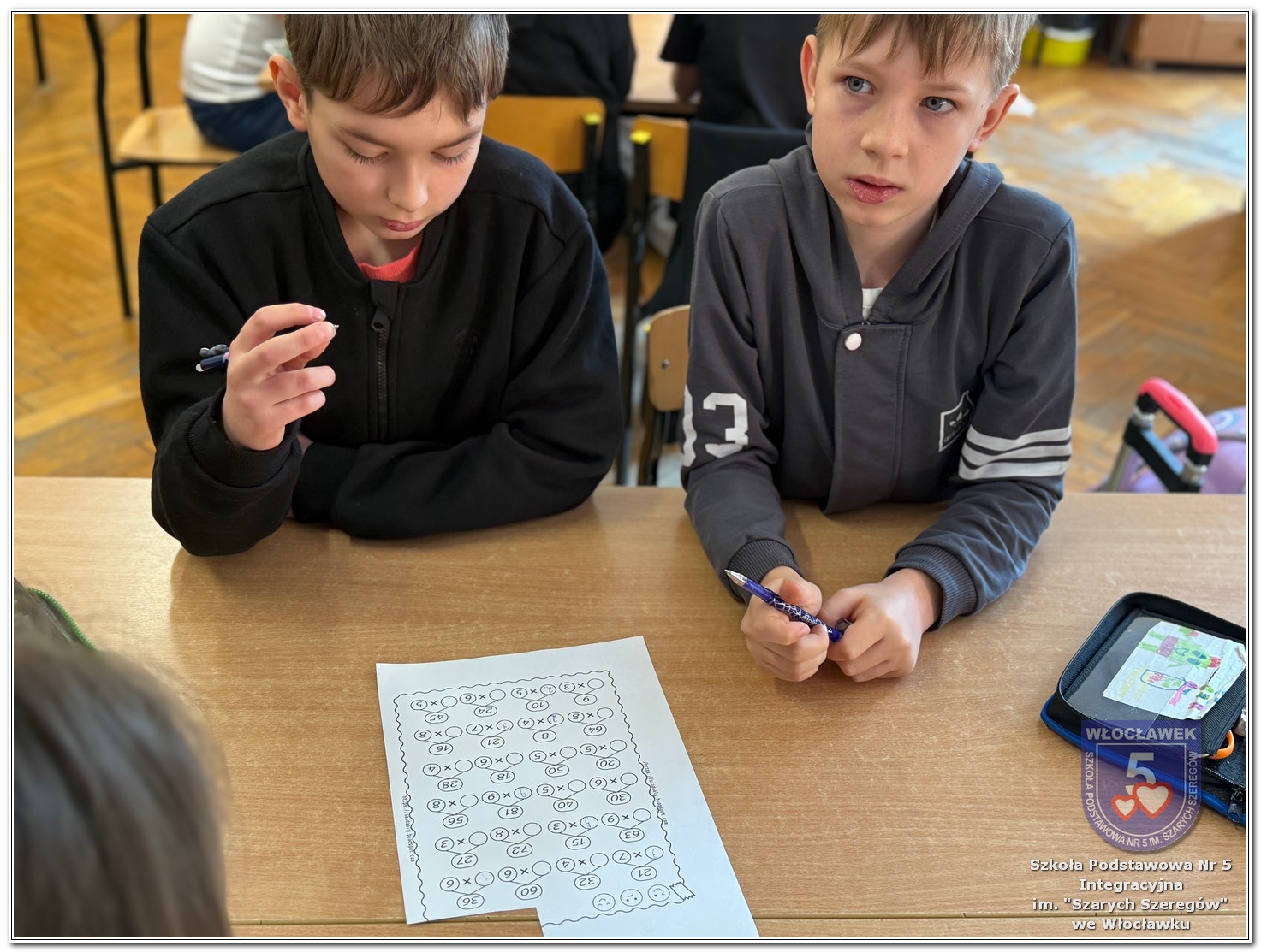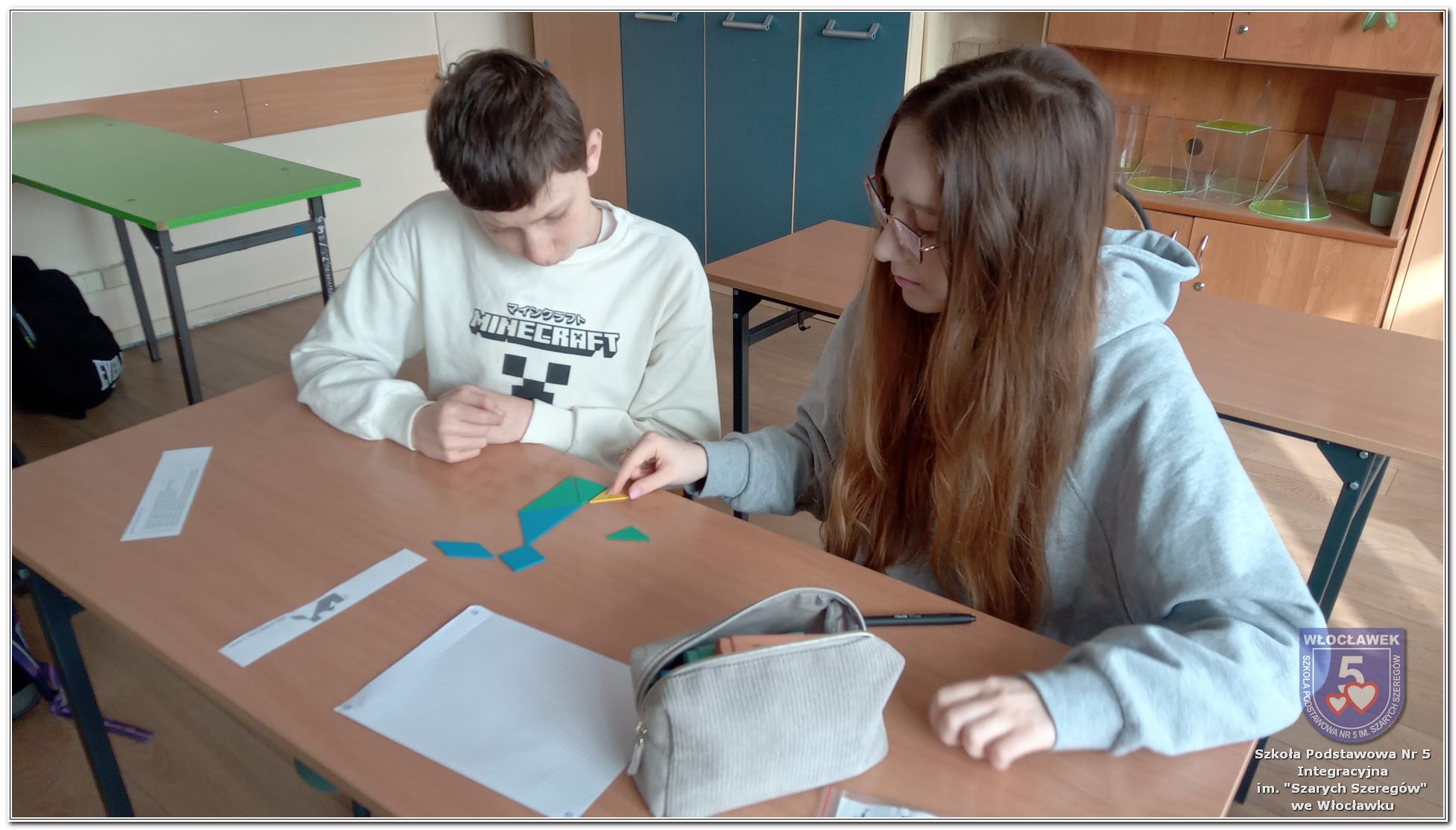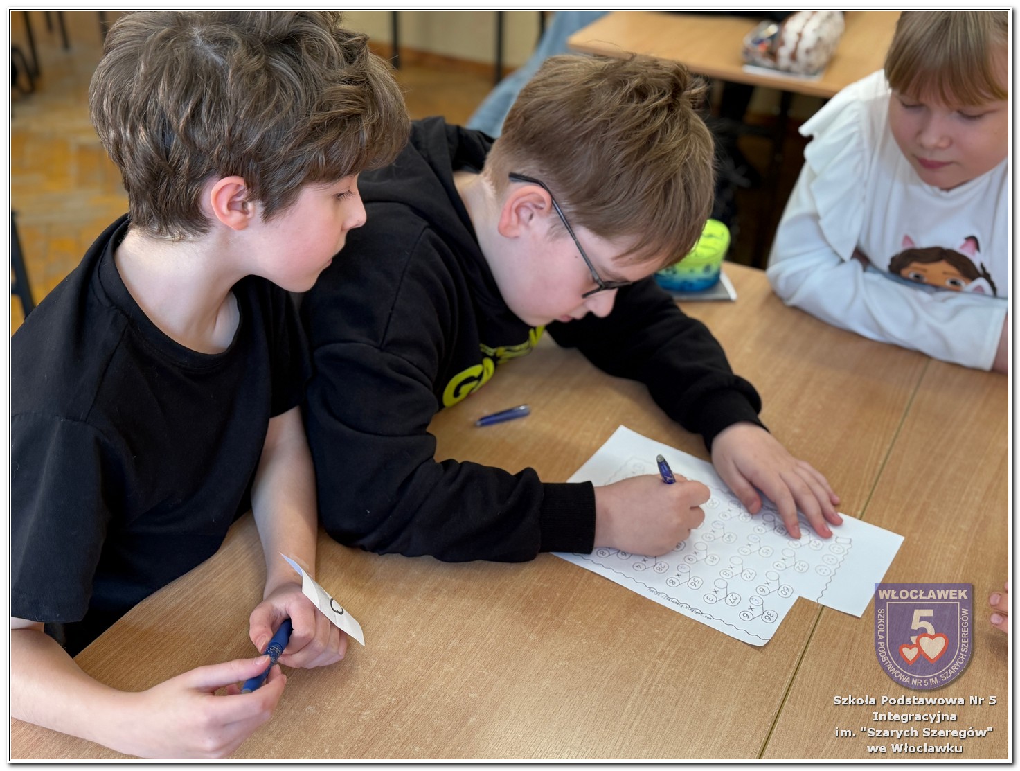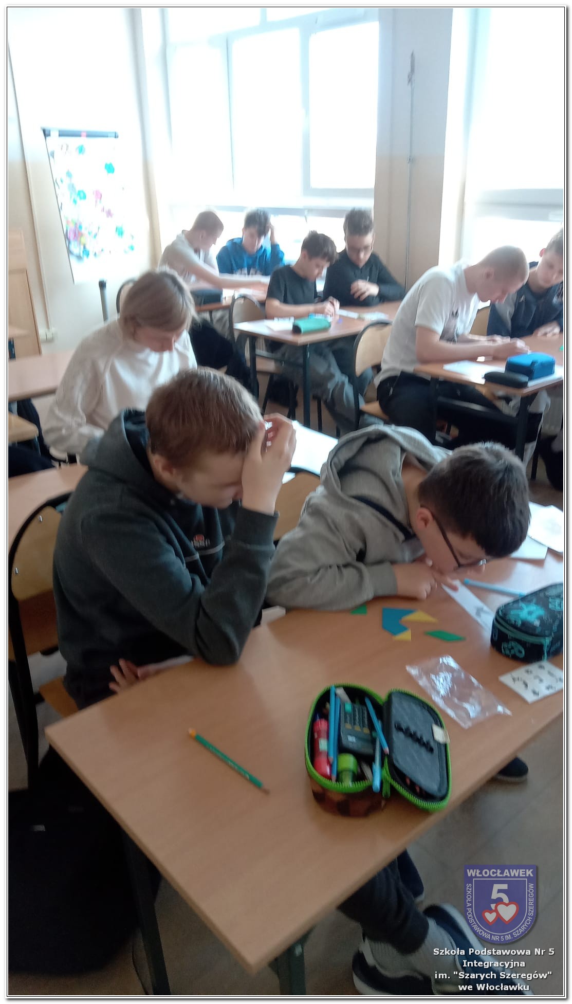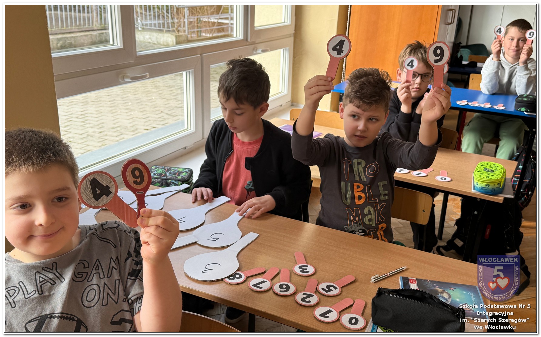 Dnia 12 marca w naszej szkole obchodziliśmy Międzynarodowy Dzień Matematyki. Z tej okazji uczniowie uczestniczyli w nietypowych lekcjach, podczas których mieli możliwość spojrzeć na matematykę z innej, bardziej przystępnej i ciekawej strony. Uczniowie z dużym zaangażowaniem uczestniczyli w różnorodnych grach i zabawach matematycznych, takich jak „Bingo matematyczne”, „Matematyczne muchy” czy „Kubeczkowe wieże”. Chętnie układali domino matematyczne, w którym poprawne zamknięcie wymagało trafnego rozwiązania działań, mierzyli się z łamigłówkami zapałkowymi oraz układali Schubitrix. Swoje umiejętności mogli również sprawdzić, biorąc udział w konkursie Sudoku. Dodatkowo uczniowie tworzyli różnorodne układy z tangramów, rozwijając przy tym wyobraźnię, spostrzegawczość oraz umiejętność logicznego myślenia. Udział w tych aktywnościach miał na celu pokazanie, że matematyka – nazywana Królową Nauk – może być nie tylko wymagająca, ale także ciekawa i pełna dobrej zabawy. W ramach obchodów wielu uczniów wzięło również udział w konkursie na plakat pt. „Symetria wokół nas”, wykazując się kreatywnością i dostrzeganiem matematyki w otaczającym świecie. Ponadto uczniowie naszej szkoły wykonali parkietaż, który stał się efektowną dekoracją szkolnego korytarza. Obchody tego dnia były doskonałą okazją do pokazania, że matematyka może być fascynująca i bliska codziennemu życiu.