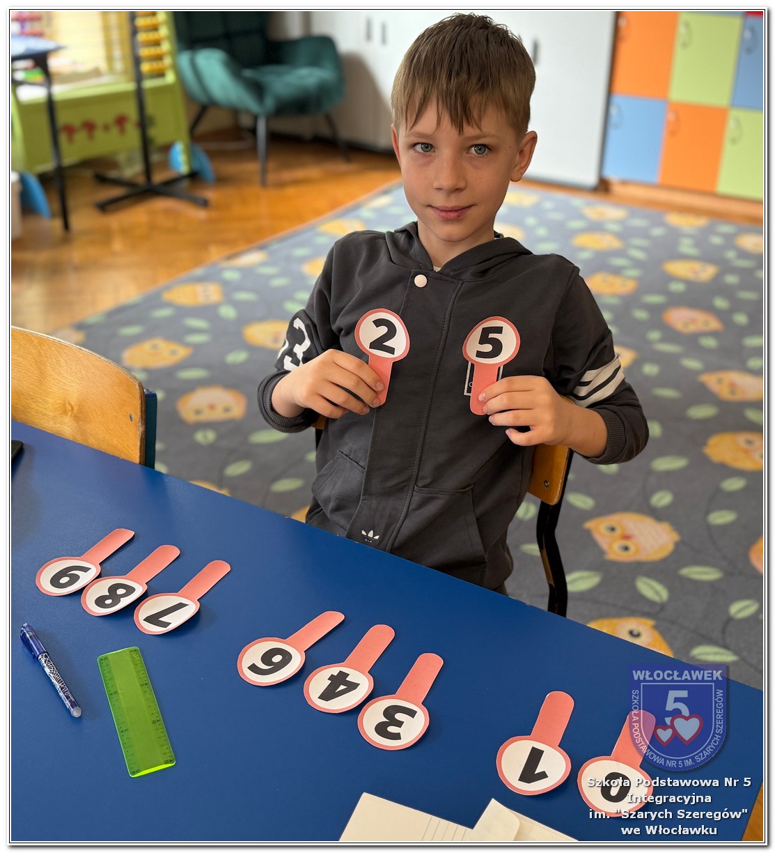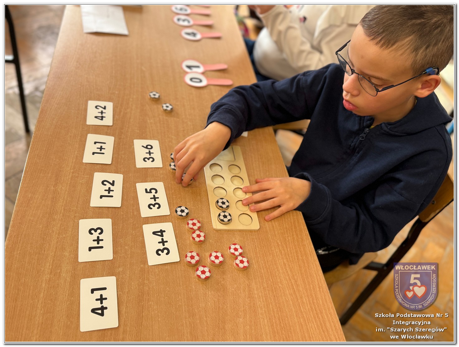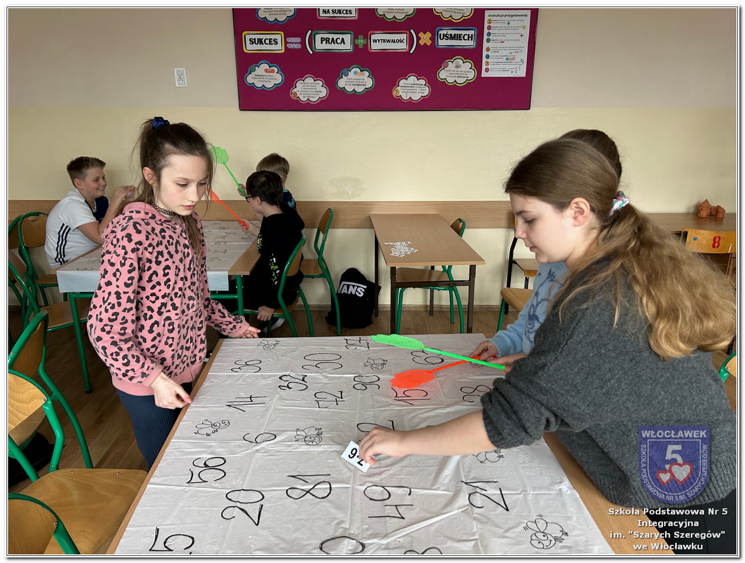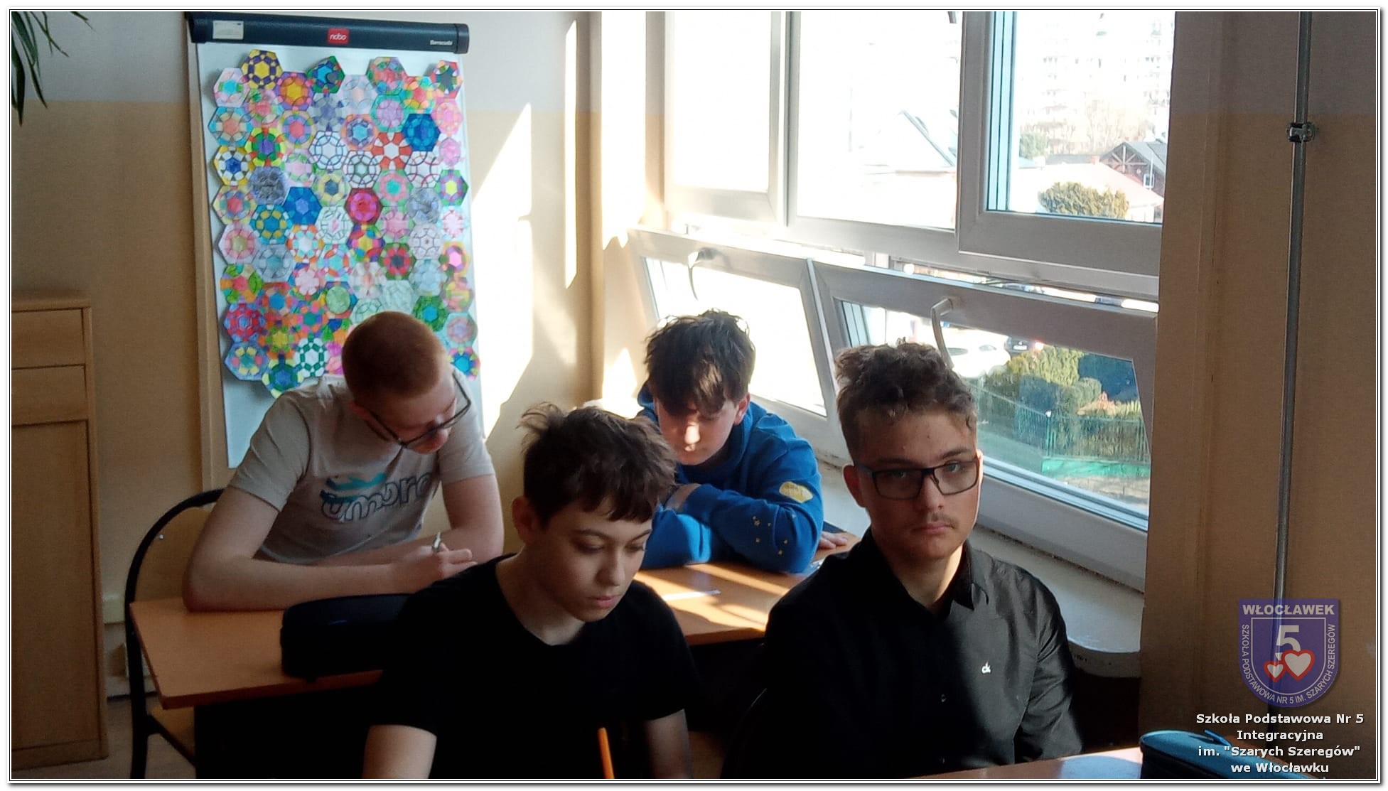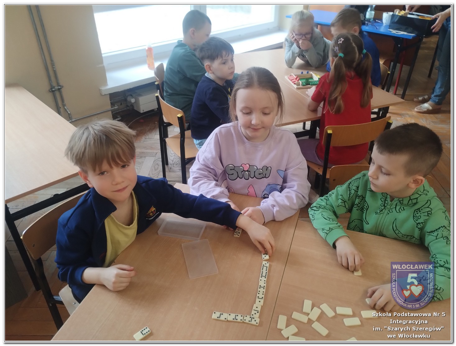 Dnia 12 marca w naszej szkole obchodziliśmy Międzynarodowy Dzień Matematyki. Z tej okazji uczniowie uczestniczyli w nietypowych lekcjach, podczas których mieli możliwość spojrzeć na matematykę z innej, bardziej przystępnej i ciekawej strony. Uczniowie z dużym zaangażowaniem uczestniczyli w różnorodnych grach i zabawach matematycznych, takich jak „Bingo matematyczne”, „Matematyczne muchy” czy „Kubeczkowe wieże”. Chętnie układali domino matematyczne, w którym poprawne zamknięcie wymagało trafnego rozwiązania działań, mierzyli się z łamigłówkami zapałkowymi oraz układali Schubitrix. Swoje umiejętności mogli również sprawdzić, biorąc udział w konkursie Sudoku. Dodatkowo uczniowie tworzyli różnorodne układy z tangramów, rozwijając przy tym wyobraźnię, spostrzegawczość oraz umiejętność logicznego myślenia. Udział w tych aktywnościach miał na celu pokazanie, że matematyka – nazywana Królową Nauk – może być nie tylko wymagająca, ale także ciekawa i pełna dobrej zabawy. W ramach obchodów wielu uczniów wzięło również udział w konkursie na plakat pt. „Symetria wokół nas”, wykazując się kreatywnością i dostrzeganiem matematyki w otaczającym świecie. Ponadto uczniowie naszej szkoły wykonali parkietaż, który stał się efektowną dekoracją szkolnego korytarza. Obchody tego dnia były doskonałą okazją do pokazania, że matematyka może być fascynująca i bliska codziennemu życiu.