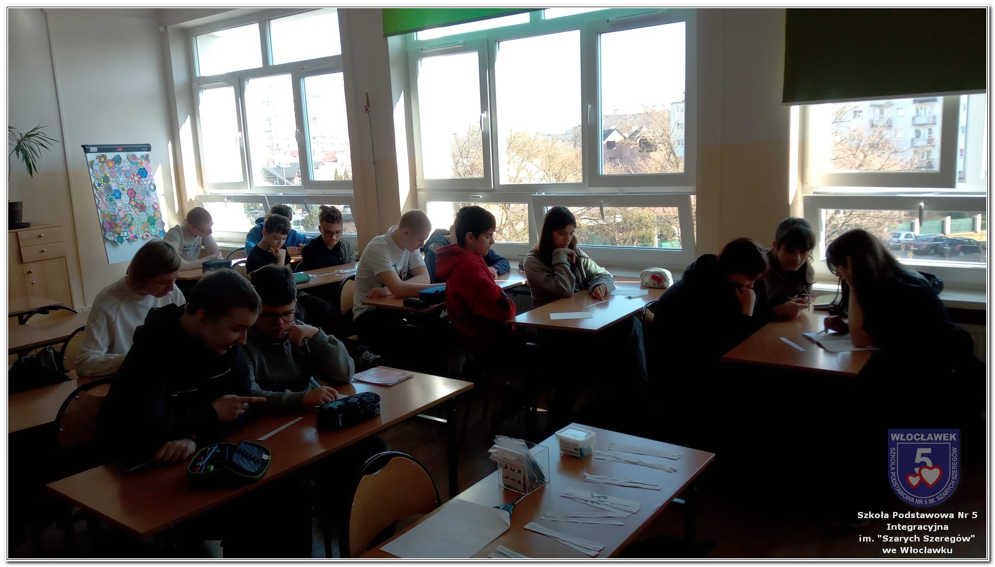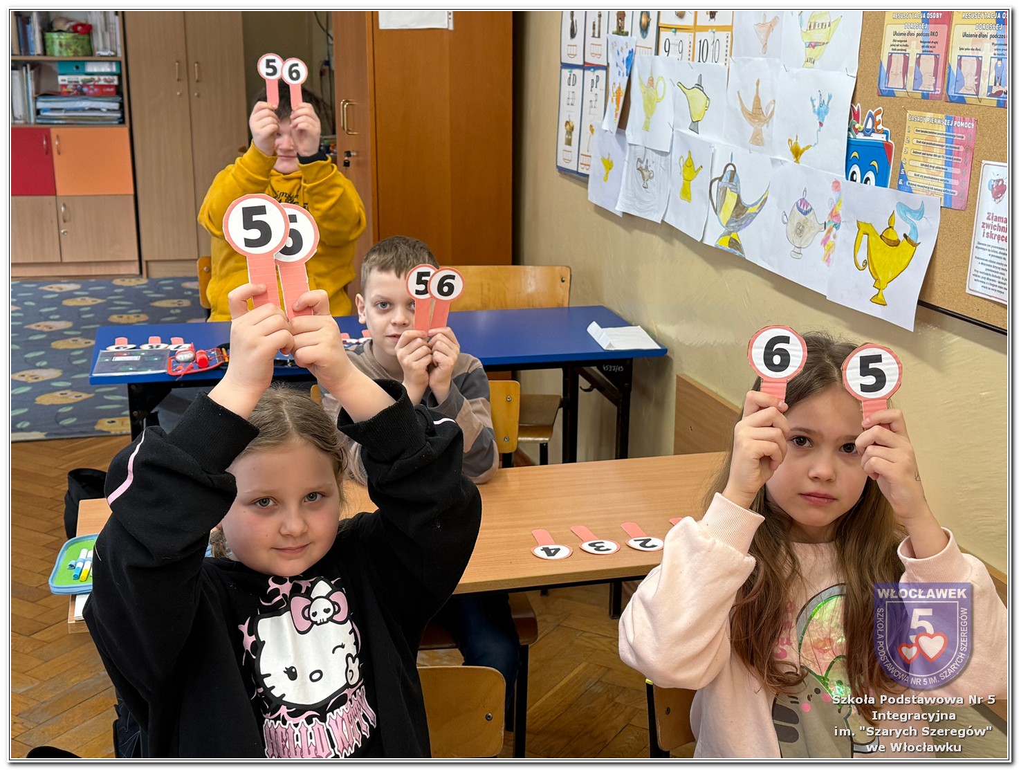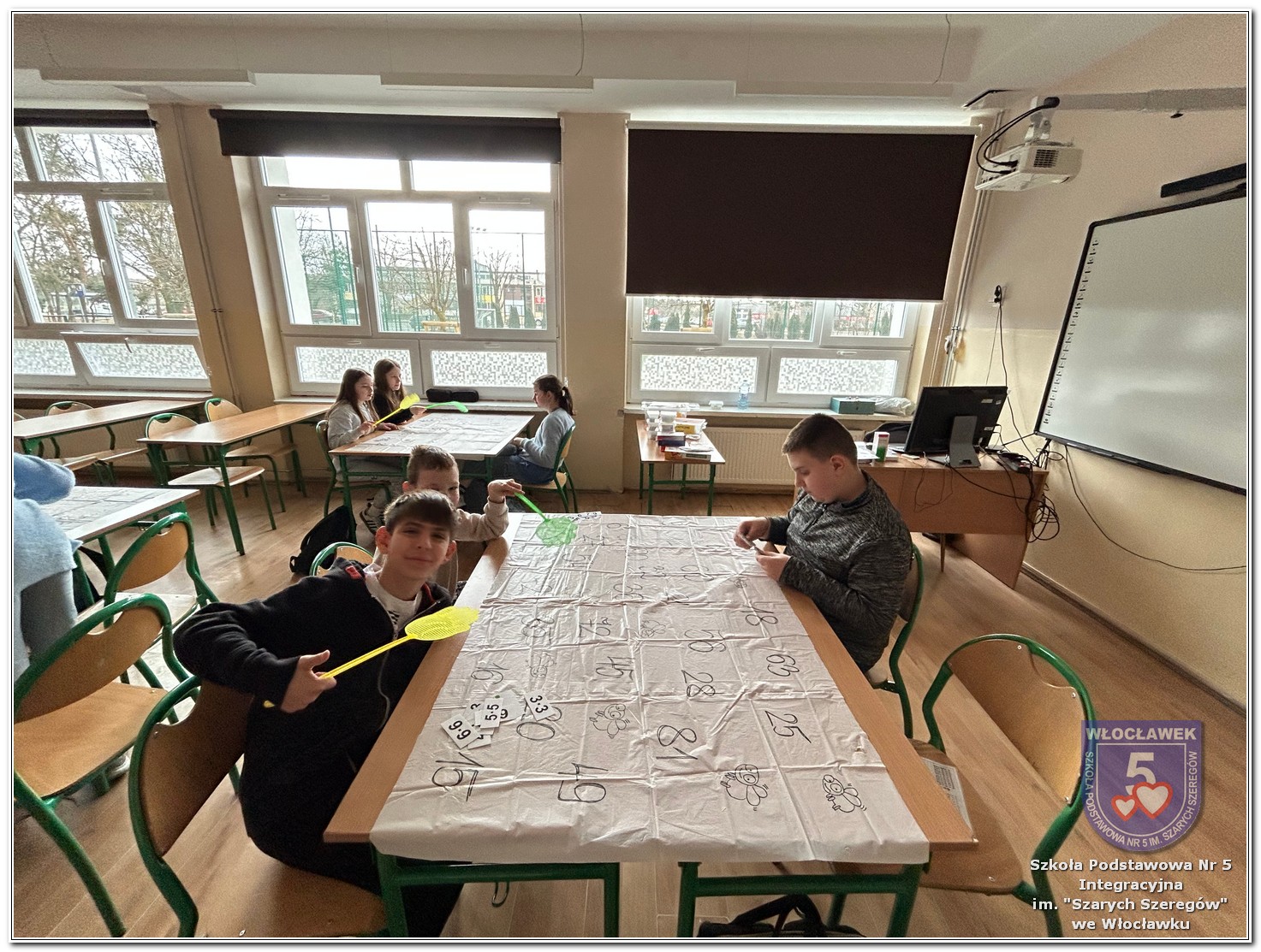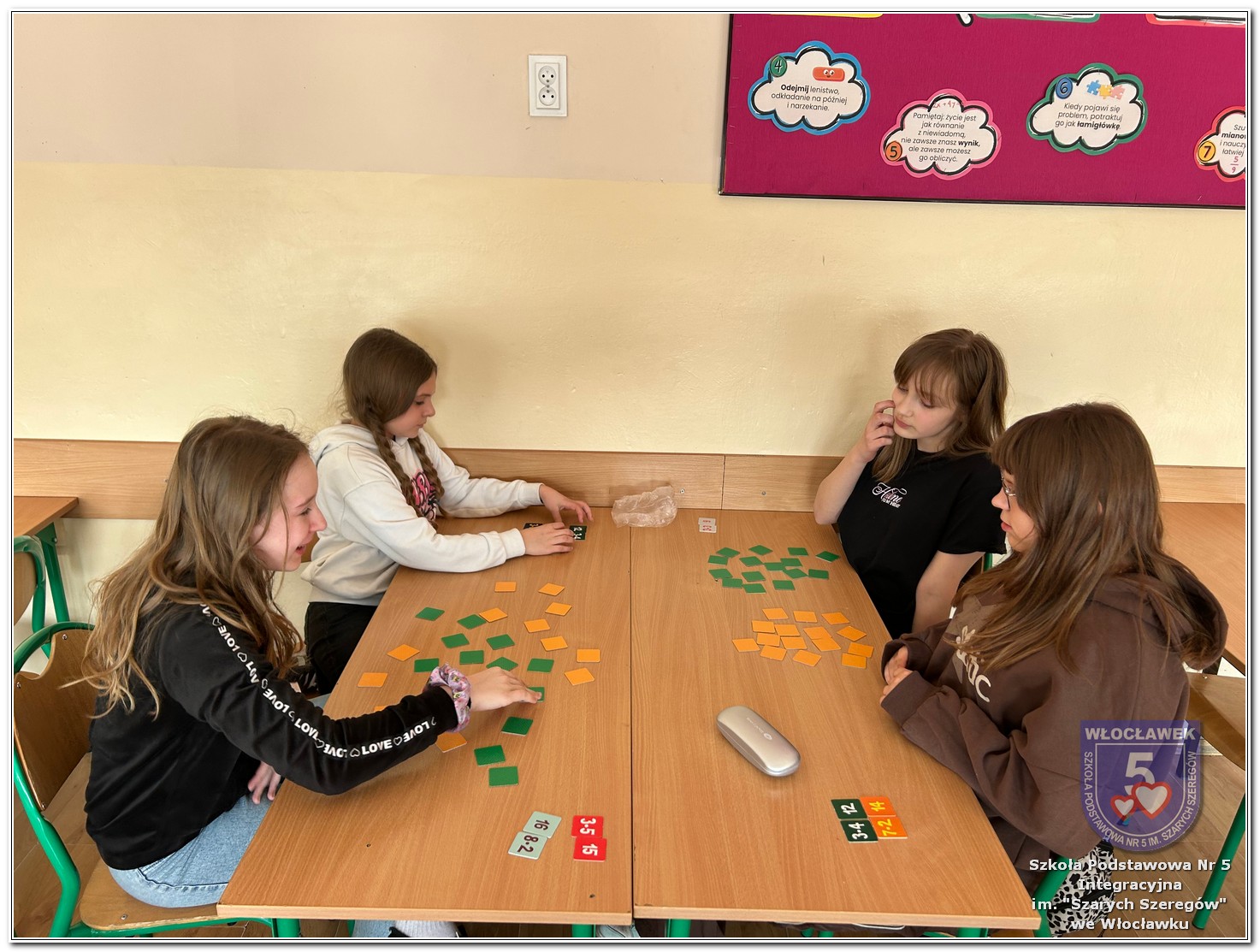 Dnia 12 marca w naszej szkole obchodziliśmy Międzynarodowy Dzień Matematyki. Z tej okazji uczniowie uczestniczyli w nietypowych lekcjach, podczas których mieli możliwość spojrzeć na matematykę z innej, bardziej przystępnej i ciekawej strony. Uczniowie z dużym zaangażowaniem uczestniczyli w różnorodnych grach i zabawach matematycznych, takich jak „Bingo matematyczne”, „Matematyczne muchy” czy „Kubeczkowe wieże”. Chętnie układali domino matematyczne, w którym poprawne zamknięcie wymagało trafnego rozwiązania działań, mierzyli się z łamigłówkami zapałkowymi oraz układali Schubitrix. Swoje umiejętności mogli również sprawdzić, biorąc udział w konkursie Sudoku. Dodatkowo uczniowie tworzyli różnorodne układy z tangramów, rozwijając przy tym wyobraźnię, spostrzegawczość oraz umiejętność logicznego myślenia. Udział w tych aktywnościach miał na celu pokazanie, że matematyka – nazywana Królową Nauk – może być nie tylko wymagająca, ale także ciekawa i pełna dobrej zabawy. W ramach obchodów wielu uczniów wzięło również udział w konkursie na plakat pt. „Symetria wokół nas”, wykazując się kreatywnością i dostrzeganiem matematyki w otaczającym świecie. Ponadto uczniowie naszej szkoły wykonali parkietaż, który stał się efektowną dekoracją szkolnego korytarza. Obchody tego dnia były doskonałą okazją do pokazania, że matematyka może być fascynująca i bliska codziennemu życiu.