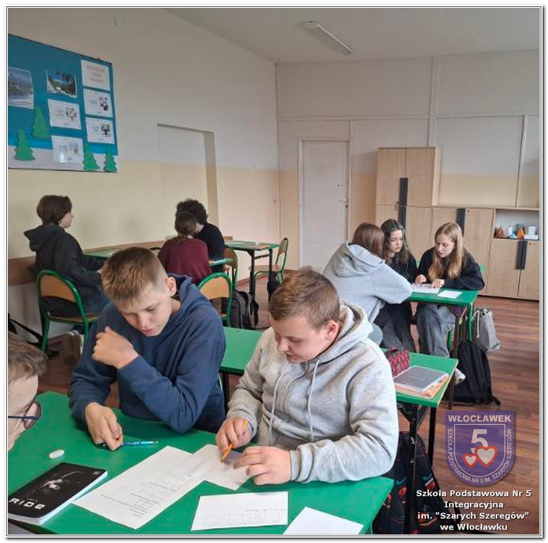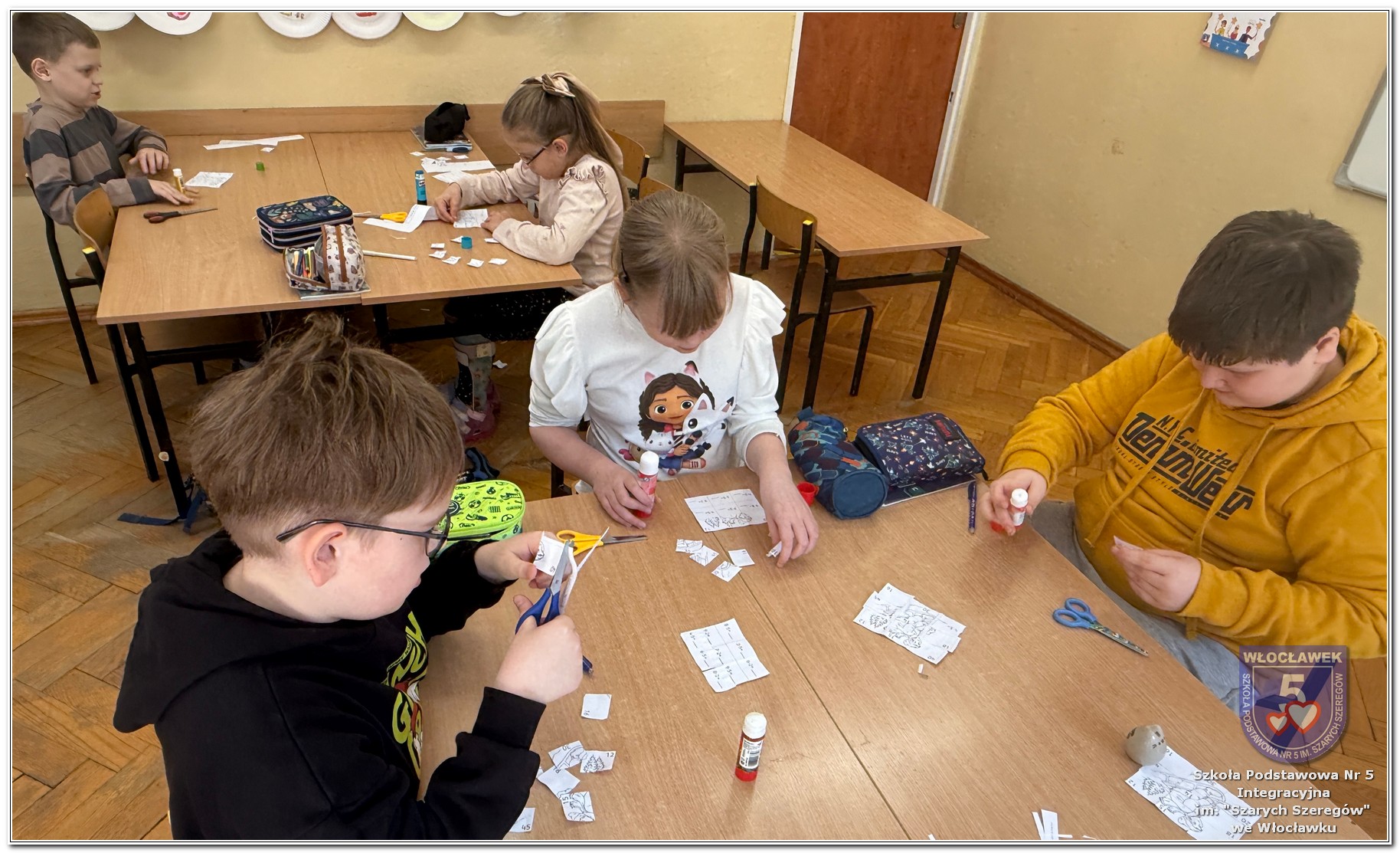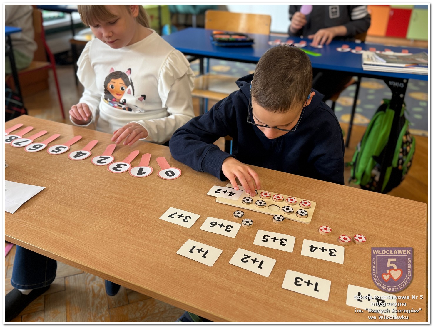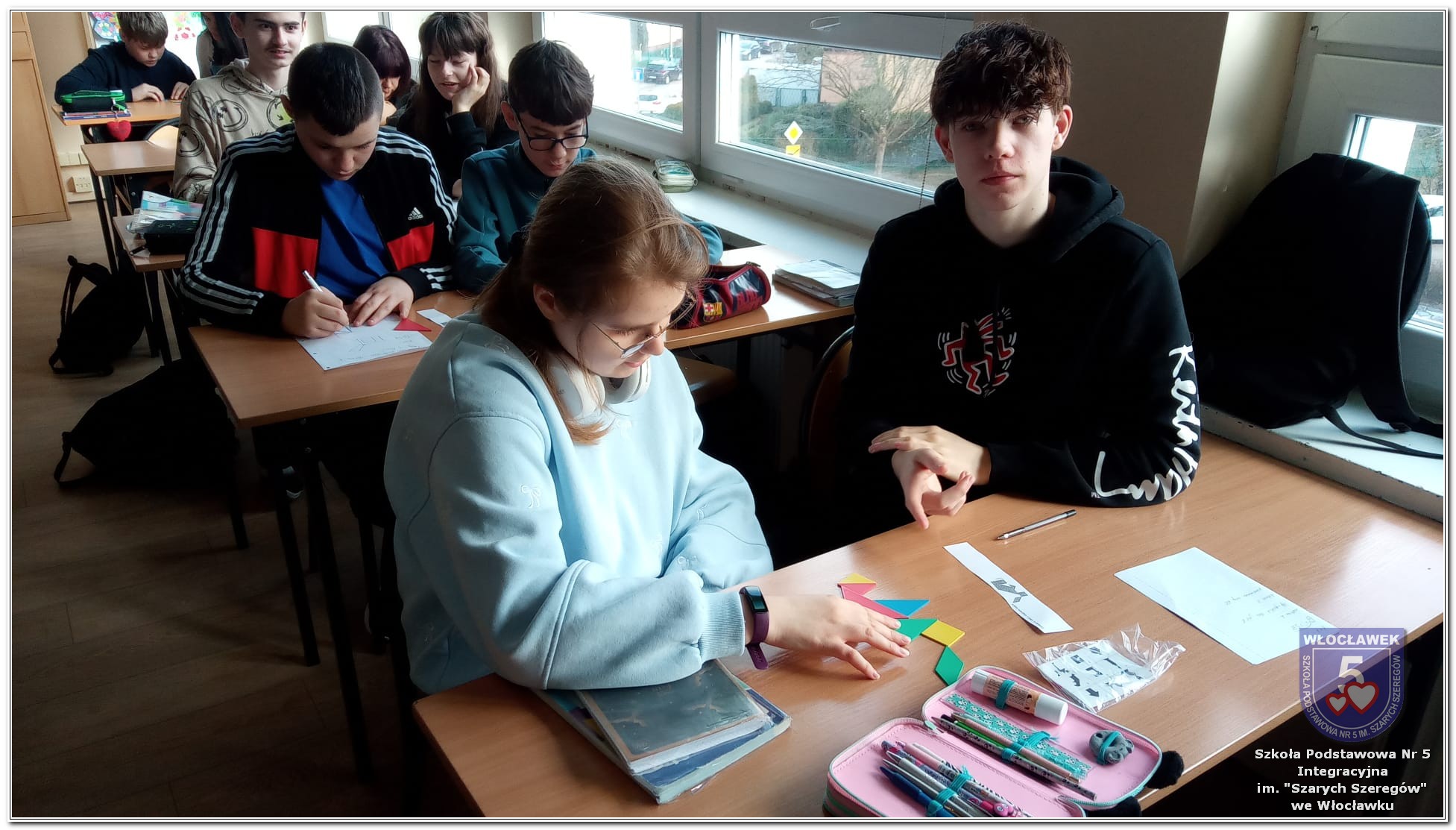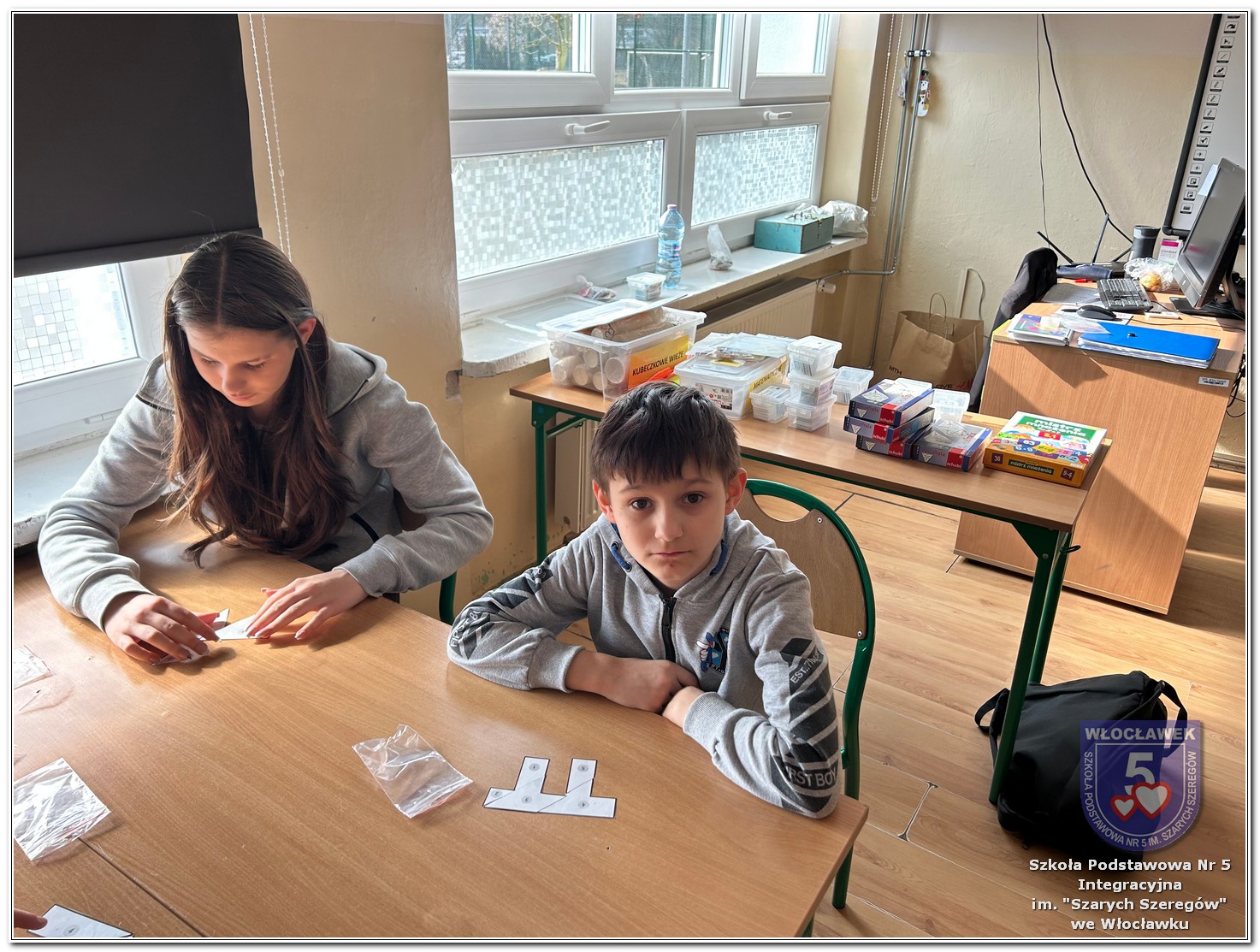 Dnia 12 marca w naszej szkole obchodziliśmy Międzynarodowy Dzień Matematyki. Z tej okazji uczniowie uczestniczyli w nietypowych lekcjach, podczas których mieli możliwość spojrzeć na matematykę z innej, bardziej przystępnej i ciekawej strony. Uczniowie z dużym zaangażowaniem uczestniczyli w różnorodnych grach i zabawach matematycznych, takich jak „Bingo matematyczne”, „Matematyczne muchy” czy „Kubeczkowe wieże”. Chętnie układali domino matematyczne, w którym poprawne zamknięcie wymagało trafnego rozwiązania działań, mierzyli się z łamigłówkami zapałkowymi oraz układali Schubitrix. Swoje umiejętności mogli również sprawdzić, biorąc udział w konkursie Sudoku. Dodatkowo uczniowie tworzyli różnorodne układy z tangramów, rozwijając przy tym wyobraźnię, spostrzegawczość oraz umiejętność logicznego myślenia. Udział w tych aktywnościach miał na celu pokazanie, że matematyka – nazywana Królową Nauk – może być nie tylko wymagająca, ale także ciekawa i pełna dobrej zabawy. W ramach obchodów wielu uczniów wzięło również udział w konkursie na plakat pt. „Symetria wokół nas”, wykazując się kreatywnością i dostrzeganiem matematyki w otaczającym świecie. Ponadto uczniowie naszej szkoły wykonali parkietaż, który stał się efektowną dekoracją szkolnego korytarza. Obchody tego dnia były doskonałą okazją do pokazania, że matematyka może być fascynująca i bliska codziennemu życiu.