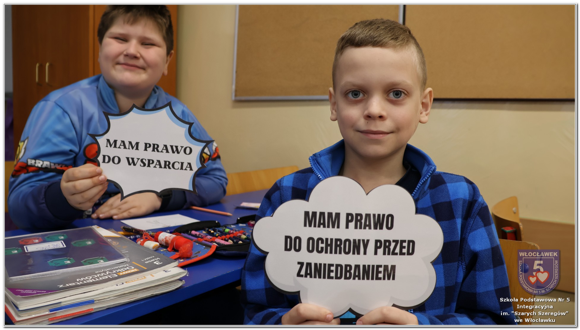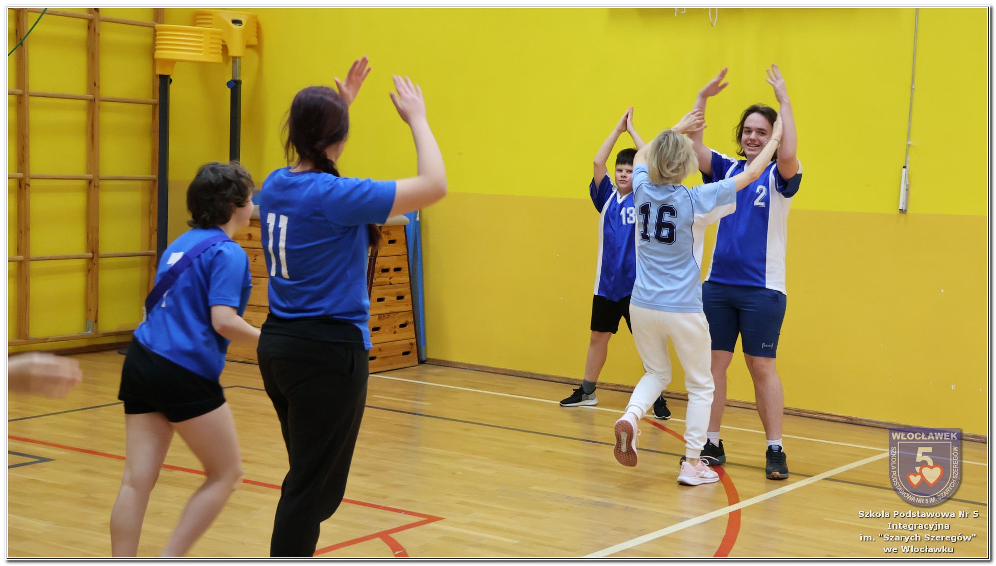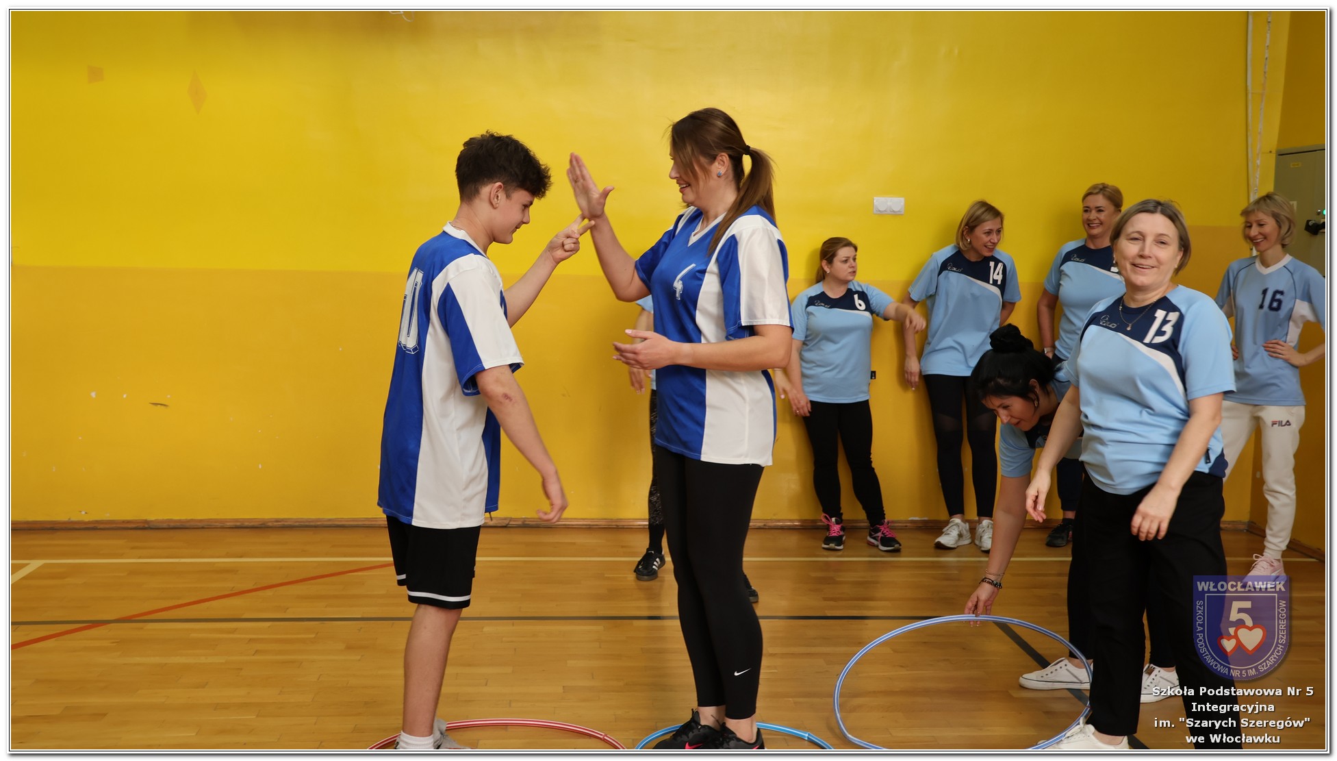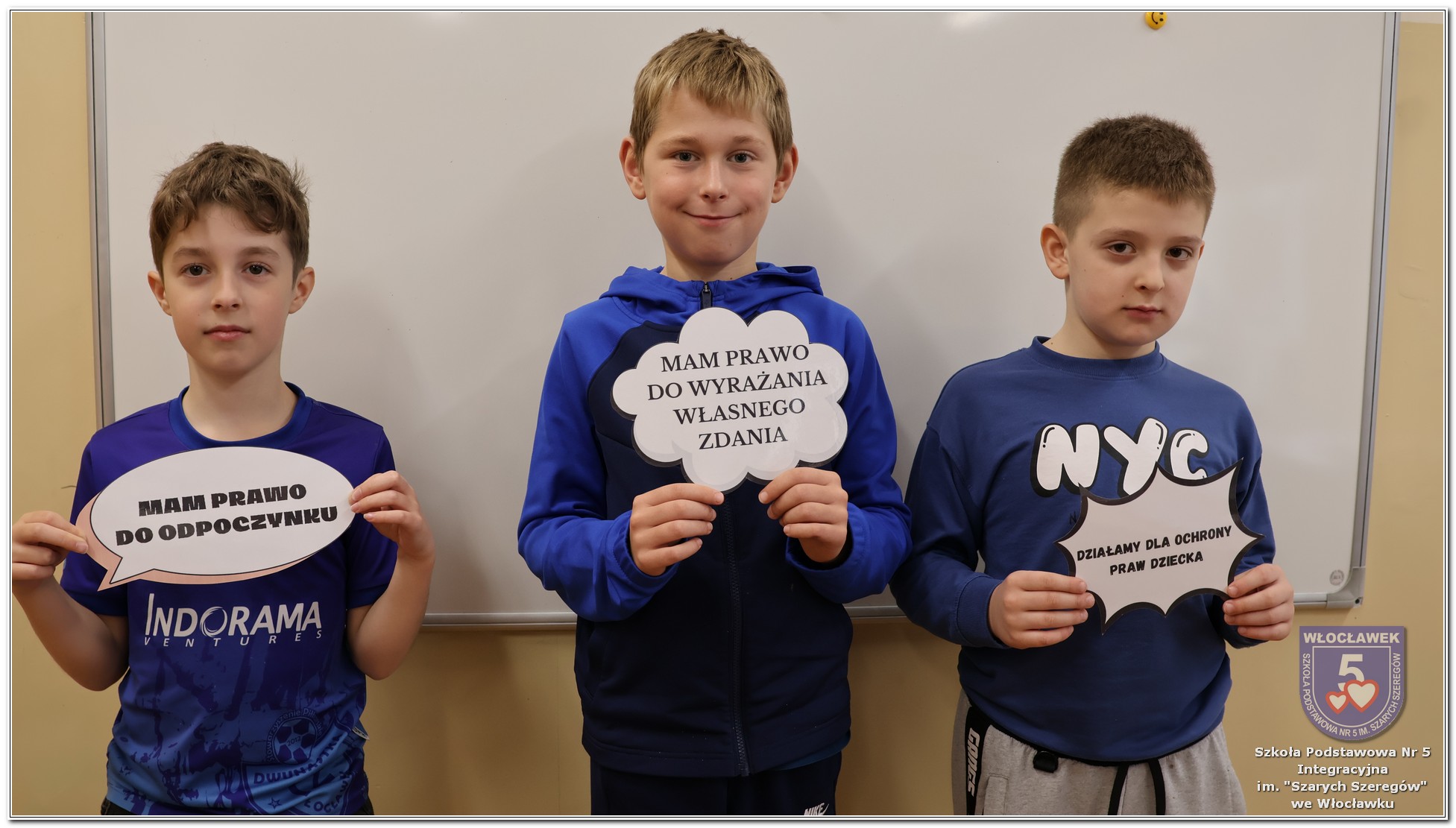 Międzynarodowy Dzień Praw Dziecka w naszej szkole przebiegał w wyjątkowej atmosferze – dominował kolor niebieski, symbol solidarności z dziećmi na całym świecie. Młodsze klasy uczestniczyły w zajęciach poświęconych prawom dziecka. Uczniowie oglądali filmy edukacyjne, które w przystępny sposób przybliżały im tematykę praw i obowiązków najmłodszych. Następnie dzieci zaprojektowały własne pocztówki pod hasłem „Moje prawo”, wyrażając w nich swoje marzenia i przekonania dotyczące sprawiedliwości i równości. Starsze klasy rywalizowały w emocjonujących Potyczkach Drużyn Praw Dziecka, w których naprzeciw siebie stanęli nauczyciele i uczniowie. Wielkie brawa dla niepokonanej Drużyny Uczniów! Rozgrywki miały charakter integracyjny – sportowe konkurencje łączyły zabawę z edukacją, a rywalizacja była okazją do wspólnego dialogu w atmosferze ruchu i współpracy. Całość wydarzenia podkreślała wagę praw dziecka w codziennym życiu szkoły i społeczności. Obchody były nie tylko lekcją wiedzy, ale także lekcją empatii, solidarności i wspólnego działania.