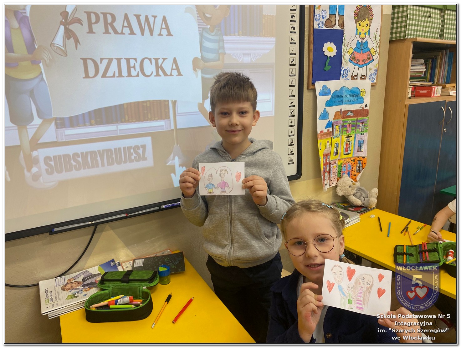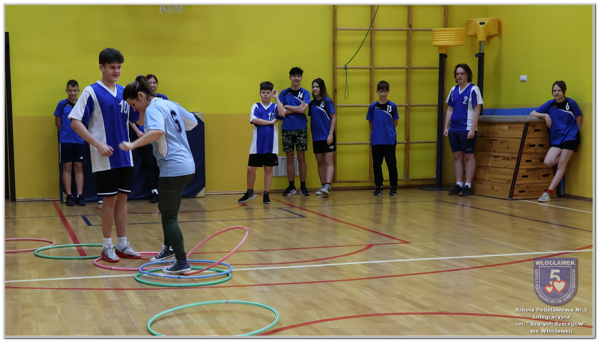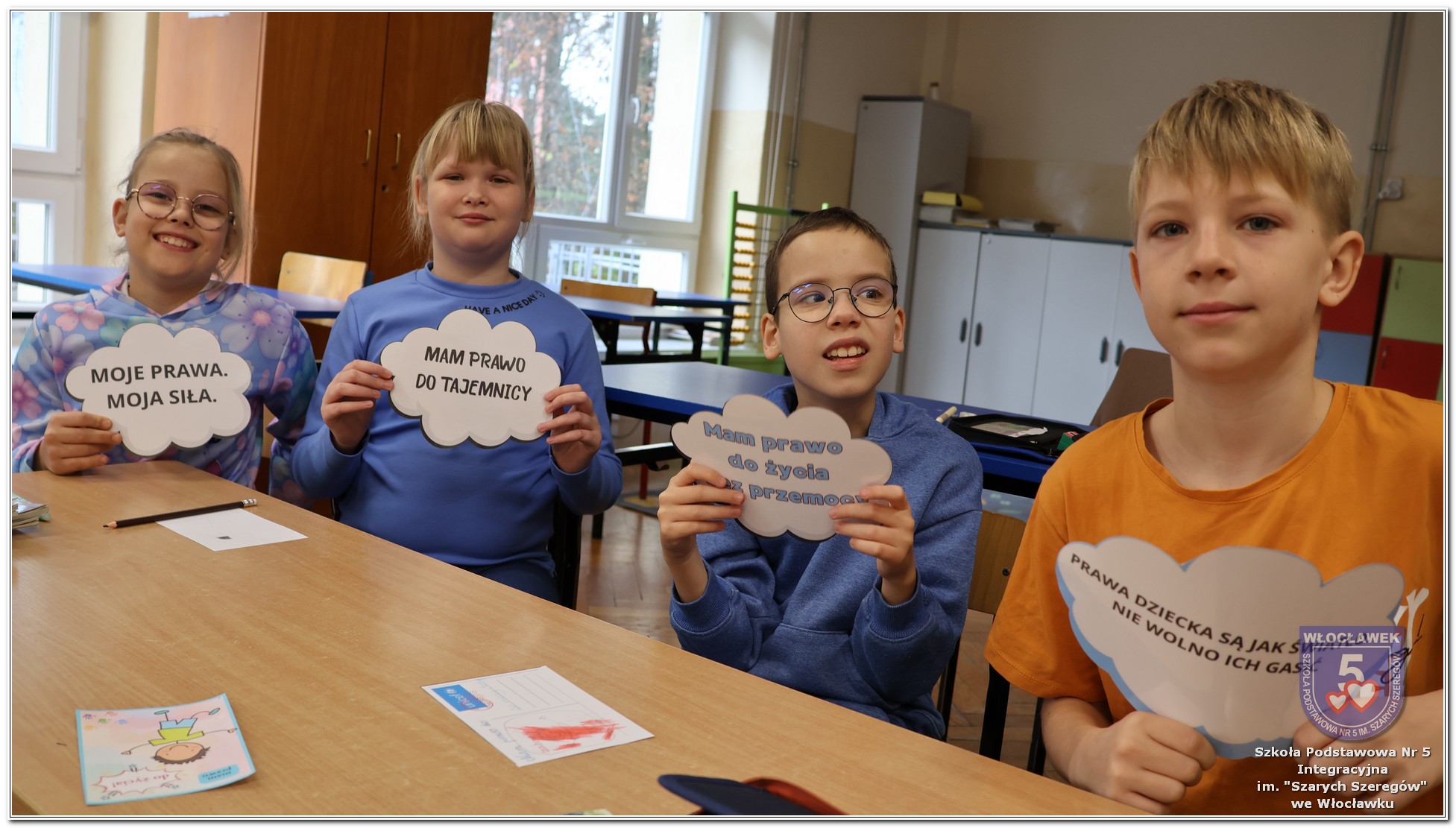 Międzynarodowy Dzień Praw Dziecka w naszej szkole przebiegał w wyjątkowej atmosferze – dominował kolor niebieski, symbol solidarności z dziećmi na całym świecie. Młodsze klasy uczestniczyły w zajęciach poświęconych prawom dziecka. Uczniowie oglądali filmy edukacyjne, które w przystępny sposób przybliżały im tematykę praw i obowiązków najmłodszych. Następnie dzieci zaprojektowały własne pocztówki pod hasłem „Moje prawo”, wyrażając w nich swoje marzenia i przekonania dotyczące sprawiedliwości i równości. Starsze klasy rywalizowały w emocjonujących Potyczkach Drużyn Praw Dziecka, w których naprzeciw siebie stanęli nauczyciele i uczniowie. Wielkie brawa dla niepokonanej Drużyny Uczniów! Rozgrywki miały charakter integracyjny – sportowe konkurencje łączyły zabawę z edukacją, a rywalizacja była okazją do wspólnego dialogu w atmosferze ruchu i współpracy. Całość wydarzenia podkreślała wagę praw dziecka w codziennym życiu szkoły i społeczności. Obchody były nie tylko lekcją wiedzy, ale także lekcją empatii, solidarności i wspólnego działania.