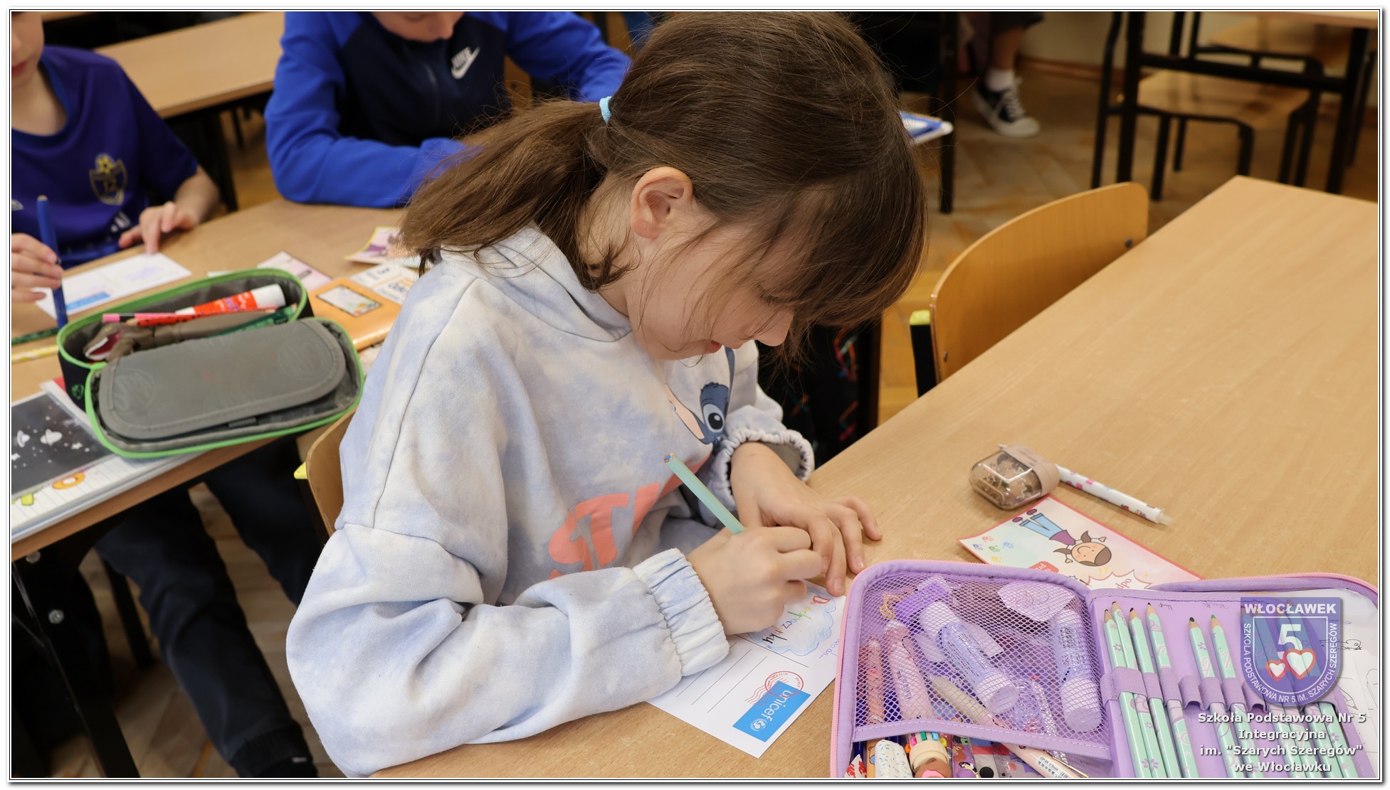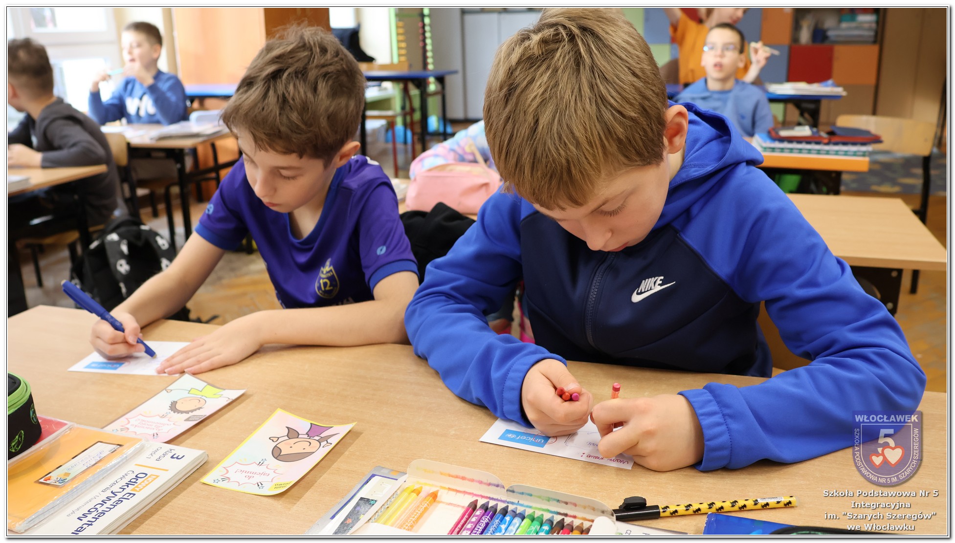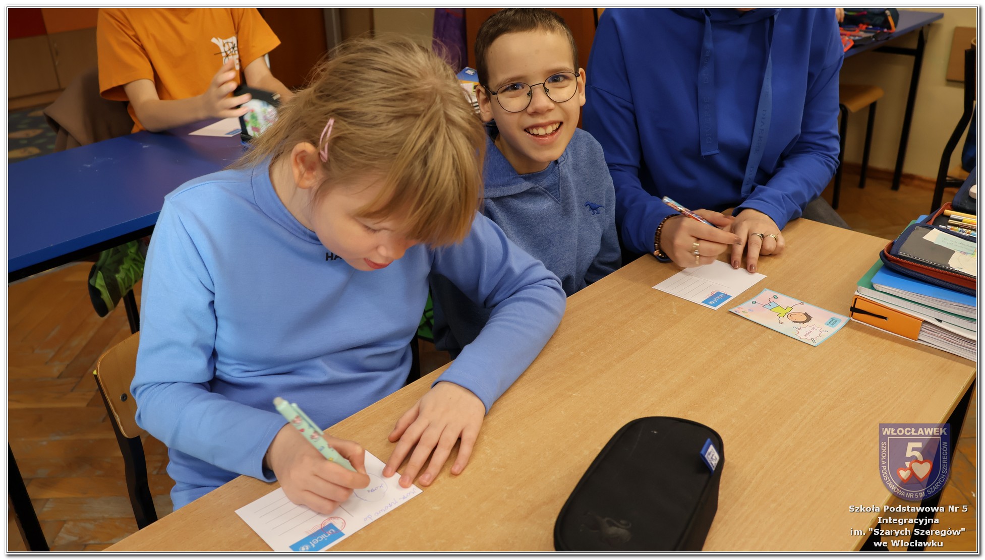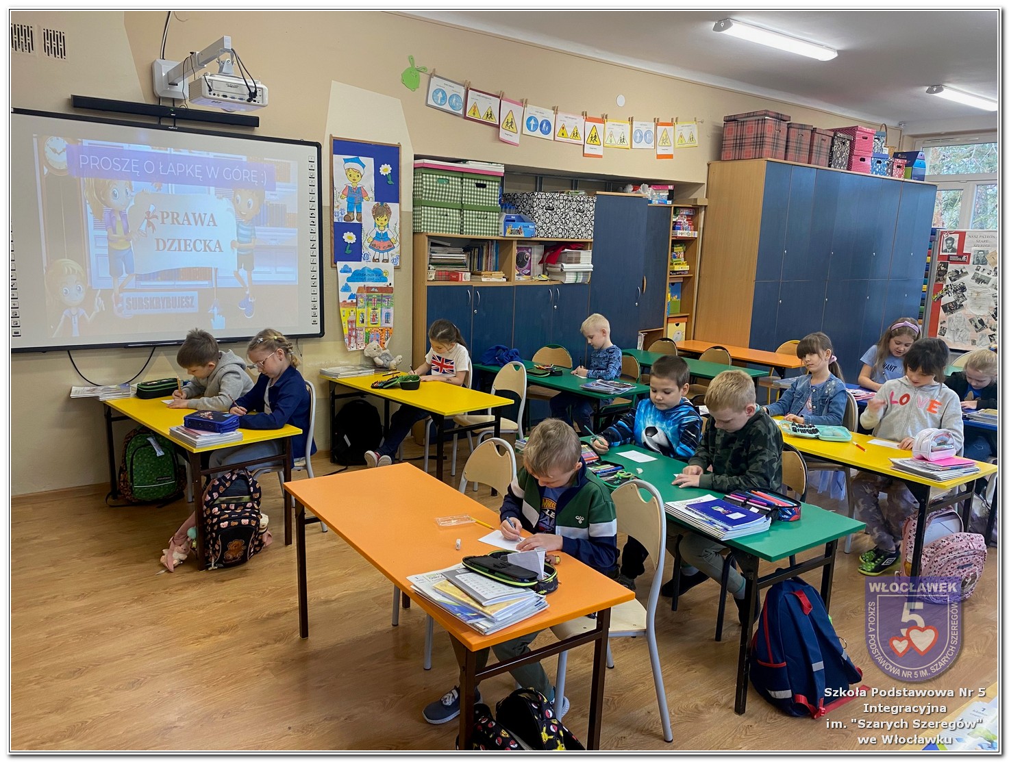 Międzynarodowy Dzień Praw Dziecka w naszej szkole przebiegał w wyjątkowej atmosferze – dominował kolor niebieski, symbol solidarności z dziećmi na całym świecie. Młodsze klasy uczestniczyły w zajęciach poświęconych prawom dziecka. Uczniowie oglądali filmy edukacyjne, które w przystępny sposób przybliżały im tematykę praw i obowiązków najmłodszych. Następnie dzieci zaprojektowały własne pocztówki pod hasłem „Moje prawo”, wyrażając w nich swoje marzenia i przekonania dotyczące sprawiedliwości i równości. Starsze klasy rywalizowały w emocjonujących Potyczkach Drużyn Praw Dziecka, w których naprzeciw siebie stanęli nauczyciele i uczniowie. Wielkie brawa dla niepokonanej Drużyny Uczniów! Rozgrywki miały charakter integracyjny – sportowe konkurencje łączyły zabawę z edukacją, a rywalizacja była okazją do wspólnego dialogu w atmosferze ruchu i współpracy. Całość wydarzenia podkreślała wagę praw dziecka w codziennym życiu szkoły i społeczności. Obchody były nie tylko lekcją wiedzy, ale także lekcją empatii, solidarności i wspólnego działania.