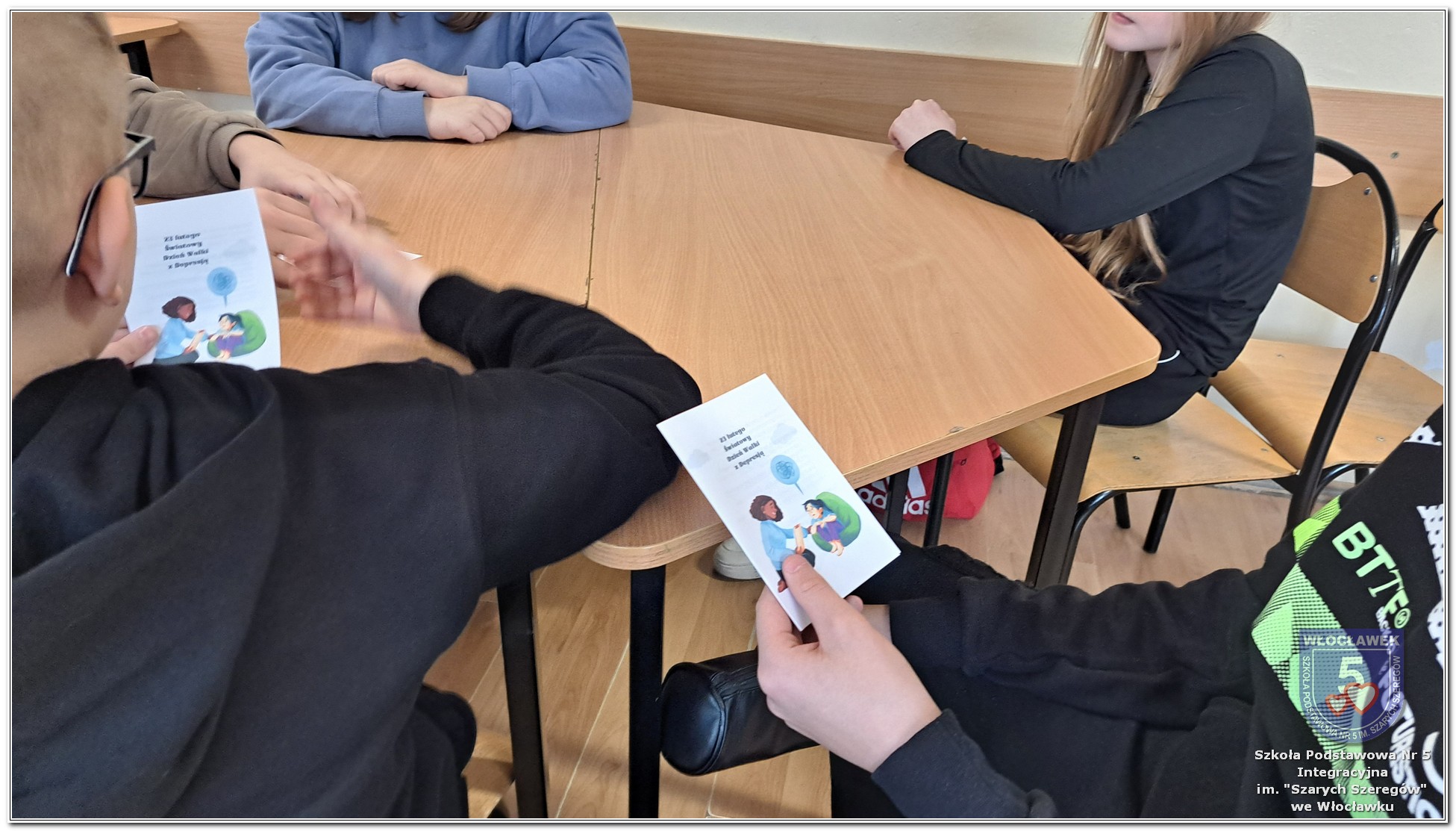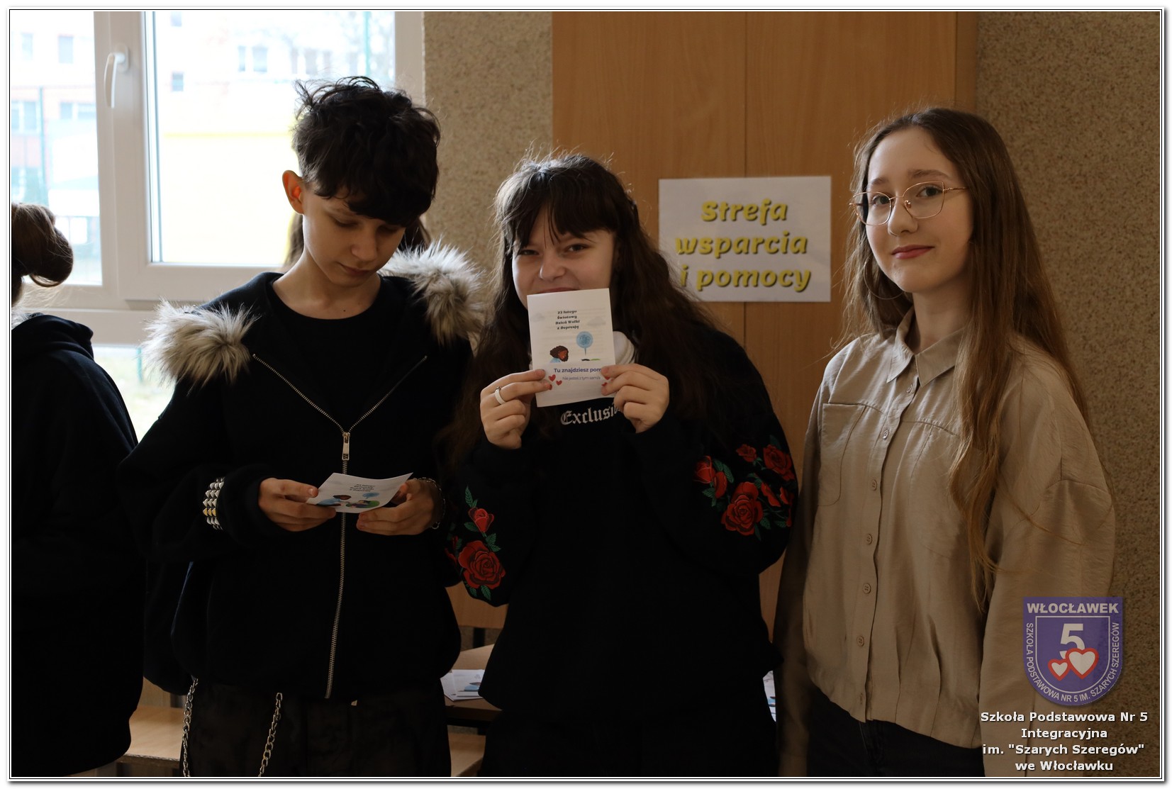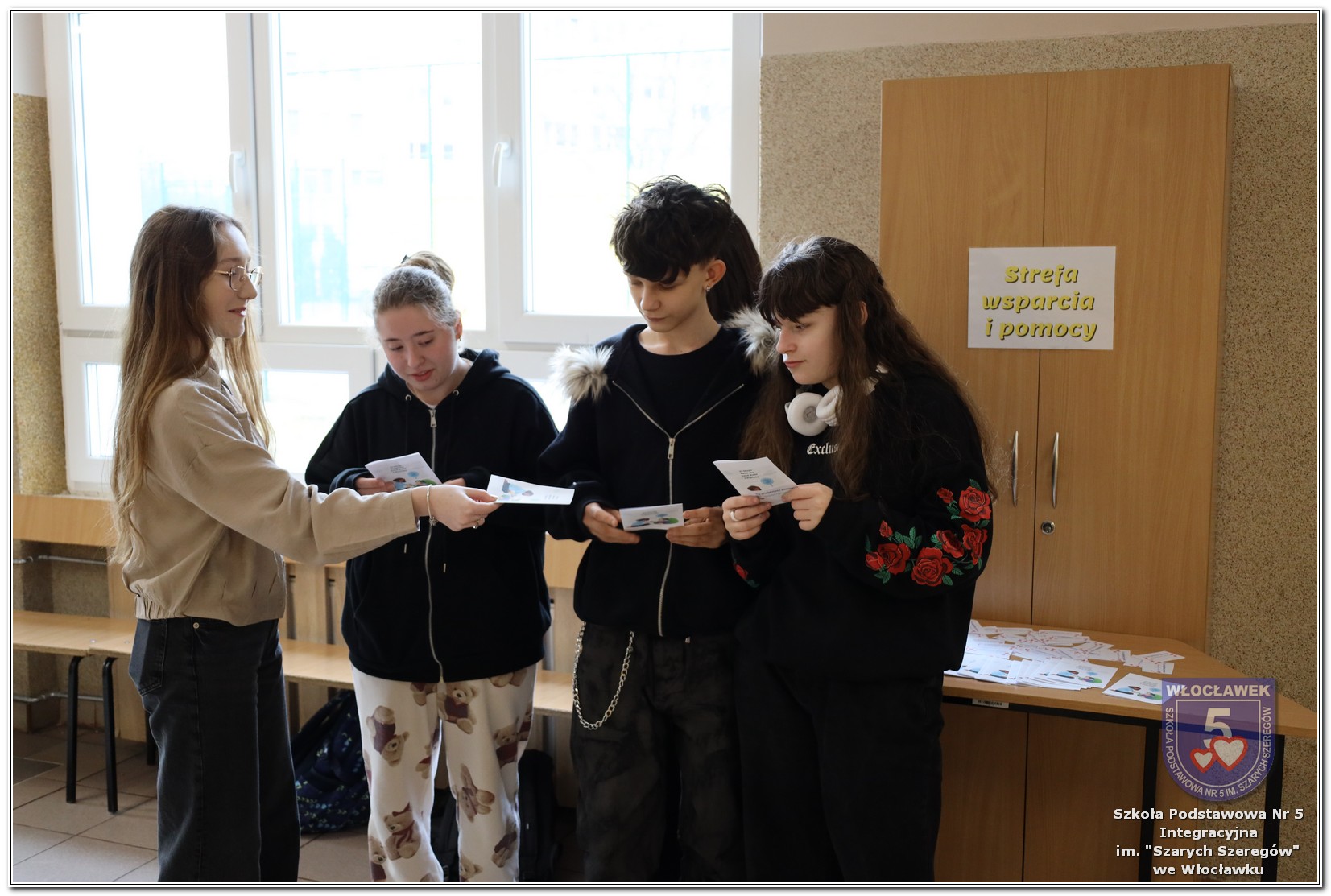 Uczniowie klas 4–8 otrzymali ulotki informacyjne przygotowane przez psychologa szkolnego, zawierające najważniejsze informacje dotyczące depresji i miejsc, w których można szukać wsparcia. Dodatkowo jedna z uczennic, Maja Szadkowska z klasy 8b, samodzielnie przygotowała dla swoich koleżanek i kolegów ulotkę z numerami telefonów, pod którymi można uzyskać pomoc. Wszystkie ulotki były dostępne w Strefie Wsparcia i Pomocy.