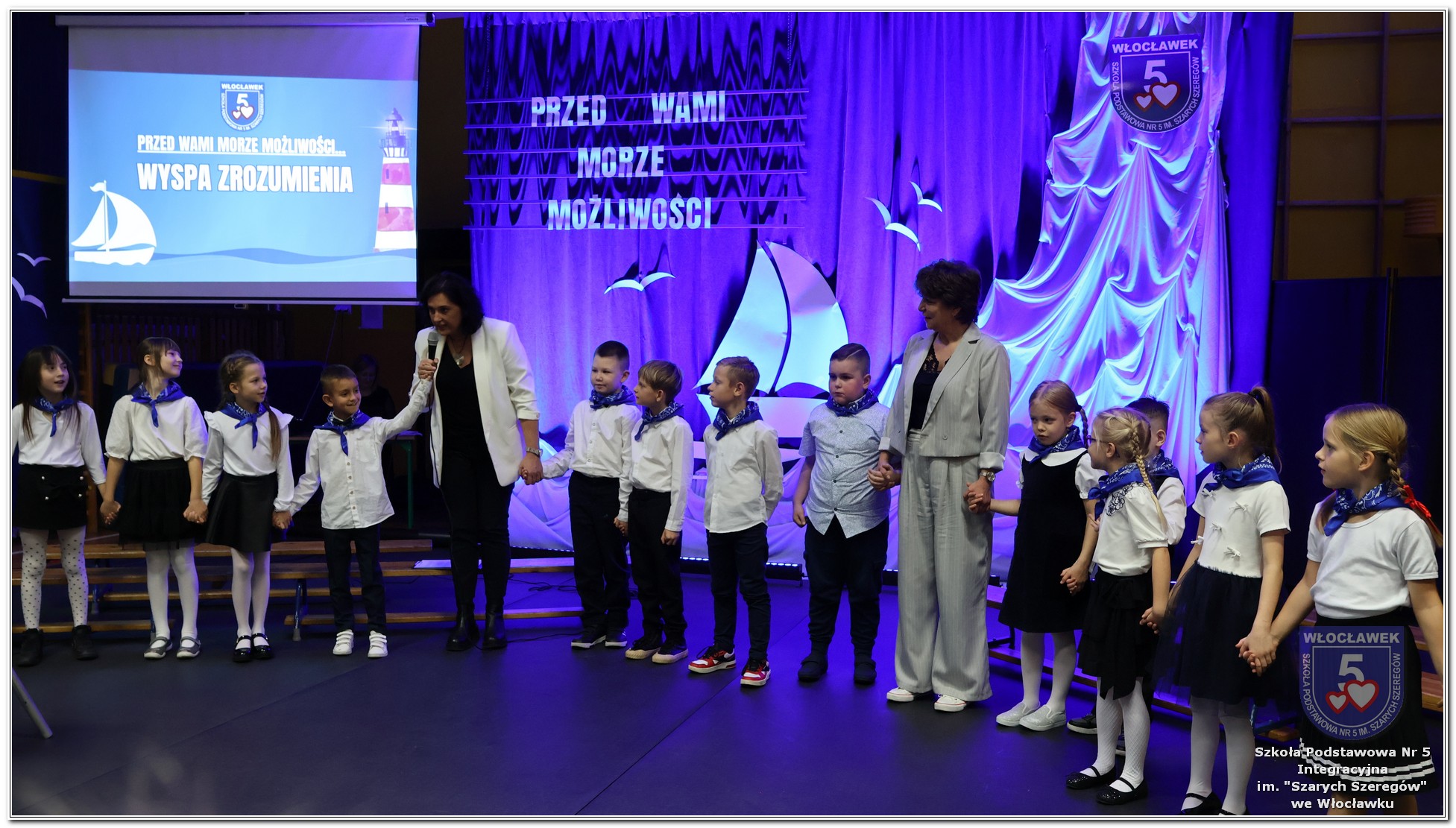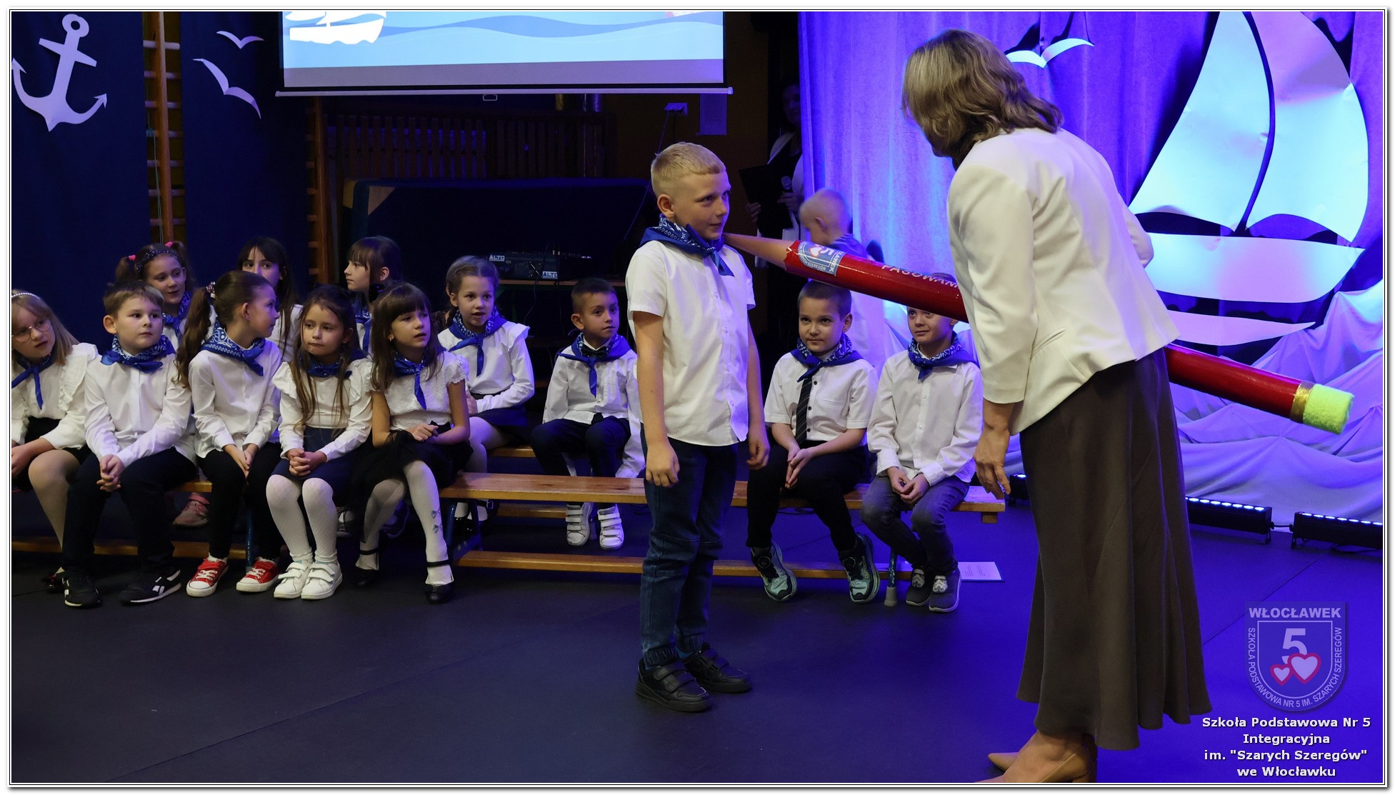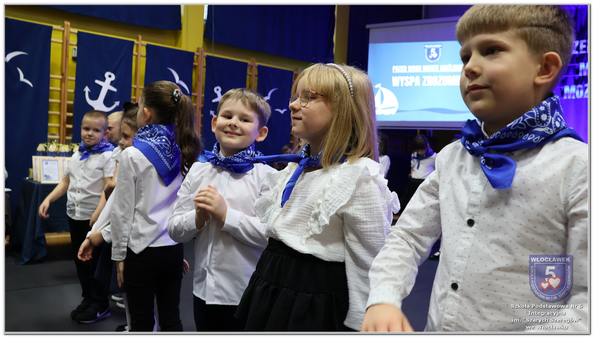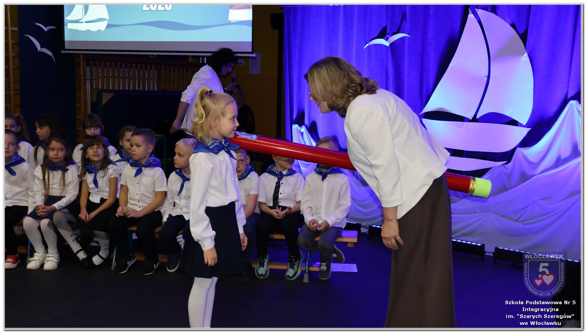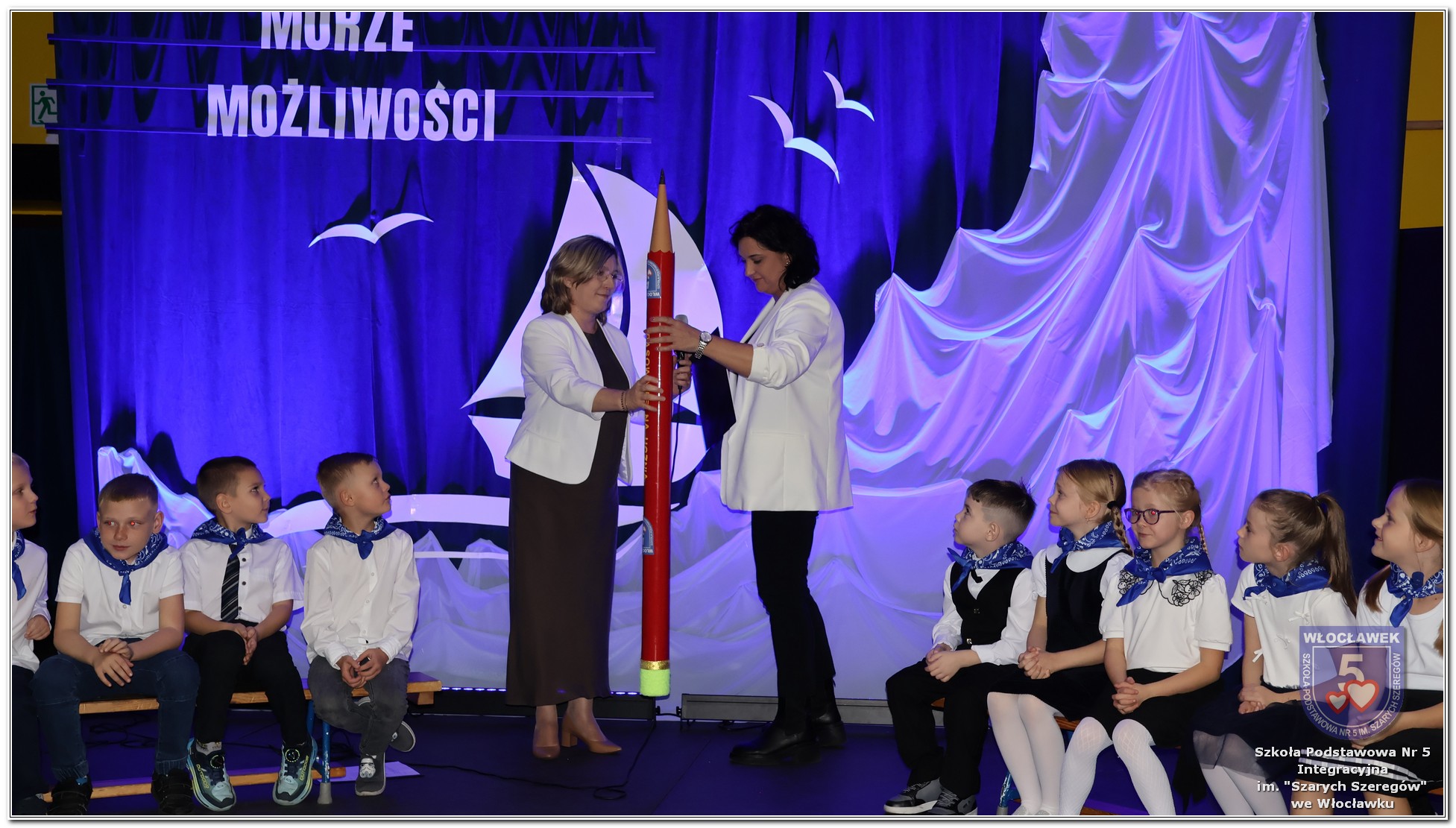 W czwartek, 23 października odbyła się uroczystość Pasowania Uczniów Klas 1. Pod hasłem „Przed Wami morze możliwości” pierwszoklasiści wyruszyli w symboliczną podróż ku wiedzy, przyjaźni i odkrywaniu świata. W obecności nauczycieli, rodziców i starszych kolegów, dzieci z klas pierwszych złożyły ślubowanie, a następnie zostały pasowane symbolicznym ołówkiem. Każdy uczeń otrzymał upominek przygotowany przez Radę Rodziców – drobną pamiątkę, która będzie przypominać o tym wyjątkowym dniu i pierwszym kroku w szkolną przygodę. Uroczystość miała spokojny, ciepły charakter. Nie zabrakło występów artystycznych, wspólnych gestów i słów, które podkreślały wagę tego dnia. Całość dopełniały dekoracje i motywy morskie – jako metafora otwartych horyzontów i dziecięcej ciekawości.