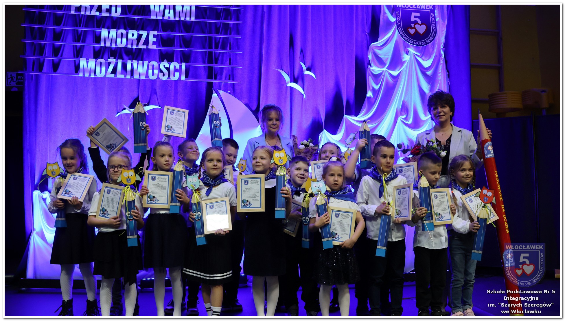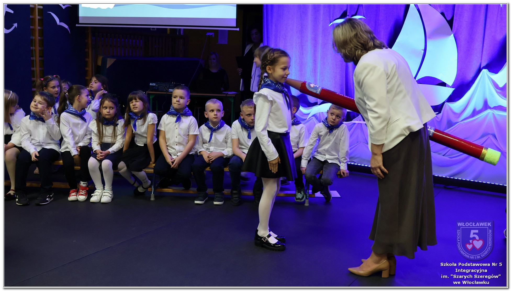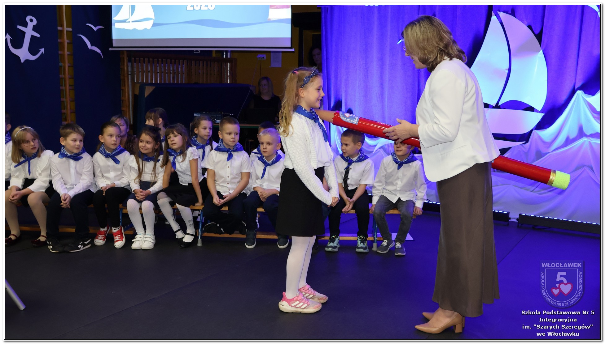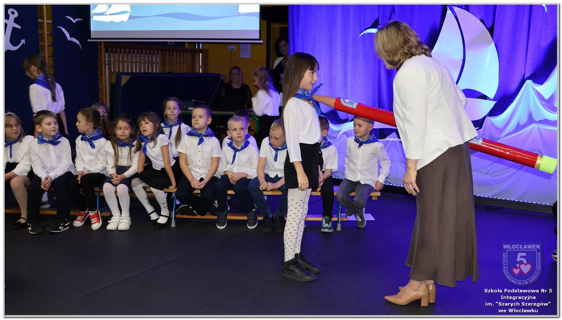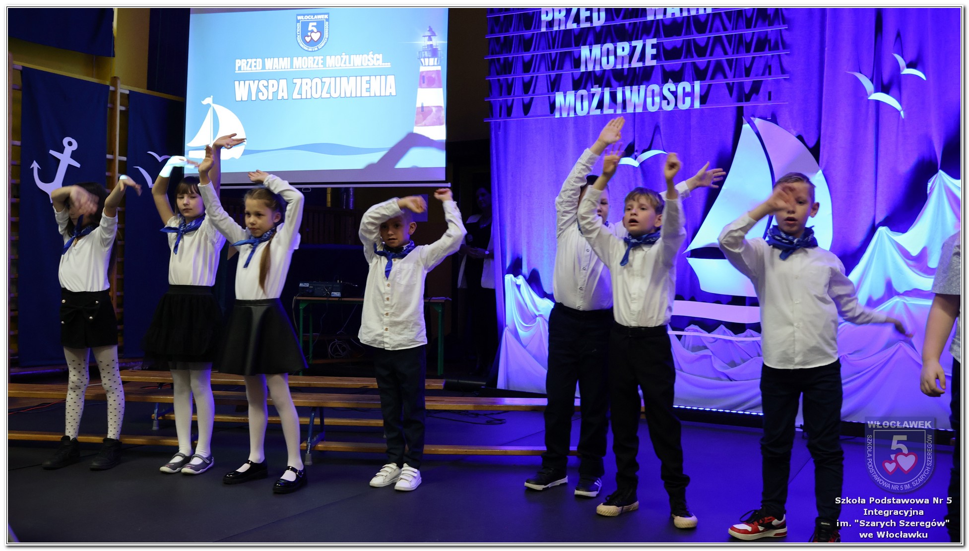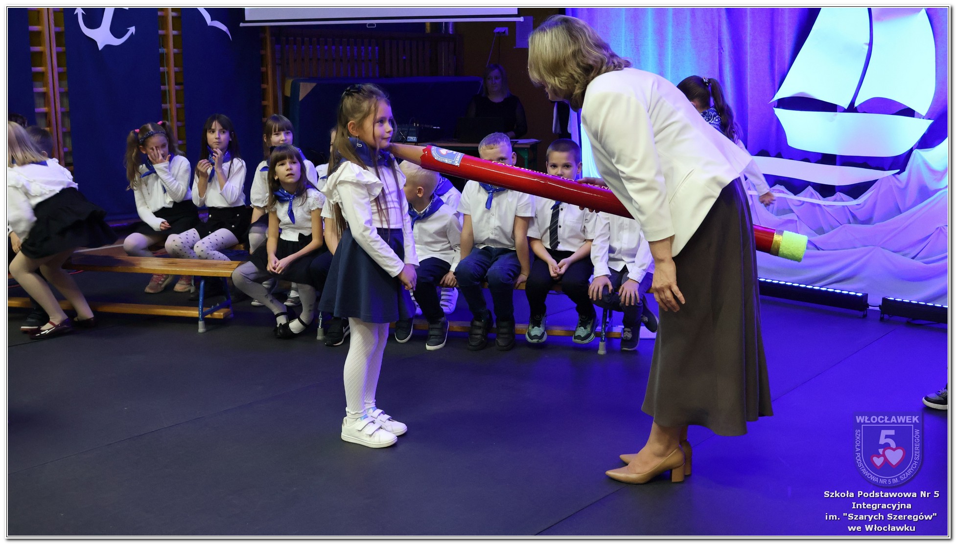 W czwartek, 23 października odbyła się uroczystość Pasowania Uczniów Klas 1. Pod hasłem „Przed Wami morze możliwości” pierwszoklasiści wyruszyli w symboliczną podróż ku wiedzy, przyjaźni i odkrywaniu świata. W obecności nauczycieli, rodziców i starszych kolegów, dzieci z klas pierwszych złożyły ślubowanie, a następnie zostały pasowane symbolicznym ołówkiem. Każdy uczeń otrzymał upominek przygotowany przez Radę Rodziców – drobną pamiątkę, która będzie przypominać o tym wyjątkowym dniu i pierwszym kroku w szkolną przygodę. Uroczystość miała spokojny, ciepły charakter. Nie zabrakło występów artystycznych, wspólnych gestów i słów, które podkreślały wagę tego dnia. Całość dopełniały dekoracje i motywy morskie – jako metafora otwartych horyzontów i dziecięcej ciekawości.