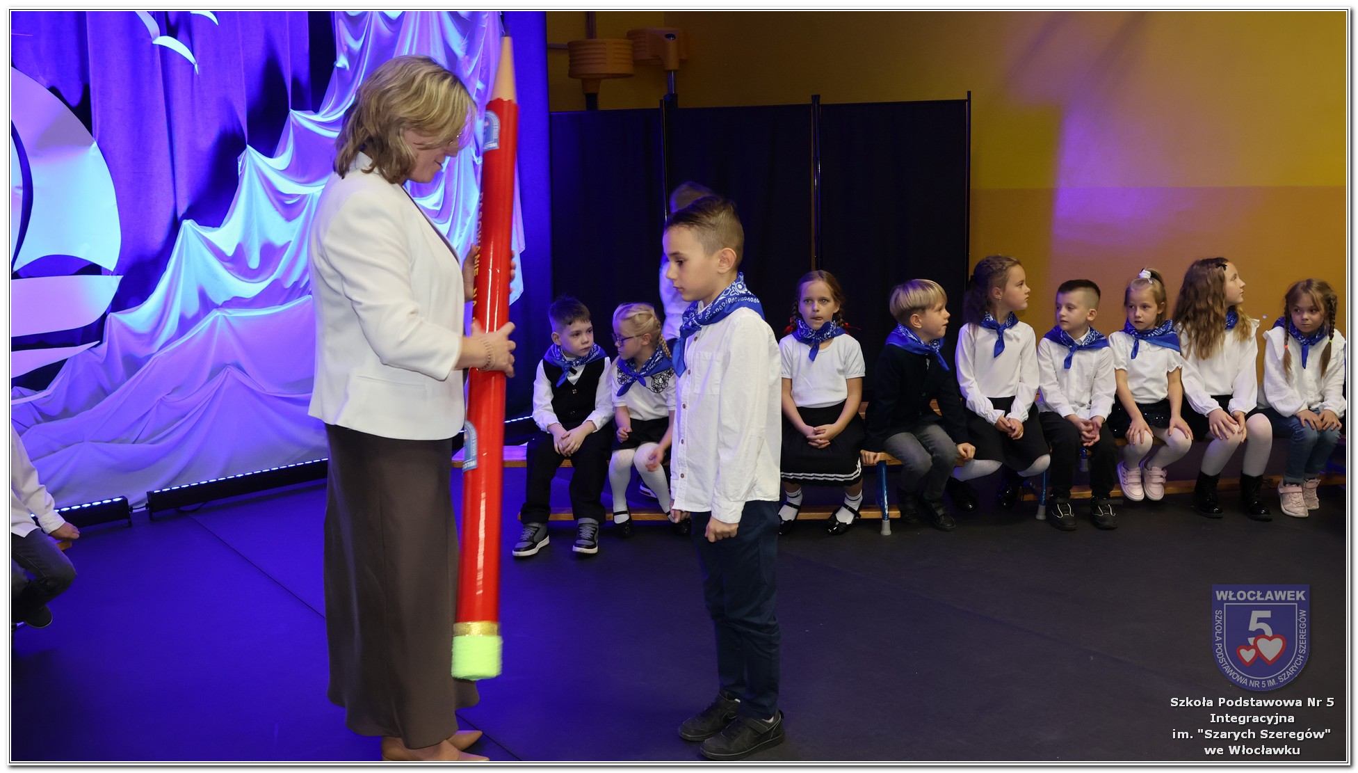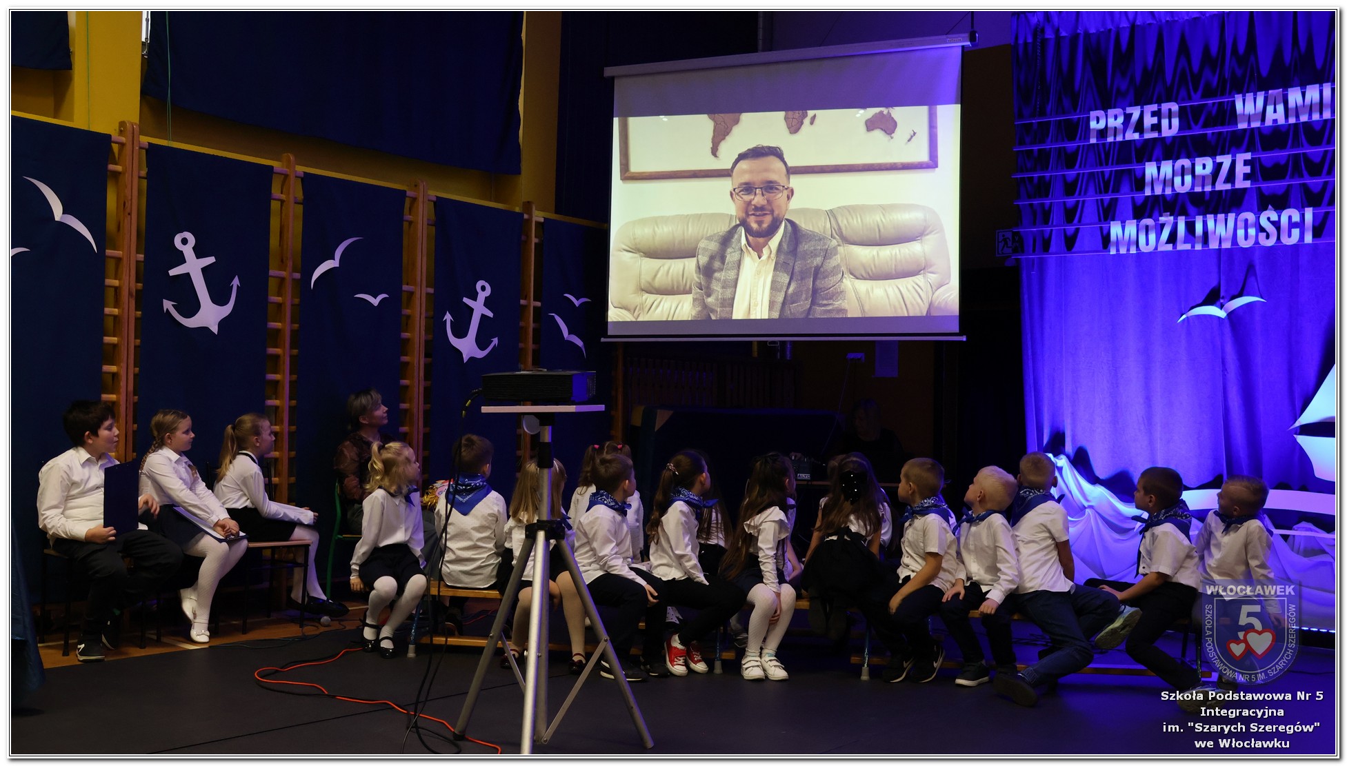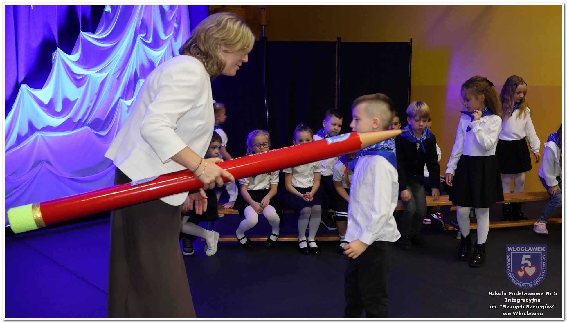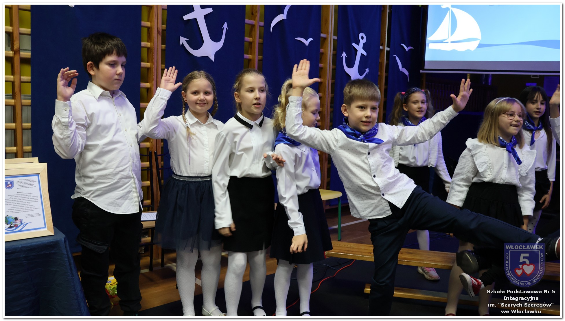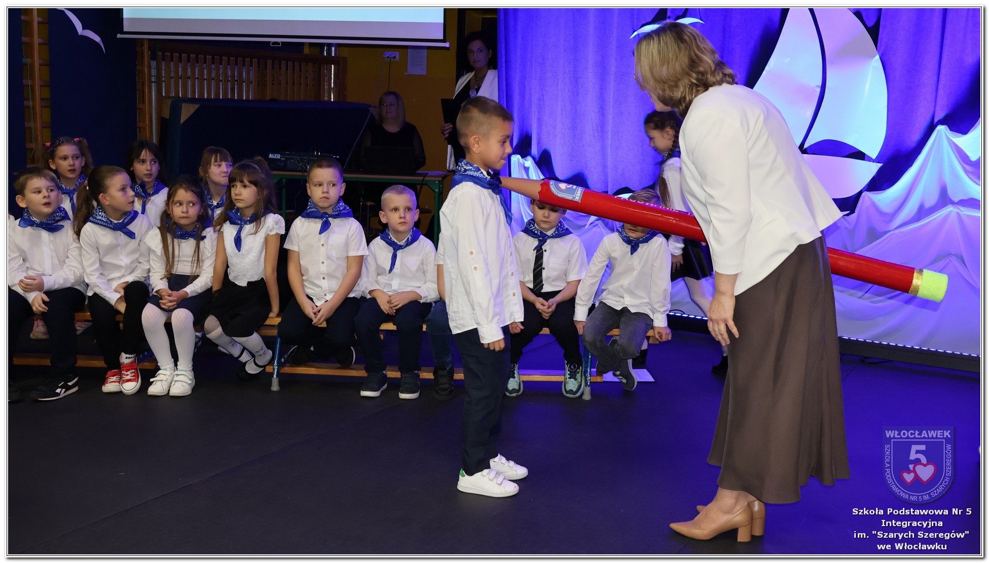 W czwartek, 23 października odbyła się uroczystość Pasowania Uczniów Klas 1. Pod hasłem „Przed Wami morze możliwości” pierwszoklasiści wyruszyli w symboliczną podróż ku wiedzy, przyjaźni i odkrywaniu świata. W obecności nauczycieli, rodziców i starszych kolegów, dzieci z klas pierwszych złożyły ślubowanie, a następnie zostały pasowane symbolicznym ołówkiem. Każdy uczeń otrzymał upominek przygotowany przez Radę Rodziców – drobną pamiątkę, która będzie przypominać o tym wyjątkowym dniu i pierwszym kroku w szkolną przygodę. Uroczystość miała spokojny, ciepły charakter. Nie zabrakło występów artystycznych, wspólnych gestów i słów, które podkreślały wagę tego dnia. Całość dopełniały dekoracje i motywy morskie – jako metafora otwartych horyzontów i dziecięcej ciekawości.