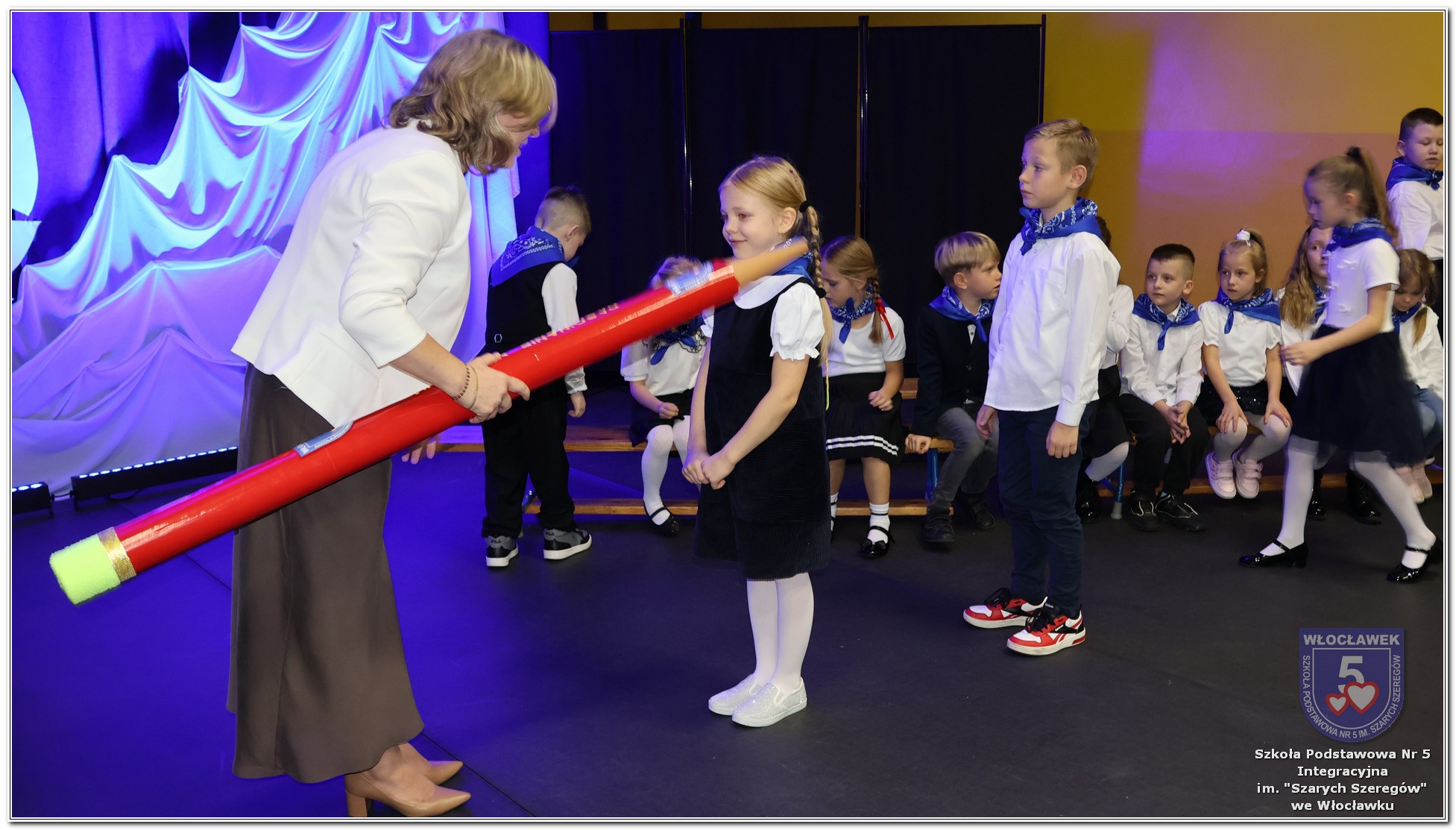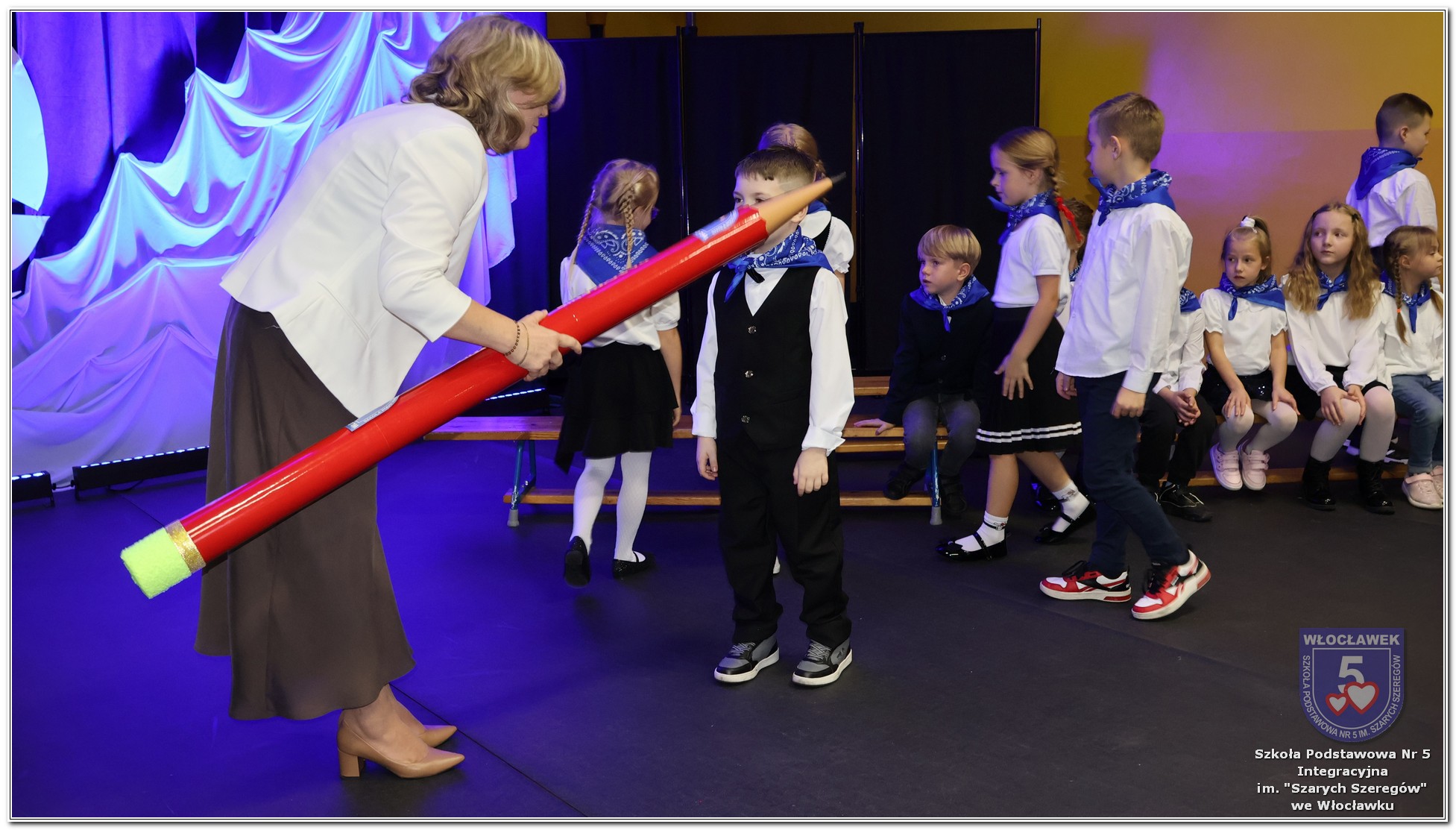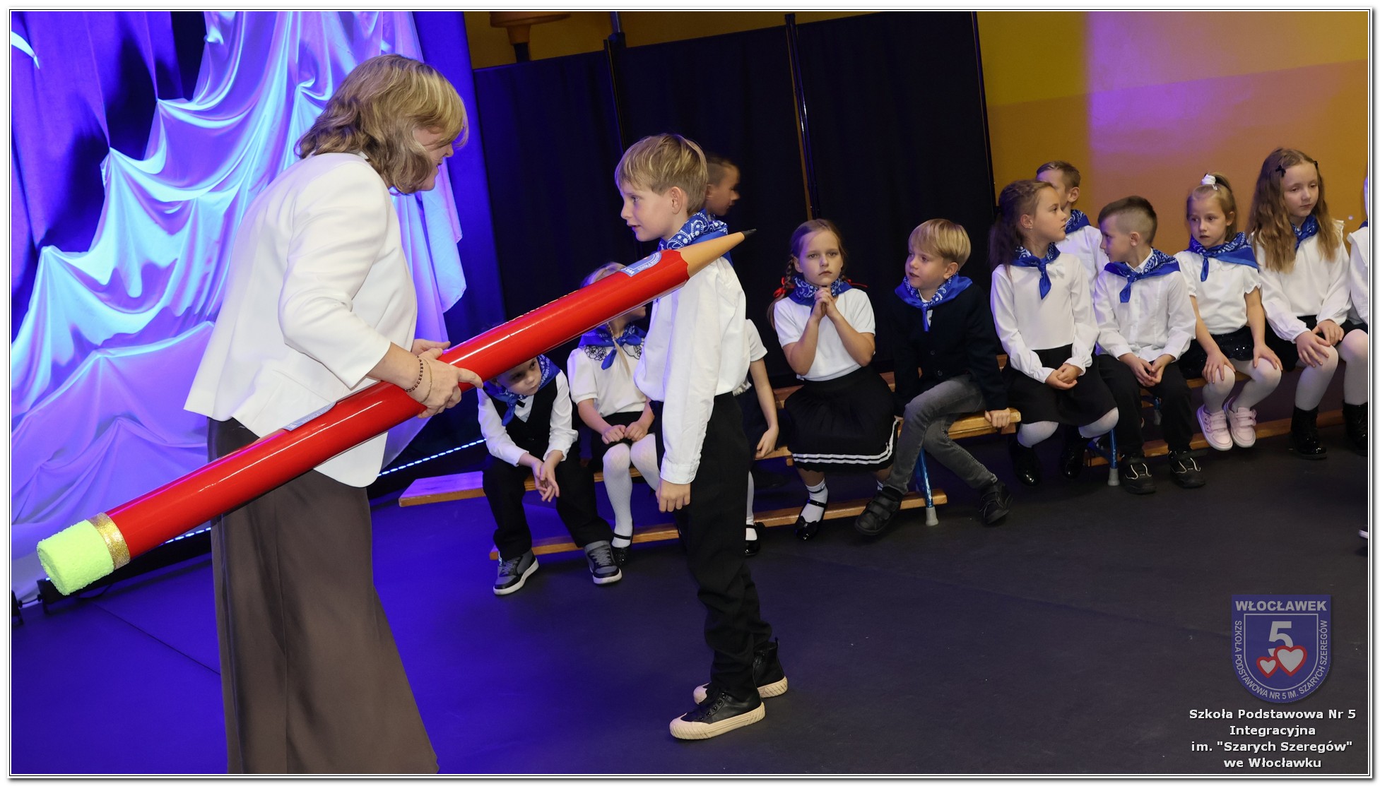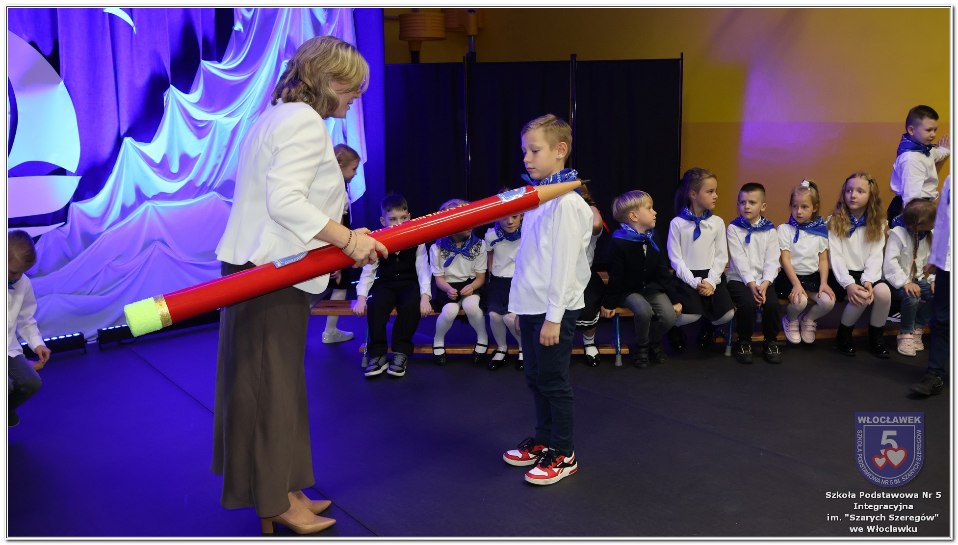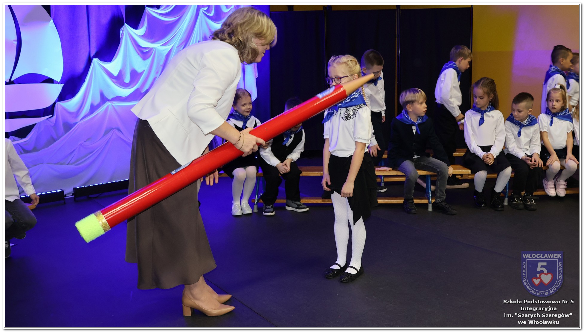 W czwartek, 23 października odbyła się uroczystość Pasowania Uczniów Klas 1. Pod hasłem „Przed Wami morze możliwości” pierwszoklasiści wyruszyli w symboliczną podróż ku wiedzy, przyjaźni i odkrywaniu świata. W obecności nauczycieli, rodziców i starszych kolegów, dzieci z klas pierwszych złożyły ślubowanie, a następnie zostały pasowane symbolicznym ołówkiem. Każdy uczeń otrzymał upominek przygotowany przez Radę Rodziców – drobną pamiątkę, która będzie przypominać o tym wyjątkowym dniu i pierwszym kroku w szkolną przygodę. Uroczystość miała spokojny, ciepły charakter. Nie zabrakło występów artystycznych, wspólnych gestów i słów, które podkreślały wagę tego dnia. Całość dopełniały dekoracje i motywy morskie – jako metafora otwartych horyzontów i dziecięcej ciekawości.