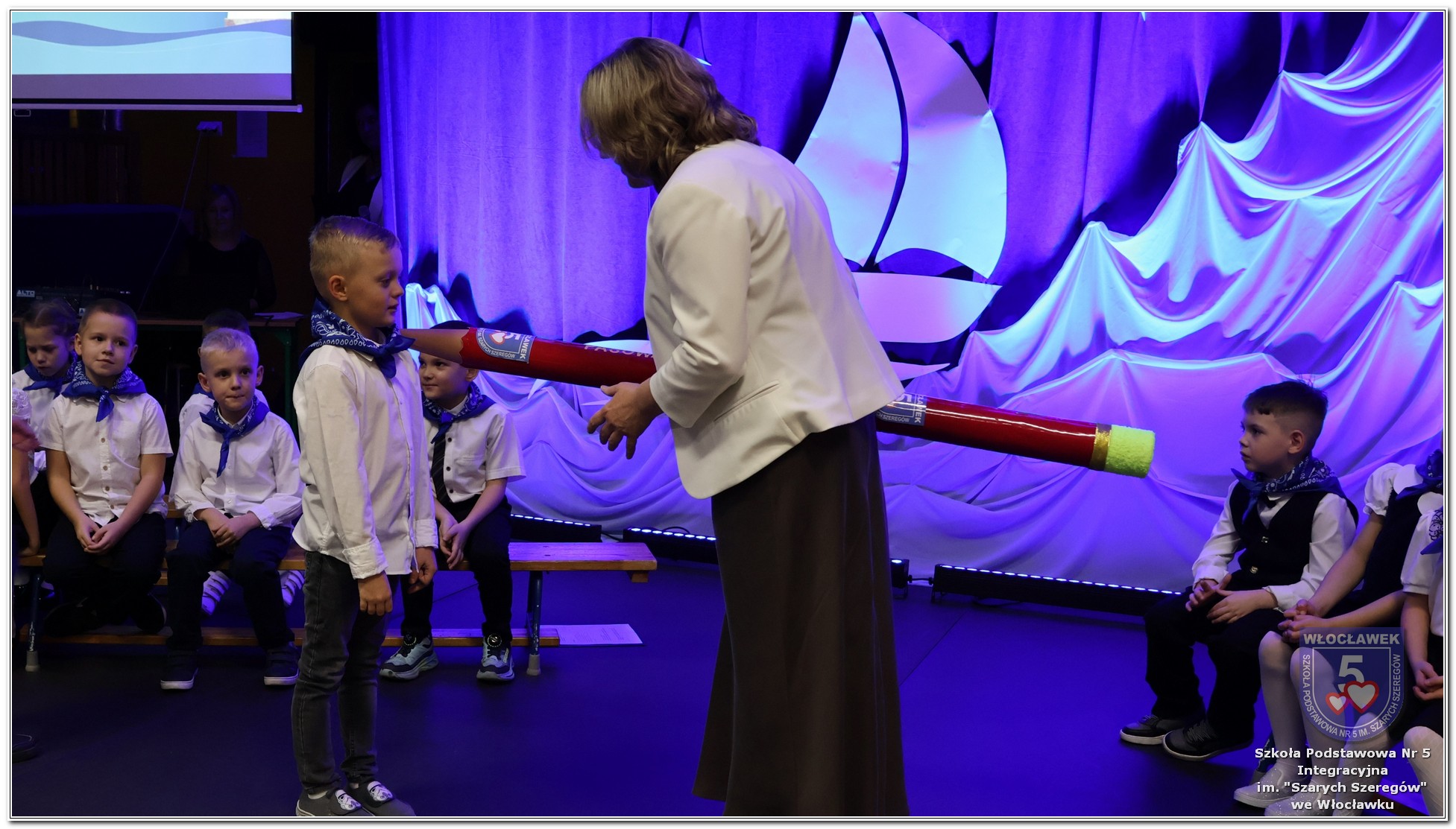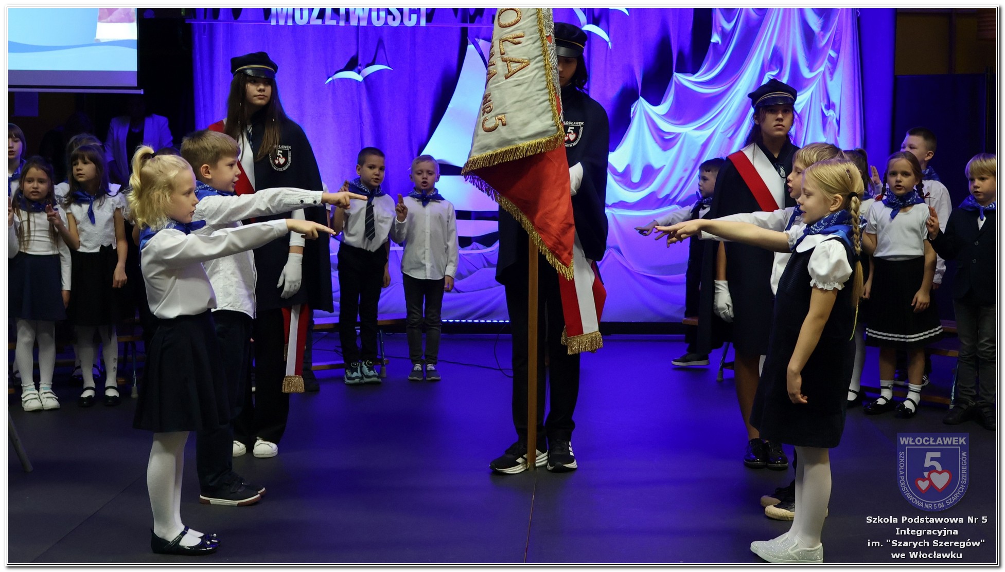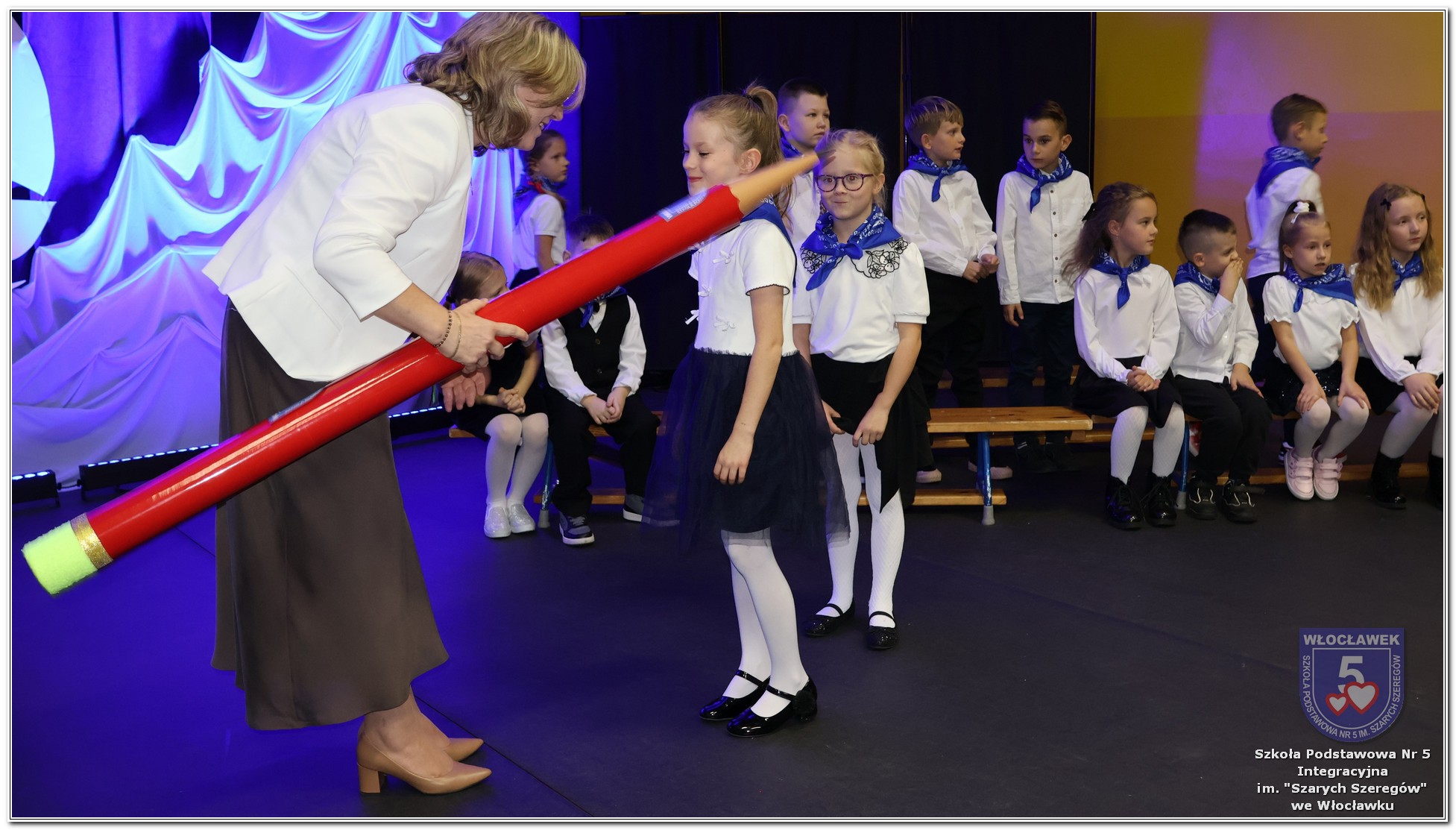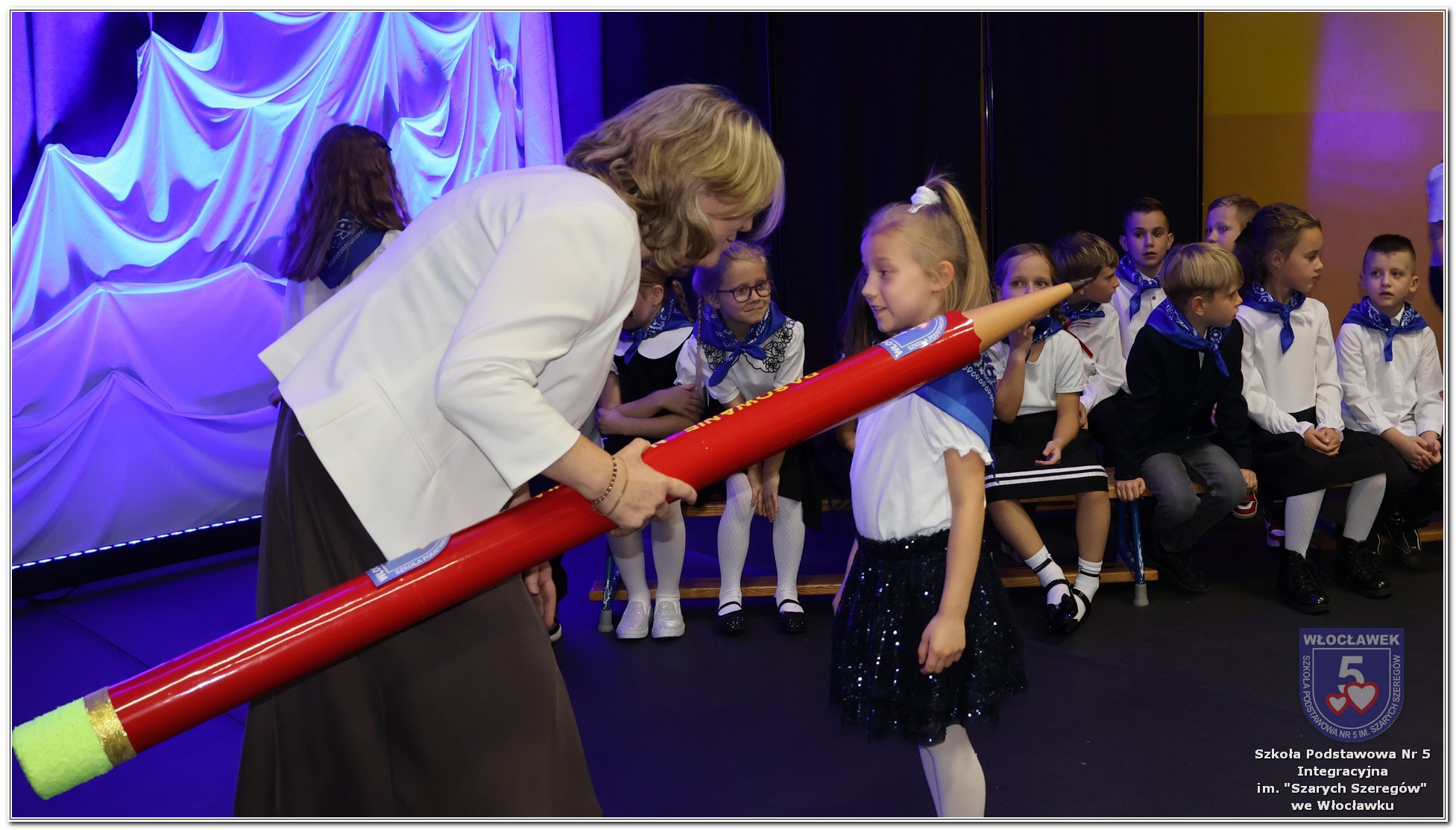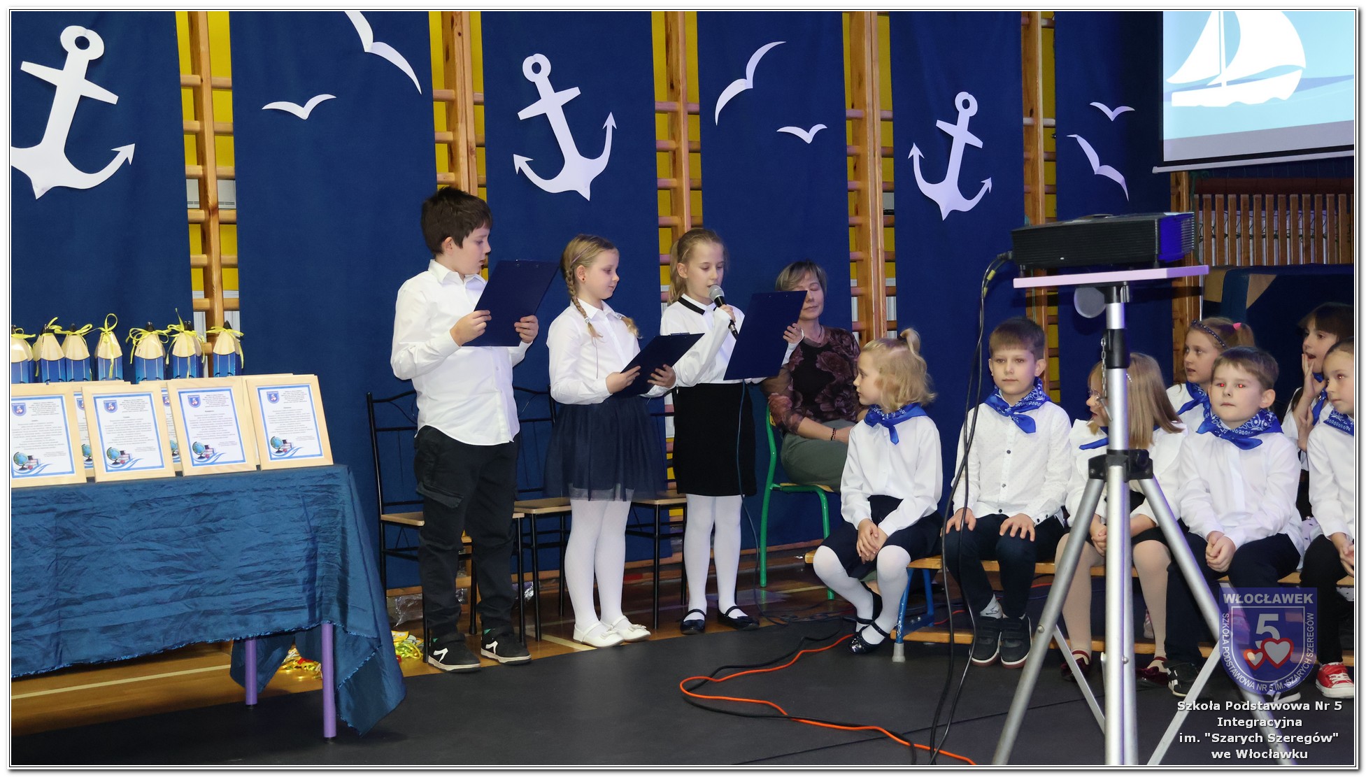 W czwartek, 23 października odbyła się uroczystość Pasowania Uczniów Klas 1. Pod hasłem „Przed Wami morze możliwości” pierwszoklasiści wyruszyli w symboliczną podróż ku wiedzy, przyjaźni i odkrywaniu świata. W obecności nauczycieli, rodziców i starszych kolegów, dzieci z klas pierwszych złożyły ślubowanie, a następnie zostały pasowane symbolicznym ołówkiem. Każdy uczeń otrzymał upominek przygotowany przez Radę Rodziców – drobną pamiątkę, która będzie przypominać o tym wyjątkowym dniu i pierwszym kroku w szkolną przygodę. Uroczystość miała spokojny, ciepły charakter. Nie zabrakło występów artystycznych, wspólnych gestów i słów, które podkreślały wagę tego dnia. Całość dopełniały dekoracje i motywy morskie – jako metafora otwartych horyzontów i dziecięcej ciekawości.