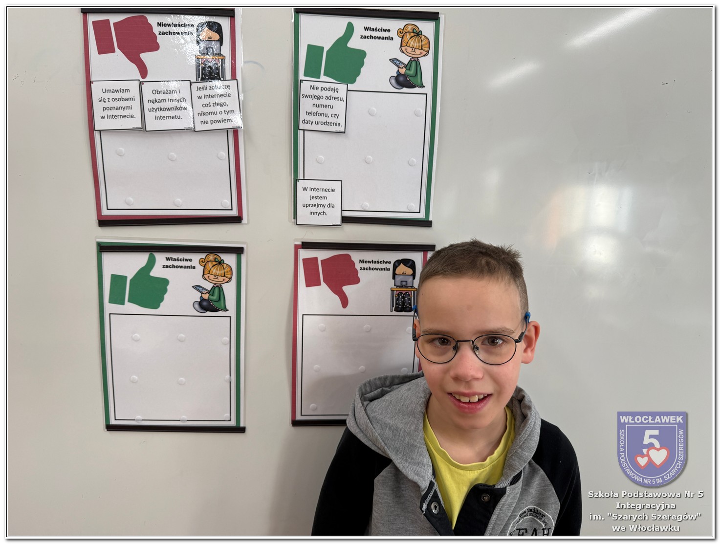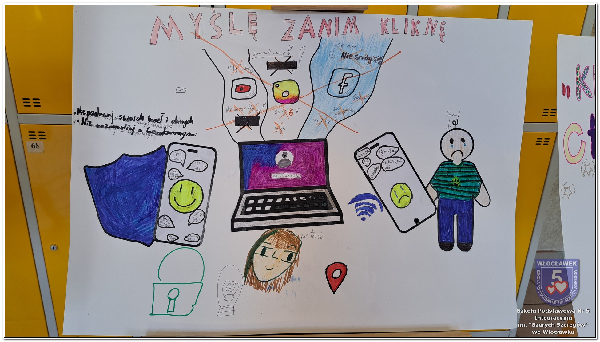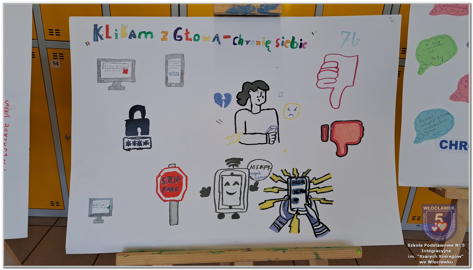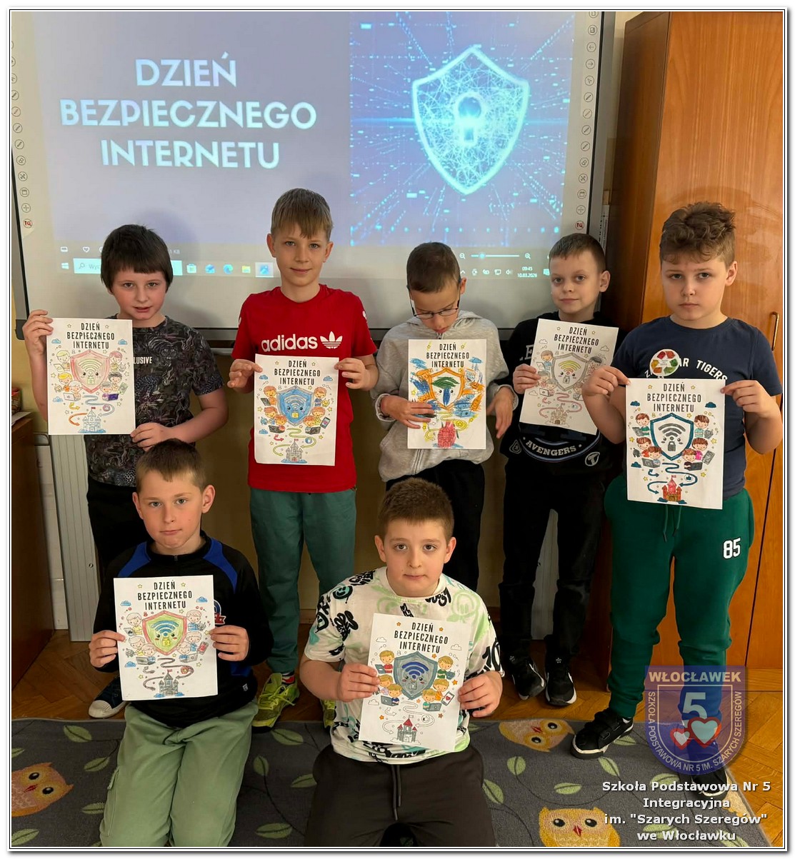W dniach od 28 stycznia do 13 marca 2026 roku, nasza szkoła podjęła wiele działań związanych z propagowaniem bezpiecznego poruszania się w internecie wśród uczniów i rodziców. W styczniu w czasie zabrań z rodzicami wychowawcy wszystkich klas zapoznali rodziców z prezentacją „Dziecko w internecie – rodzicu na co powinieneś zwrócić uwagę”. W klasach I – III odbyły się pogadanki na temat zasad bezpiecznego korzystania z sieci. Uczniowie wspólnie stworzyli klasowy kontrakt określający, co wolno, a czego nie wolno robić w internecie. Dzieci wykonywały również zadania praktyczne – segregowały miłe i niemiłe wiadomości, ucząc się rozpoznawać właściwe i niewłaściwe zachowania w sieci. Ponadto zapisywały na kartach, jakie informacje można udostępniać w internecie, a które dane powinny pozostać prywatne. W klasach IV – VIII uczniowie oglądali filmy profilaktyczne dotyczące bezpieczeństwa w sieci i cyberprzemocy, które podsumowane zostały pogadanką z wychowawcami oraz wykonywali klasowe plakaty pod hasłem „Klikam z głową – chronię siebie i innych”. Ponadto uczniowie klas IV – VIII wzięli udział w konkursie zorganizowanym przez nauczycieli informatyki „Higiena i bezpieczeństwo cyfrowe”. Wiele zadań z zakresu bezpieczeństwa w sieci będzie nadal kontynuowanych w miesiącu marcu.