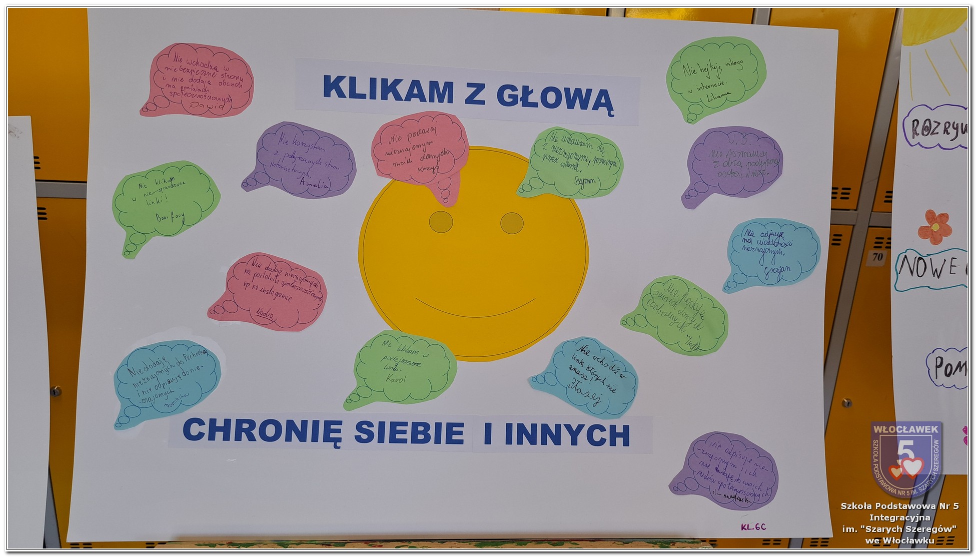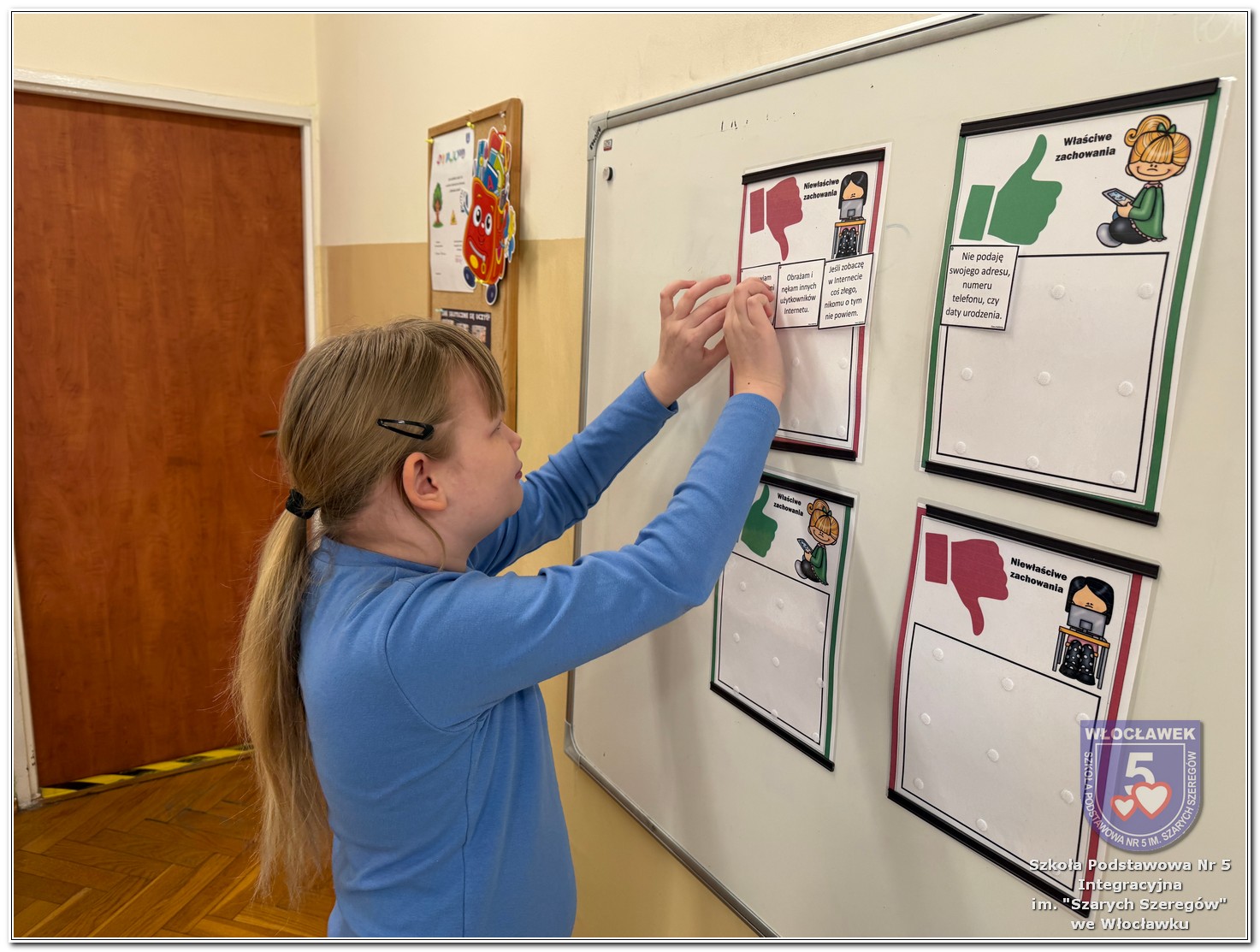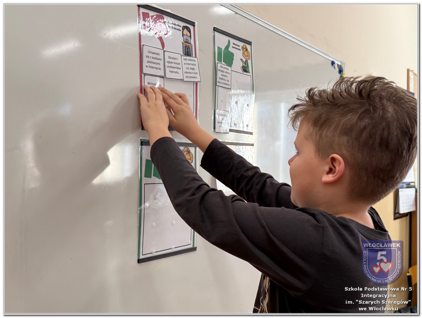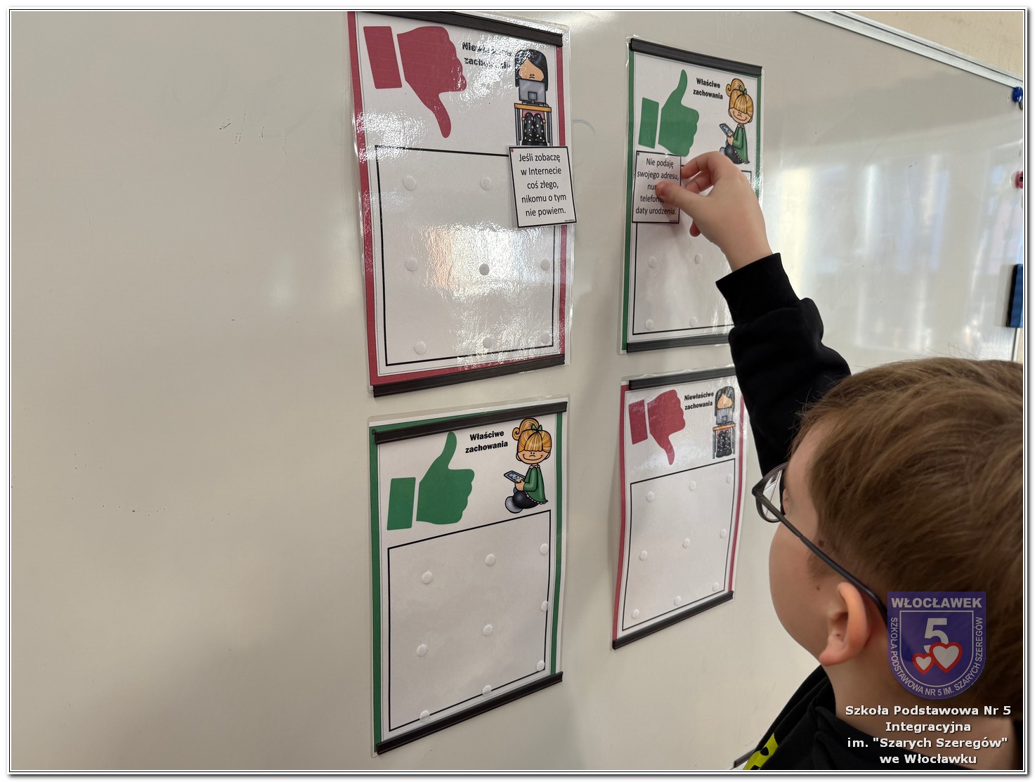 W dniach od 28 stycznia do 13 marca 2026 roku, nasza szkoła podjęła wiele działań związanych z propagowaniem bezpiecznego poruszania się w internecie wśród uczniów i rodziców. W styczniu w czasie zabrań z rodzicami wychowawcy wszystkich klas zapoznali rodziców z prezentacją „Dziecko w internecie – rodzicu na co powinieneś zwrócić uwagę”. W klasach I – III odbyły się pogadanki na temat zasad bezpiecznego korzystania z sieci. Uczniowie wspólnie stworzyli klasowy kontrakt określający, co wolno, a czego nie wolno robić w internecie. Dzieci wykonywały również zadania praktyczne – segregowały miłe i niemiłe wiadomości, ucząc się rozpoznawać właściwe i niewłaściwe zachowania w sieci. Ponadto zapisywały na kartach, jakie informacje można udostępniać w internecie, a które dane powinny pozostać prywatne. W klasach IV – VIII uczniowie oglądali filmy profilaktyczne dotyczące bezpieczeństwa w sieci i cyberprzemocy, które podsumowane zostały pogadanką z wychowawcami oraz wykonywali klasowe plakaty pod hasłem „Klikam z głową – chronię siebie i innych”. Ponadto uczniowie klas IV – VIII wzięli udział w konkursie zorganizowanym przez nauczycieli informatyki „Higiena i bezpieczeństwo cyfrowe”. Wiele zadań z zakresu bezpieczeństwa w sieci będzie nadal kontynuowanych w miesiącu marcu.