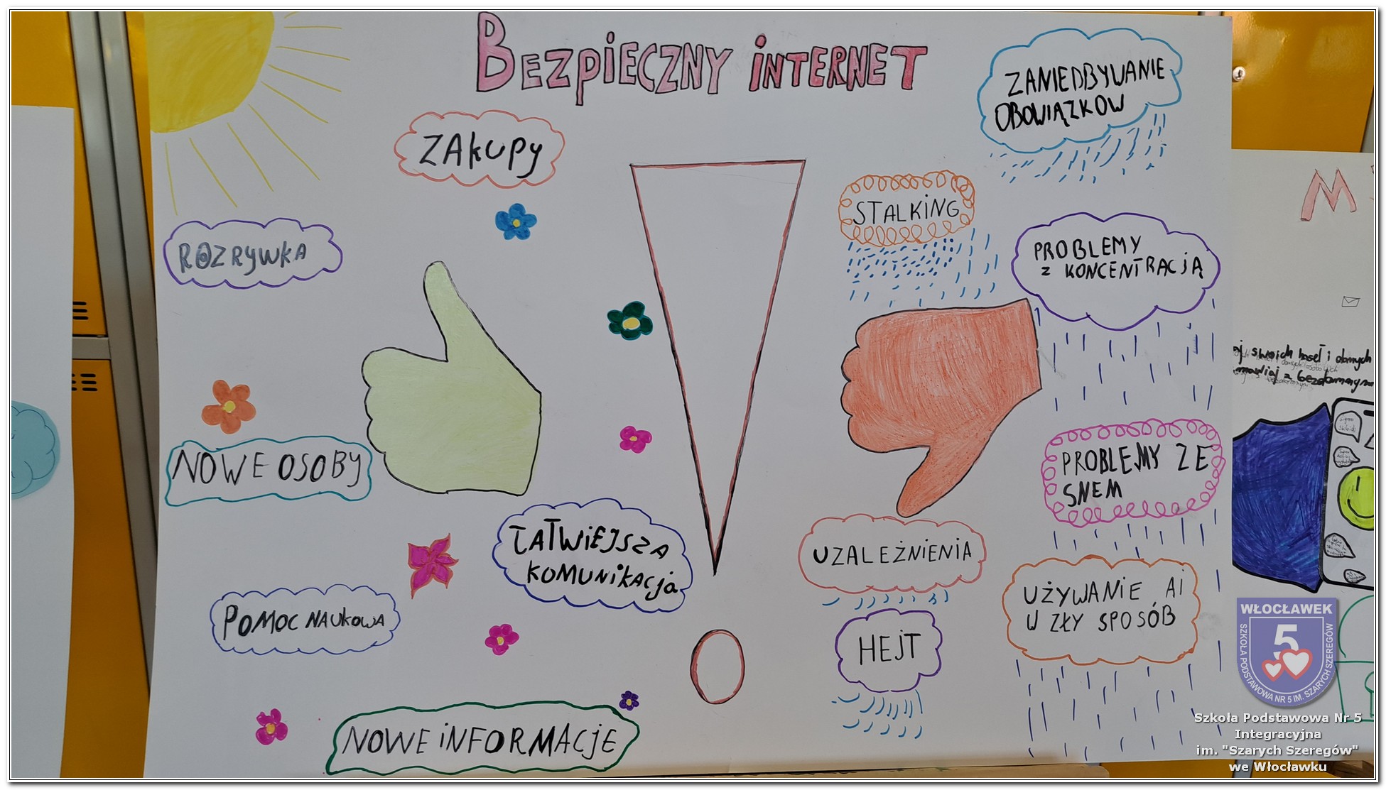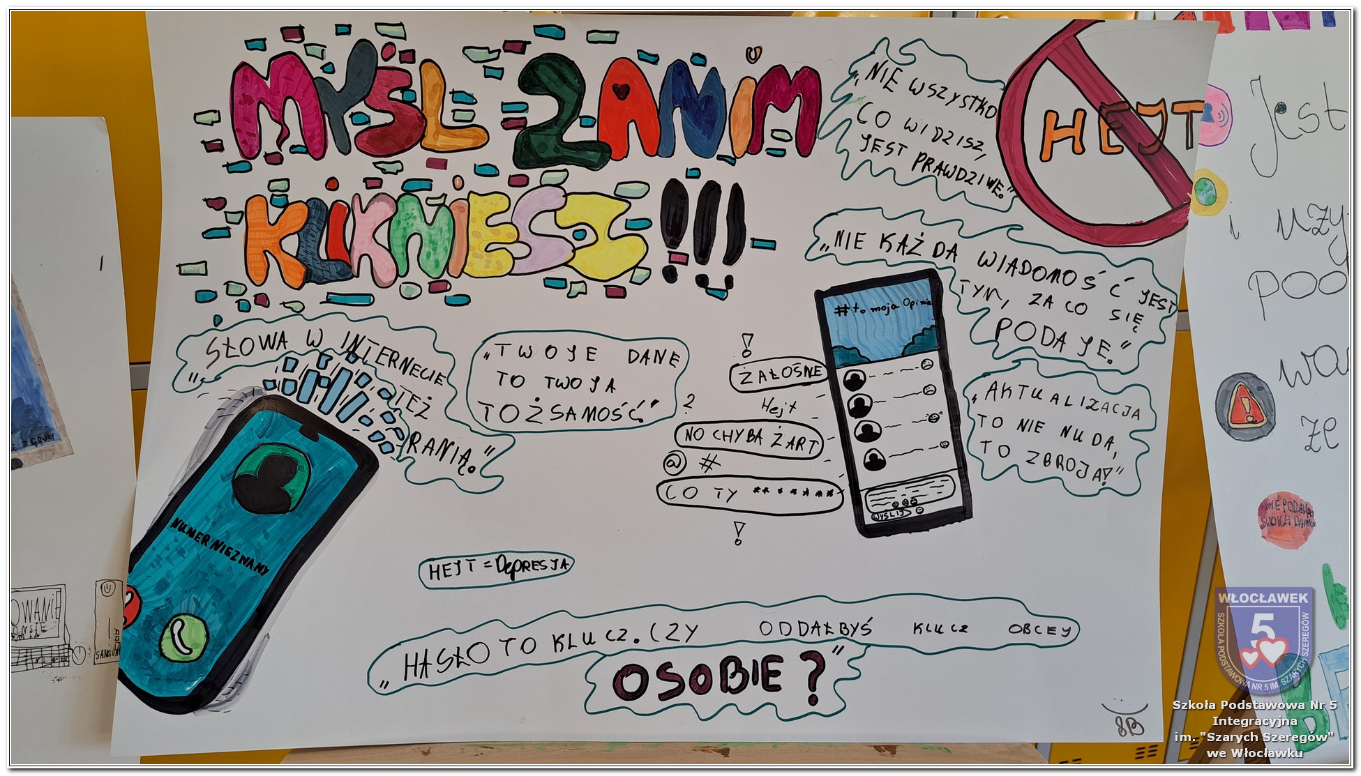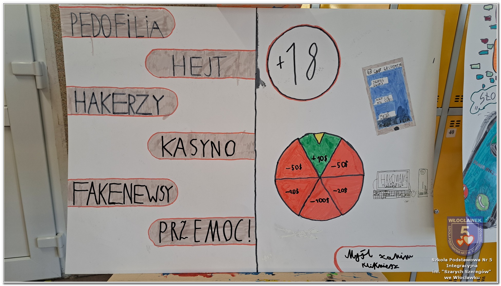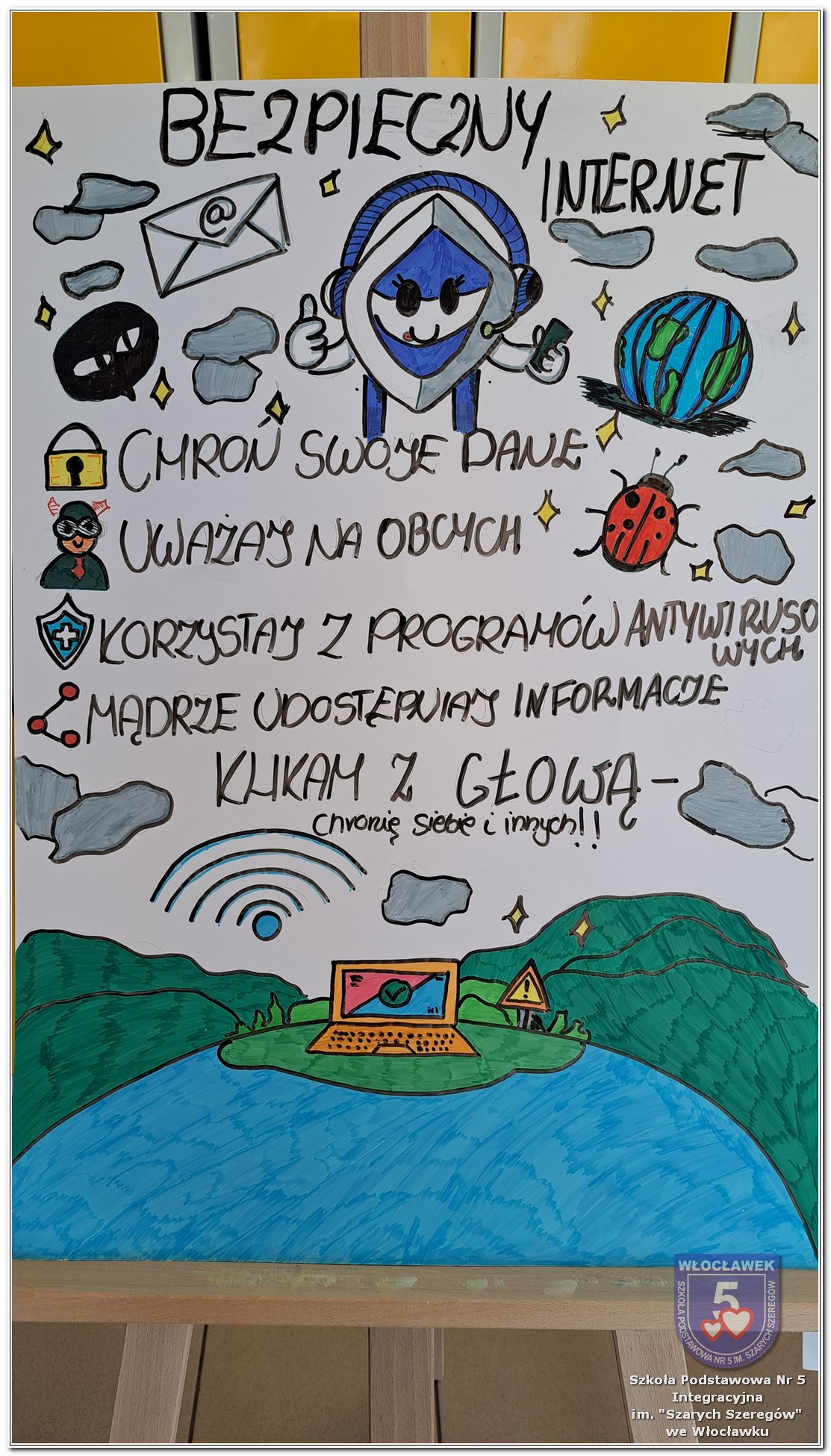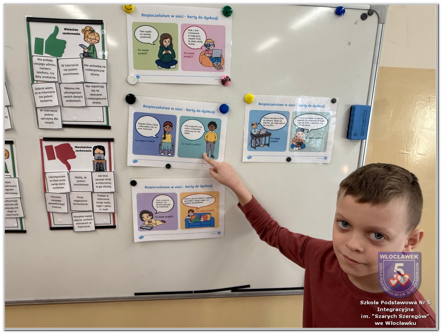 W dniach od 28 stycznia do 13 marca 2026 roku, nasza szkoła podjęła wiele działań związanych z propagowaniem bezpiecznego poruszania się w internecie wśród uczniów i rodziców. W styczniu w czasie zabrań z rodzicami wychowawcy wszystkich klas zapoznali rodziców z prezentacją „Dziecko w internecie – rodzicu na co powinieneś zwrócić uwagę”. W klasach I – III odbyły się pogadanki na temat zasad bezpiecznego korzystania z sieci. Uczniowie wspólnie stworzyli klasowy kontrakt określający, co wolno, a czego nie wolno robić w internecie. Dzieci wykonywały również zadania praktyczne – segregowały miłe i niemiłe wiadomości, ucząc się rozpoznawać właściwe i niewłaściwe zachowania w sieci. Ponadto zapisywały na kartach, jakie informacje można udostępniać w internecie, a które dane powinny pozostać prywatne. W klasach IV – VIII uczniowie oglądali filmy profilaktyczne dotyczące bezpieczeństwa w sieci i cyberprzemocy, które podsumowane zostały pogadanką z wychowawcami oraz wykonywali klasowe plakaty pod hasłem „Klikam z głową – chronię siebie i innych”. Ponadto uczniowie klas IV – VIII wzięli udział w konkursie zorganizowanym przez nauczycieli informatyki „Higiena i bezpieczeństwo cyfrowe”. Wiele zadań z zakresu bezpieczeństwa w sieci będzie nadal kontynuowanych w miesiącu marcu.