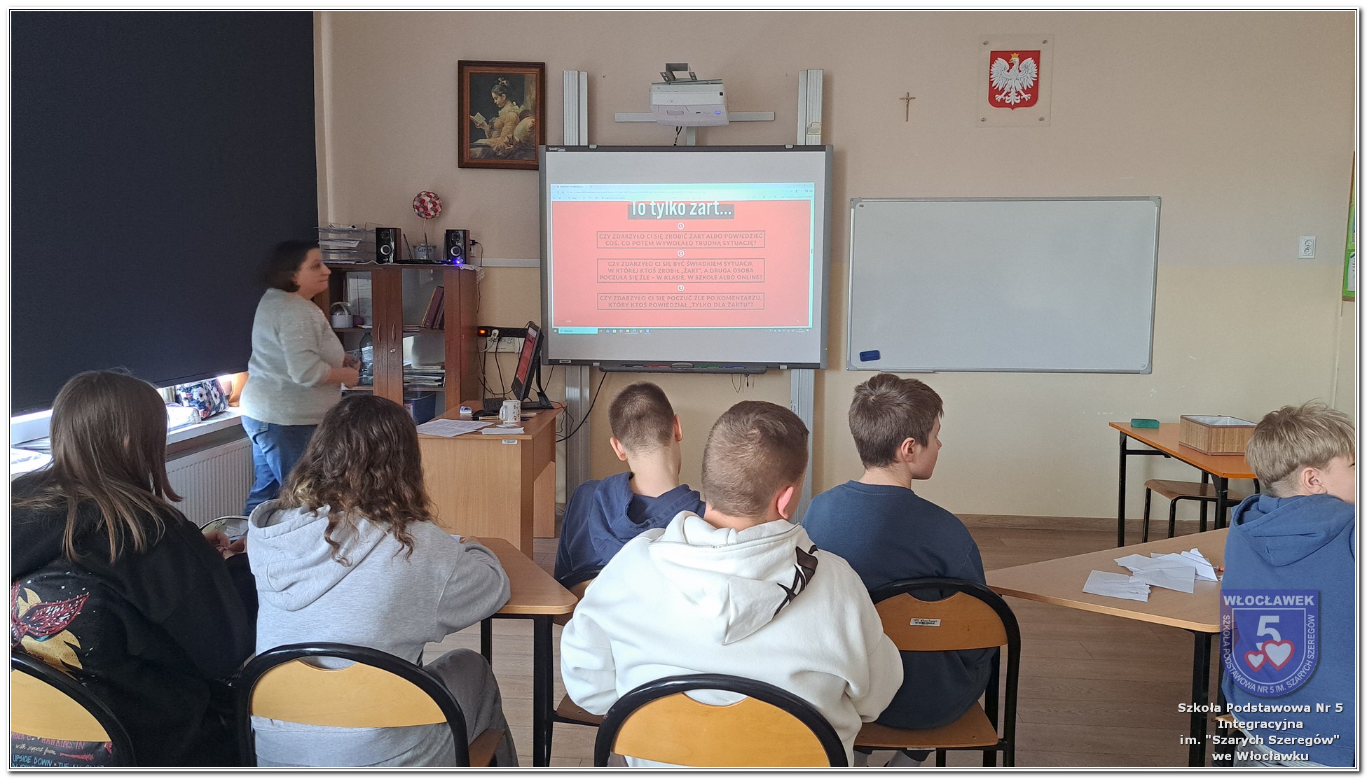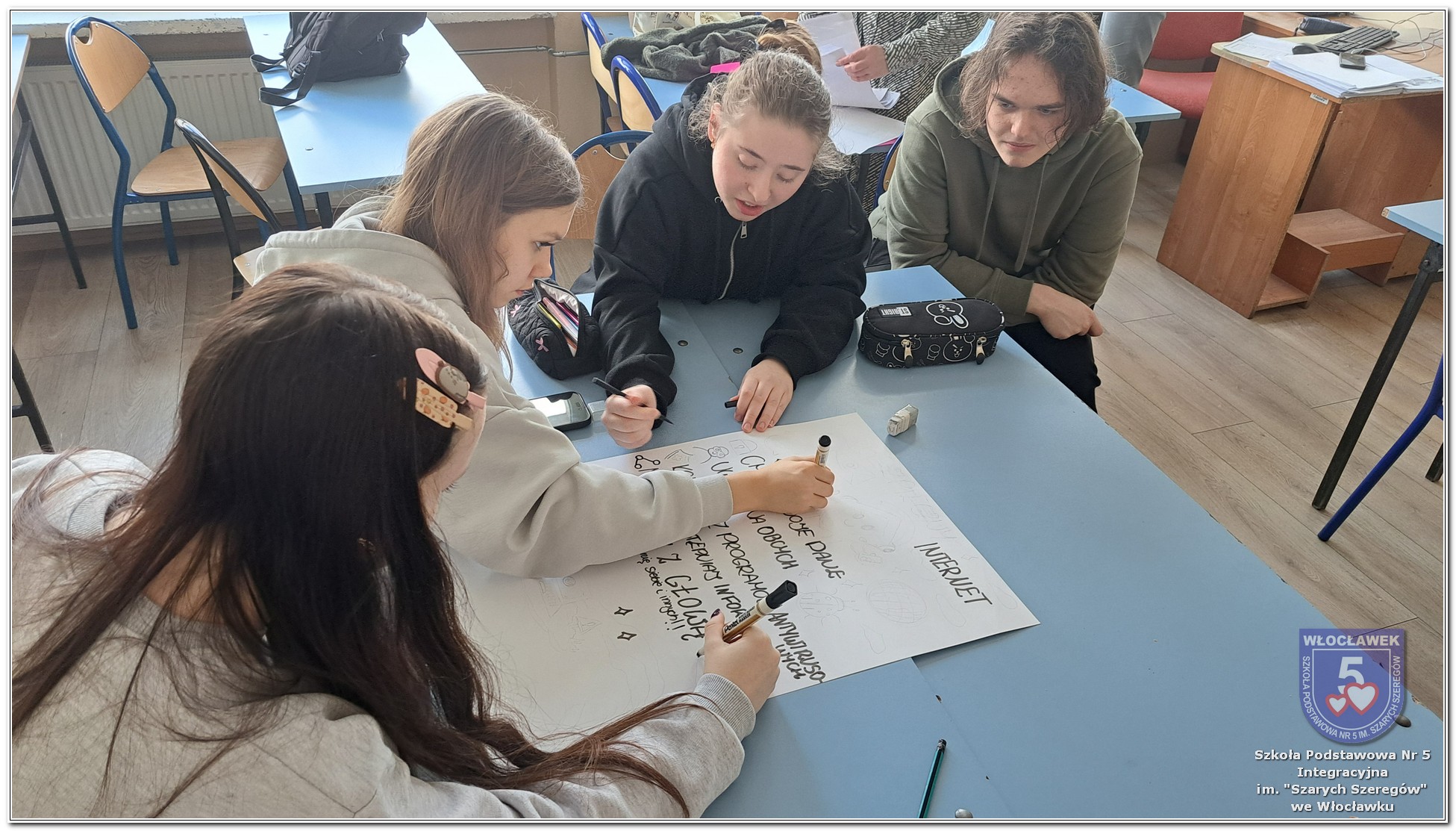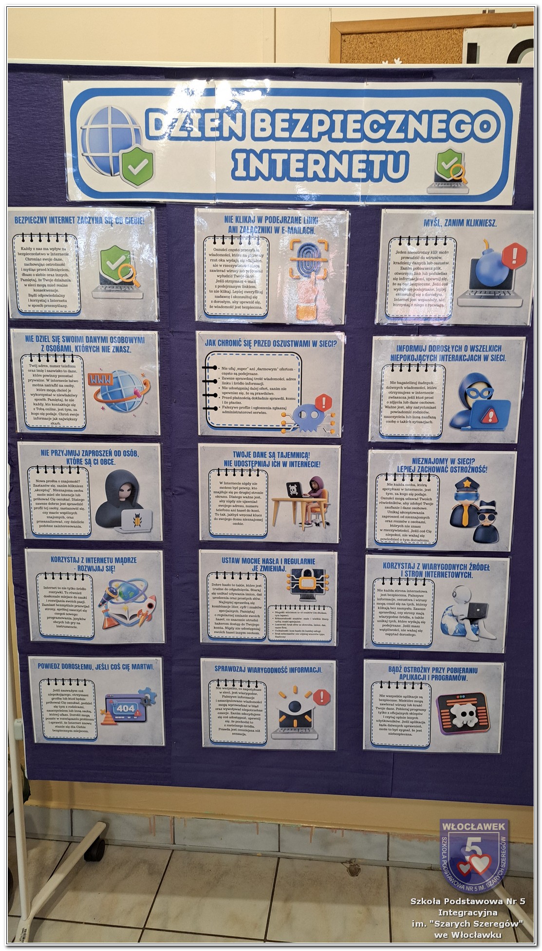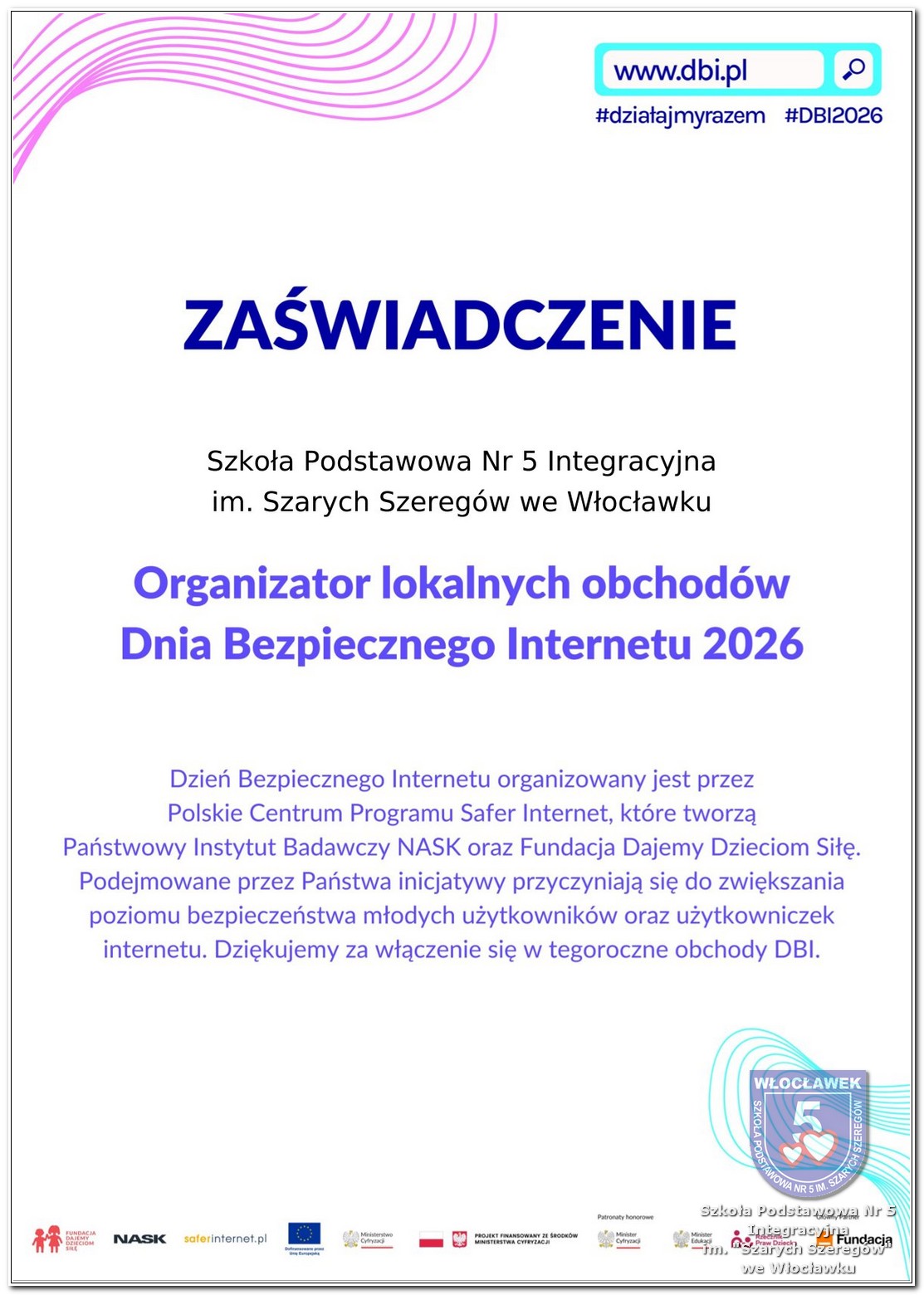 W dniach od 28 stycznia do 13 marca 2026 roku, nasza szkoła podjęła wiele działań związanych z propagowaniem bezpiecznego poruszania się w internecie wśród uczniów i rodziców. W styczniu w czasie zabrań z rodzicami wychowawcy wszystkich klas zapoznali rodziców z prezentacją „Dziecko w internecie – rodzicu na co powinieneś zwrócić uwagę”. W klasach I – III odbyły się pogadanki na temat zasad bezpiecznego korzystania z sieci. Uczniowie wspólnie stworzyli klasowy kontrakt określający, co wolno, a czego nie wolno robić w internecie. Dzieci wykonywały również zadania praktyczne – segregowały miłe i niemiłe wiadomości, ucząc się rozpoznawać właściwe i niewłaściwe zachowania w sieci. Ponadto zapisywały na kartach, jakie informacje można udostępniać w internecie, a które dane powinny pozostać prywatne. W klasach IV – VIII uczniowie oglądali filmy profilaktyczne dotyczące bezpieczeństwa w sieci i cyberprzemocy, które podsumowane zostały pogadanką z wychowawcami oraz wykonywali klasowe plakaty pod hasłem „Klikam z głową – chronię siebie i innych”. Ponadto uczniowie klas IV – VIII wzięli udział w konkursie zorganizowanym przez nauczycieli informatyki „Higiena i bezpieczeństwo cyfrowe”. Wiele zadań z zakresu bezpieczeństwa w sieci będzie nadal kontynuowanych w miesiącu marcu.