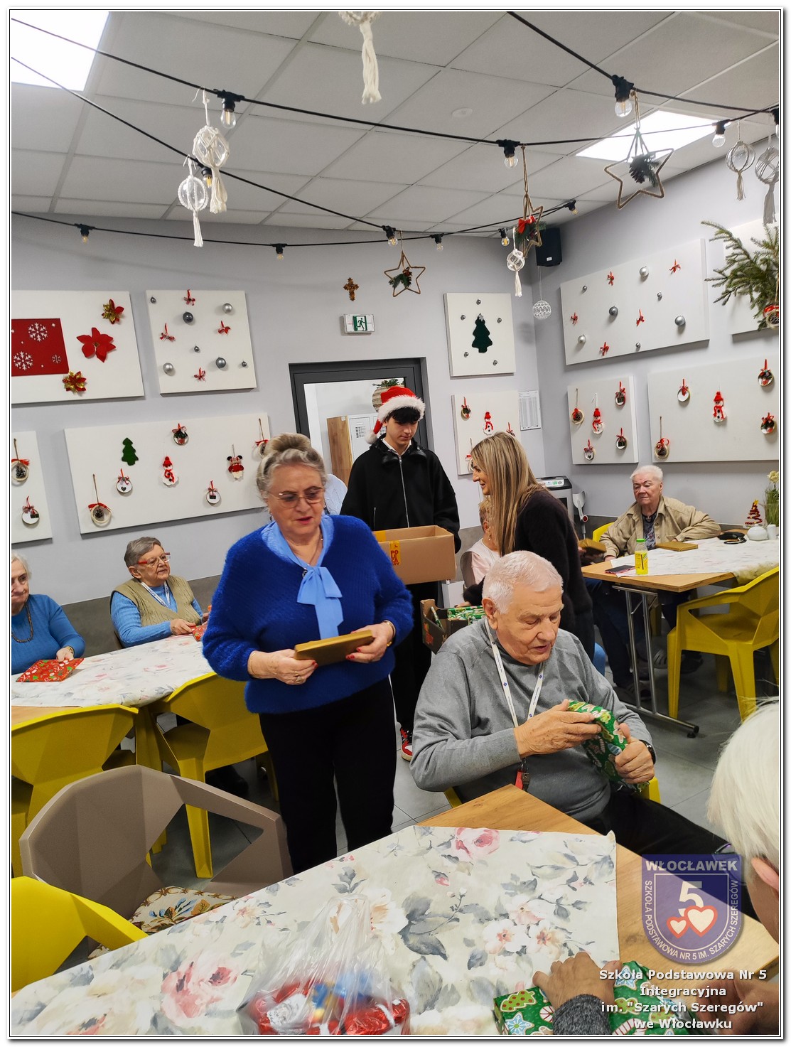 W dniu 16 grudnia 2025 roku wolontariusze ze Szkolnego Koła Wolontariatu „RazemSP5”, wraz z opiekunami p. Moniką Witek Czachorowską i p. Kamilą Szkołudą, przekazali do Centrum Wsparcia Społecznego przy ulicy Piekarskiej 25 we Włocławku książki zebrane w ramach akcji charytatywnej „Zaczytany Święty Mikołaj z SP5…”. Inicjatywa, zaproponowana przez p. Joannę Giergielewicz, zaangażowała całą społeczność szkolną i pozwoliła zgromadzić publikacje o różnorodnej tematyce – obyczajowej, biograficznej, kryminalnej i historycznej – które wzbogacą księgozbiór placówki. Na miejscu powitała nas Pani Dyrektor Agnieszka Chmielewska, Pani Agata Morawska oraz podopieczni CWS. Nasi wolontariusze wspólnie z seniorami zaśpiewali kolędy, zwiedzili placówkę i poznali specyfikę pracy Centrum Wsparcia Społecznego. Dziękujemy za ciepłe przyjęcie oraz miłą atmosferę spotkania. Wszystkim darczyńcom składamy serdeczne podziękowania za przekazane książki, które pozwoliły zrealizować tę piękną inicjatywę.