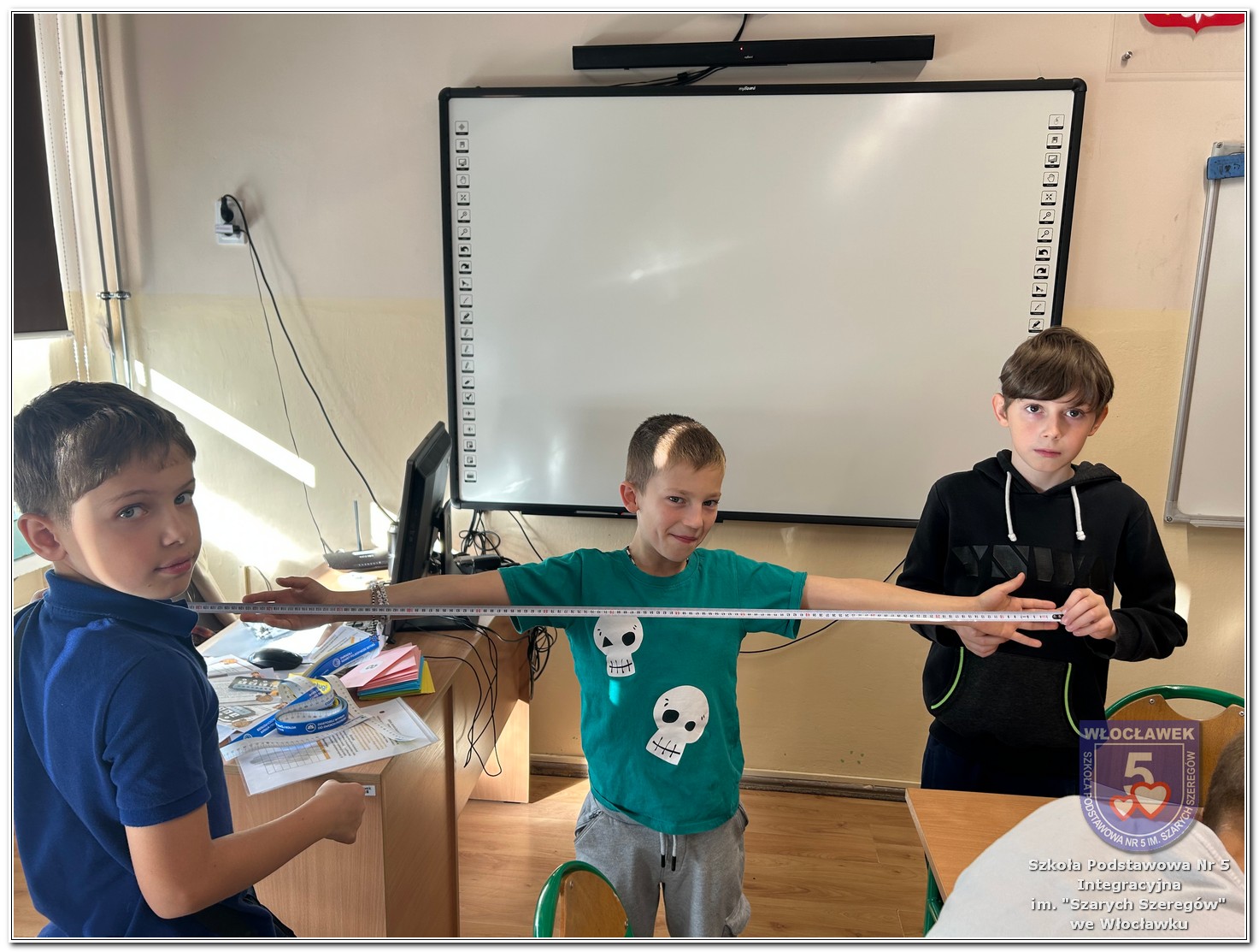 • wykonywali pomiary obiektów w klasie i w terenie (m.in. długości boiska, wysokości drzewa, szerokości rzeki Zgłowiączki),