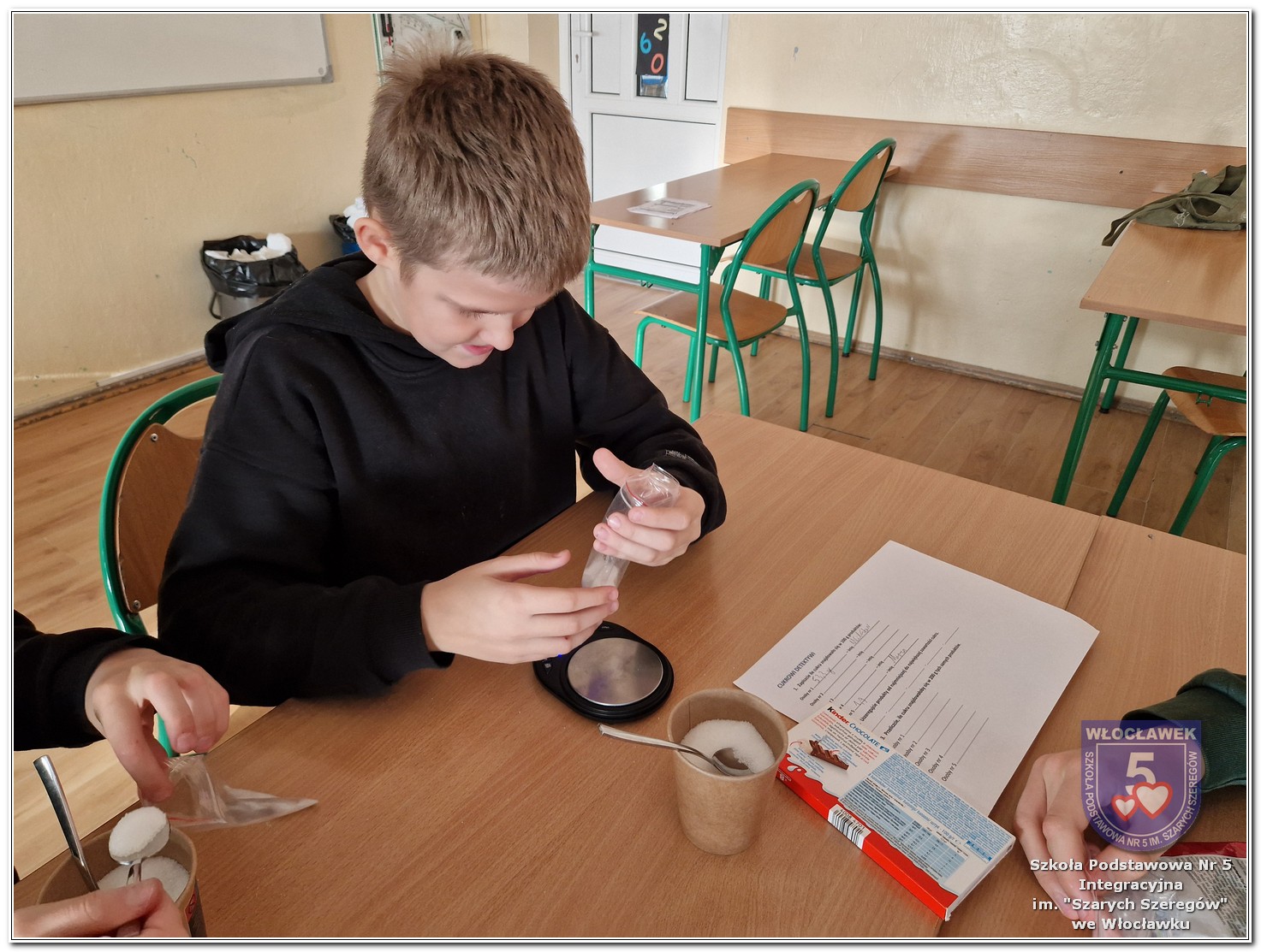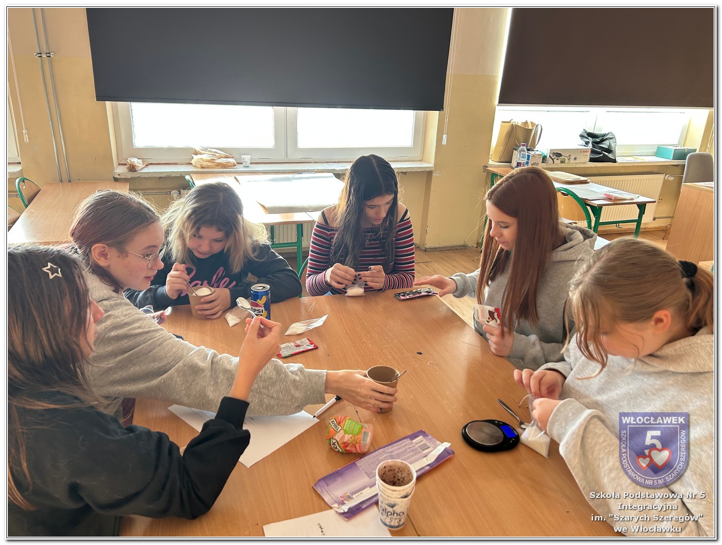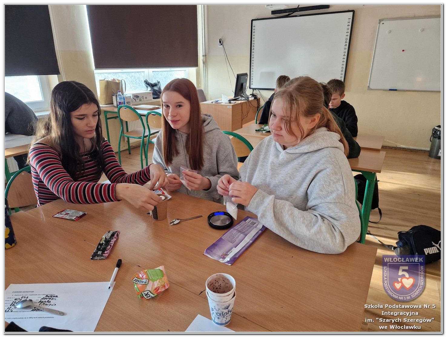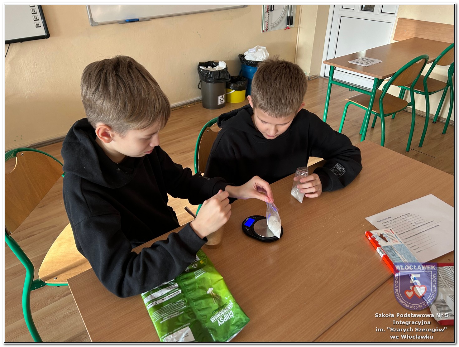 22 listopada 2025 roku odbyły się warsztaty pt. „Analiza etykiet produktów spożywczych i obliczanie kalorii składników, ilości białek, tłuszczy. Cukier w diecie” zrealizowane w ramach projektu „Mierzymy świat – matematyka w naturze”, sfinansowanego przez Fundację mBanku w programie mSilnia. Podczas warsztatów uczniowie zapoznali się z informacjami, jakie mogą odczytywać na etykietach produktów spożywczych. Zwrócili szczególną uwagę na konserwanty, barwniki i inne środki chemiczne, które są dodawane do żywności. Młodzież zapoznała się z dziennym zapotrzebowaniem kalorycznym osób w zależności od trybu życia i wieku. Uczniowie odszukiwali w wykreślankach nazw nietypowych owoców i warzyw. Obliczali działania matematyczne, których rozwiązaniem był przepis na koktajl owocowy. Następnie przystąpili do samodzielnego wykonywania zdrowego posiłku. Warsztaty przyniosły wiele radości i satysfakcji. Uczniowie miło zaskoczyli się, że owocowy posiłek zawiera w sobie tyle naturalnych cukrów. W drugiej części spotkania młodzież przeliczała ilość cukru zawartego w różnych przekąskach na 100 g produktu i odważała ją na wagach analitycznych. Uczniowie opowiadali o swoich preferencjach dotyczących codziennego spożywania cukrów. Warsztaty były doskonałą okazją do praktycznego wykorzystania matematyki i dietetyki w codziennych sytuacjach.
