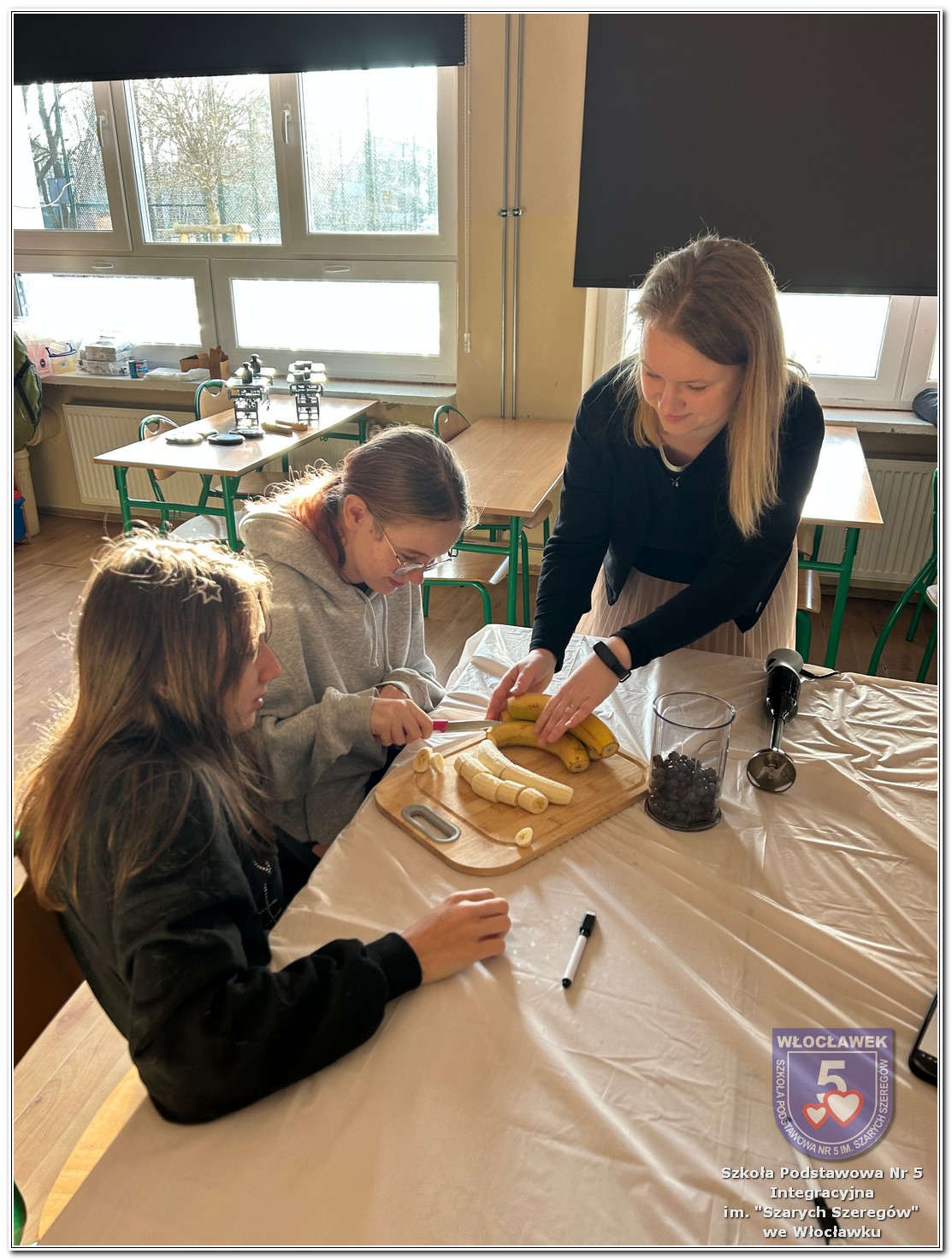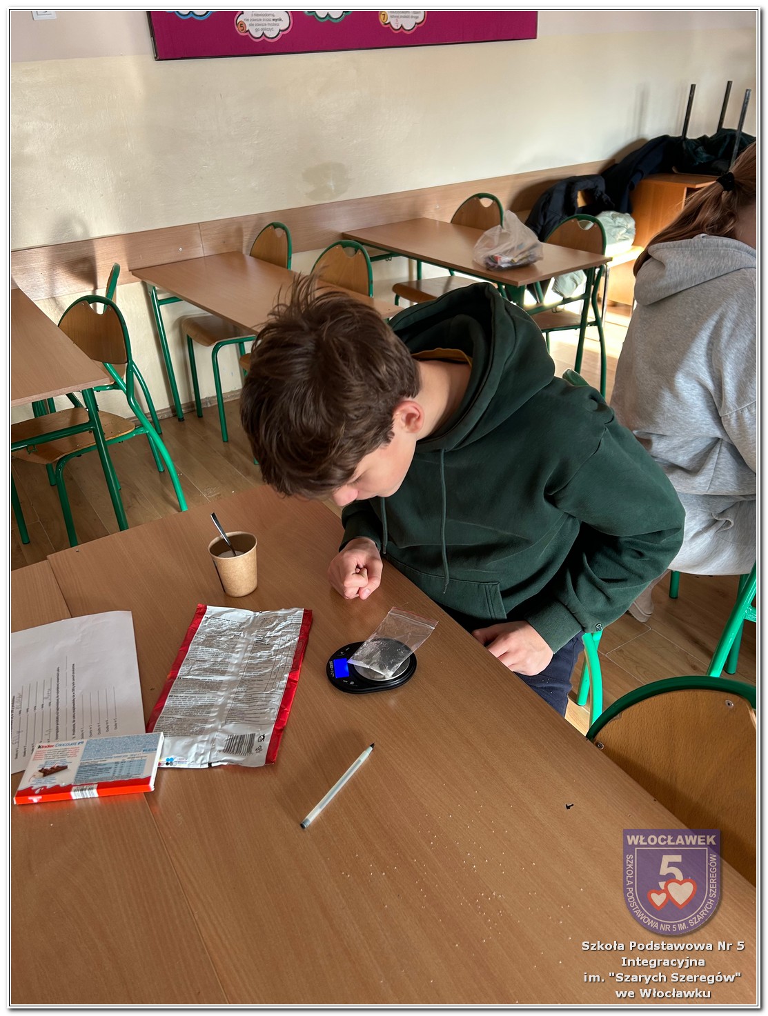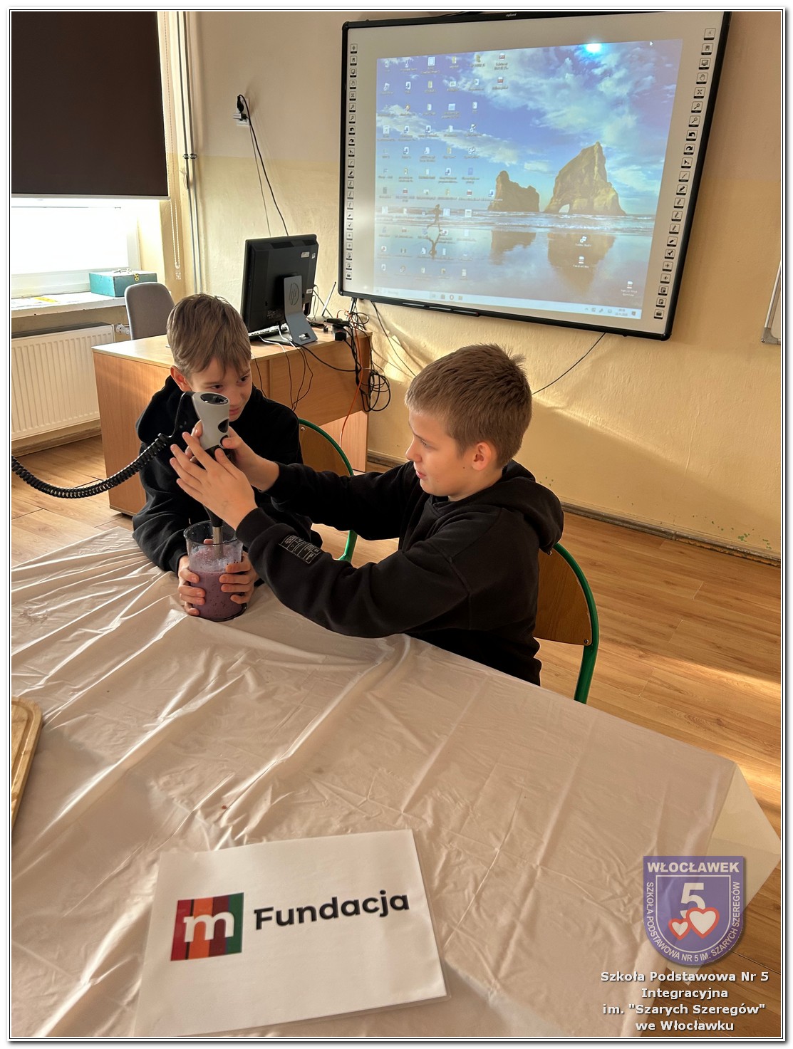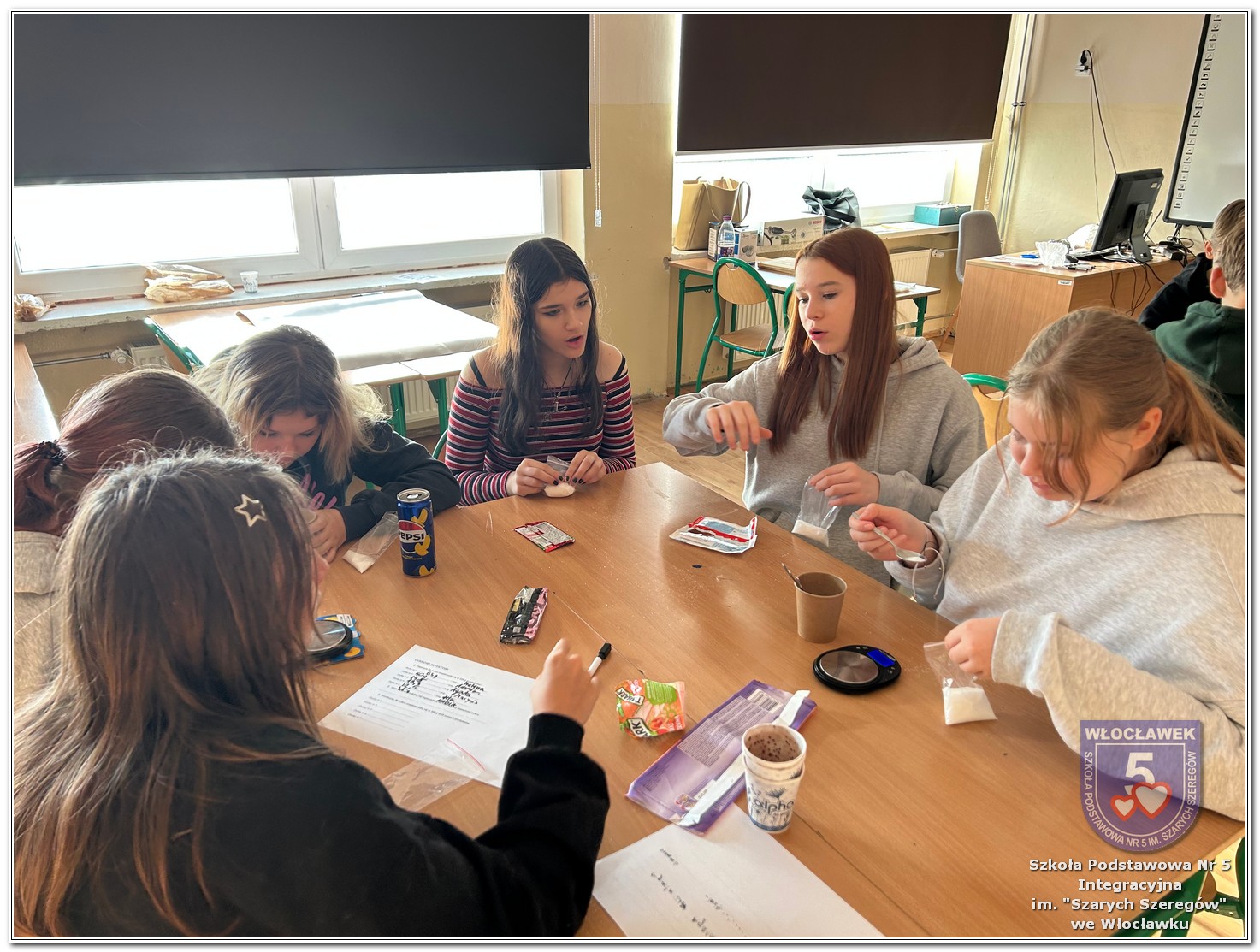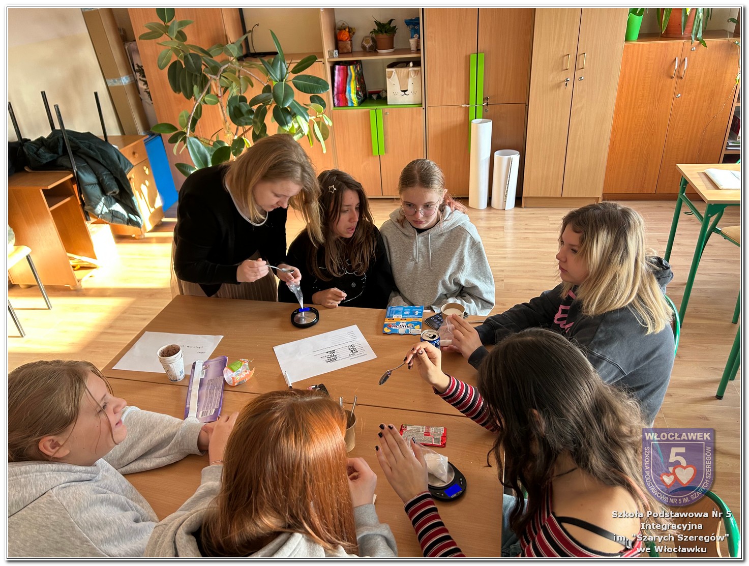22 listopada 2025 roku odbyły się warsztaty pt. „Analiza etykiet produktów spożywczych i obliczanie kalorii składników, ilości białek, tłuszczy. Cukier w diecie” zrealizowane w ramach projektu „Mierzymy świat – matematyka w naturze”, sfinansowanego przez Fundację mBanku w programie mSilnia. Podczas warsztatów uczniowie zapoznali się z informacjami, jakie mogą odczytywać na etykietach produktów spożywczych. Zwrócili szczególną uwagę na konserwanty, barwniki i inne środki chemiczne, które są dodawane do żywności. Młodzież zapoznała się z dziennym zapotrzebowaniem kalorycznym osób w zależności od trybu życia i wieku. Uczniowie odszukiwali w wykreślankach nazw nietypowych owoców i warzyw. Obliczali działania matematyczne, których rozwiązaniem był przepis na koktajl owocowy. Następnie przystąpili do samodzielnego wykonywania zdrowego posiłku. Warsztaty przyniosły wiele radości i satysfakcji. Uczniowie miło zaskoczyli się, że owocowy posiłek zawiera w sobie tyle naturalnych cukrów. W drugiej części spotkania młodzież przeliczała ilość cukru zawartego w różnych przekąskach na 100 g produktu i odważała ją na wagach analitycznych. Uczniowie opowiadali o swoich preferencjach dotyczących codziennego spożywania cukrów. Warsztaty były doskonałą okazją do praktycznego wykorzystania matematyki i dietetyki w codziennych sytuacjach.