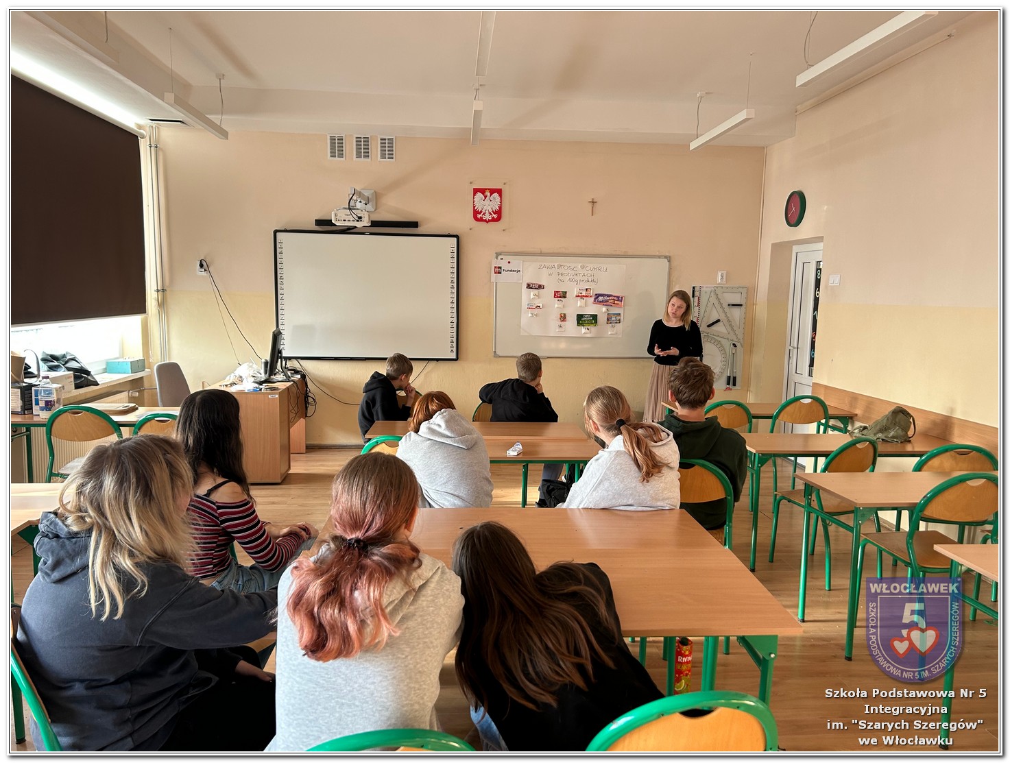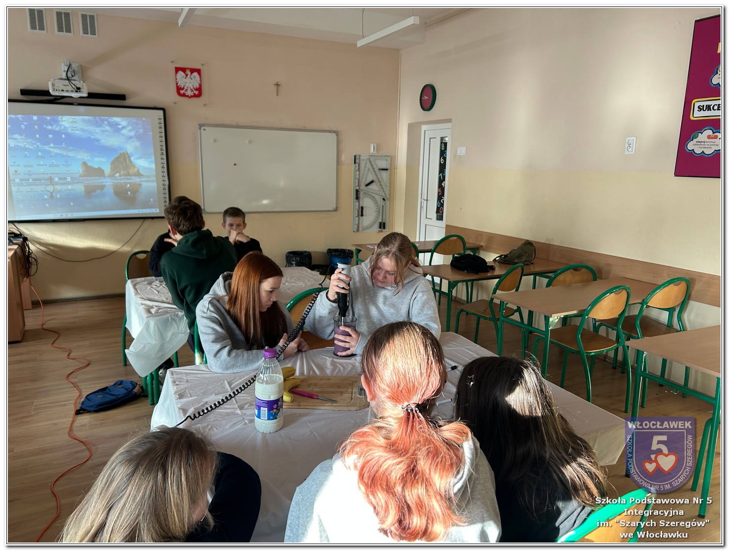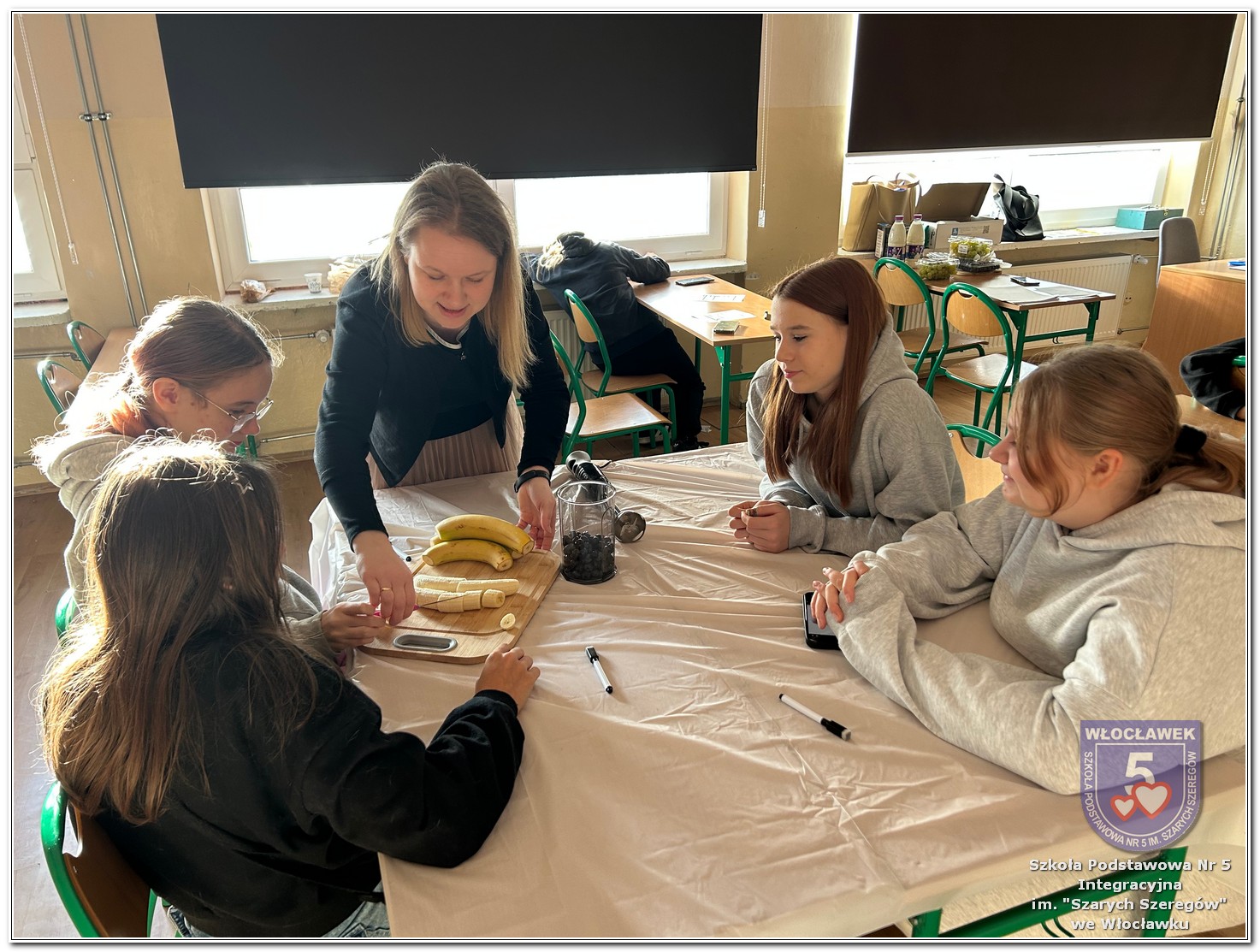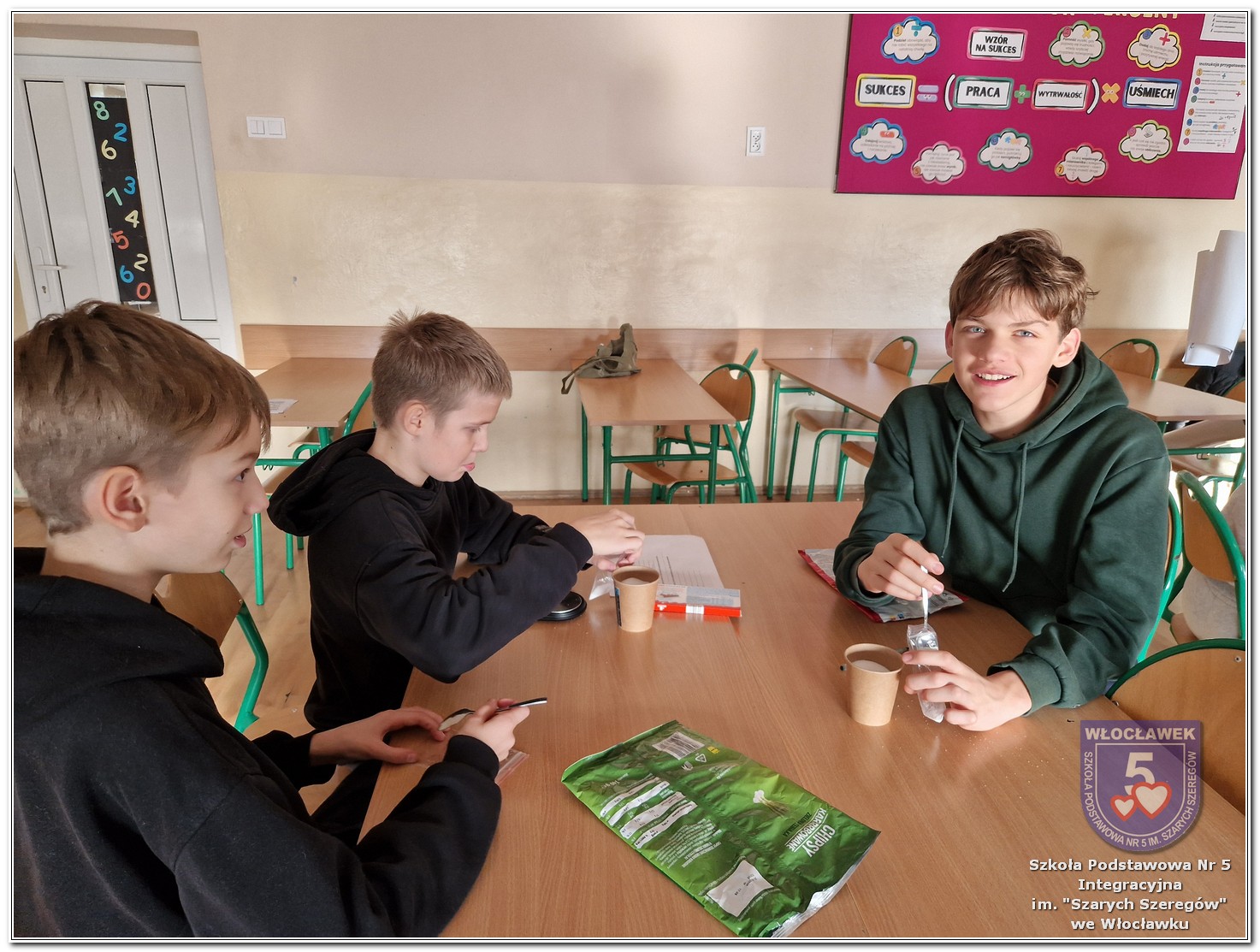 22 listopada 2025 roku odbyły się warsztaty pt. „Analiza etykiet produktów spożywczych i obliczanie kalorii składników, ilości białek, tłuszczy. Cukier w diecie” zrealizowane w ramach projektu „Mierzymy świat – matematyka w naturze”, sfinansowanego przez Fundację mBanku w programie mSilnia. Podczas warsztatów uczniowie zapoznali się z informacjami, jakie mogą odczytywać na etykietach produktów spożywczych. Zwrócili szczególną uwagę na konserwanty, barwniki i inne środki chemiczne, które są dodawane do żywności. Młodzież zapoznała się z dziennym zapotrzebowaniem kalorycznym osób w zależności od trybu życia i wieku. Uczniowie odszukiwali w wykreślankach nazw nietypowych owoców i warzyw. Obliczali działania matematyczne, których rozwiązaniem był przepis na koktajl owocowy. Następnie przystąpili do samodzielnego wykonywania zdrowego posiłku. Warsztaty przyniosły wiele radości i satysfakcji. Uczniowie miło zaskoczyli się, że owocowy posiłek zawiera w sobie tyle naturalnych cukrów. W drugiej części spotkania młodzież przeliczała ilość cukru zawartego w różnych przekąskach na 100 g produktu i odważała ją na wagach analitycznych. Uczniowie opowiadali o swoich preferencjach dotyczących codziennego spożywania cukrów. Warsztaty były doskonałą okazją do praktycznego wykorzystania matematyki i dietetyki w codziennych sytuacjach.