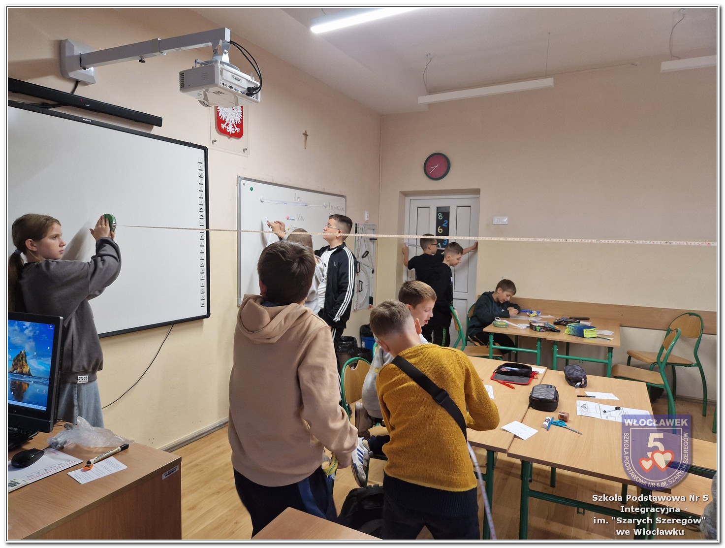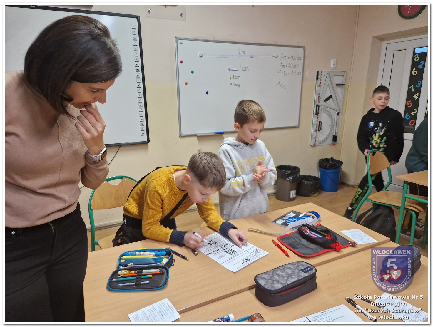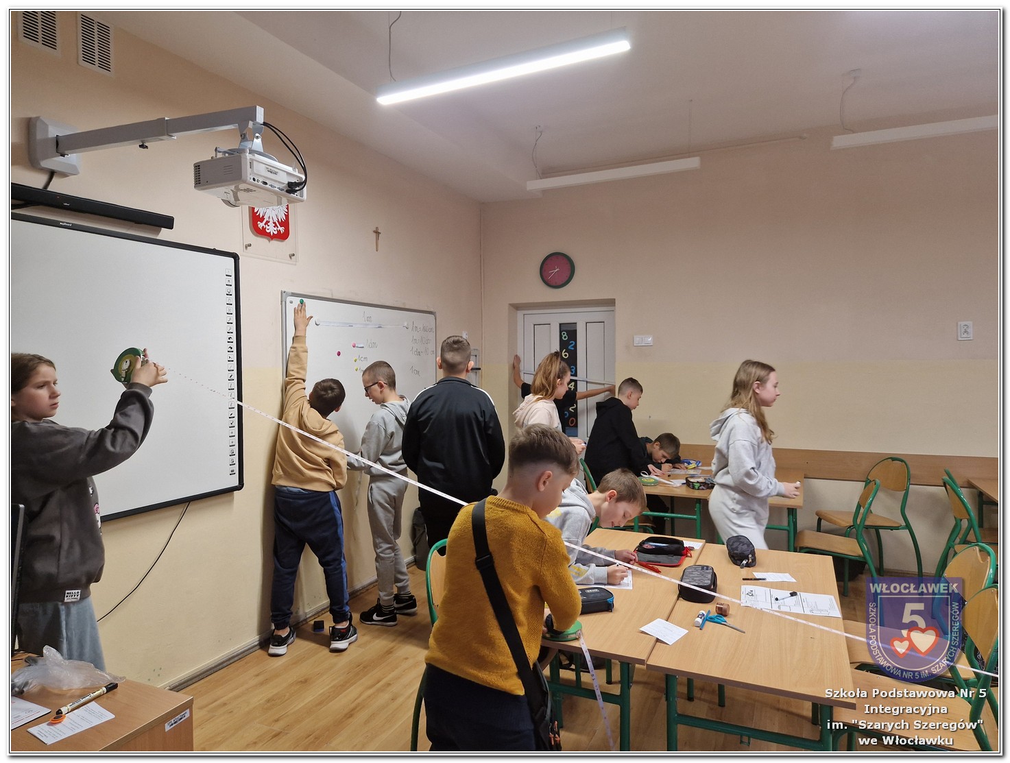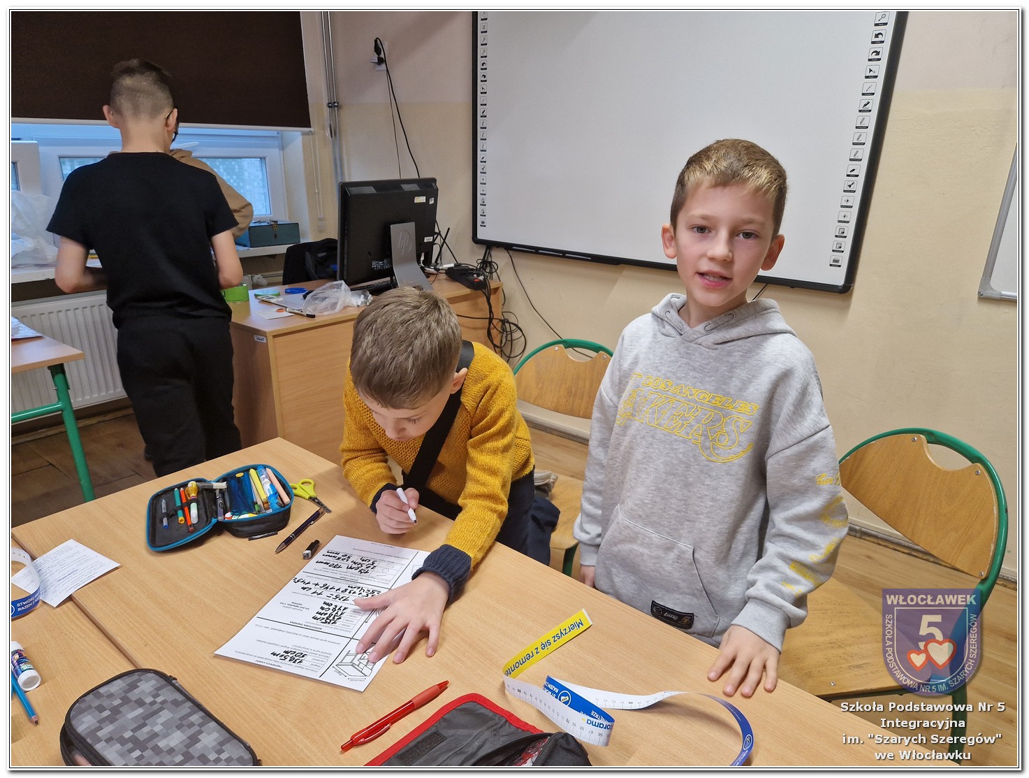 W naszej szkole odbyły się kolejne warsztaty pt. „Mierzenie w klasie”, zrealizowane w ramach projektu „Mierzymy świat – matematyka w naturze”, sfinansowanego przez Fundację mBanku w programie mSilnia. W zajęciach uczestniczyli uczniowie klas IV–V, którzy mieli okazję przekonać się, że matematyka to nie tylko liczby i wzory, ale także świetna zabawa i praktyczne umiejętności! Podczas warsztatów uczniowie dokonywali pomiarów różnych obiektów znajdujących się w sali lekcyjnej, wykorzystując zarówno tradycyjne przyrządy pomiarowe – linijki, miarki i taśmy – jak i dawne jednostki długości, takie jak stopa, piędź czy łokieć. W ten sposób mogli porównać precyzję różnych metod i zrozumieć, jak rozwijała się sztuka mierzenia na przestrzeni wieków. Nie zabrakło również elementów ruchowych – uczniowie wyruszyli na szkolne korytarze w poszukiwaniu jesiennych liści, które następnie łączyli w pary: działanie z odpowiednim wynikiem. Dzięki temu w atrakcyjny i pełen zaangażowania sposób utrwalali wiadomości o jednostkach długości i masy. Na zakończenie uczestnicy wzięli udział w grze planszowej poświęconej jednostkom miar, która pozwoliła im sprawdzić zdobytą wiedzę, wykazać się refleksem oraz doskonalić umiejętność współpracy, logicznego myślenia i wyciągania wniosków. Zajęcia były doskonałą okazją do łączenia nauki z zabawą, rozwijania ciekawości poznawczej i matematycznego myślenia, a także do przekonania się, że matematyka jest wszędzie wokół nas. Już nie możemy doczekać się kolejnego spotkania w ramach projektu i następnych matematycznych odkryć!
