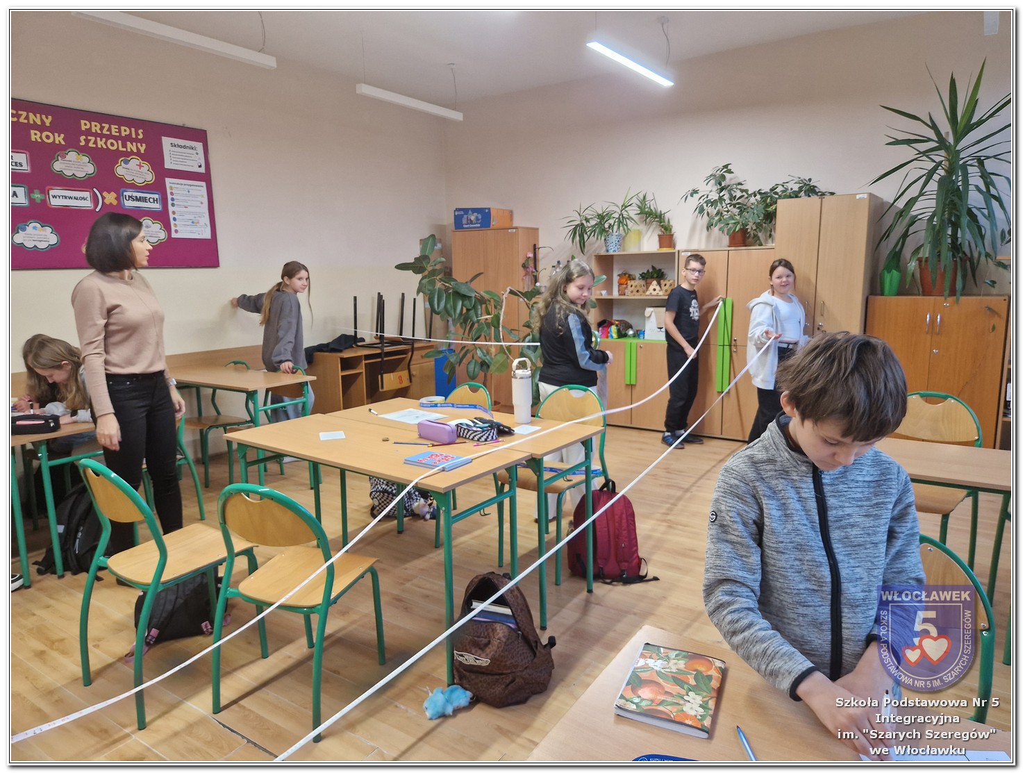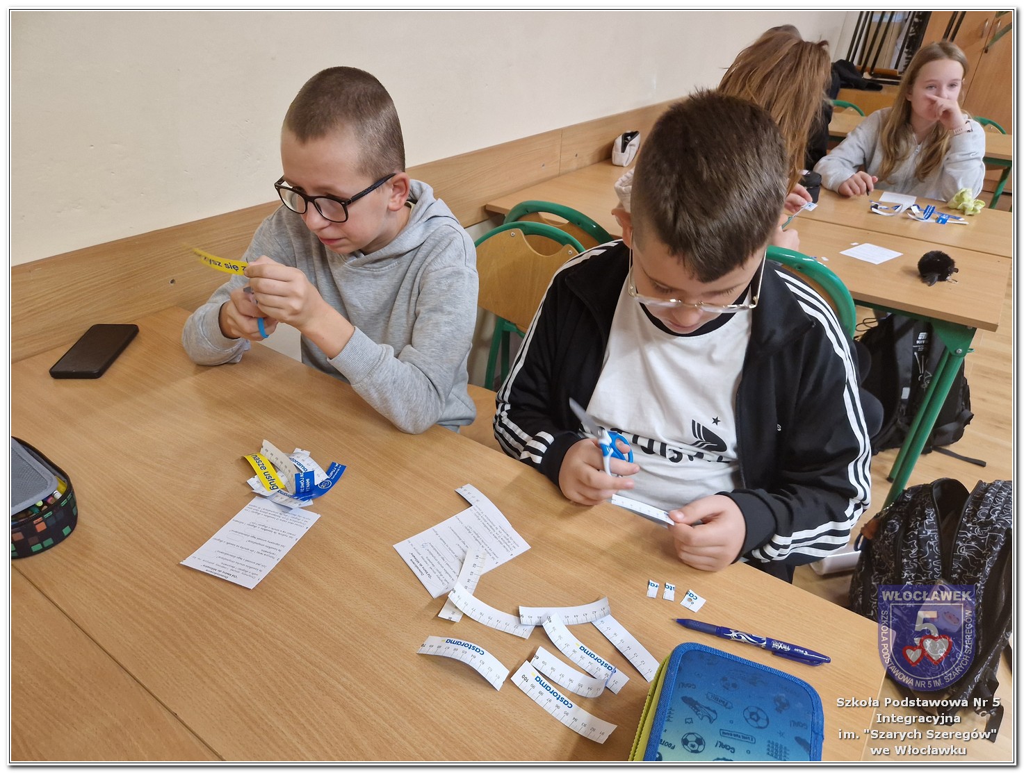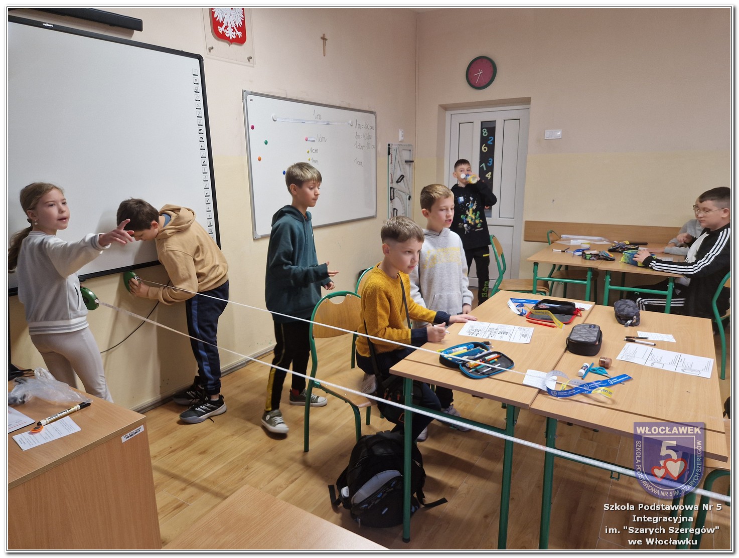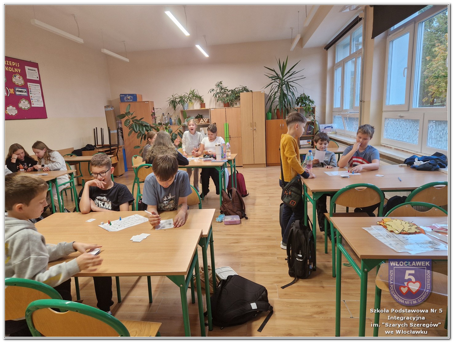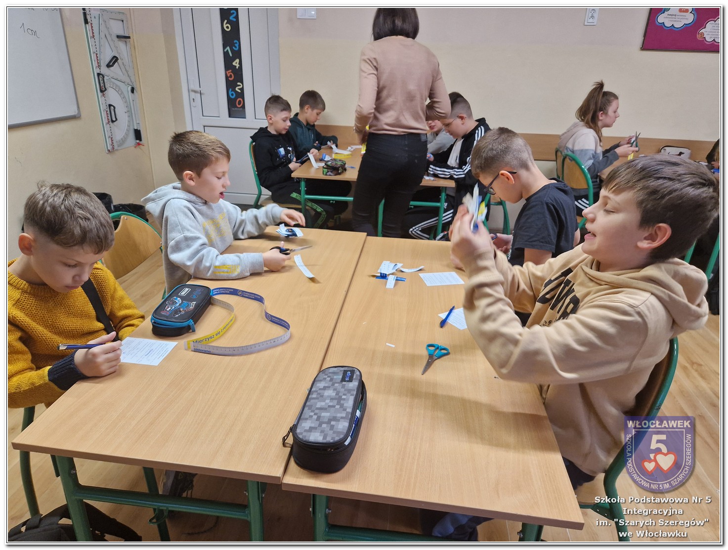 W naszej szkole odbyły się kolejne warsztaty pt. „Mierzenie w klasie”, zrealizowane w ramach projektu „Mierzymy świat – matematyka w naturze”, sfinansowanego przez Fundację mBanku w programie mSilnia. W zajęciach uczestniczyli uczniowie klas IV–V, którzy mieli okazję przekonać się, że matematyka to nie tylko liczby i wzory, ale także świetna zabawa i praktyczne umiejętności! Podczas warsztatów uczniowie dokonywali pomiarów różnych obiektów znajdujących się w sali lekcyjnej, wykorzystując zarówno tradycyjne przyrządy pomiarowe – linijki, miarki i taśmy – jak i dawne jednostki długości, takie jak stopa, piędź czy łokieć. W ten sposób mogli porównać precyzję różnych metod i zrozumieć, jak rozwijała się sztuka mierzenia na przestrzeni wieków. Nie zabrakło również elementów ruchowych – uczniowie wyruszyli na szkolne korytarze w poszukiwaniu jesiennych liści, które następnie łączyli w pary: działanie z odpowiednim wynikiem. Dzięki temu w atrakcyjny i pełen zaangażowania sposób utrwalali wiadomości o jednostkach długości i masy. Na zakończenie uczestnicy wzięli udział w grze planszowej poświęconej jednostkom miar, która pozwoliła im sprawdzić zdobytą wiedzę, wykazać się refleksem oraz doskonalić umiejętność współpracy, logicznego myślenia i wyciągania wniosków. Zajęcia były doskonałą okazją do łączenia nauki z zabawą, rozwijania ciekawości poznawczej i matematycznego myślenia, a także do przekonania się, że matematyka jest wszędzie wokół nas. Już nie możemy doczekać się kolejnego spotkania w ramach projektu i następnych matematycznych odkryć!