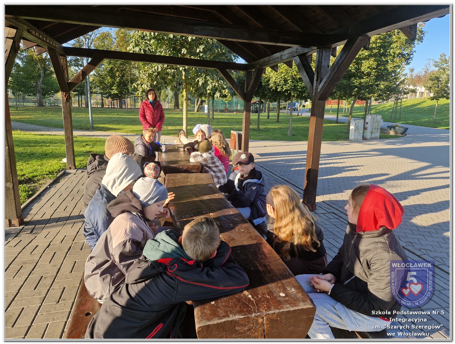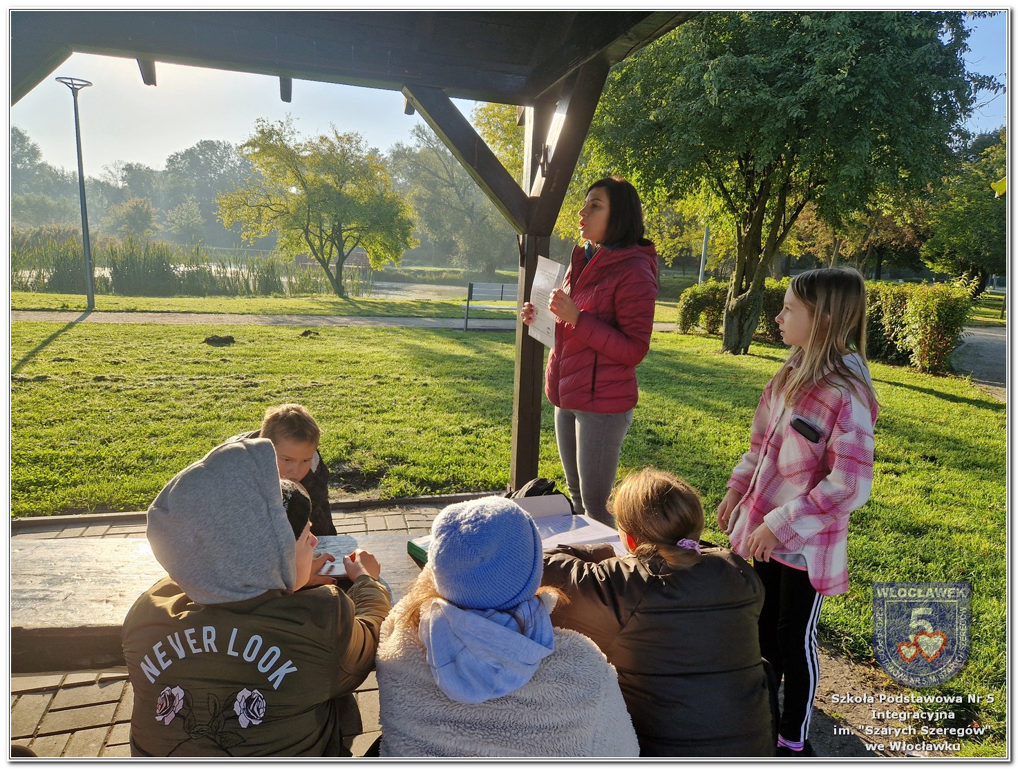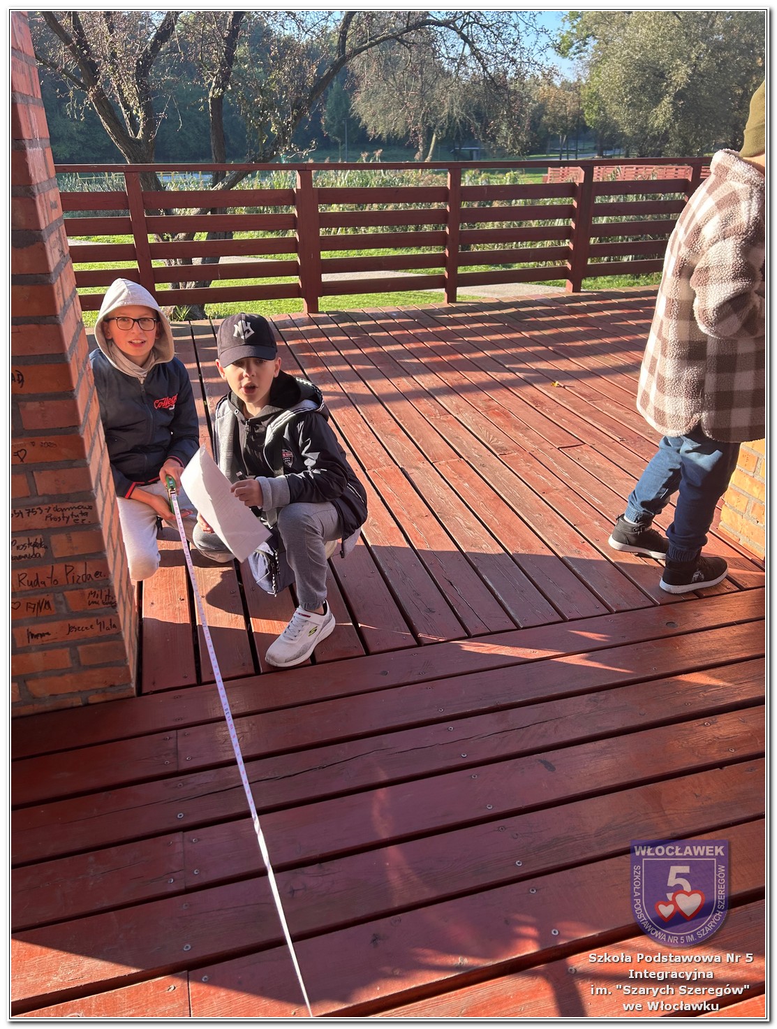 Wszyscy wyruszyli do Parku na Słodowie, aby w praktyce sprawdzić, jak matematyka towarzyszy nam na co dzień. Podczas zajęć mierzyli szerokość rzeki Zgłowiączki, obliczali obwód i pole altany, badali również obwody drzew, poznawali ich gatunki z wykorzystaniem Obiektywu Google oraz przyglądali się fakturze kory. Dodatkowo uczestnicy uczyli się posługiwać kompasem i wyznaczać kierunki w terenie, a korzystając z lornetek, mogli obserwować ptaki i inne ciekawostki przyrodnicze parku. Uczniowie rozwijali umiejętność mierzenia długości oraz przeliczania jednostek, a zdobyte doświadczenia pokazały, że projekt ma charakter interdyscyplinarny – łączy matematykę z przyrodą i biologią, pokazując, jak wiedza z różnych dziedzin wzajemnie się uzupełnia i znajduje praktyczne zastosowanie w codziennym życiu.