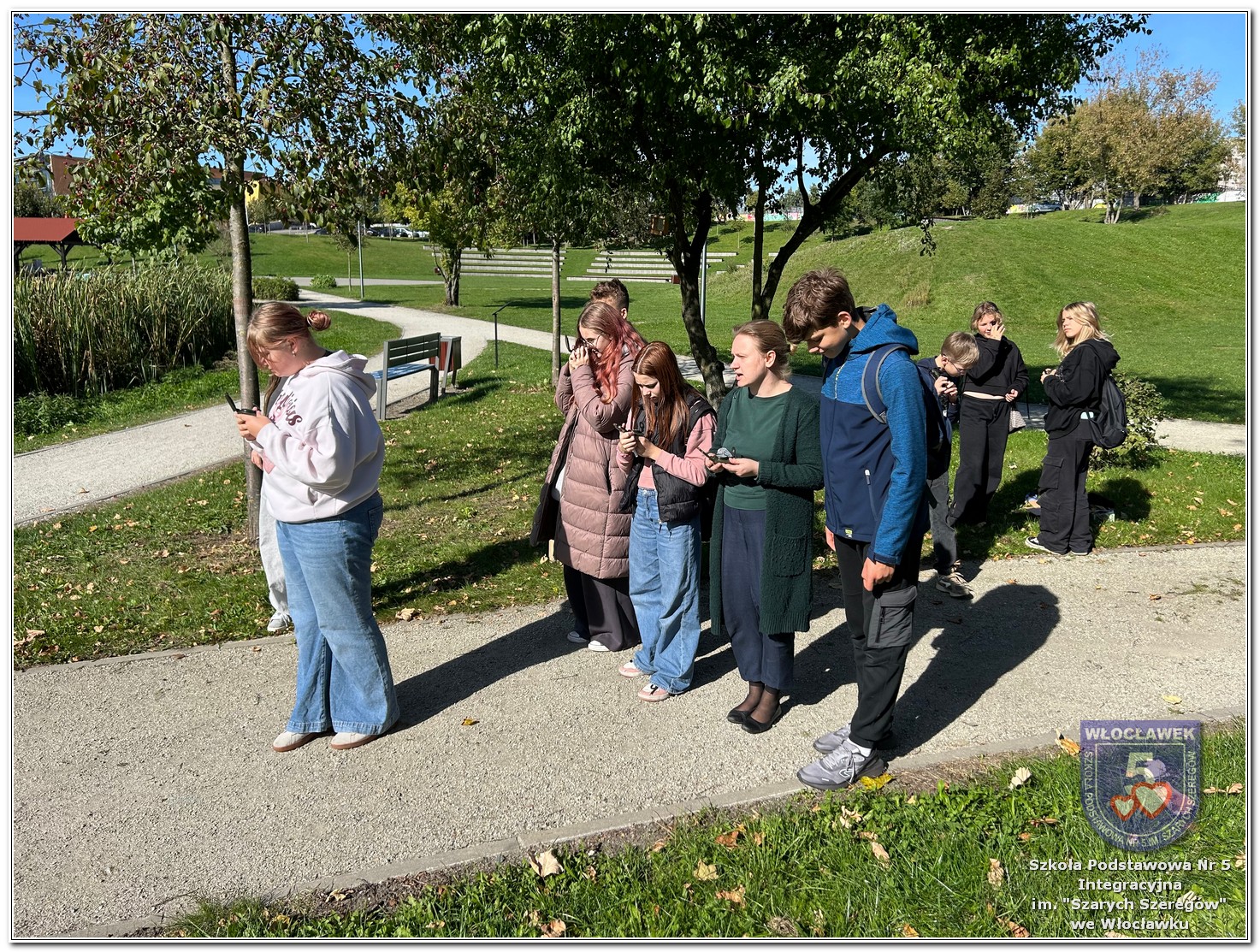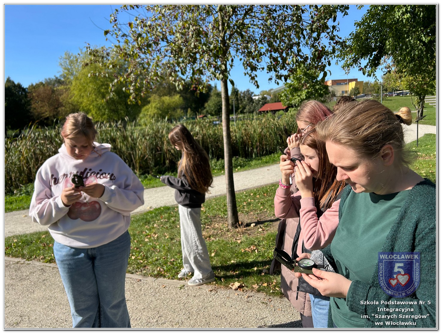 W dniach 2 i 4 października 2025 roku odbyły się warsztaty terenowe realizowane w ramach projektu „Mierzymy świat – matematyka w naturze”, sfinansowanego przez Fundację mBanku w programie mSilnia. Zajęcia zostały zorganizowane dla dwóch grup wiekowych – 2 października uczestniczyli w nich uczniowie klas IV–V, a 4 października swoje zadania realizowali uczniowie klas VI–VIII. Wszyscy wyruszyli do Parku na Słodowie, aby w praktyce sprawdzić, jak matematyka towarzyszy nam na co dzień. Podczas zajęć mierzyli szerokość rzeki Zgłowiączki, obliczali obwód i pole altany, badali również obwody drzew, poznawali ich gatunki z wykorzystaniem Obiektywu Google oraz przyglądali się fakturze kory. Dodatkowo uczestnicy uczyli się posługiwać kompasem i wyznaczać kierunki w terenie, a korzystając z lornetek, mogli obserwować ptaki i inne ciekawostki przyrodnicze parku. Uczniowie rozwijali umiejętność mierzenia długości oraz przeliczania jednostek, a zdobyte doświadczenia pokazały, że projekt ma charakter interdyscyplinarny – łączy matematykę z przyrodą i biologią, pokazując, jak wiedza z różnych dziedzin wzajemnie się uzupełnia i znajduje praktyczne zastosowanie w codziennym życiu.