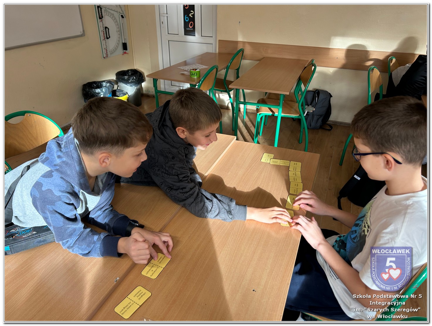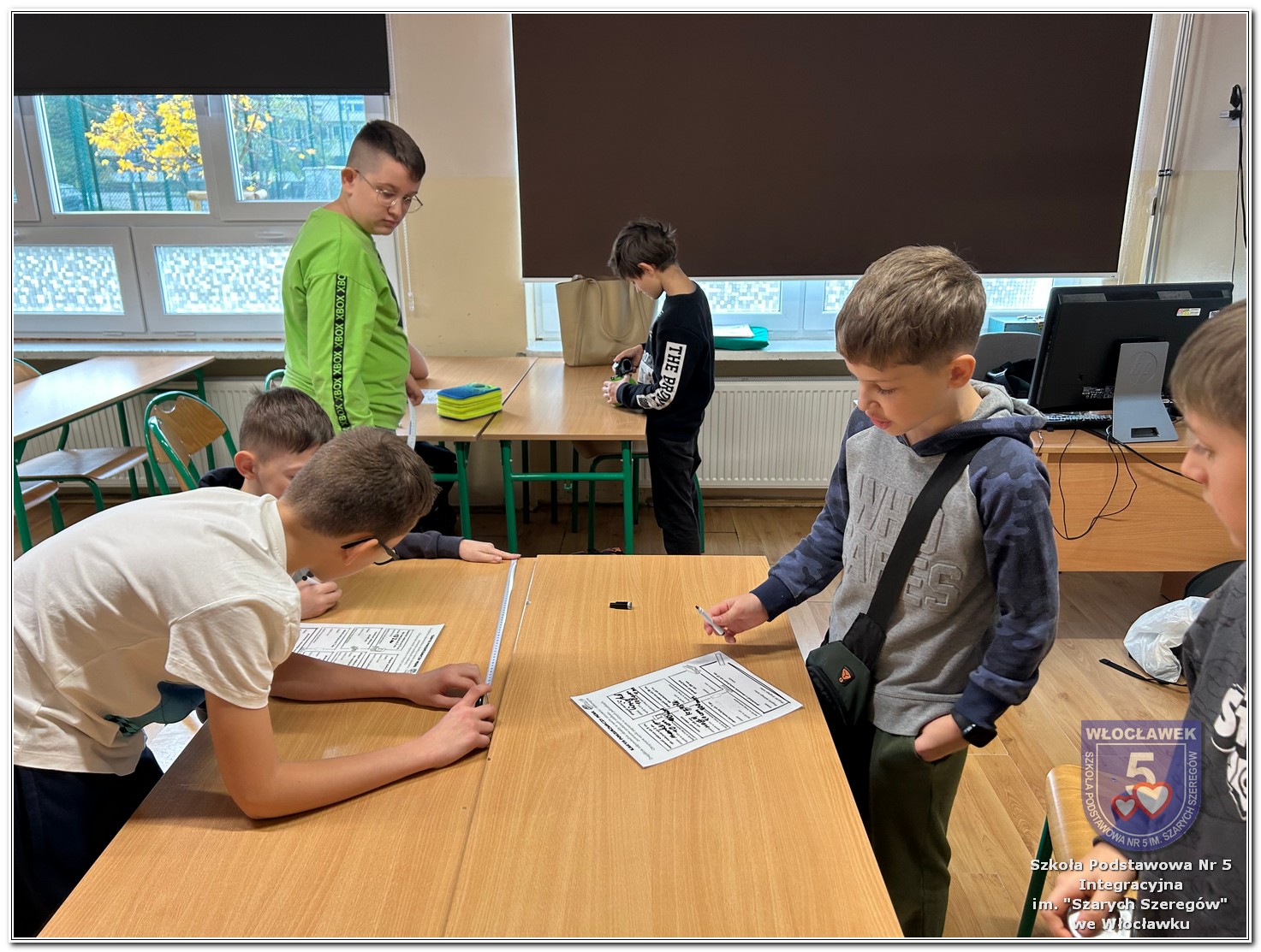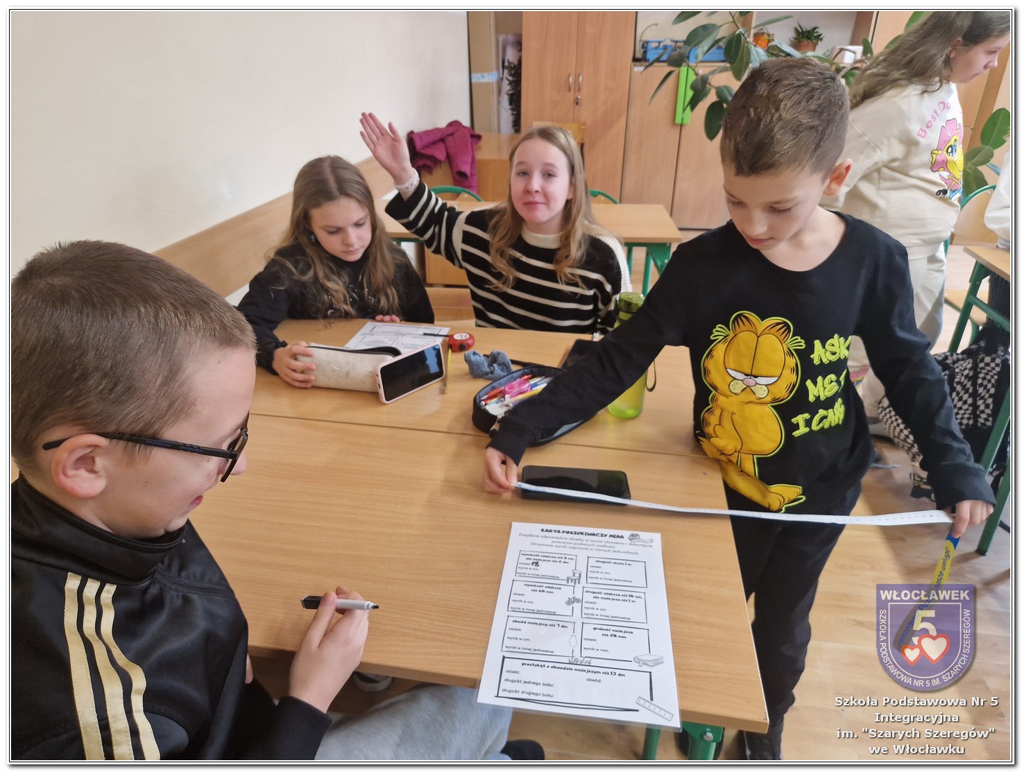 Uczniowie klas IV – V brali udział w warsztatach pt. „Przeliczanie jednostek długości i masy”, zrealizowanych w ramach projektu „Mierzymy świat – matematyka w naturze”, sfinansowanego przez Fundację mBanku w programie mSilnia. W zajęciach uczestniczyli uczniowie klas IV–V, którzy mieli okazję połączyć naukę z zabawą i praktycznymi doświadczeniami. Podczas warsztatów uczniowie poznawali zasady zamiany jednostek długości i masy, a następnie wykorzystywali tę wiedzę w atrakcyjnych ćwiczeniach. Układali domino matematyczne, porównywali wielkości przedmiotów związanych z jesienią, a także brali udział w sztafecie zadaniowej, która dostarczyła wiele emocji – element rywalizacji sprawił, że przeliczanie jednostek było nie tylko pożyteczne, ale i pełne wrażeń. Nie zabrakło również elementów interaktywnych – uczniowie wzięli udział w zabawie online Kahoot, utrwalając poznane jednostki. Następnie wcielili się w rolę „poszukiwaczy”, uzupełniając specjalną kartę i znajdując w klasie przedmioty o określonej wielkości. Wszystkie zadania rozwijały logiczne myślenie, spostrzegawczość i pracę zespołową, wprowadzając przy tym element rywalizacji i zabawy. Warsztaty były doskonałą okazją do praktycznego wykorzystania matematyki w codziennych sytuacjach i pokazania, że nauka może być wciągająca oraz pełna ruchu. Kolejne spotkania projektowe zapowiadają nowe wyzwania i ciekawe zadania dla uczniów, które będą kontynuacją zdobywanych umiejętności.