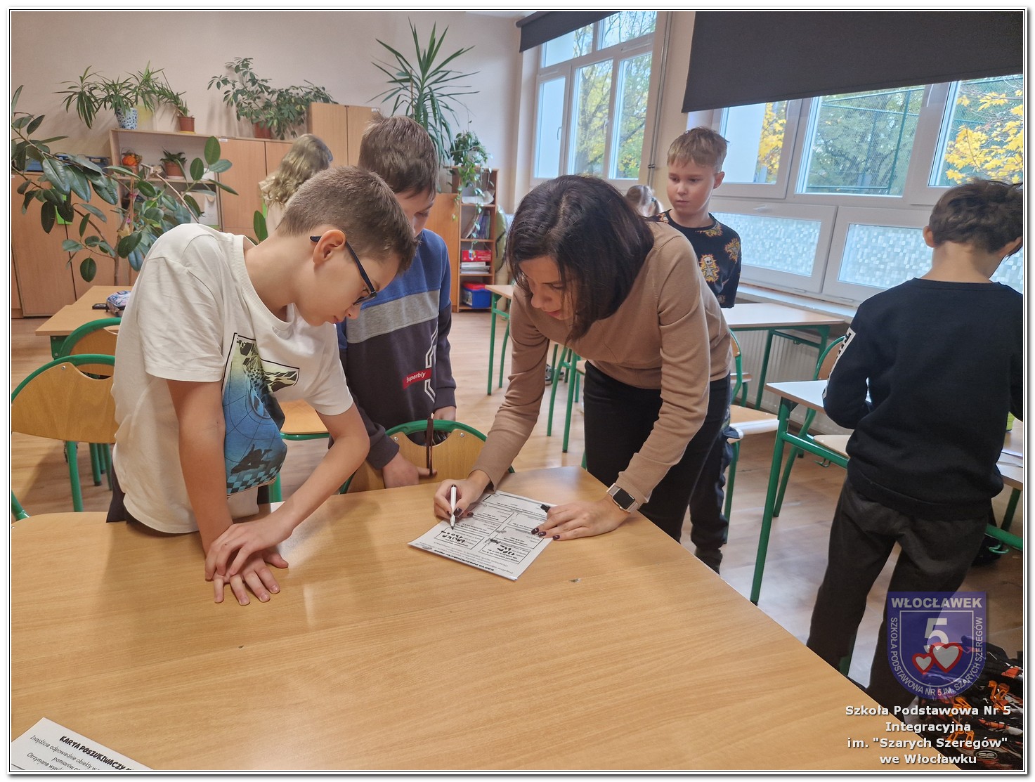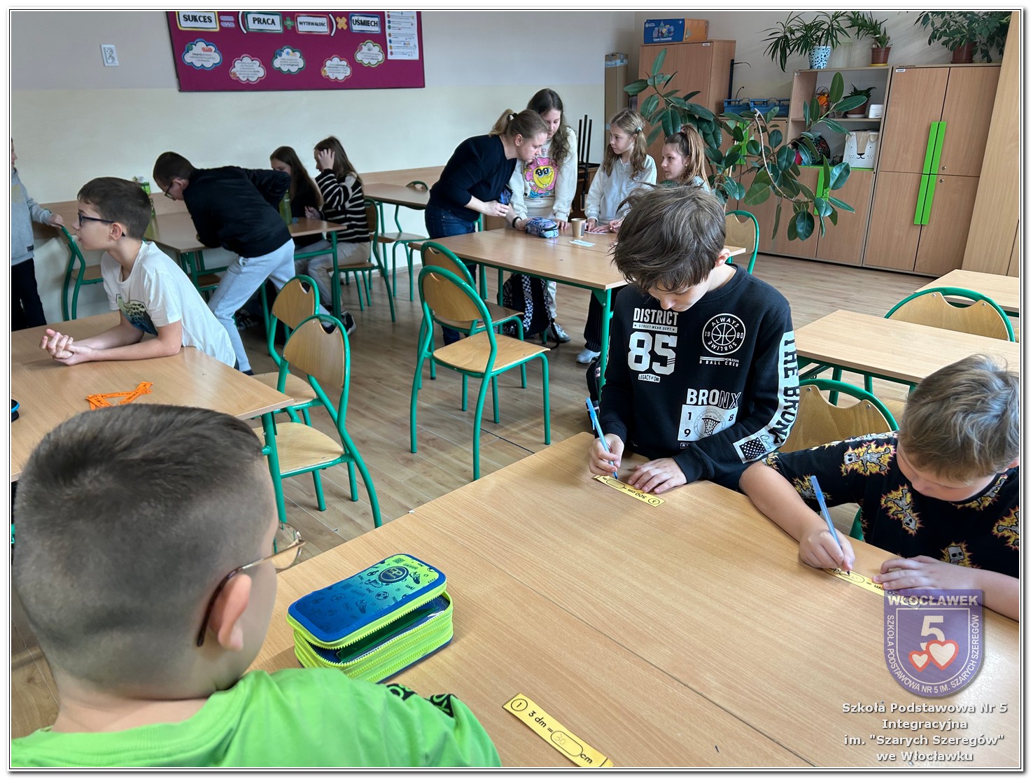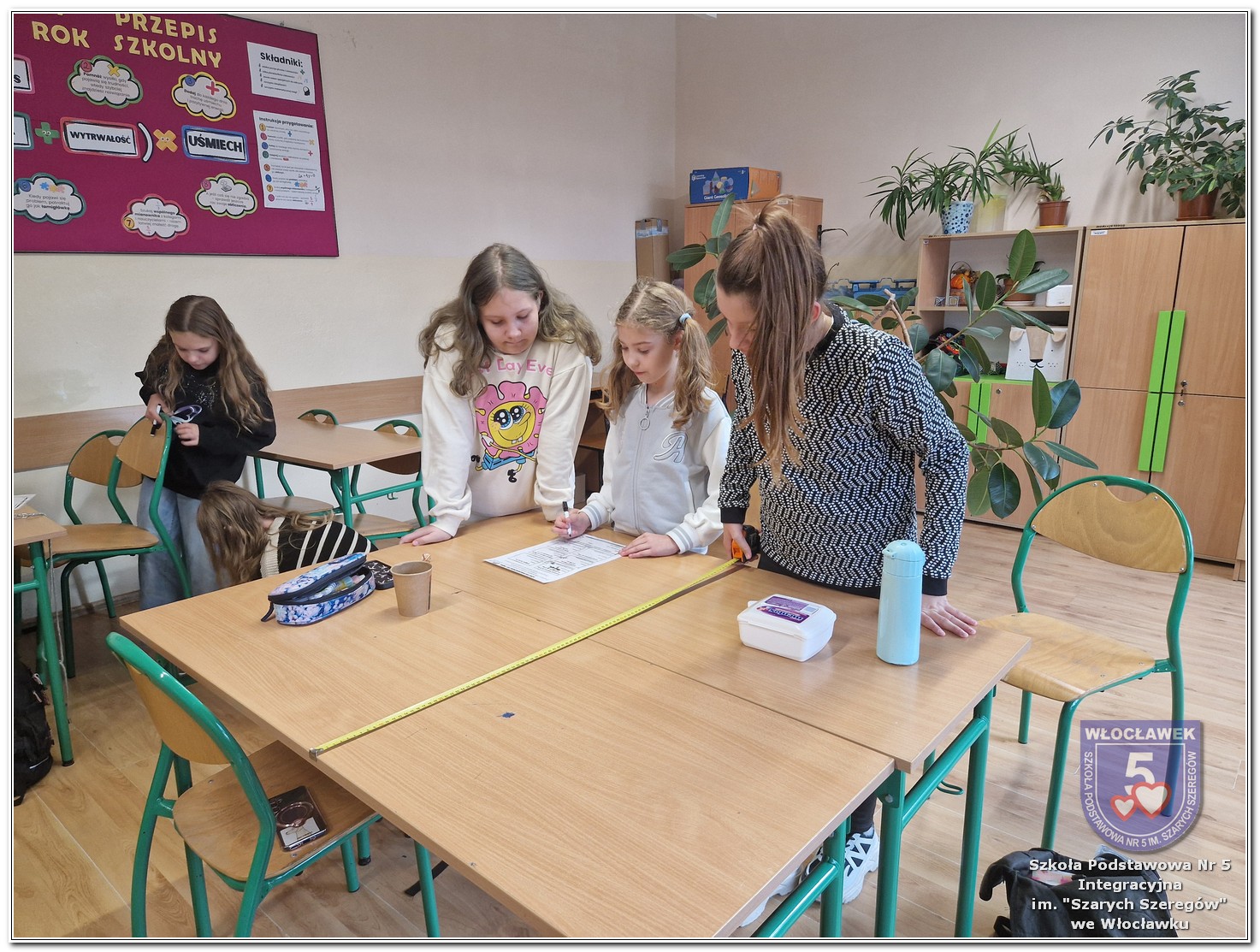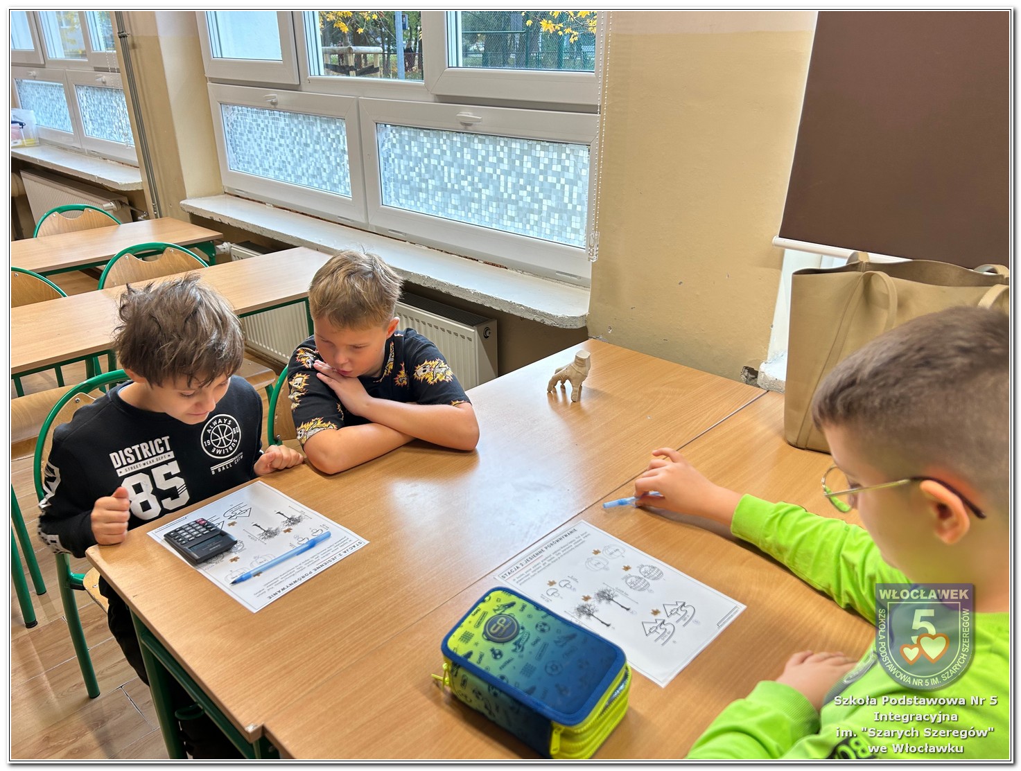 Uczniowie klas VI – VIII brali udział w warsztatach pt. „Przeliczanie jednostek długości i masy”, zrealizowanych w ramach projektu „Mierzymy świat – matematyka w naturze”, sfinansowanego przez Fundację mBanku w programie mSilnia. W zajęciach uczestniczyli uczniowie klas VI-VIII, którzy mieli okazję połączyć naukę z zabawą i praktycznymi doświadczeniami. Podczas warsztatów uczniowie poznawali zasady zamiany jednostek długości i masy, a następnie wykorzystywali tę wiedzę w atrakcyjnych ćwiczeniach. Układali domino matematyczne, porównywali wielkości przedmiotów związanych z jesienią, a także brali udział w sztafecie zadaniowej, która dostarczyła wiele emocji – element rywalizacji sprawił, że przeliczanie jednostek było nie tylko pożyteczne, ale i pełne wrażeń. Nie zabrakło również elementów interaktywnych – uczniowie wzięli udział w zabawie online Kahoot, utrwalając poznane jednostki. Następnie wcielili się w rolę „poszukiwaczy”, uzupełniając specjalną kartę i znajdując w klasie przedmioty o określonej wielkości. Wszystkie zadania rozwijały logiczne myślenie, spostrzegawczość i pracę zespołową, wprowadzając przy tym element rywalizacji i zabawy. Warsztaty były doskonałą okazją do praktycznego wykorzystania matematyki w codziennych sytuacjach i pokazania, że nauka może być wciągająca oraz pełna ruchu. Kolejne spotkania projektowe zapowiadają nowe wyzwania i ciekawe zadania dla uczniów, które będą kontynuacją zdobywanych umiejętności.