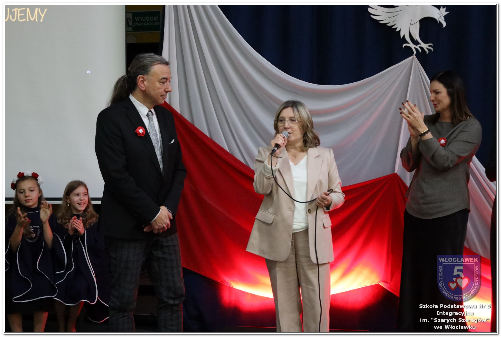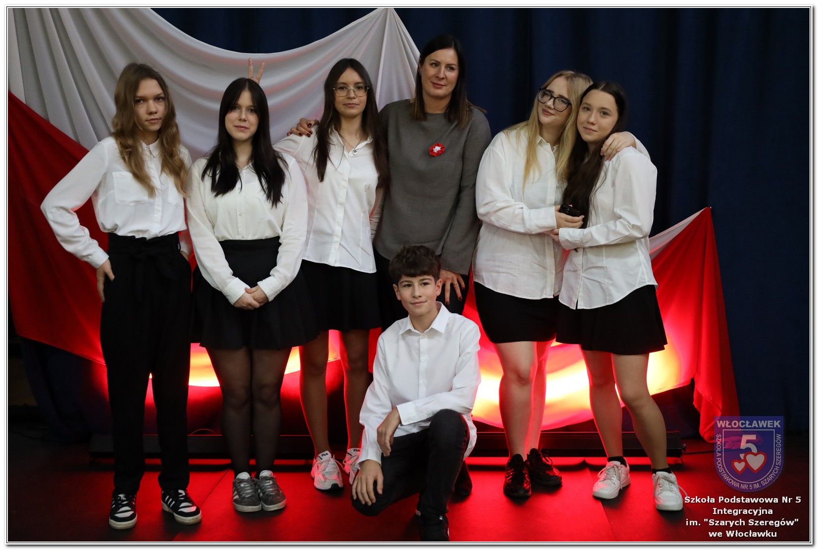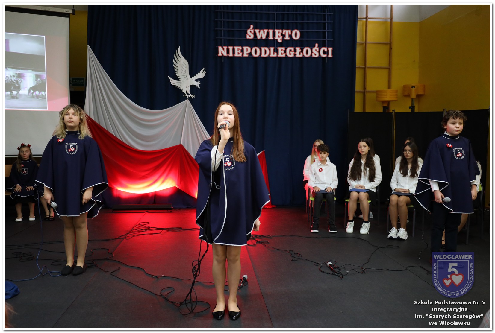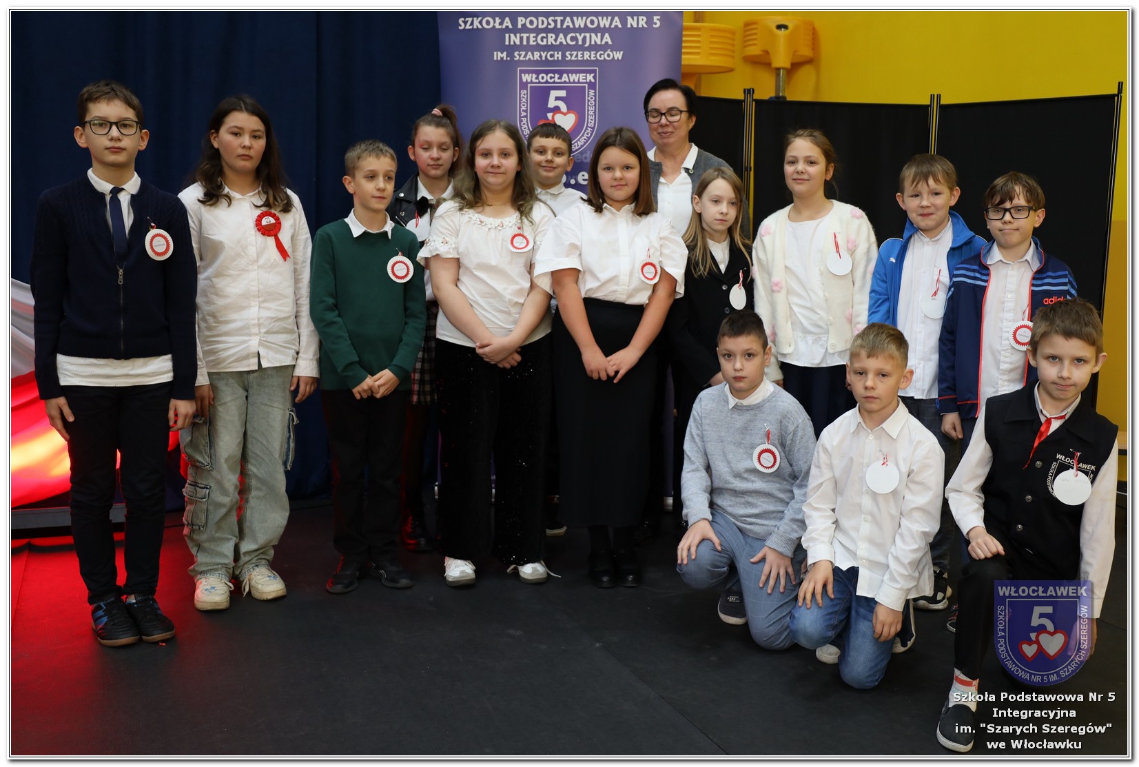 W dniu 7 listopada 2025 r. z okazji zbliżającej się 107. rocznicy odzyskania przez Polskę Niepodległości uczniowie naszej szkoły uczestniczyli w patriotycznej i bardzo wzruszającej akademii pt. "Przytulmy Polskę do serca". Była to przepiękna lekcja historii przygotowana przez uczniów klas IV-VIII pod kierunkiem Pani Doroty Bąbińskiej i Pana Wojciecha Hamkało. Nasi młodzi artyści przybliżyli widzom historię, soliści zaśpiewali piękne patriotyczne pieśni. Mieliśmy również okazję przenieść się na chwilę w czasie do wydarzeń z tamtych lat, o co zadbała Pani Maja Bugdał przygotowując z tej okazji bardzo ciekawą prezentację multimedialną. Na zakończenie obchodów Święta Niepodległość w naszej szkole o godz.11.11 wszyscy wspólnie odśpiewaliśmy hymn państwowy.