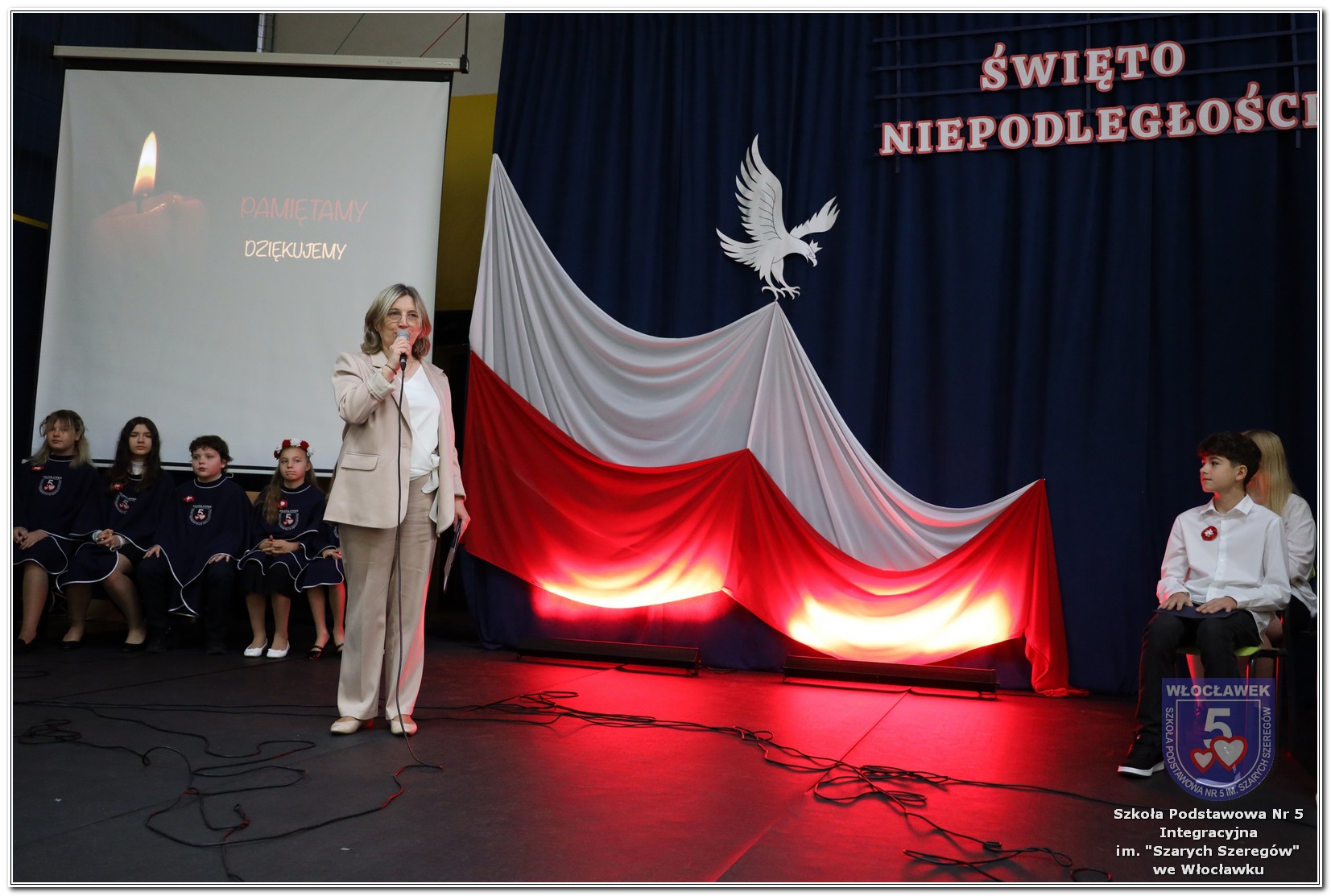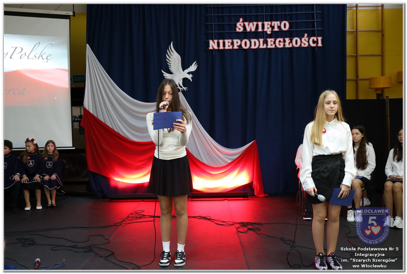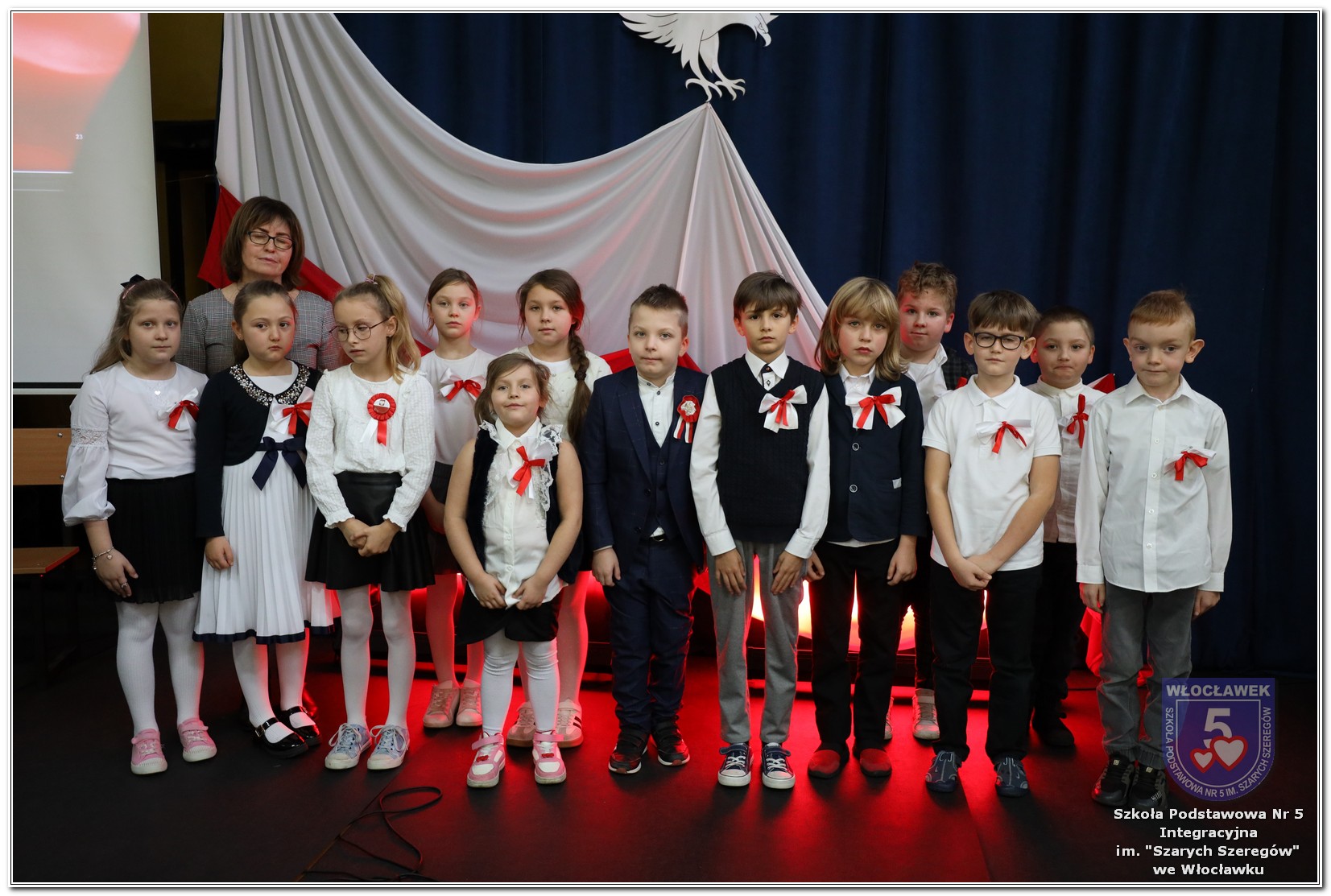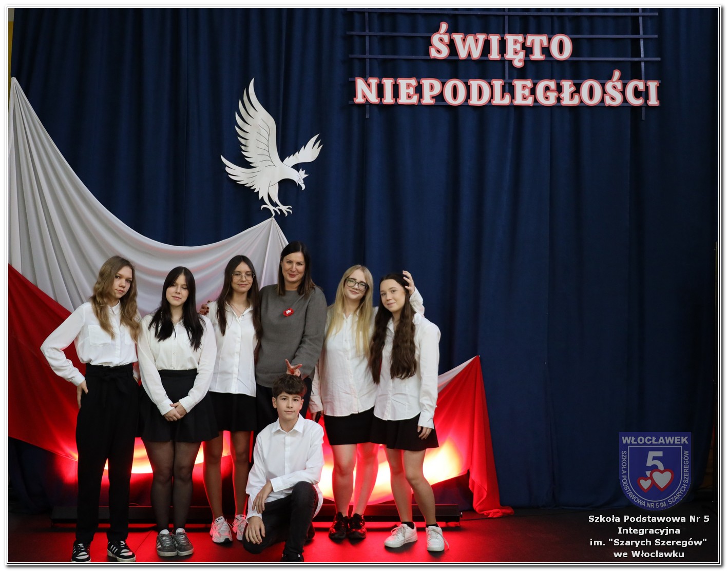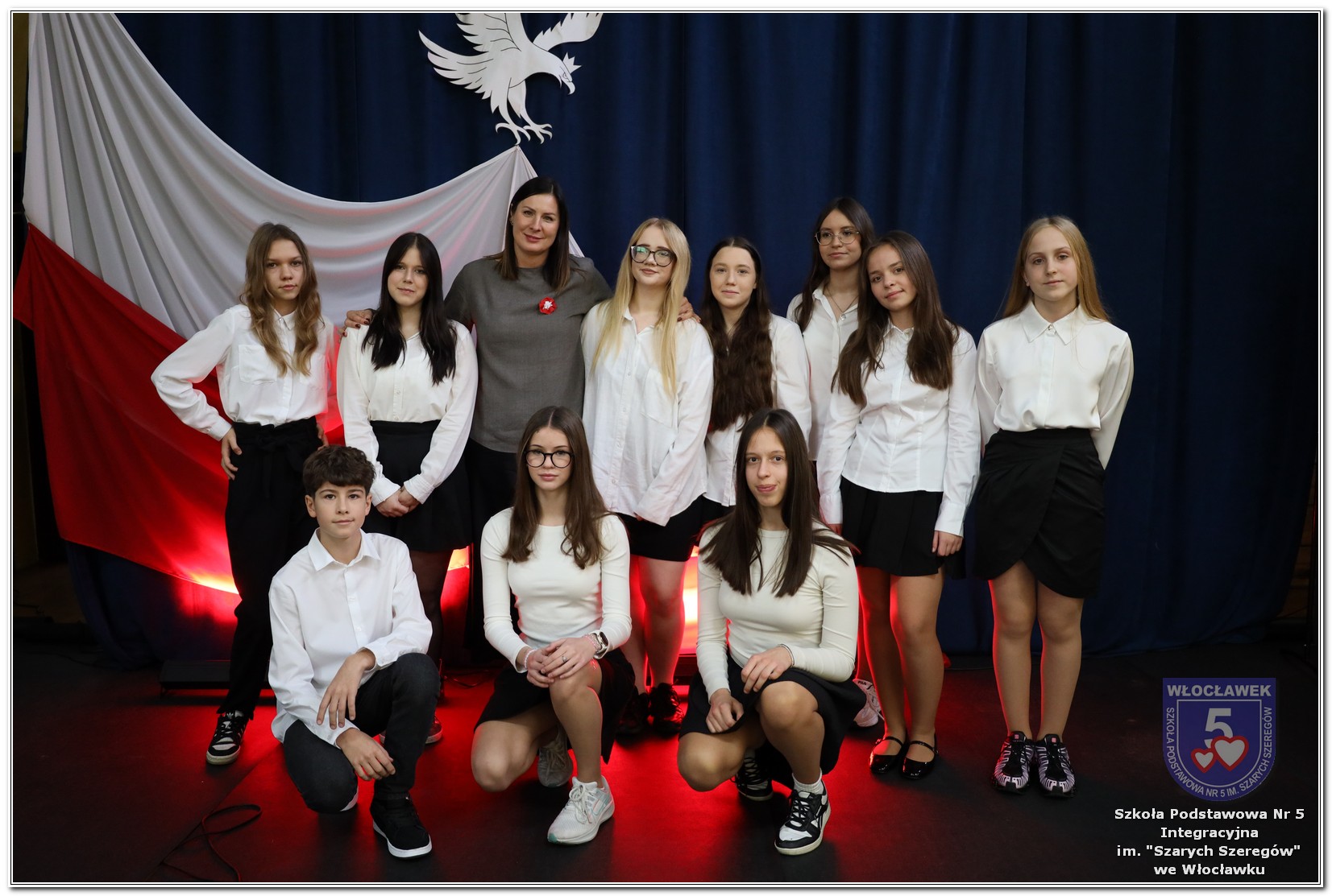 W dniu 7 listopada 2025 r. z okazji zbliżającej się 107. rocznicy odzyskania przez Polskę Niepodległości uczniowie naszej szkoły uczestniczyli w patriotycznej i bardzo wzruszającej akademii pt. "Przytulmy Polskę do serca". Była to przepiękna lekcja historii przygotowana przez uczniów klas IV-VIII pod kierunkiem Pani Doroty Bąbińskiej i Pana Wojciecha Hamkało. Nasi młodzi artyści przybliżyli widzom historię, soliści zaśpiewali piękne patriotyczne pieśni. Mieliśmy również okazję przenieść się na chwilę w czasie do wydarzeń z tamtych lat, o co zadbała Pani Maja Bugdał przygotowując z tej okazji bardzo ciekawą prezentację multimedialną. Na zakończenie obchodów Święta Niepodległość w naszej szkole o godz.11.11 wszyscy wspólnie odśpiewaliśmy hymn państwowy.