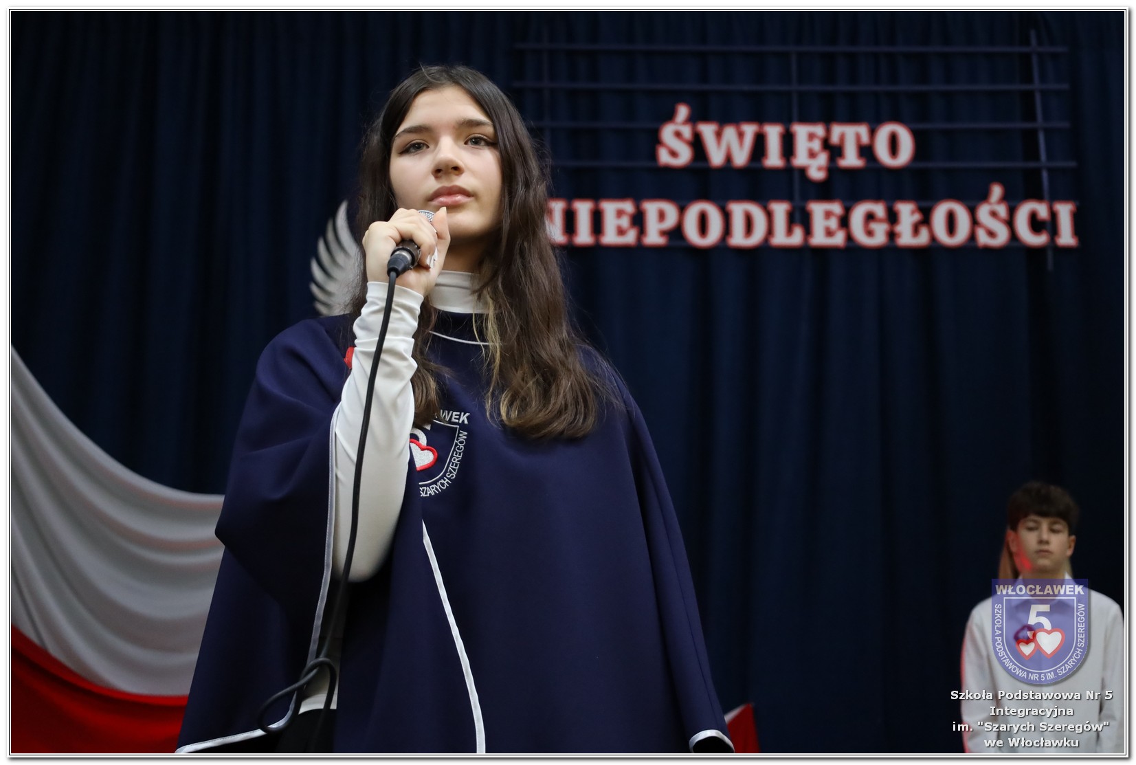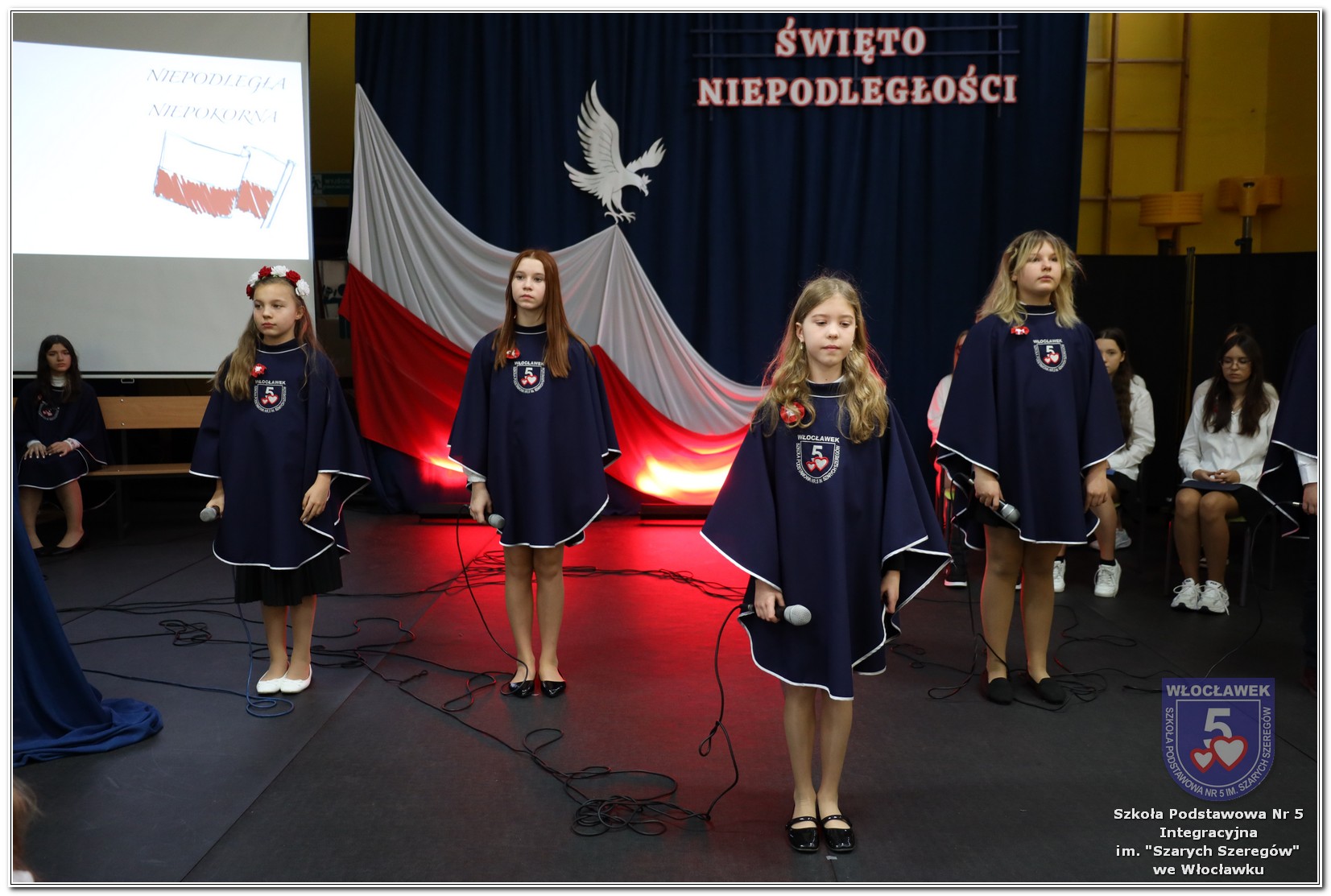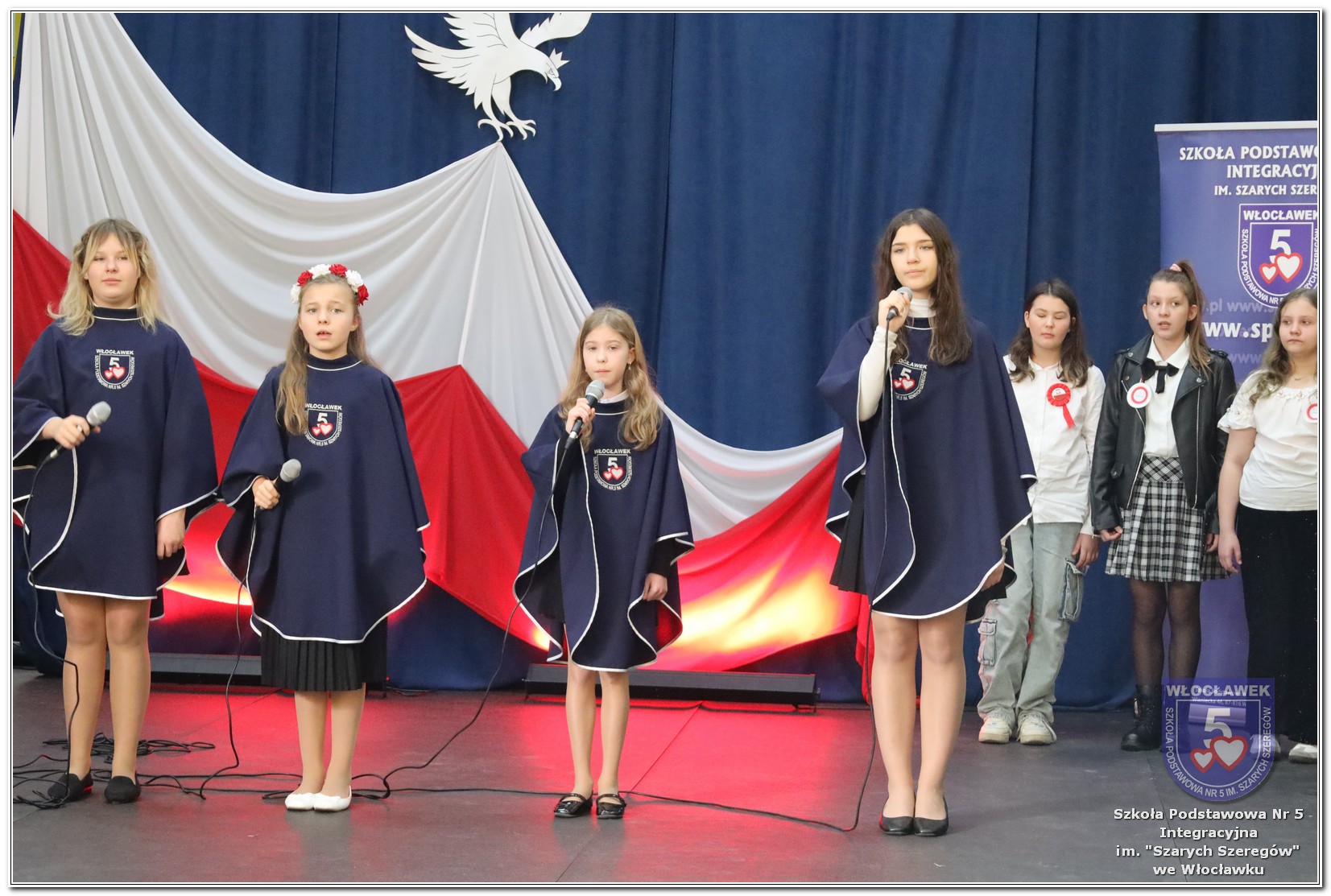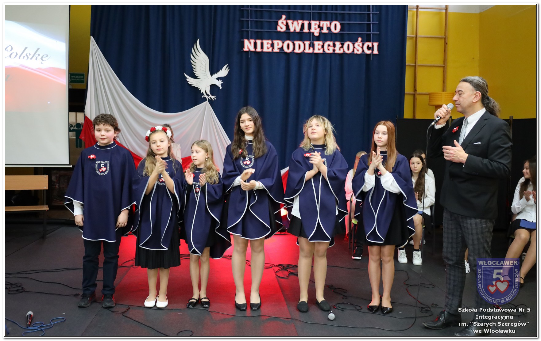 W dniu 7 listopada 2025 r. z okazji zbliżającej się 107. rocznicy odzyskania przez Polskę Niepodległości uczniowie naszej szkoły uczestniczyli w patriotycznej i bardzo wzruszającej akademii pt. "Przytulmy Polskę do serca". Była to przepiękna lekcja historii przygotowana przez uczniów klas IV-VIII pod kierunkiem Pani Doroty Bąbińskiej i Pana Wojciecha Hamkało. Nasi młodzi artyści przybliżyli widzom historię, soliści zaśpiewali piękne patriotyczne pieśni. Mieliśmy również okazję przenieść się na chwilę w czasie do wydarzeń z tamtych lat, o co zadbała Pani Maja Bugdał przygotowując z tej okazji bardzo ciekawą prezentację multimedialną. Na zakończenie obchodów Święta Niepodległość w naszej szkole o godz.11.11 wszyscy wspólnie odśpiewaliśmy hymn państwowy.
